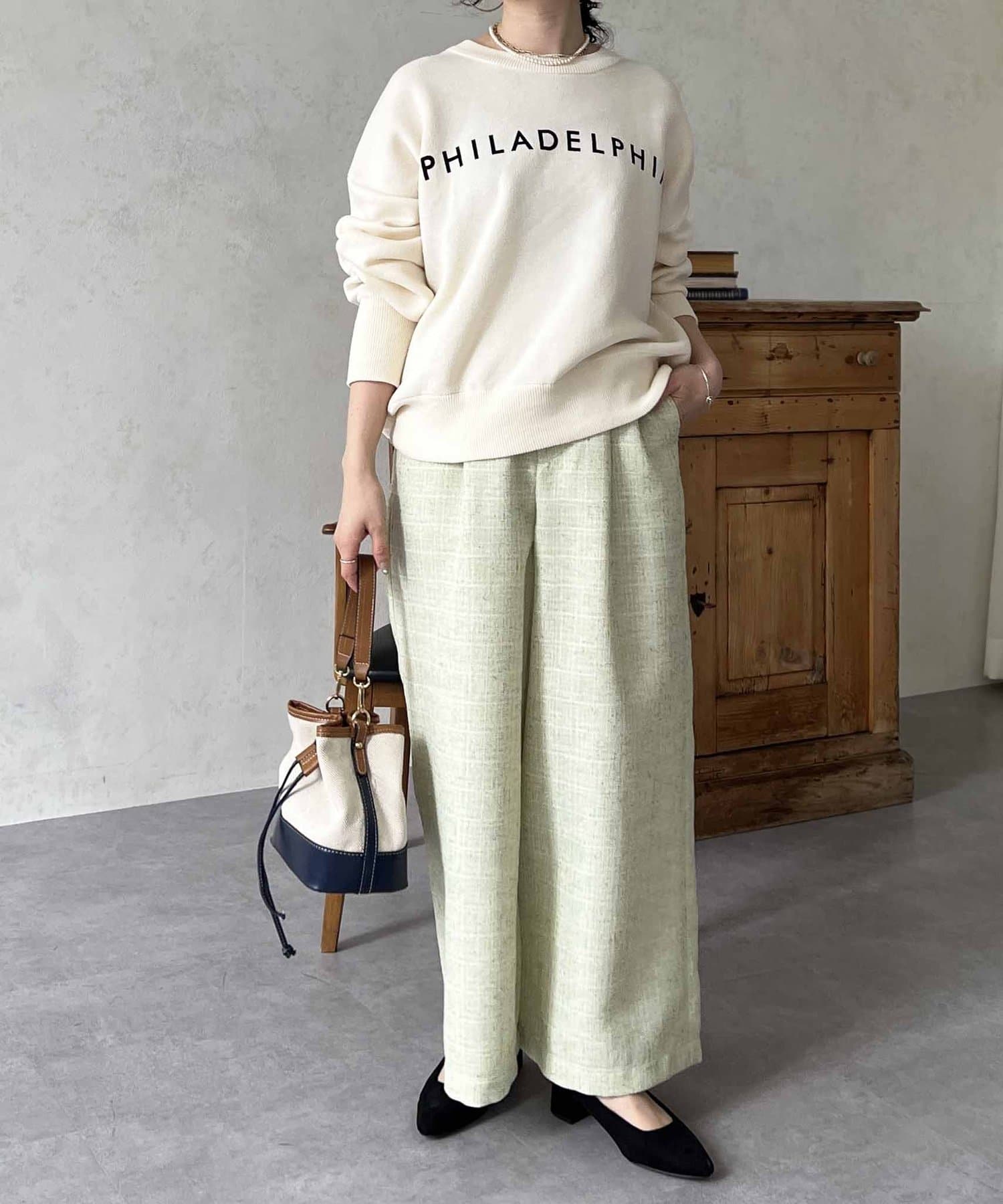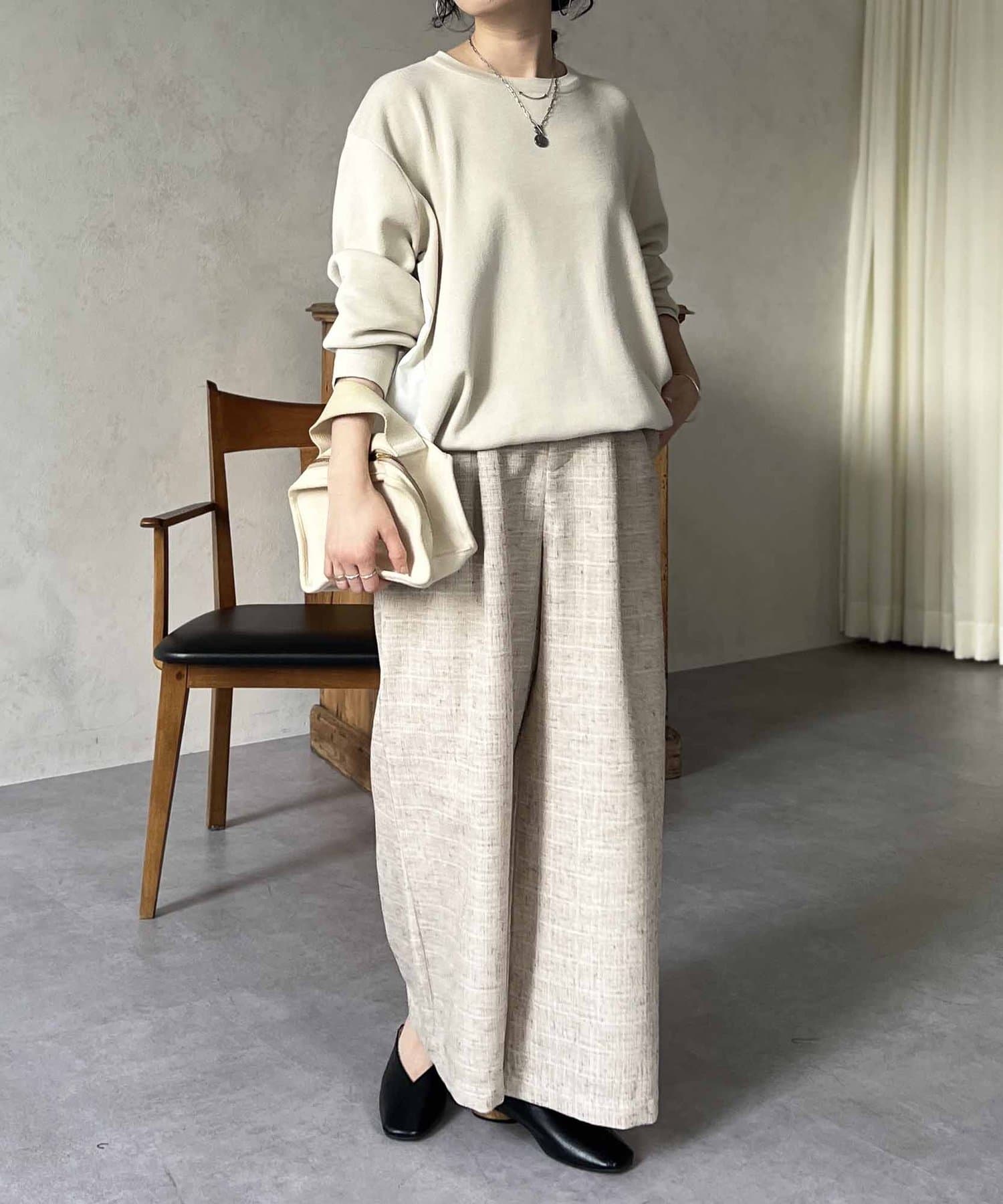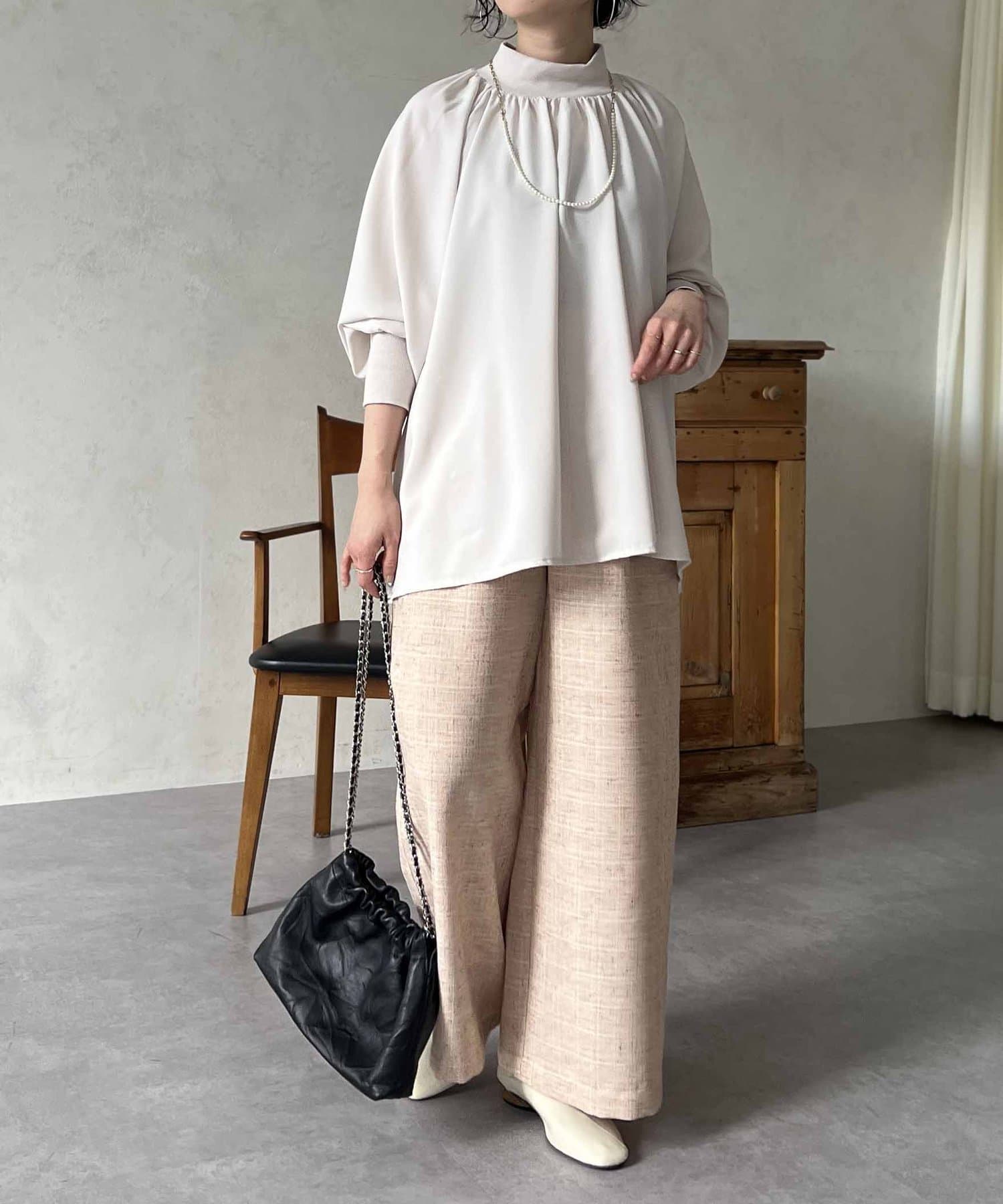 シンプルなトップスと合わせても上品な印象になるので、オンオフ問わず着まわしていただけます。