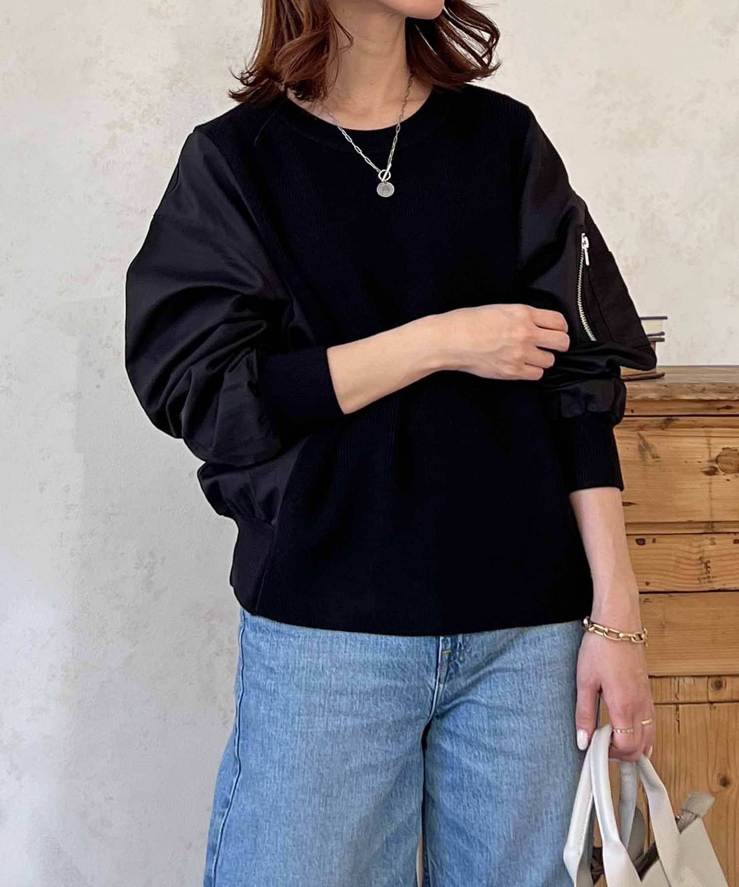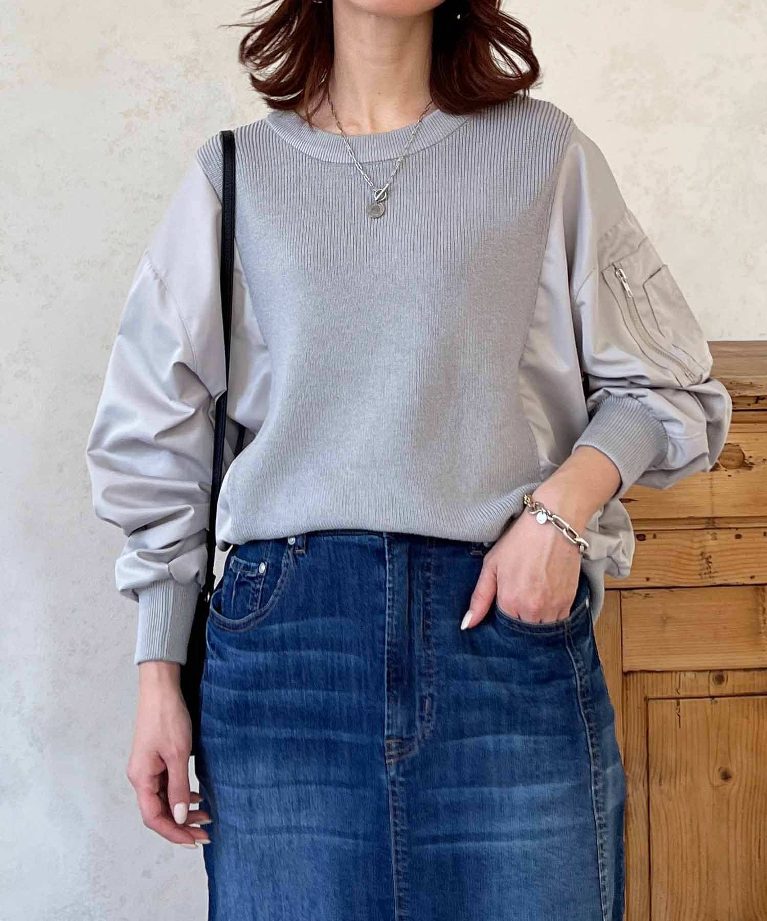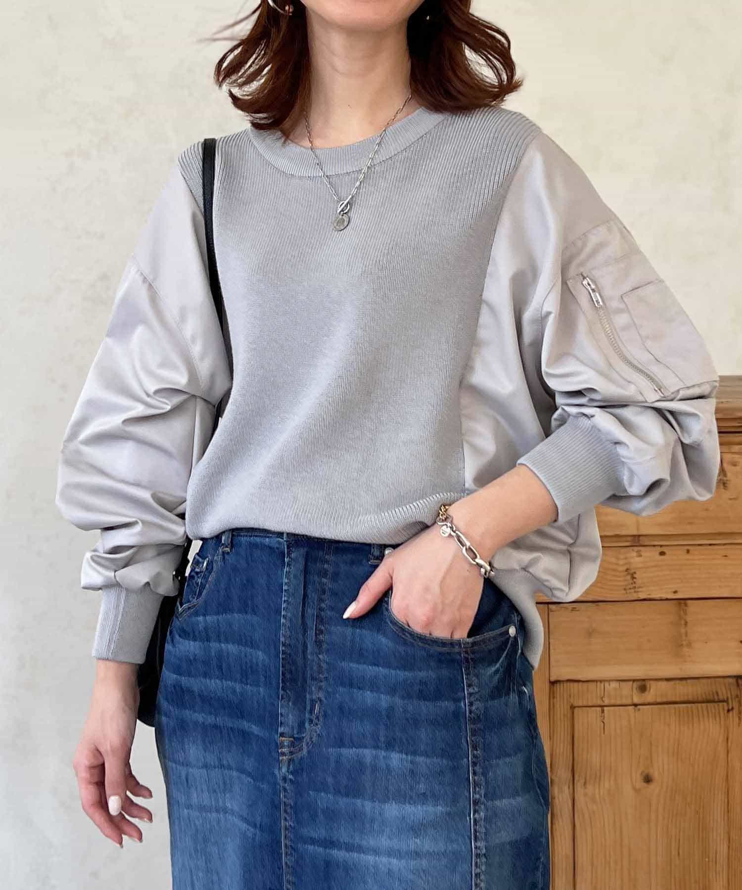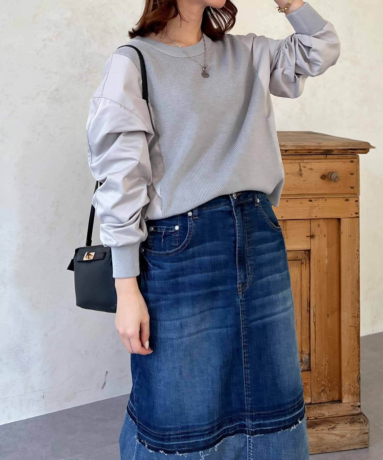 袖以外はベーシックなニットなのでデニムで合わせたシンプルコーデにも、プリーツスカートなど甘めなアイテムとも相性良く着回し力もばっちり◎