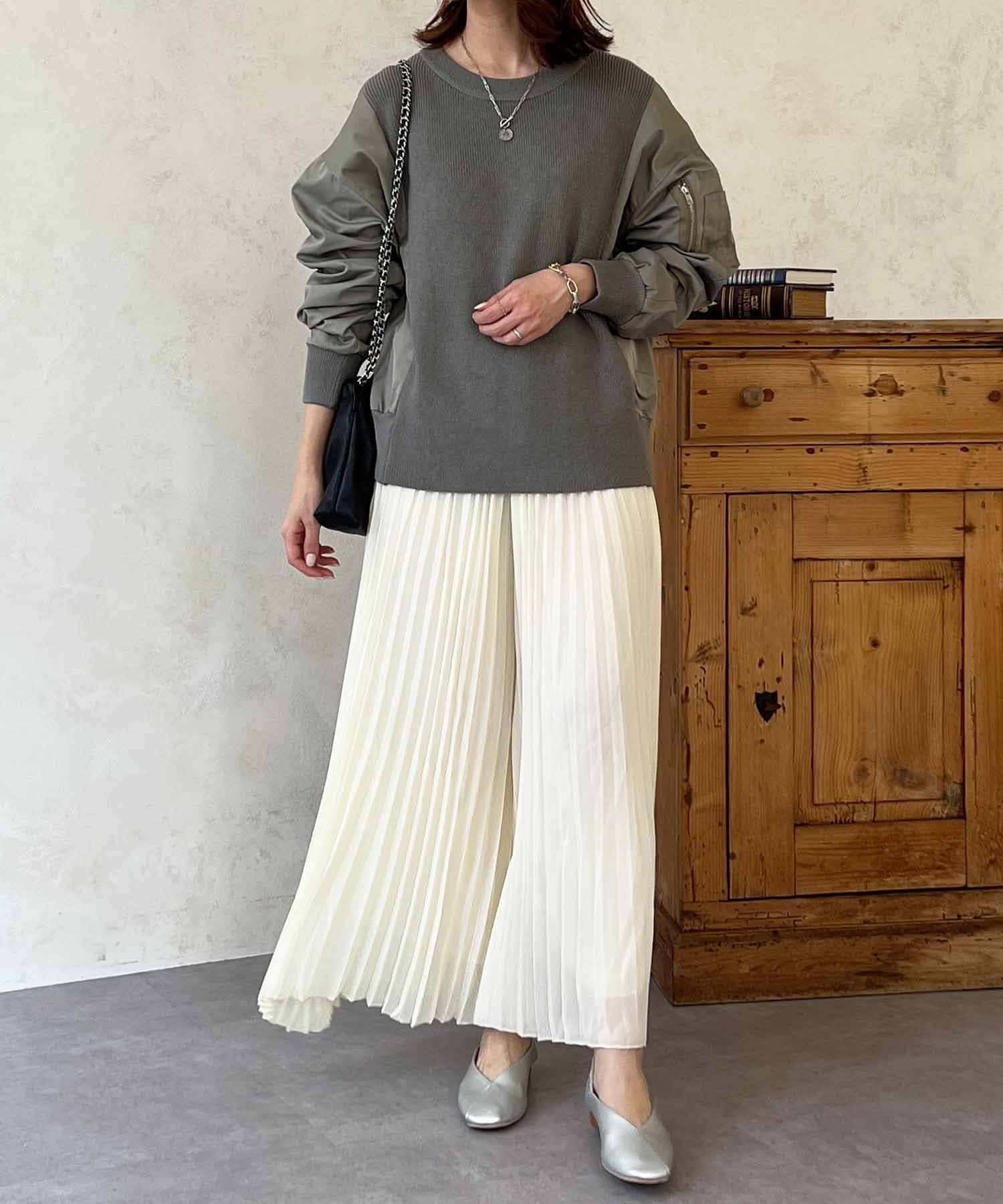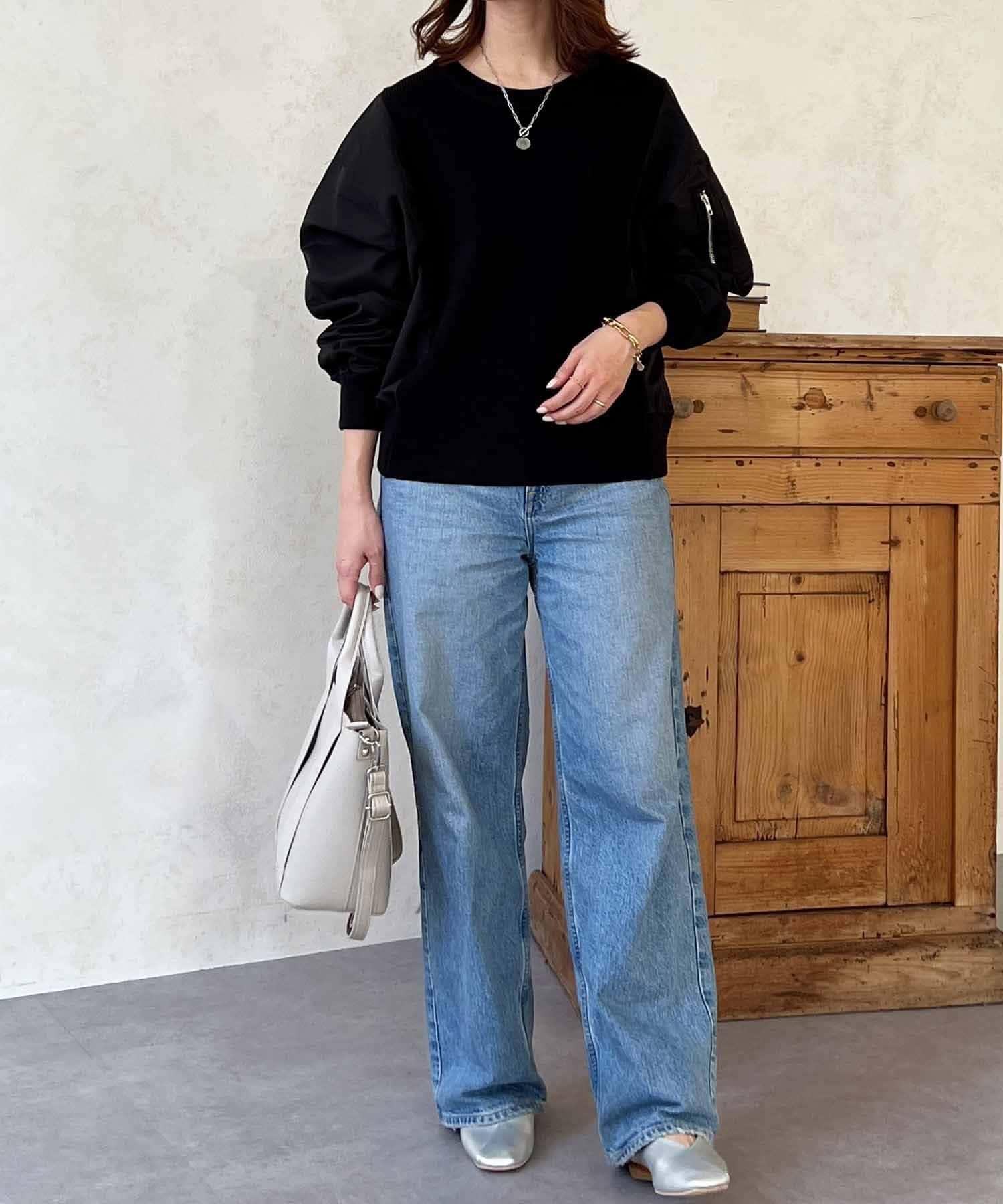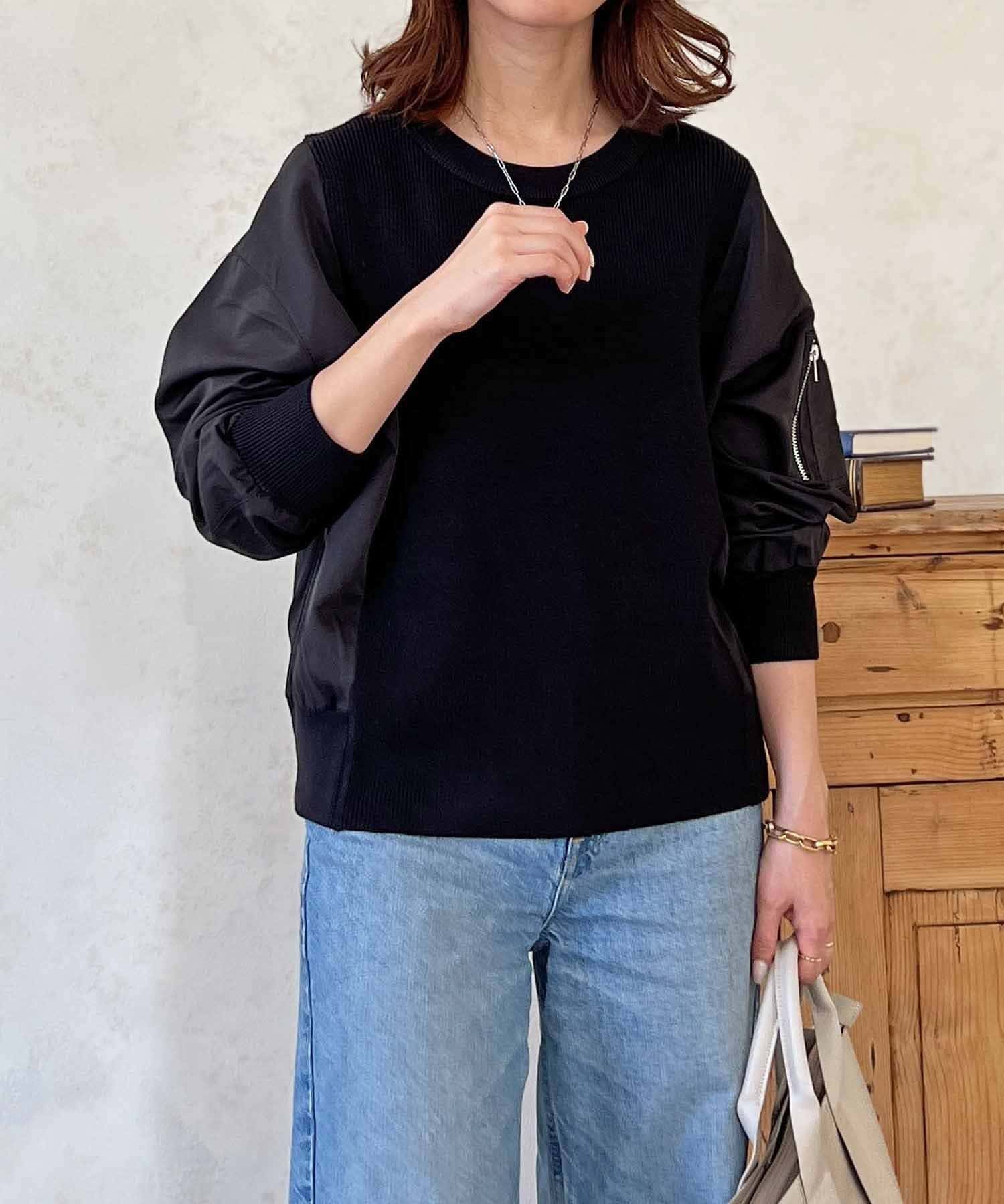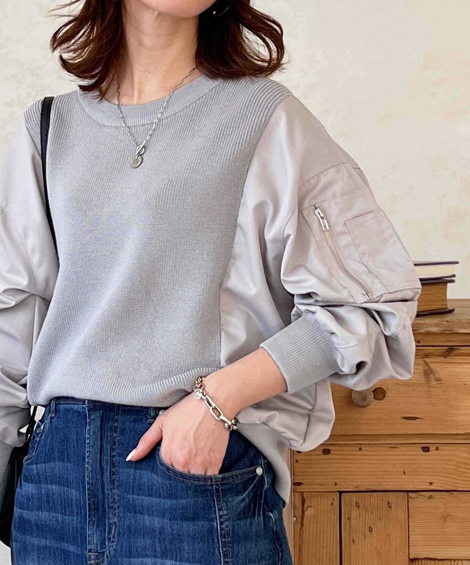 袖以外はベーシックなニットなのでデニムで合わせたシンプルコーデにも、プリーツスカートなど甘めなアイテムとも相性良く着回し力もばっちり◎