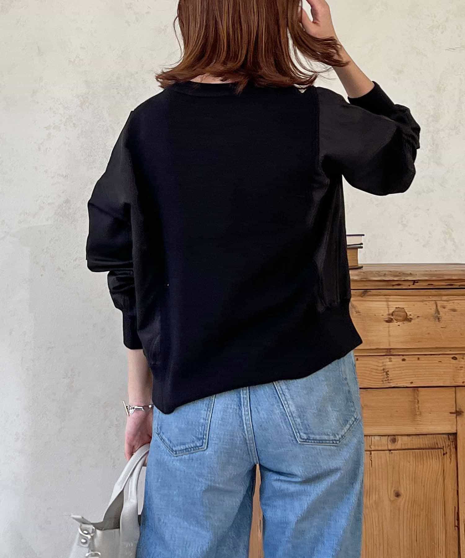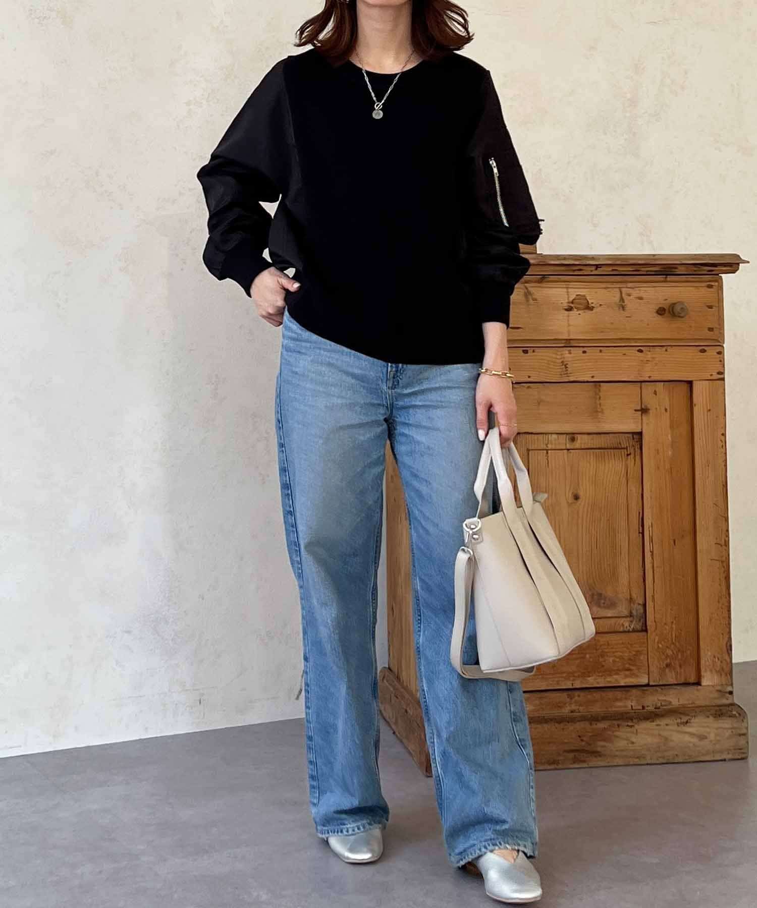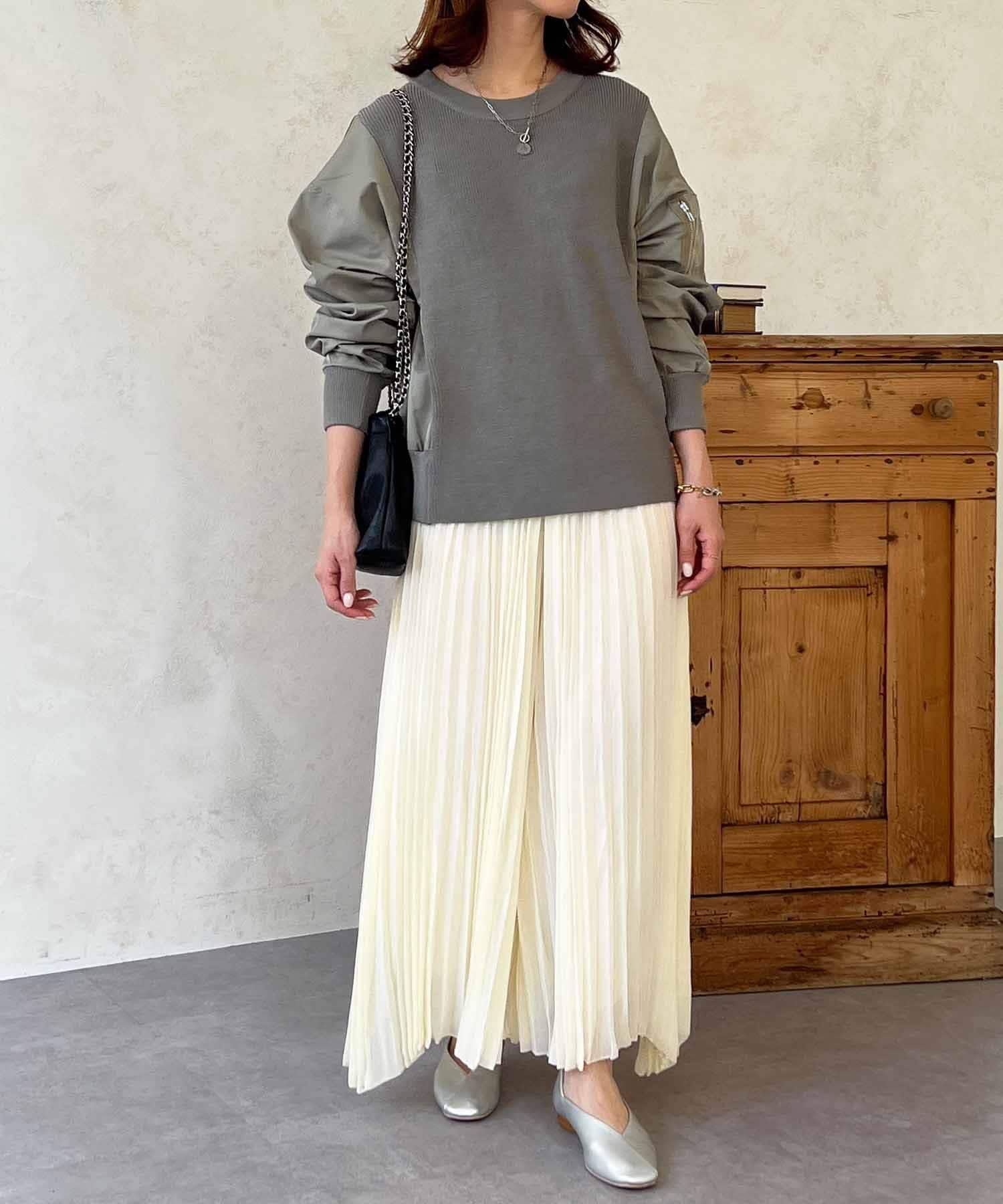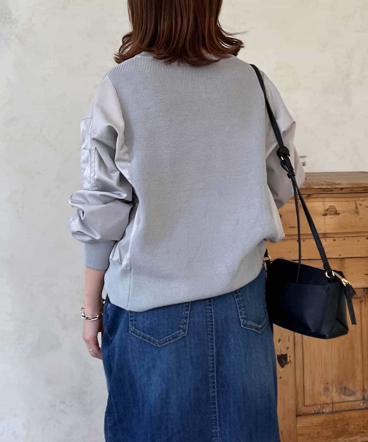 袖以外はベーシックなニットなのでデニムで合わせたシンプルコーデにも、プリーツスカートなど甘めなアイテムとも相性良く着回し力もばっちり◎