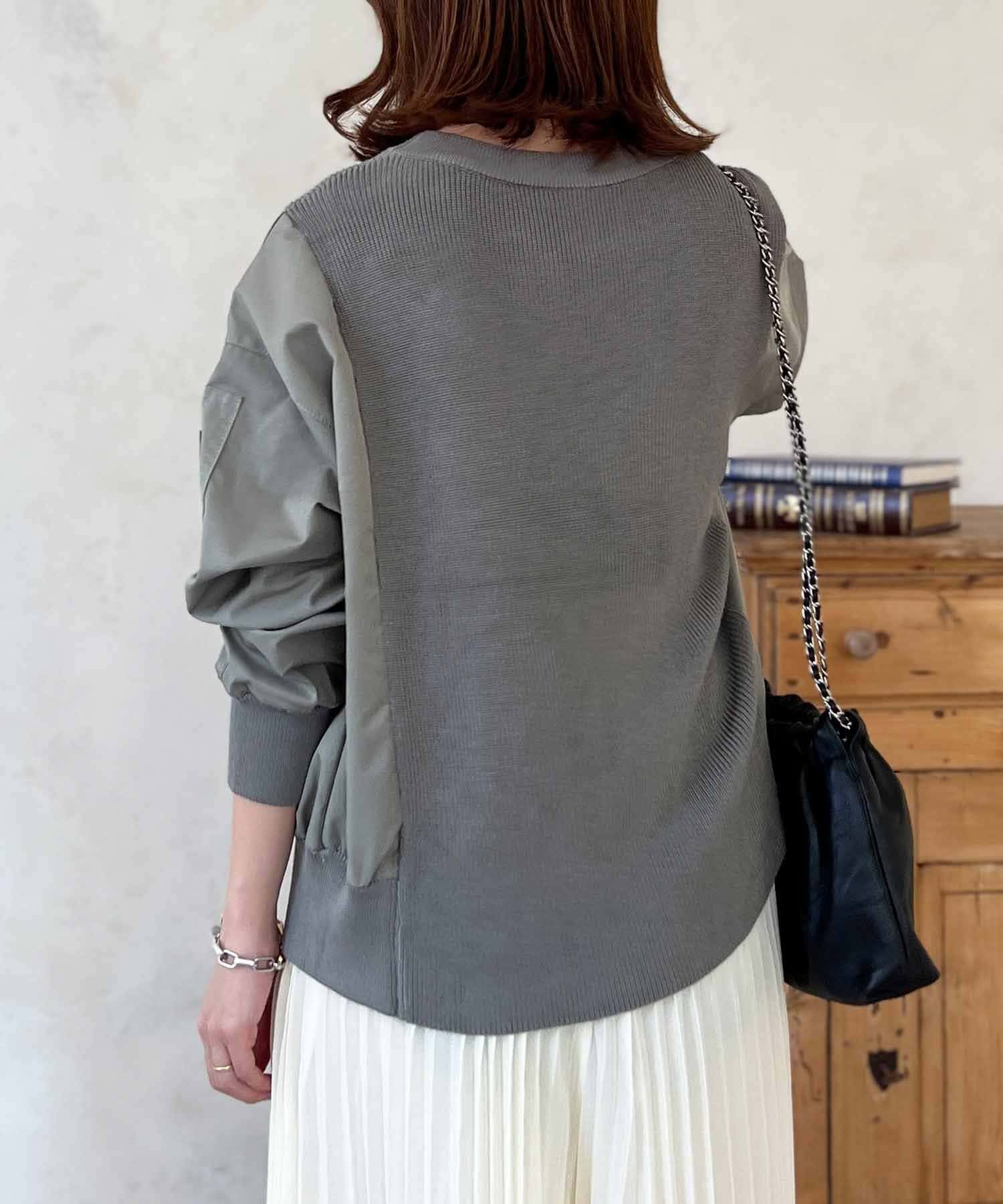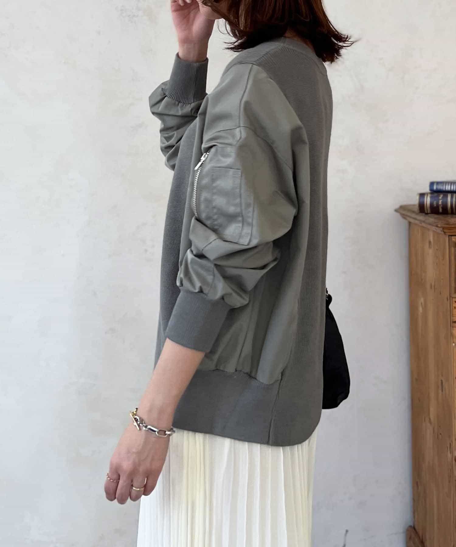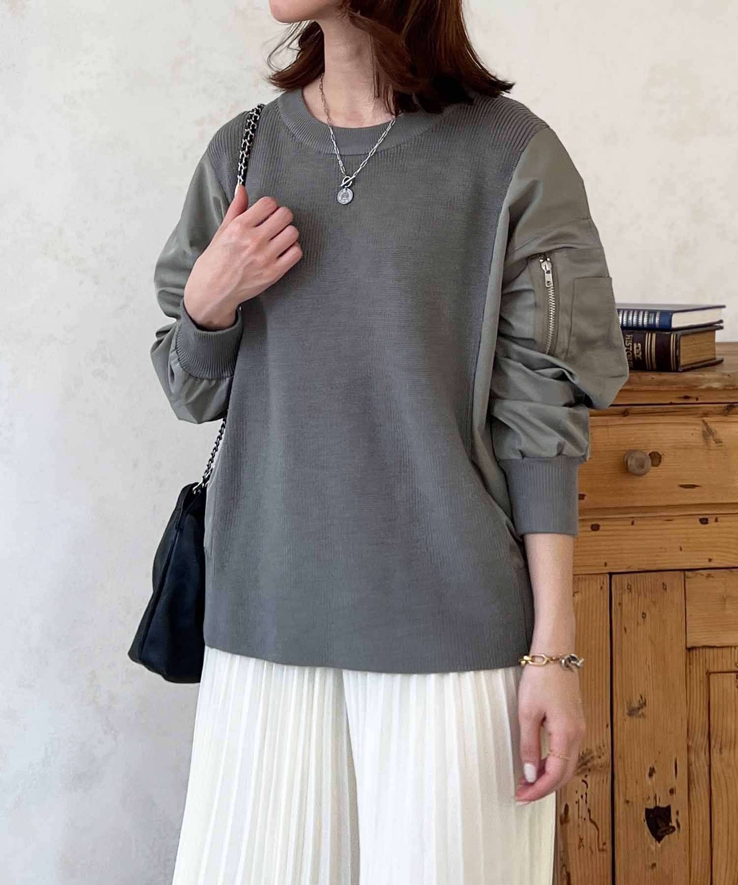 袖部分にファスナーポケットがついたミリタリー調のニット。