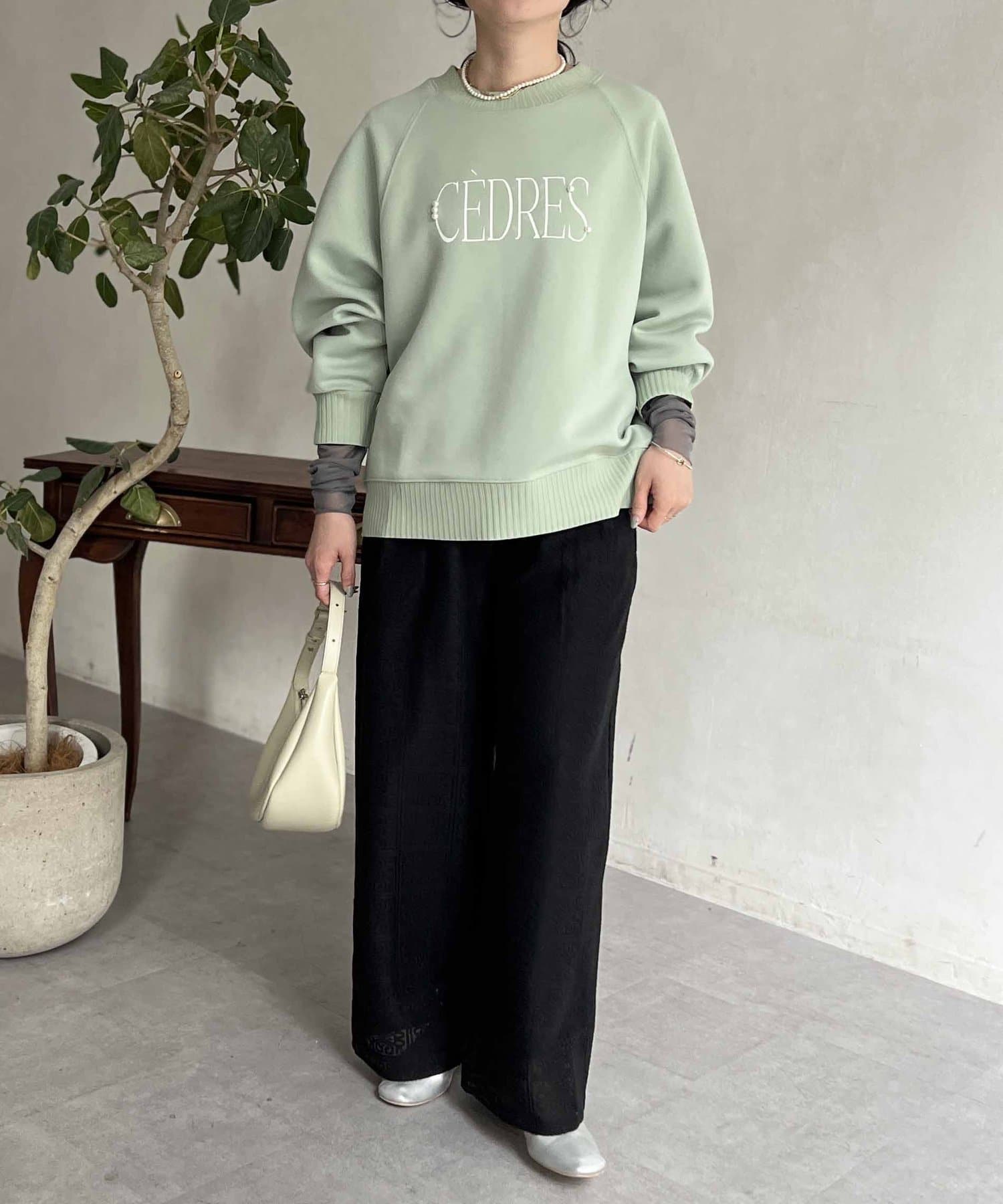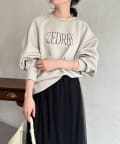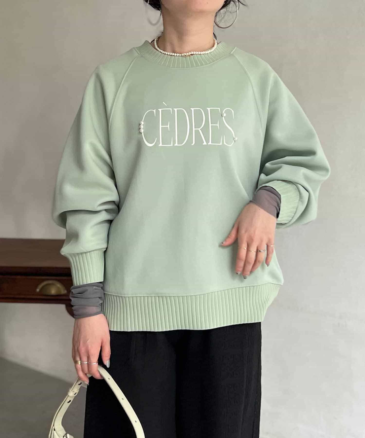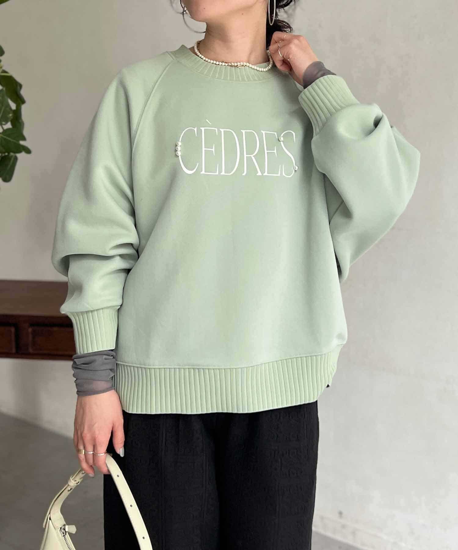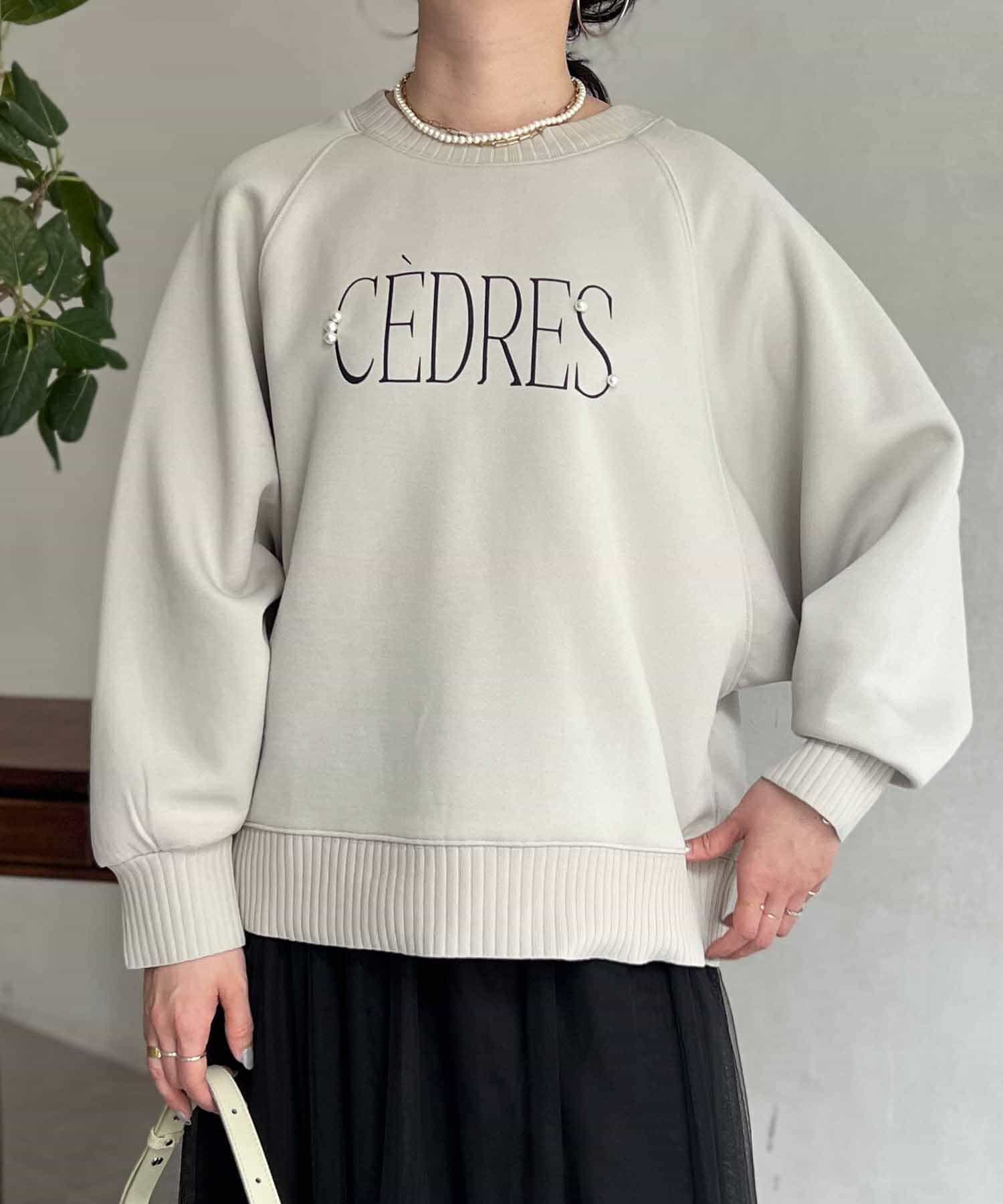 きれいめ見えする細ロゴとアクセントになるパール付きがポイントのスウェット。