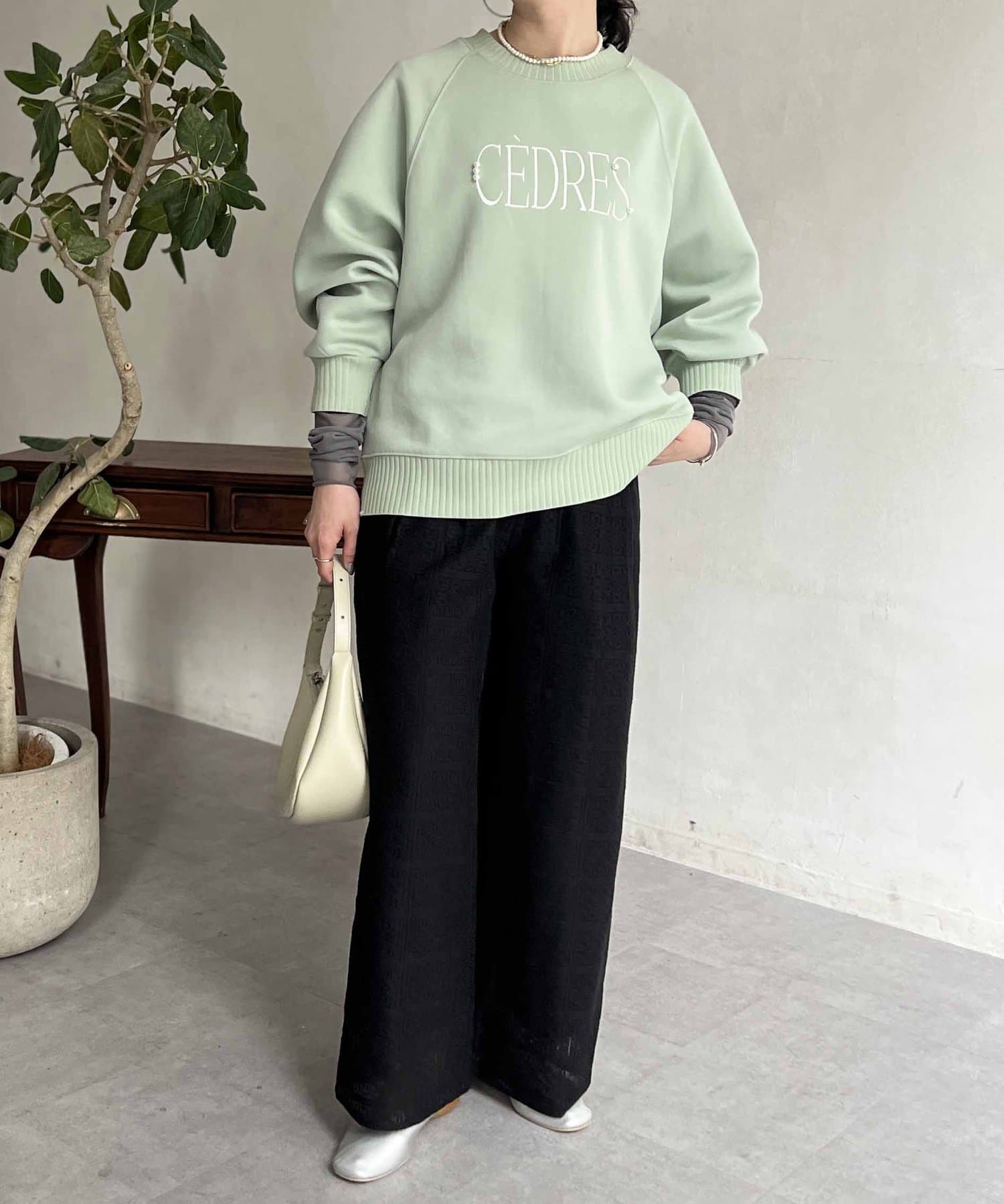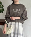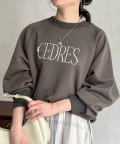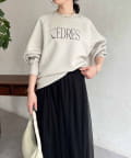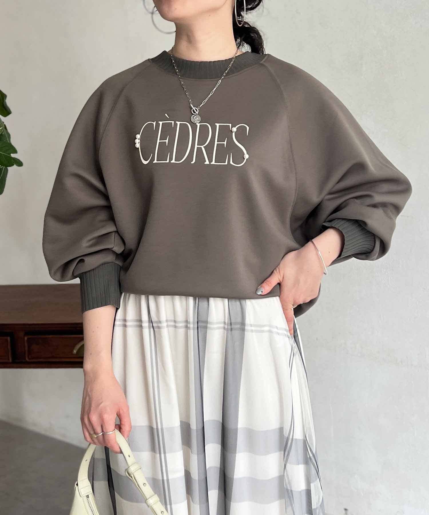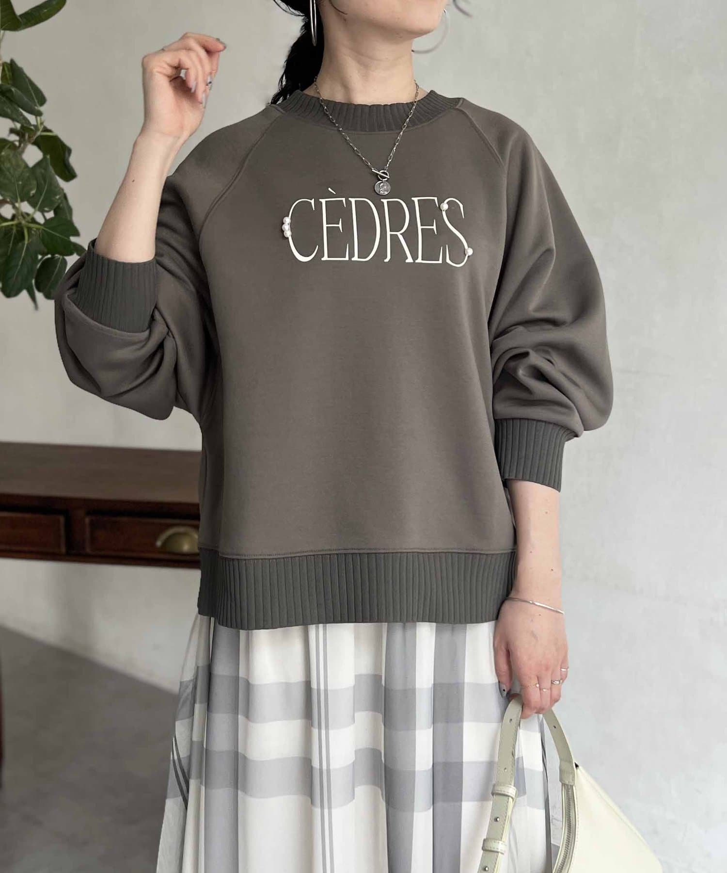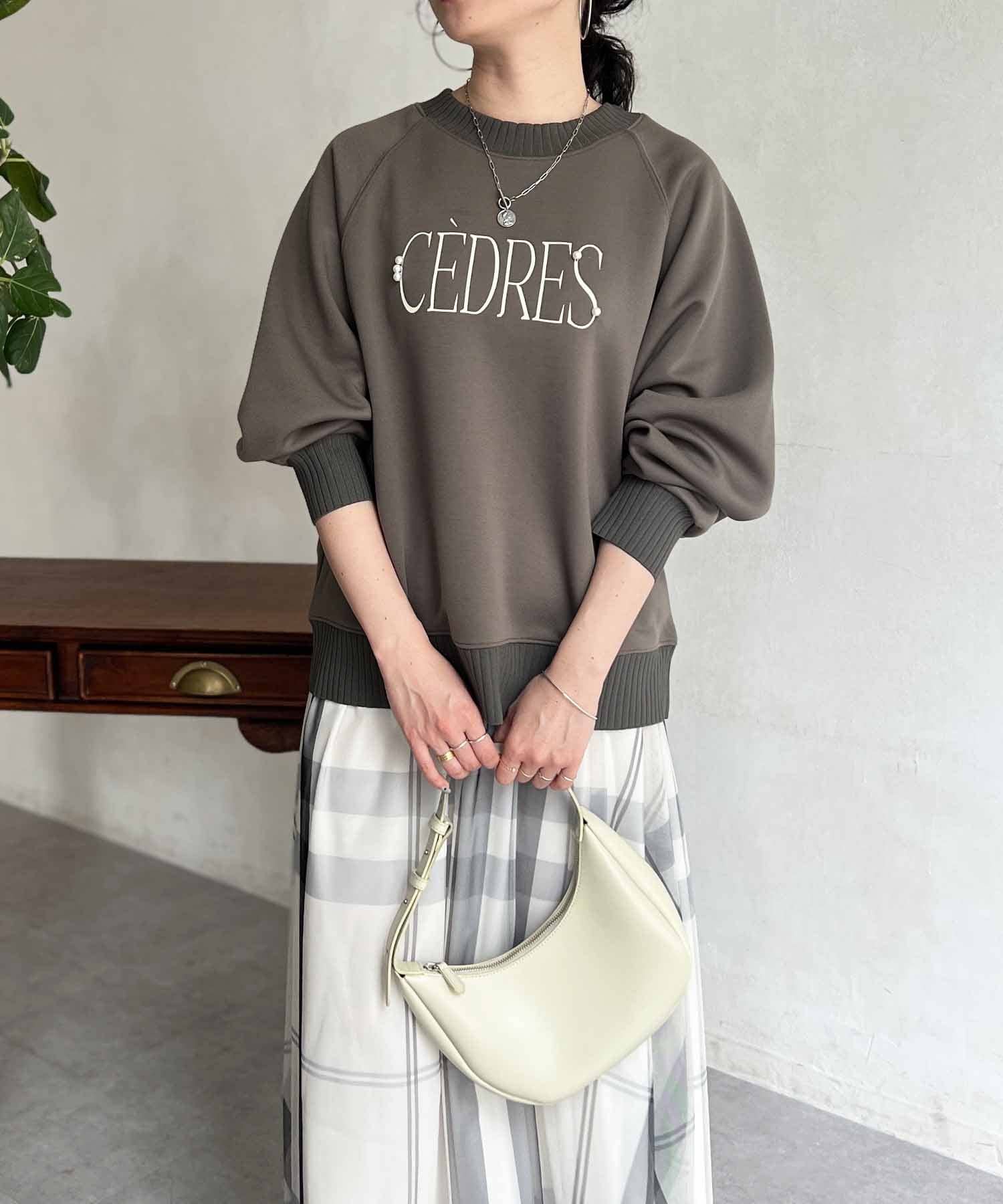 きれいめ見えする細ロゴとアクセントになるパール付きがポイントのスウェット。