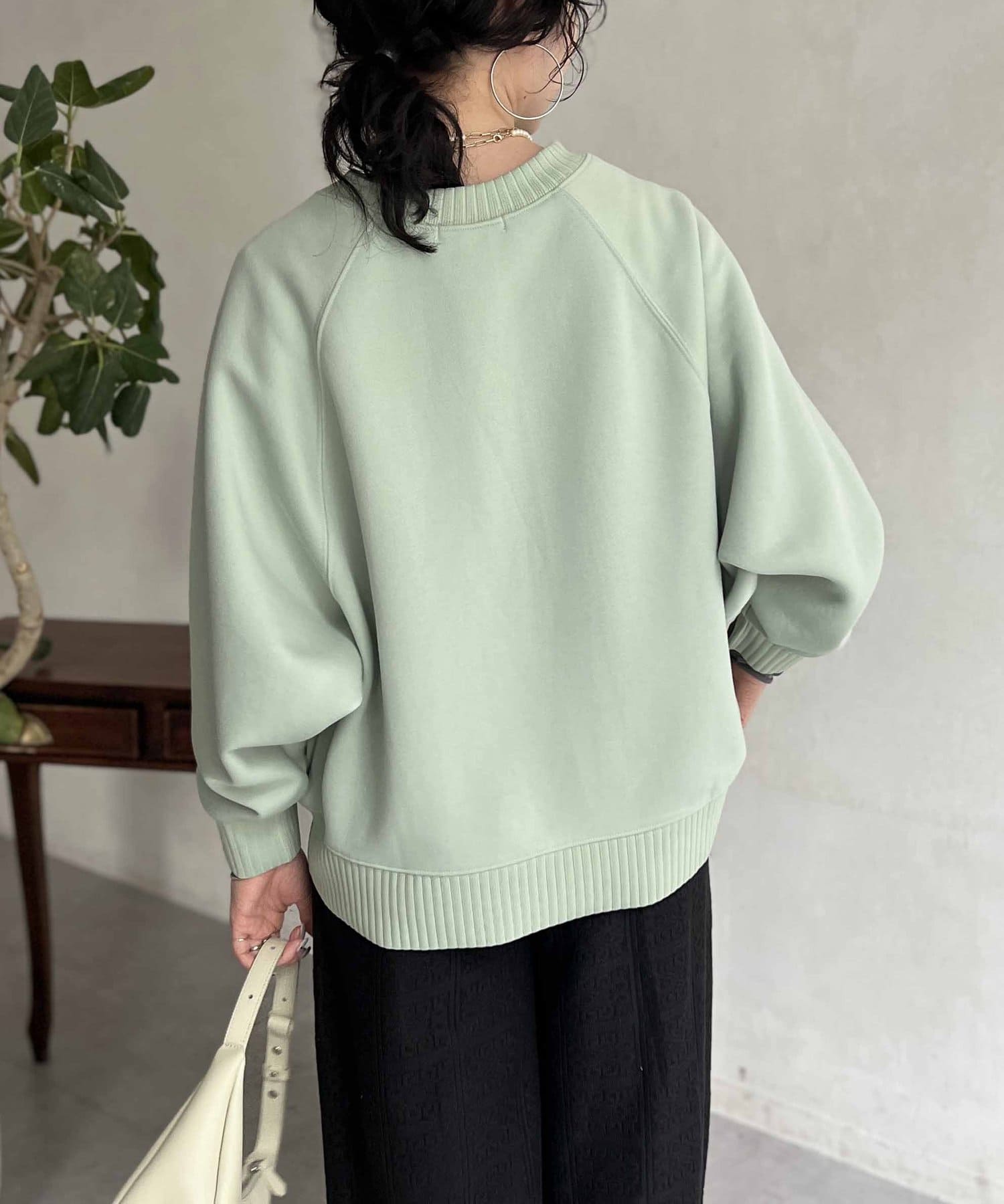 肩の落ちたゆったりサイズですが、手首回りがリブ仕様になっているのでメリハリのあるシルエットに。