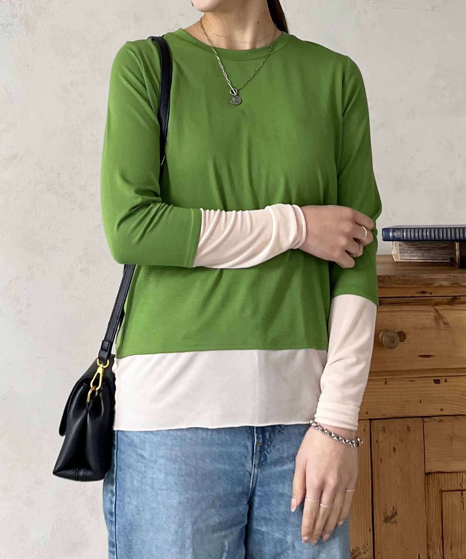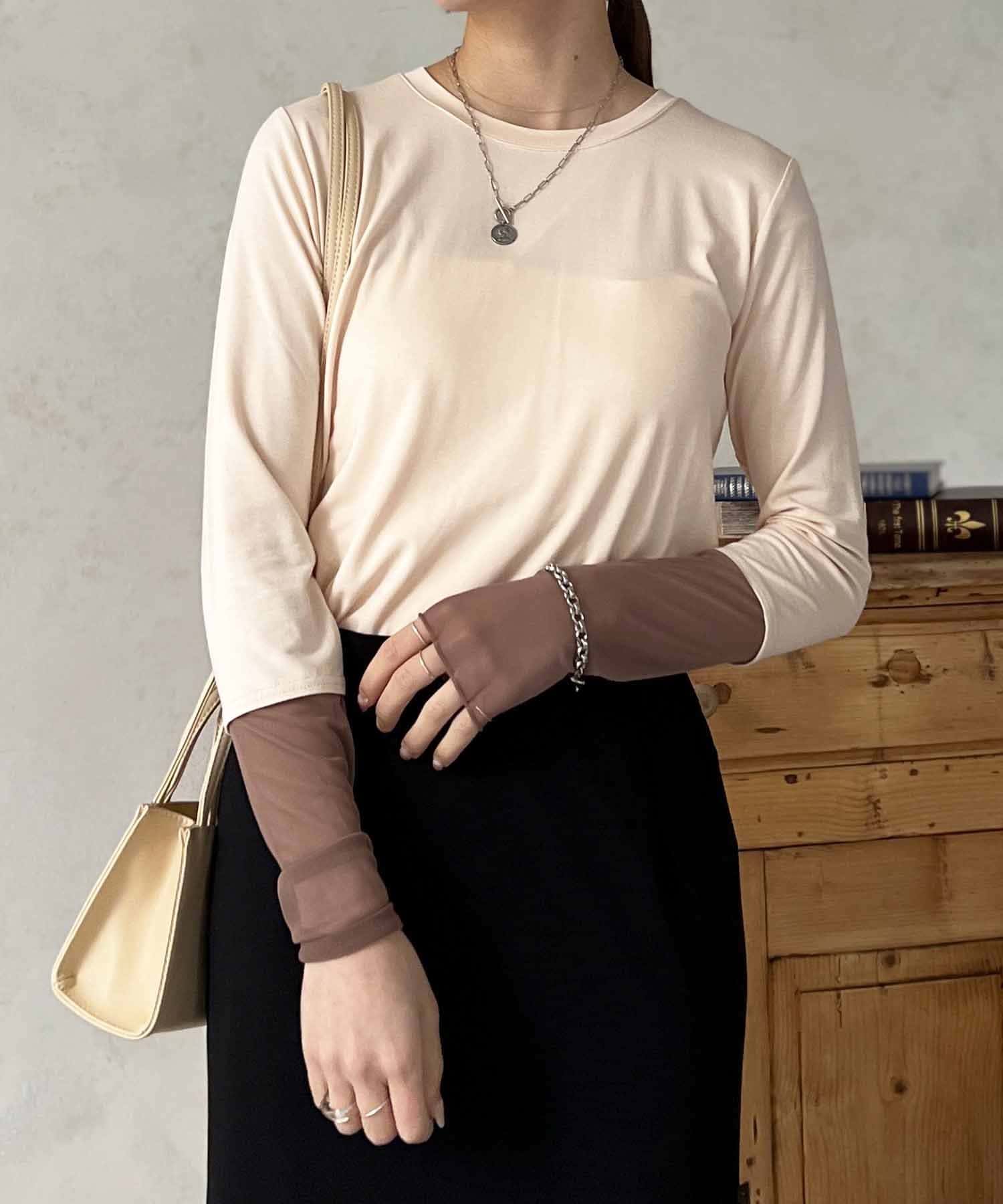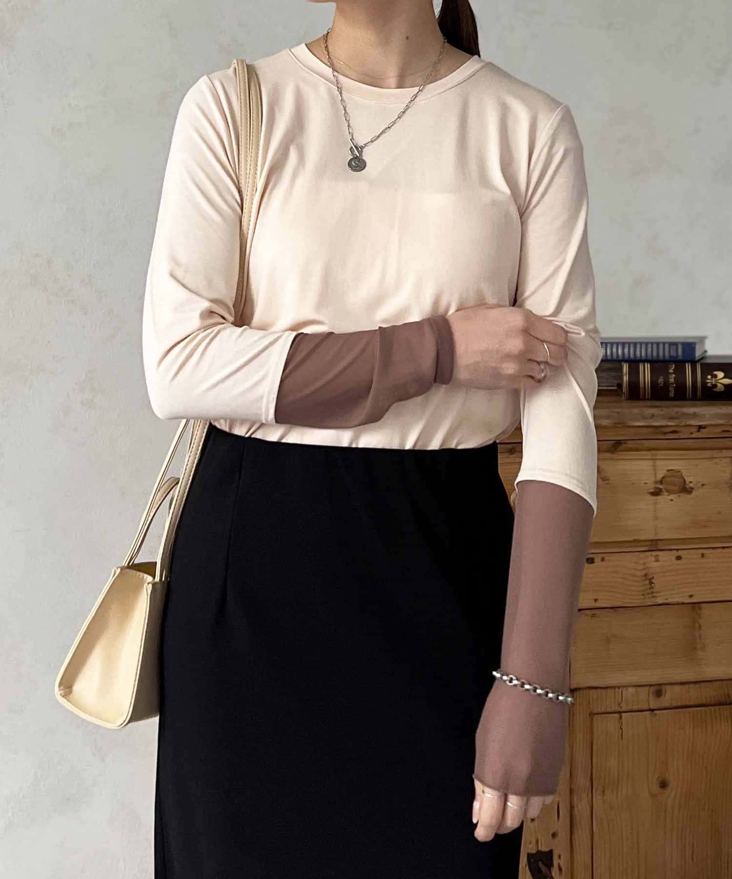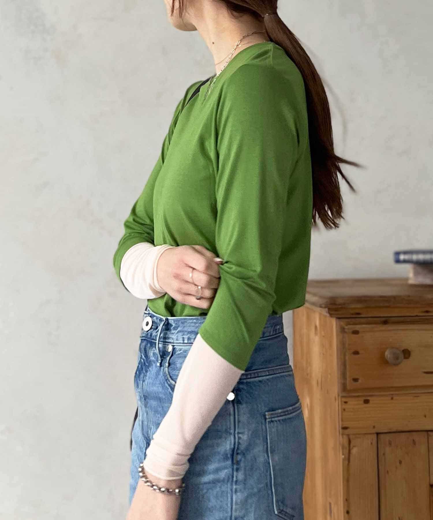 1枚はもちろん、インナー使いをで袖先からチラッとチュールを見せると簡単に今年らしいコーデが完成します。