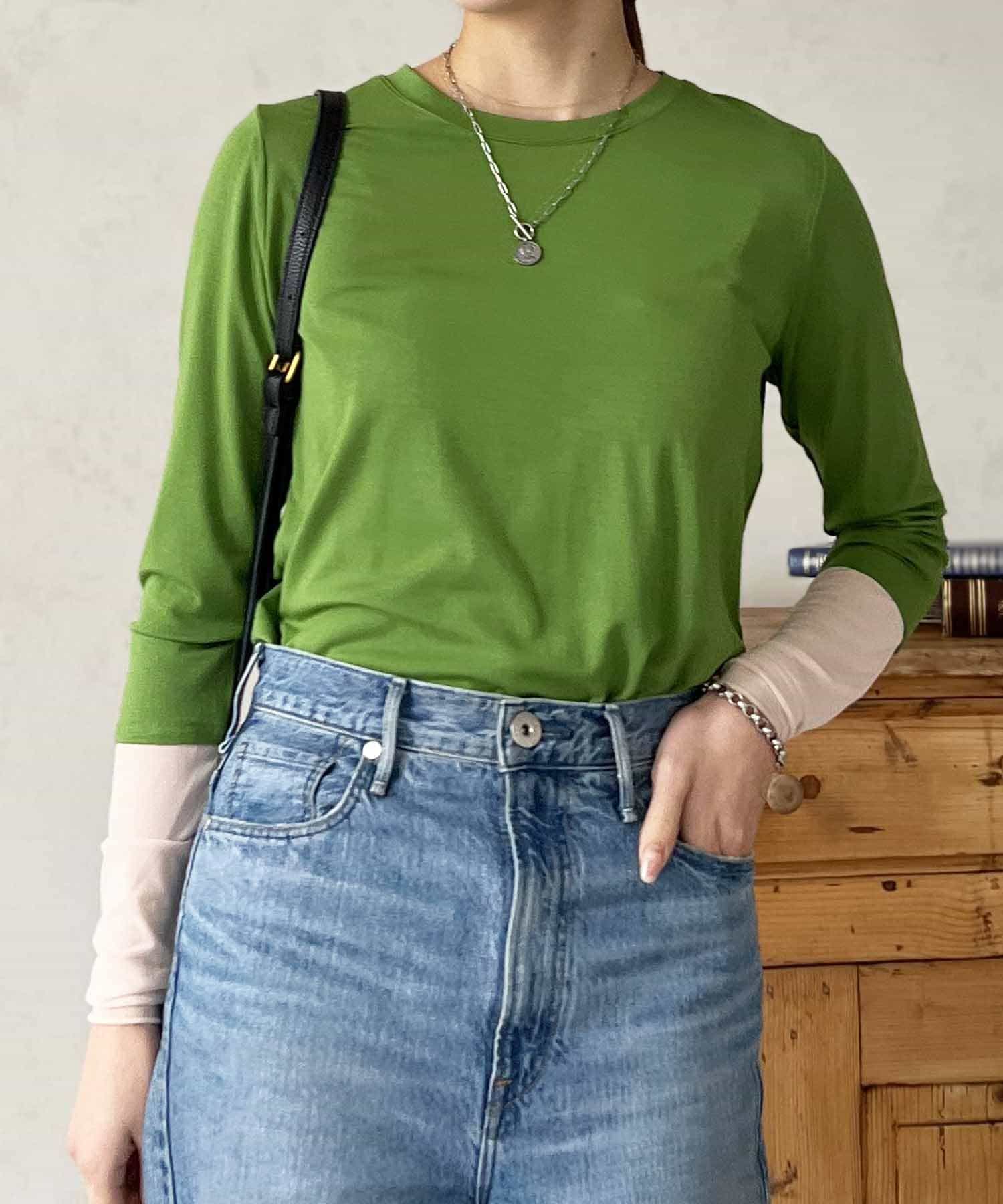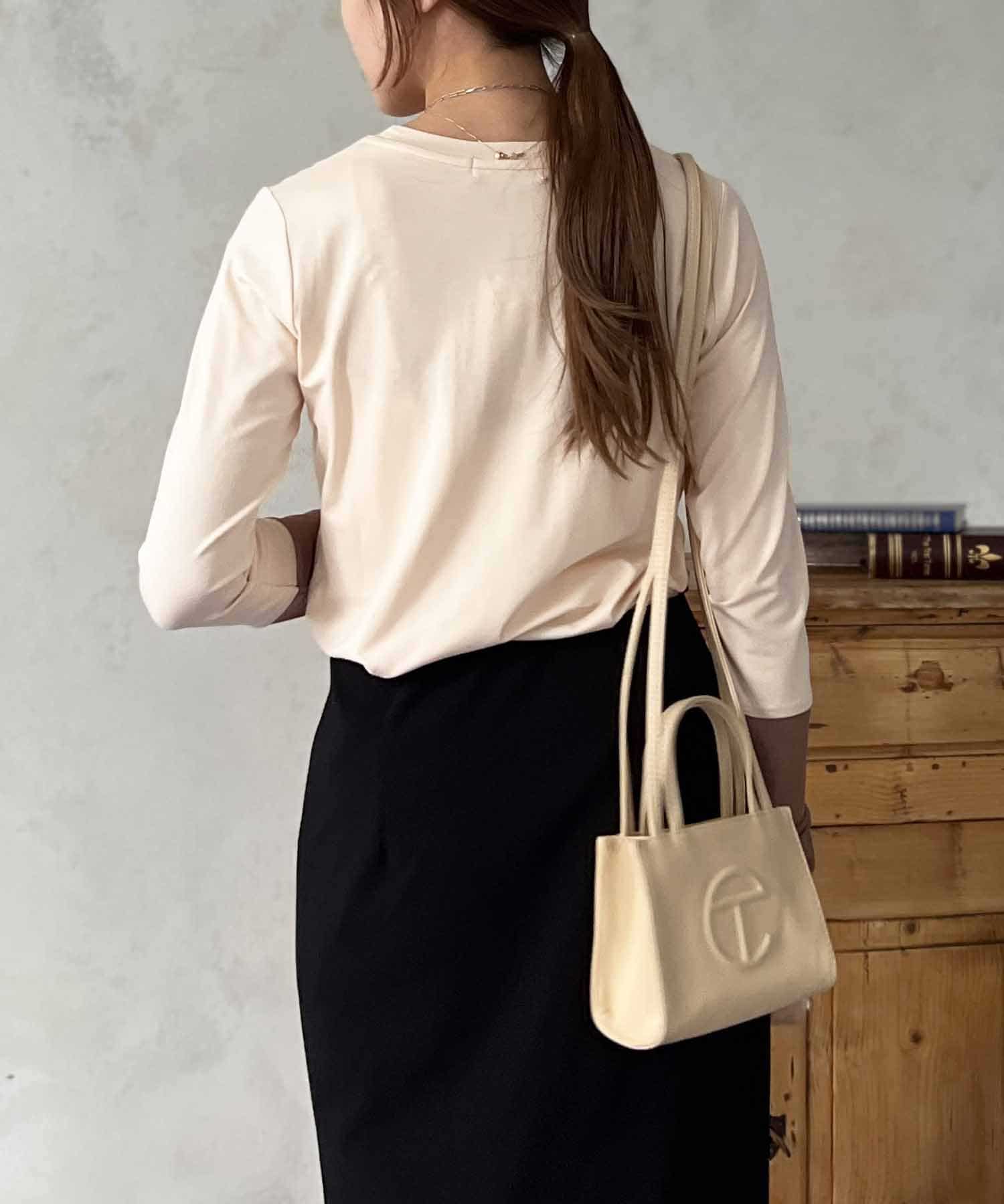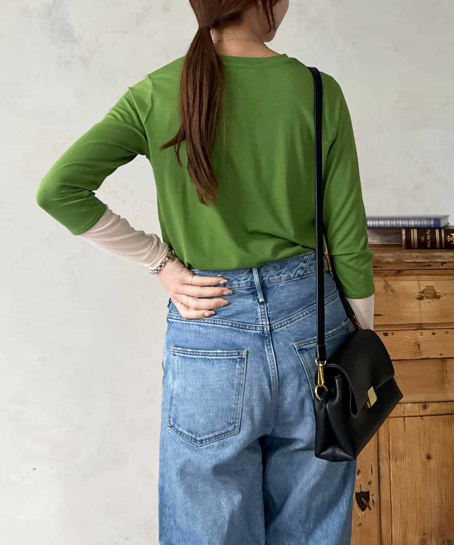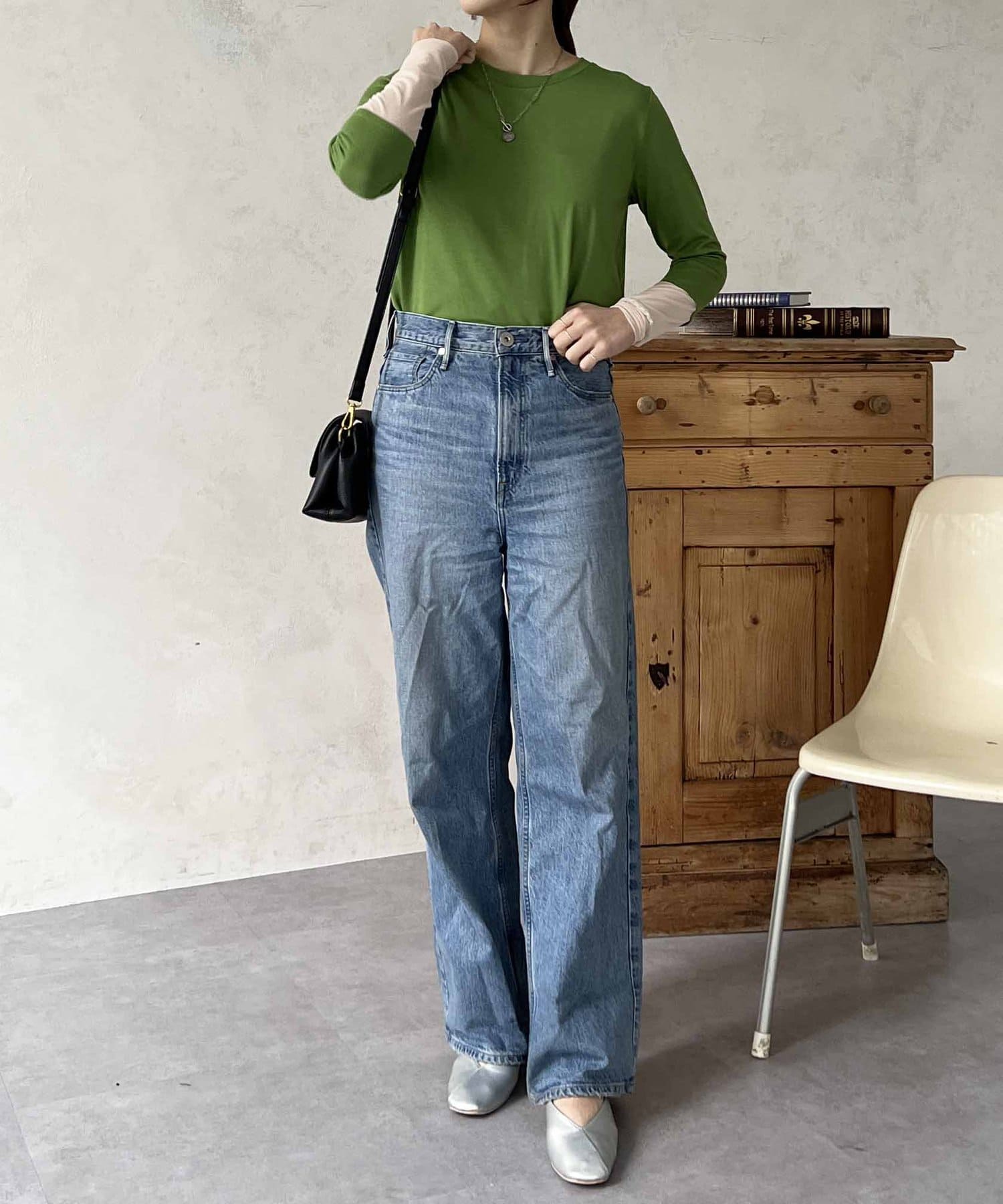 ぴったりし過ぎず適度なゆるさのあるシルエットが心地よく着られるポイント。