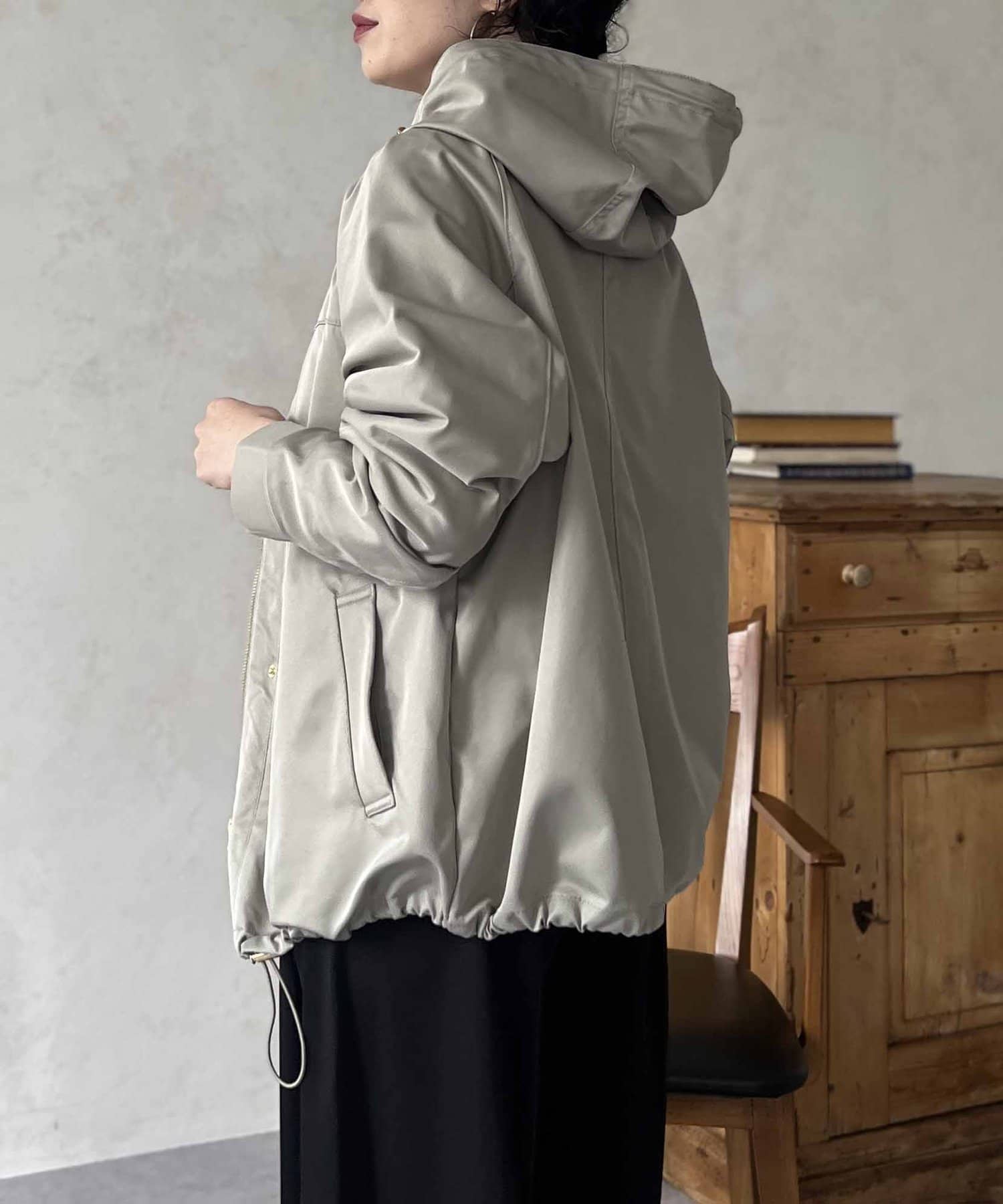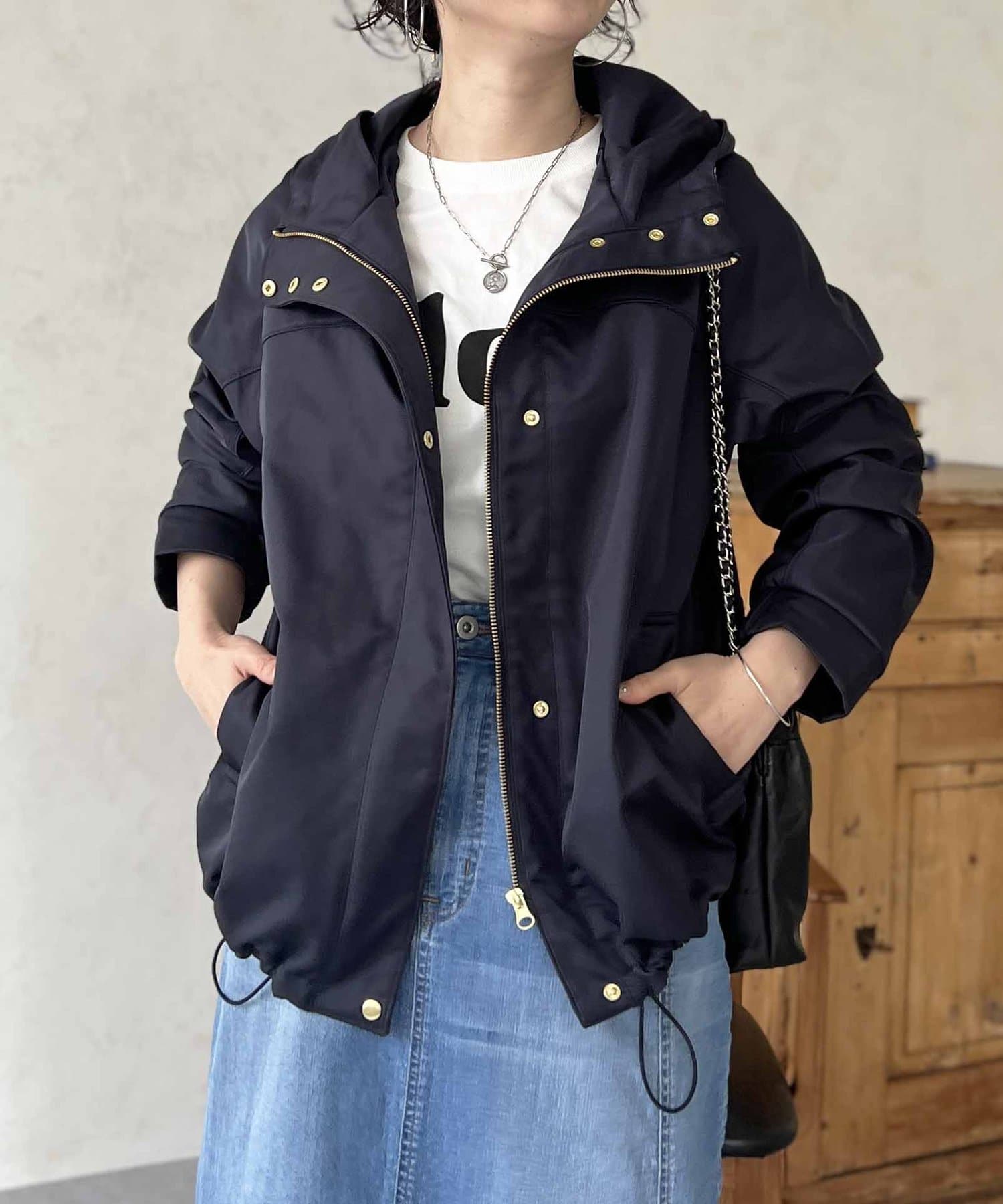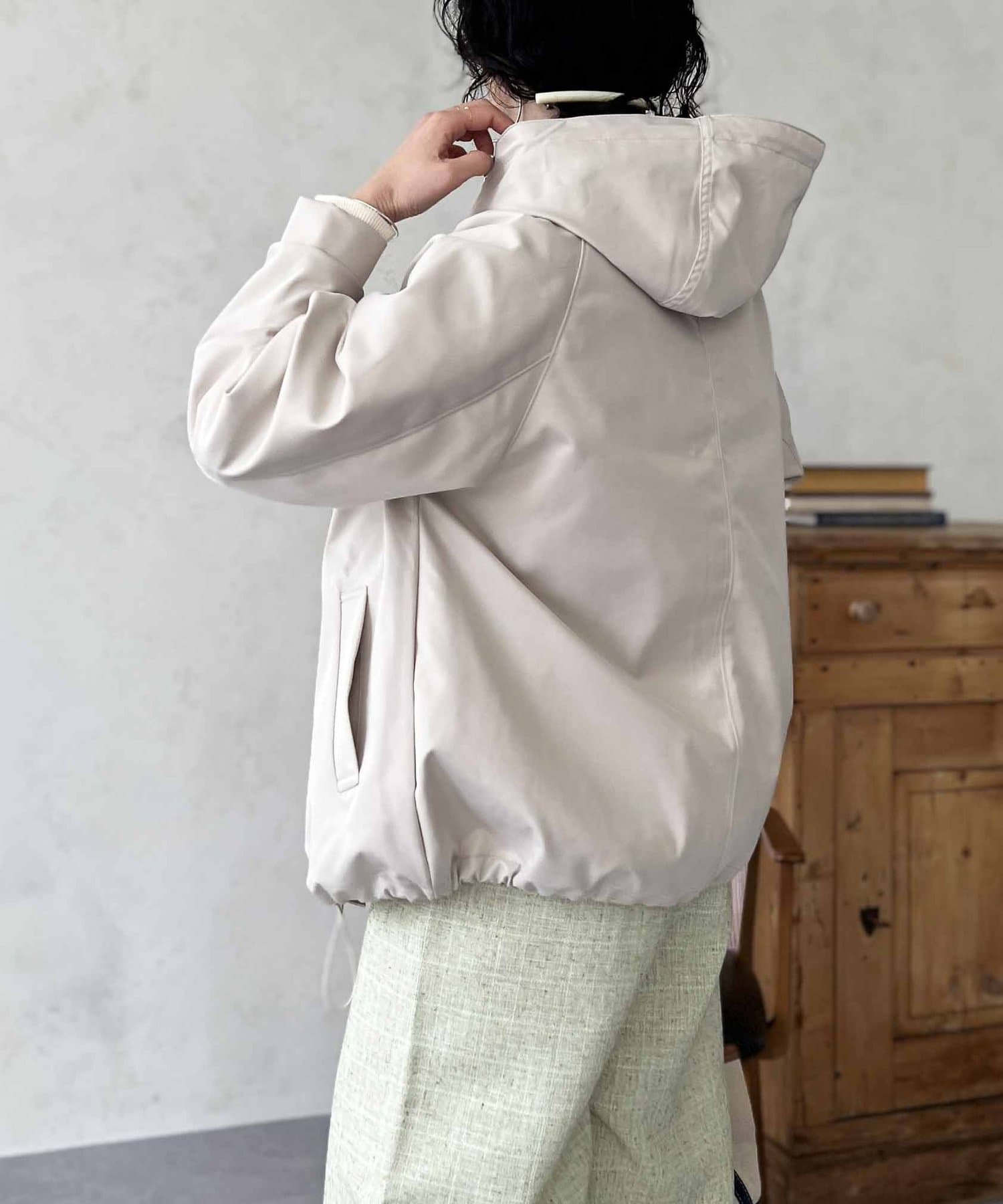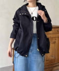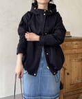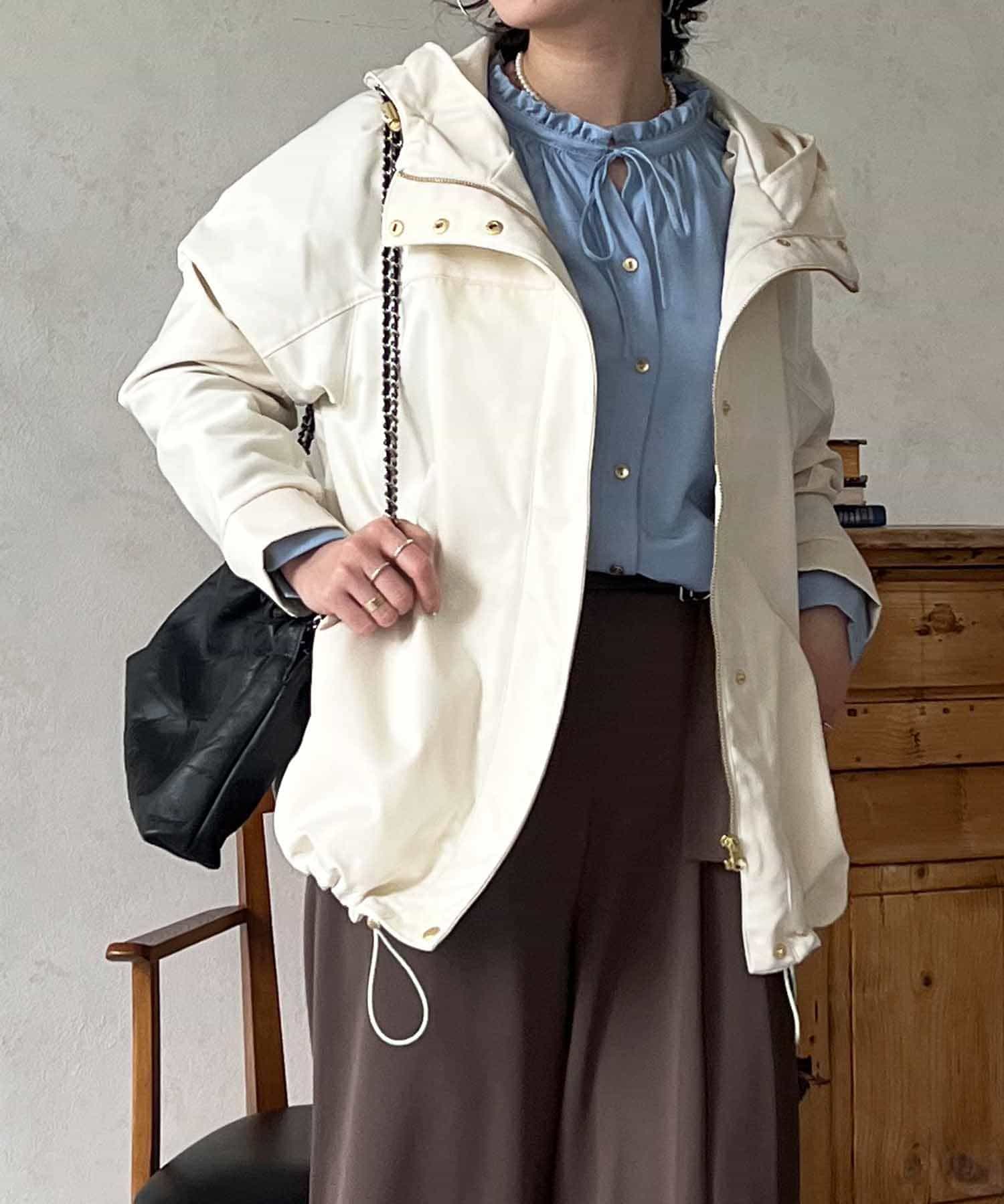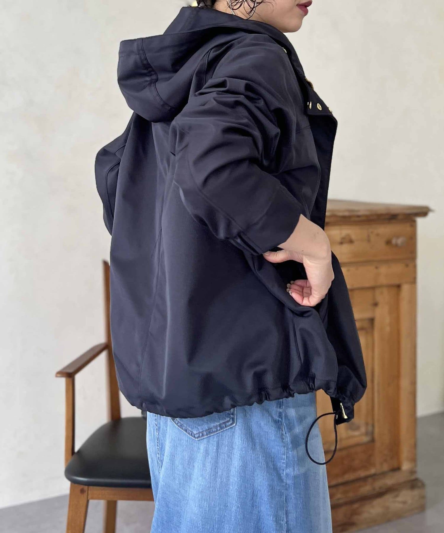 ゆったりとしたサイズ感に裾のドロストでシルエットに変化を付けられるデザイン入り。