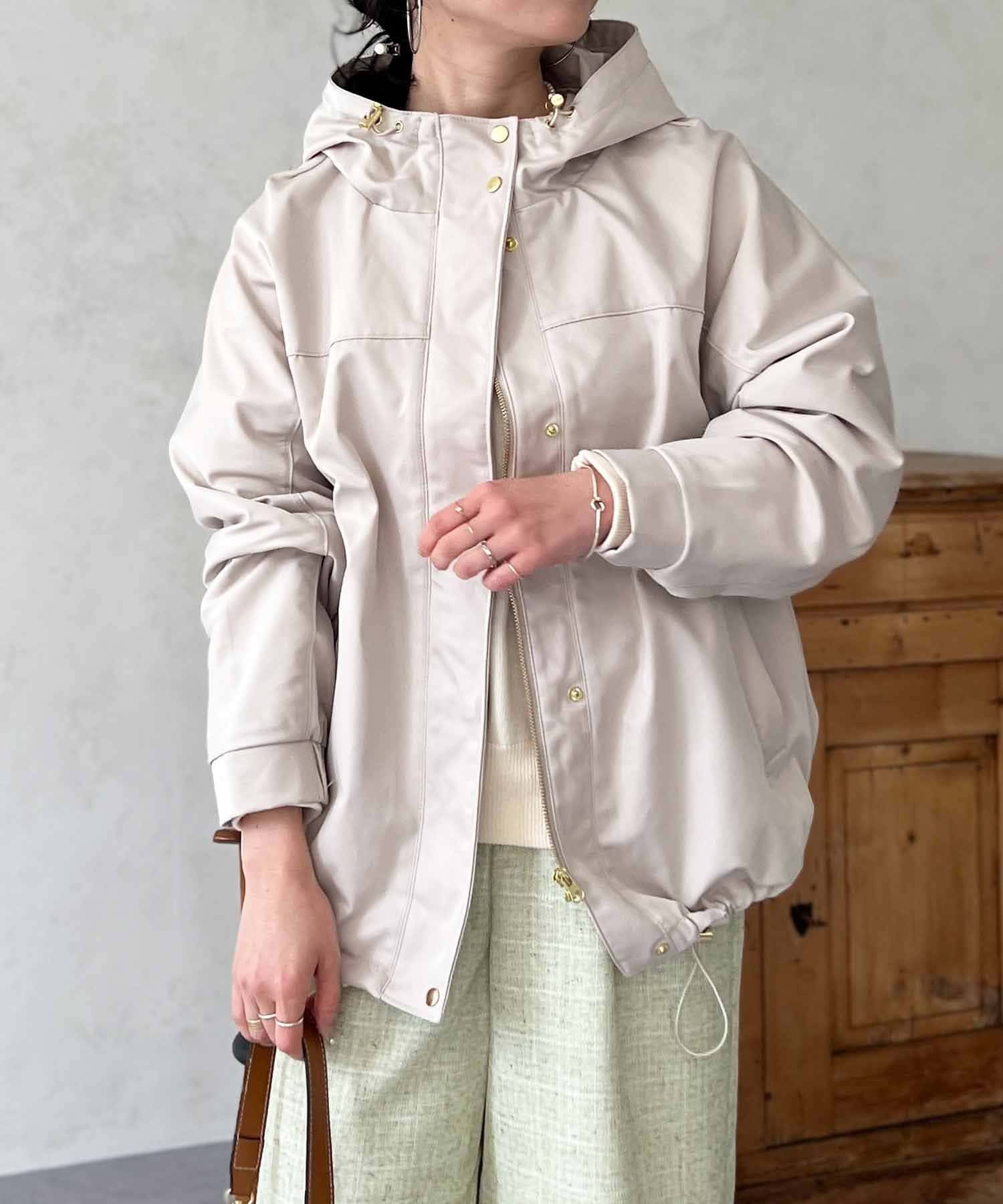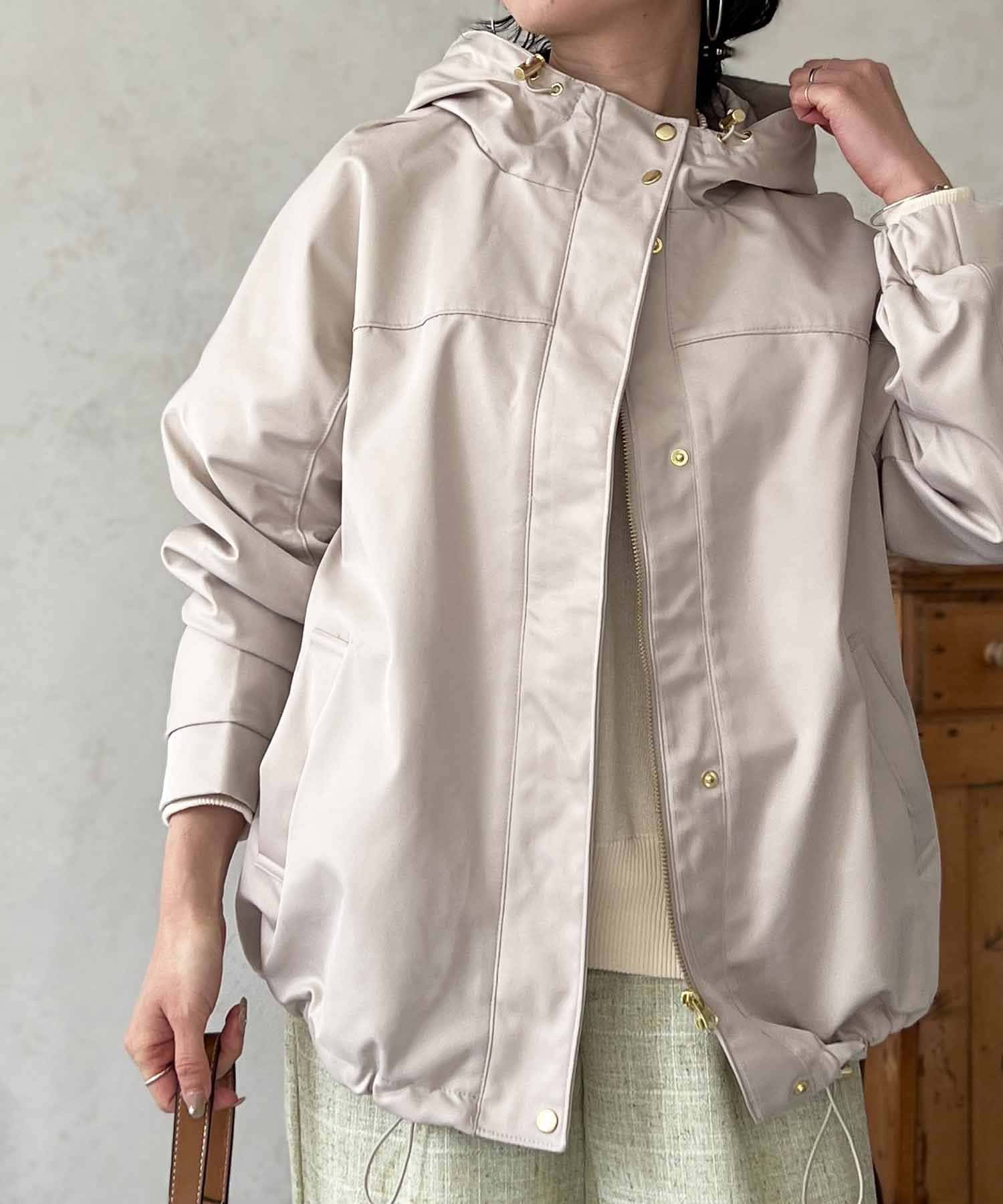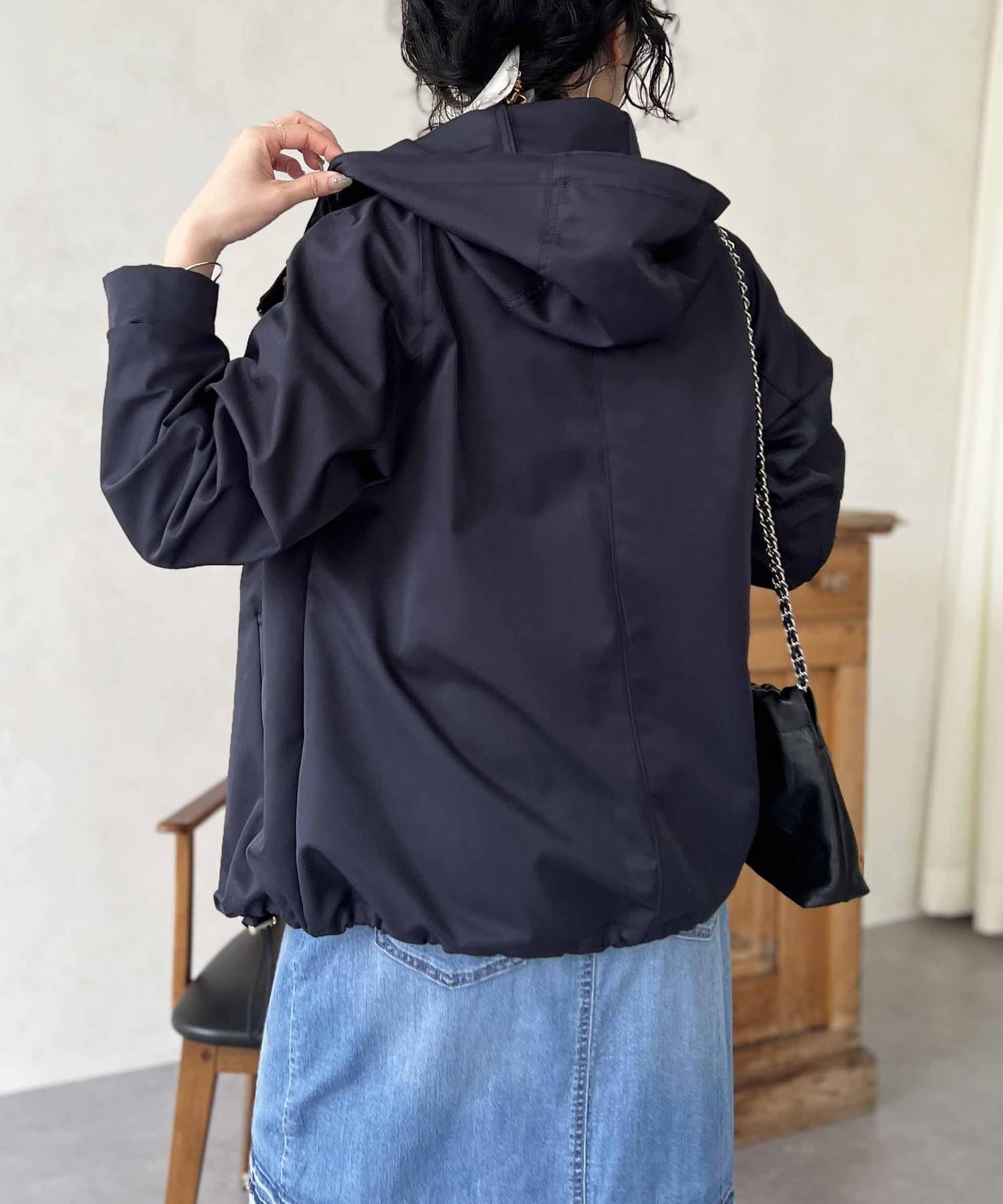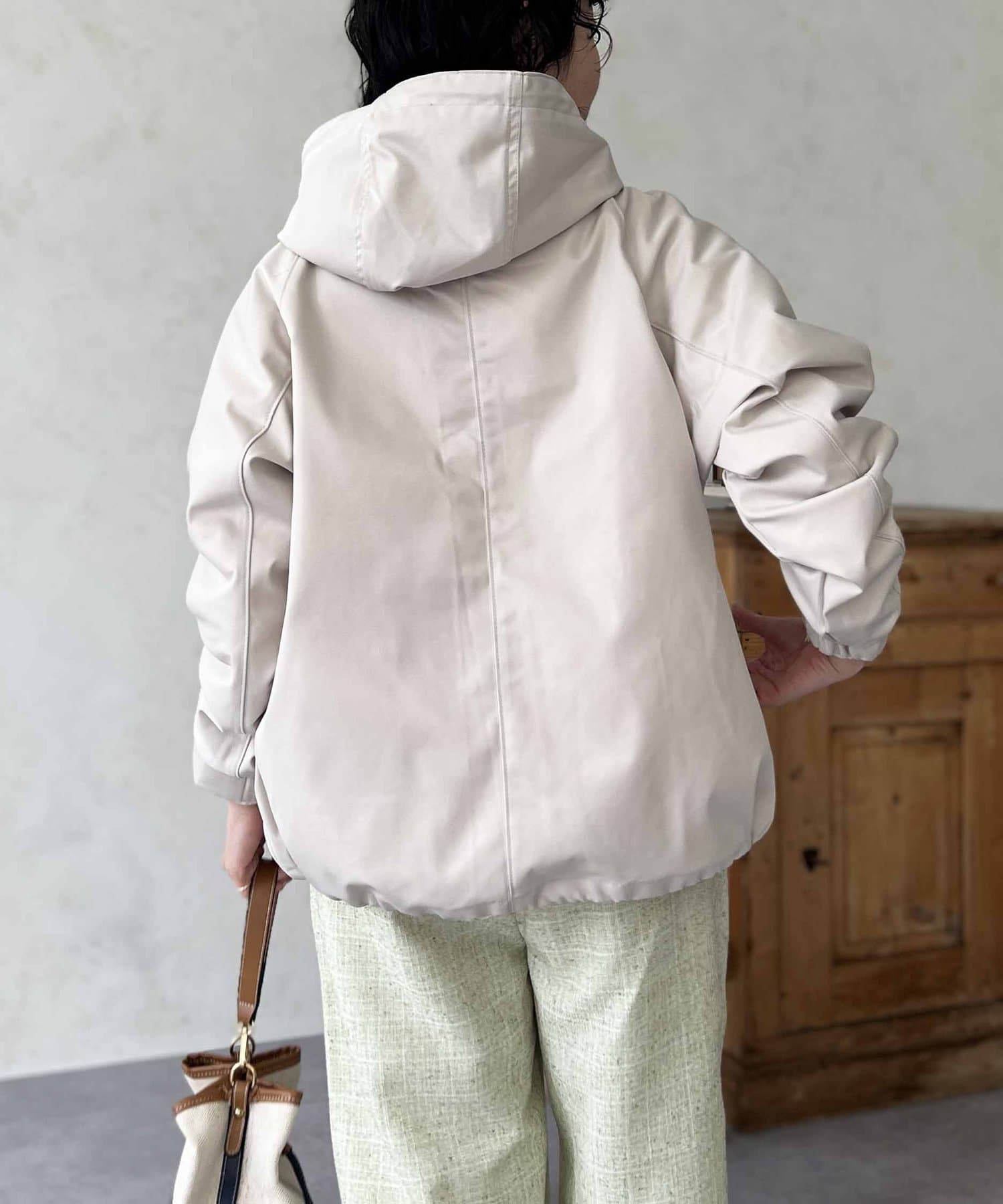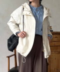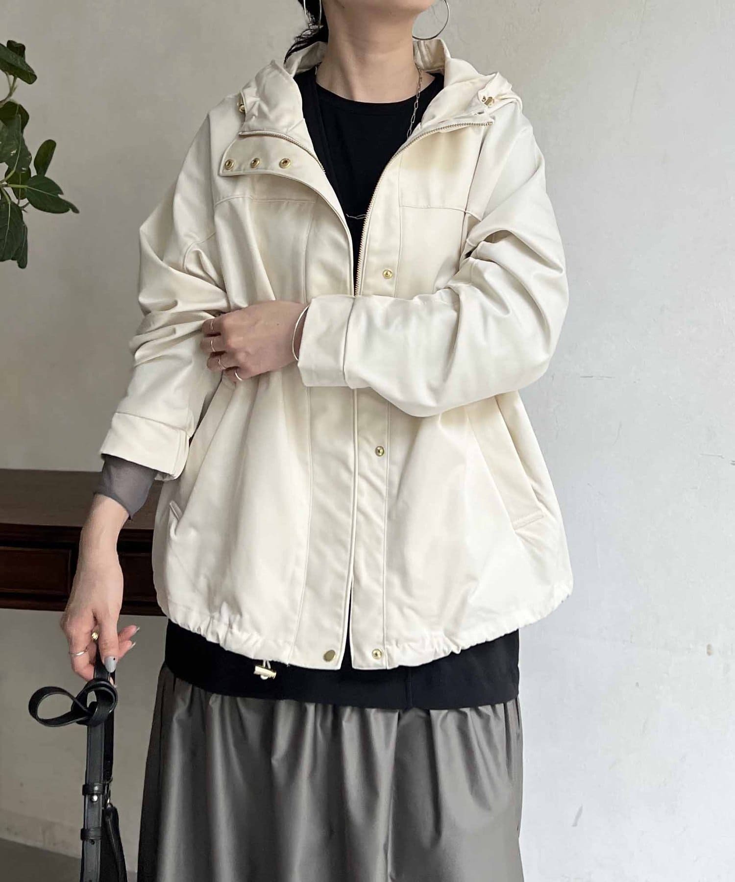 ゆったりとしたサイズ感に裾のドロストでシルエットに変化を付けられるデザイン入り。