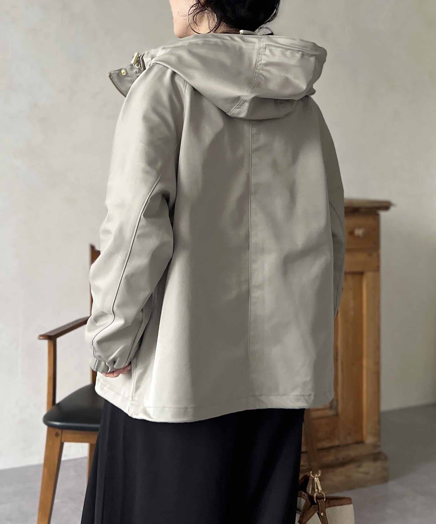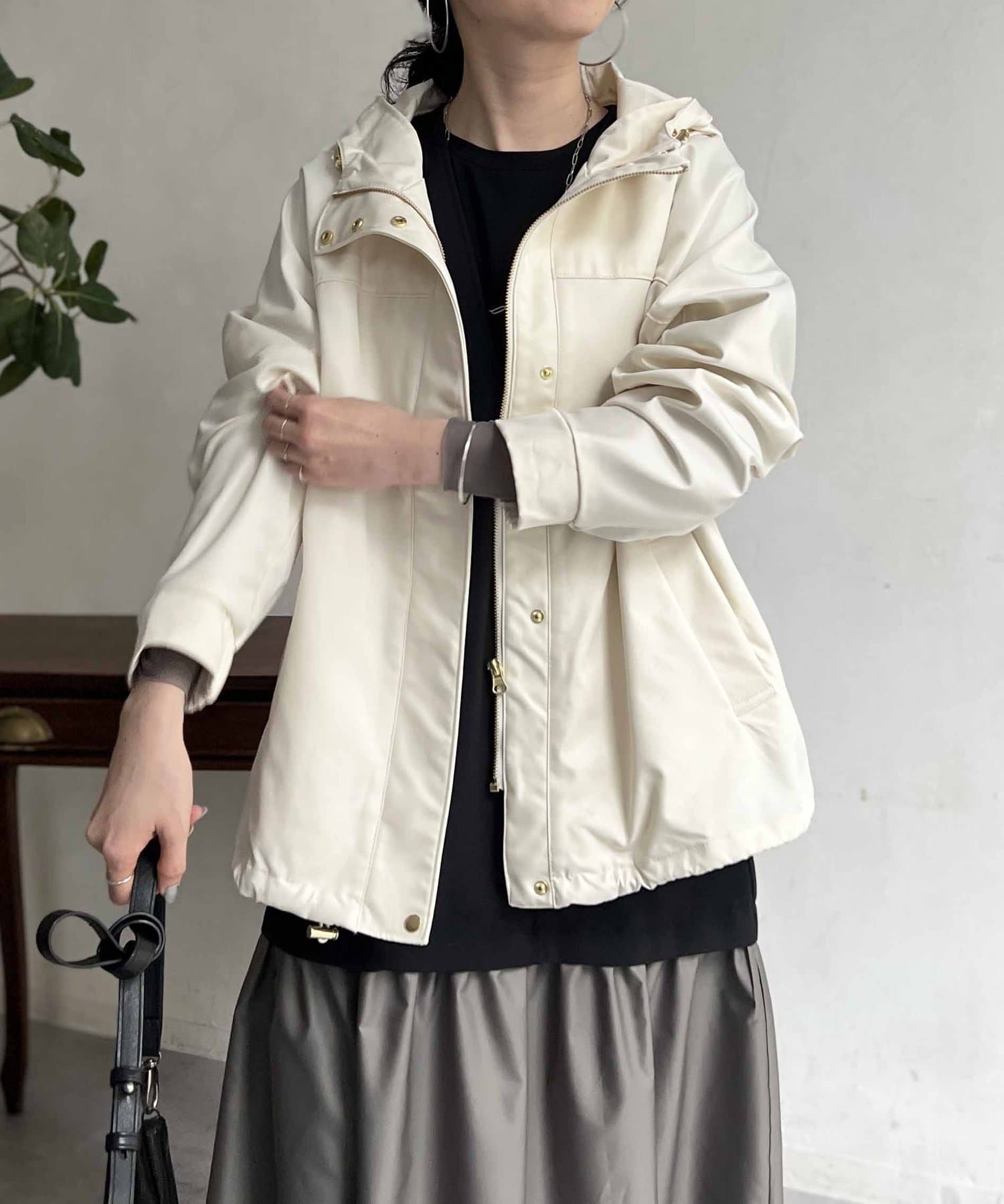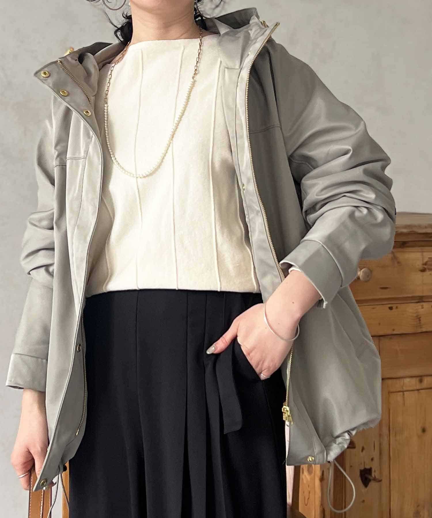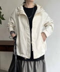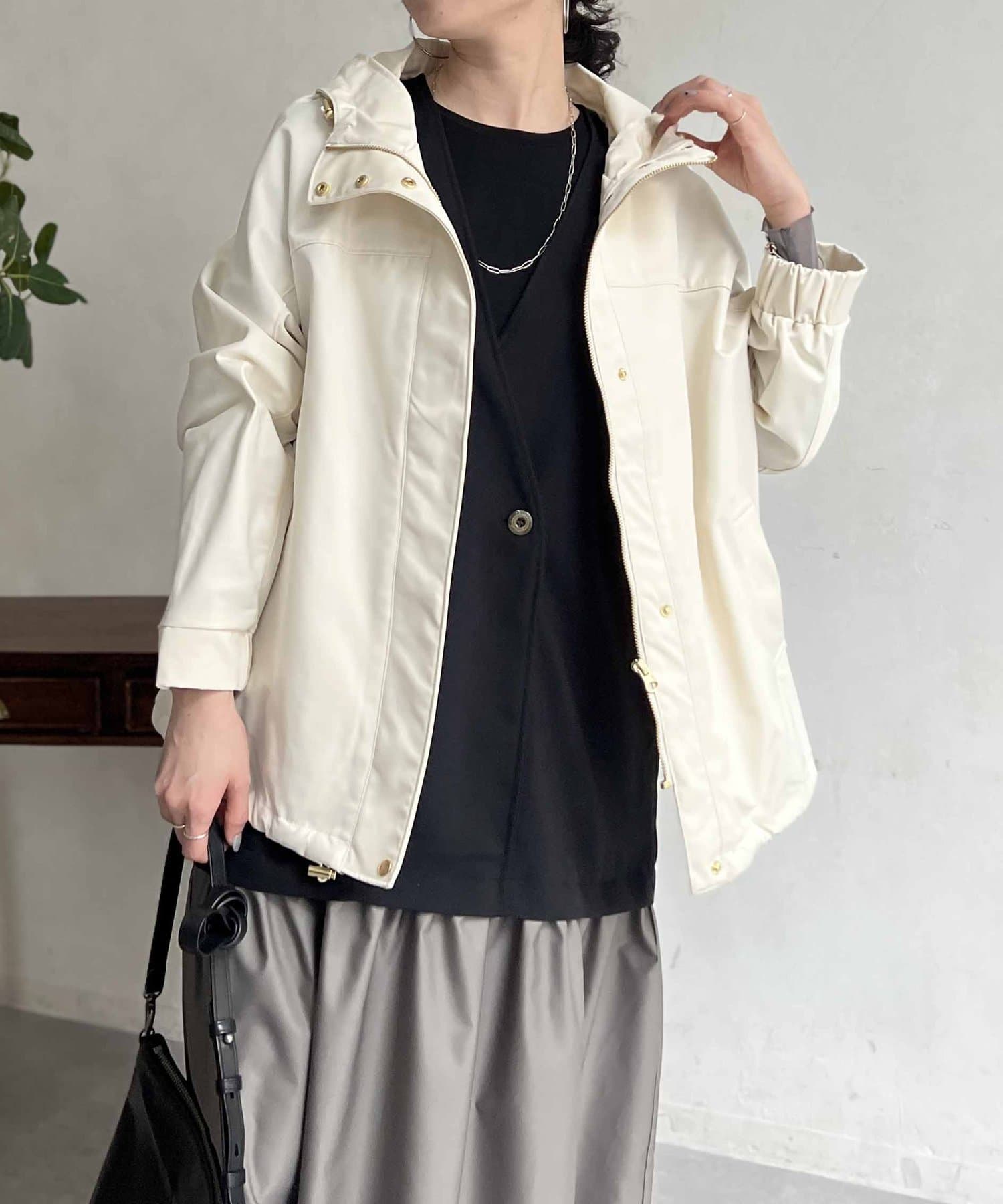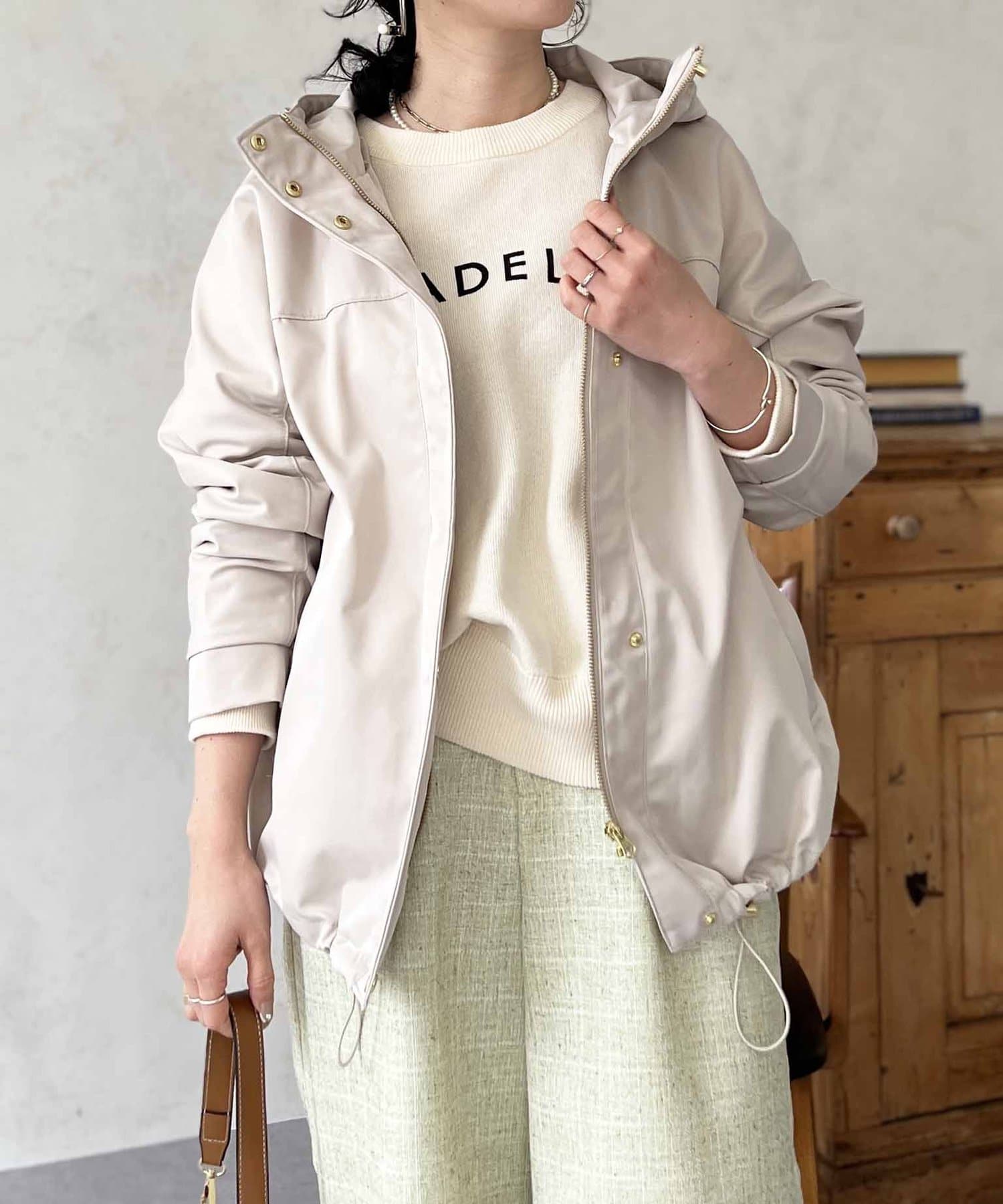 ゆったりとしたサイズ感に裾のドロストでシルエットに変化を付けられるデザイン入り。