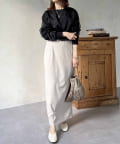 伸縮性はないですが、柔らかい素材感で着心地が良くどんなトップスとも合わせやすいのが嬉しい!