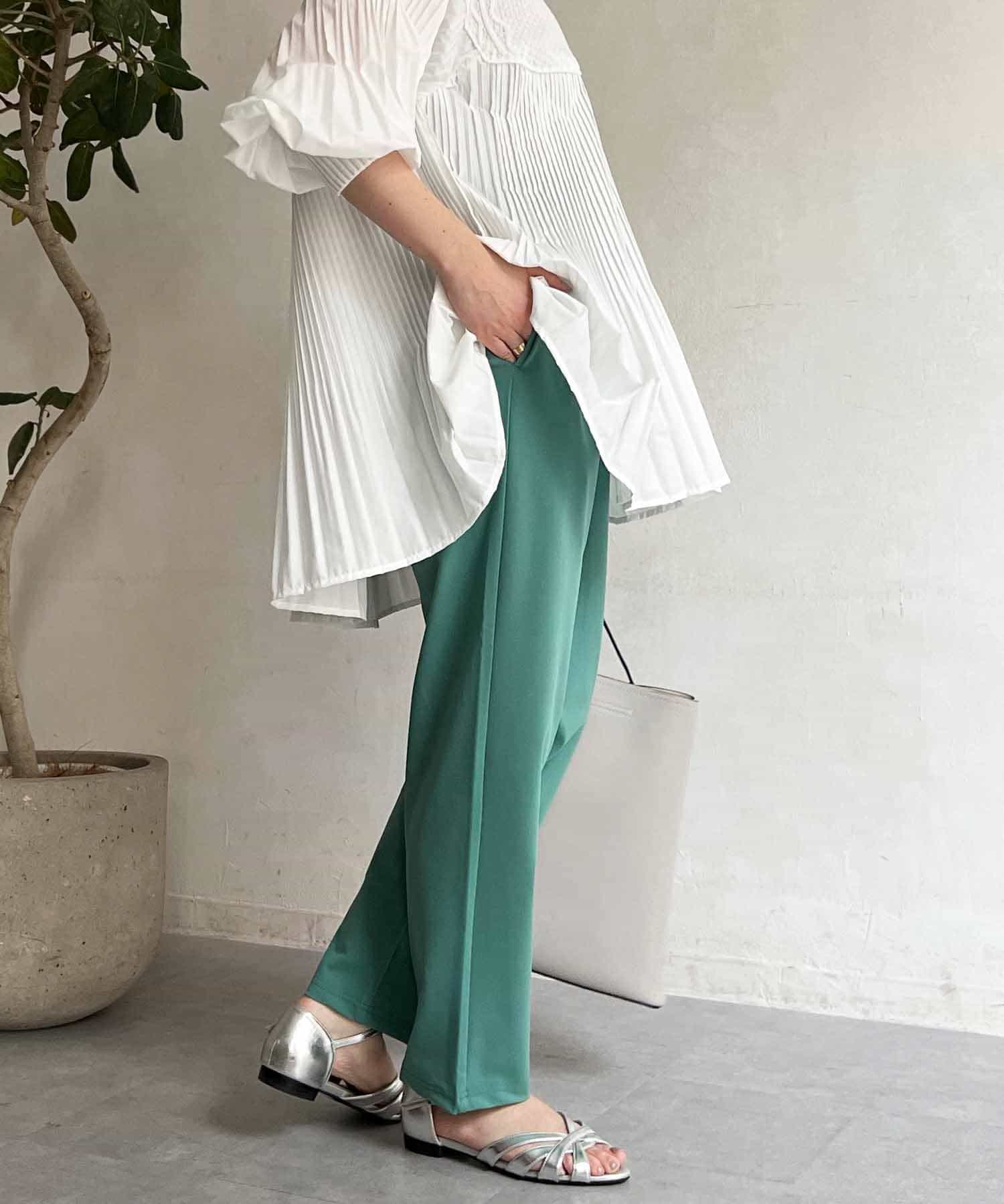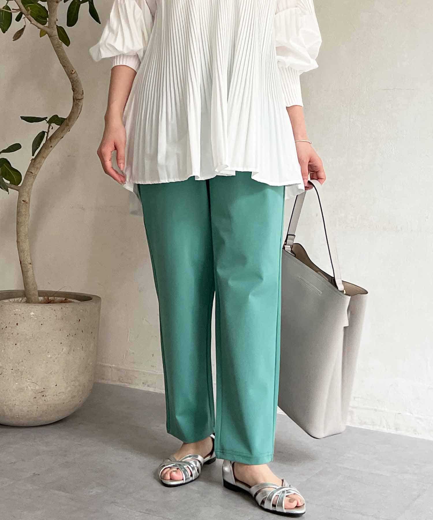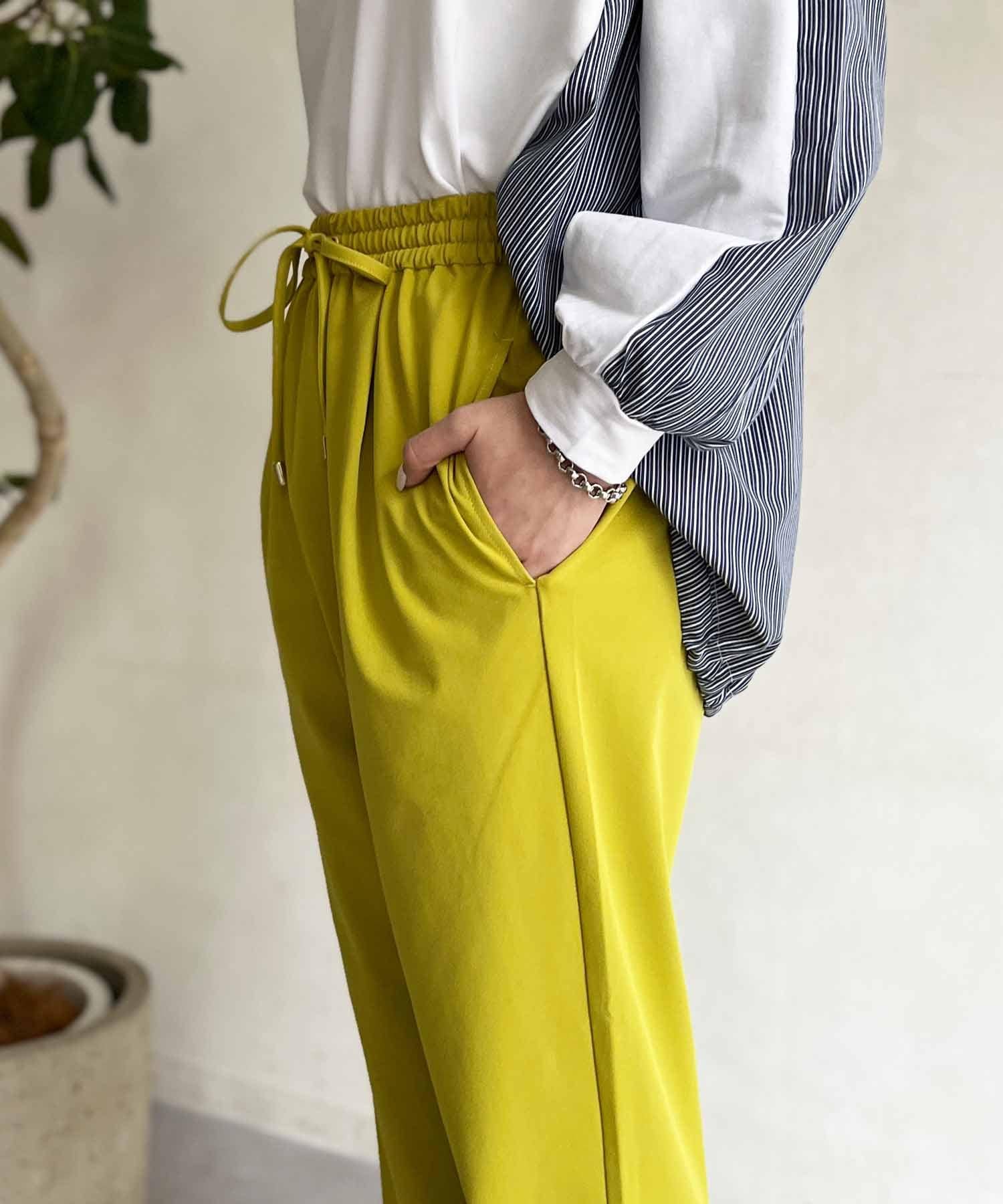 テロンとした軽い素材感が履き心地ばっちり◎ウエストゴムでストレスフリーな履き心地が嬉しいポイント!