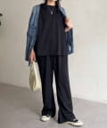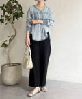 テーパードパンツや細身シルエットのパンツも好バランスです。