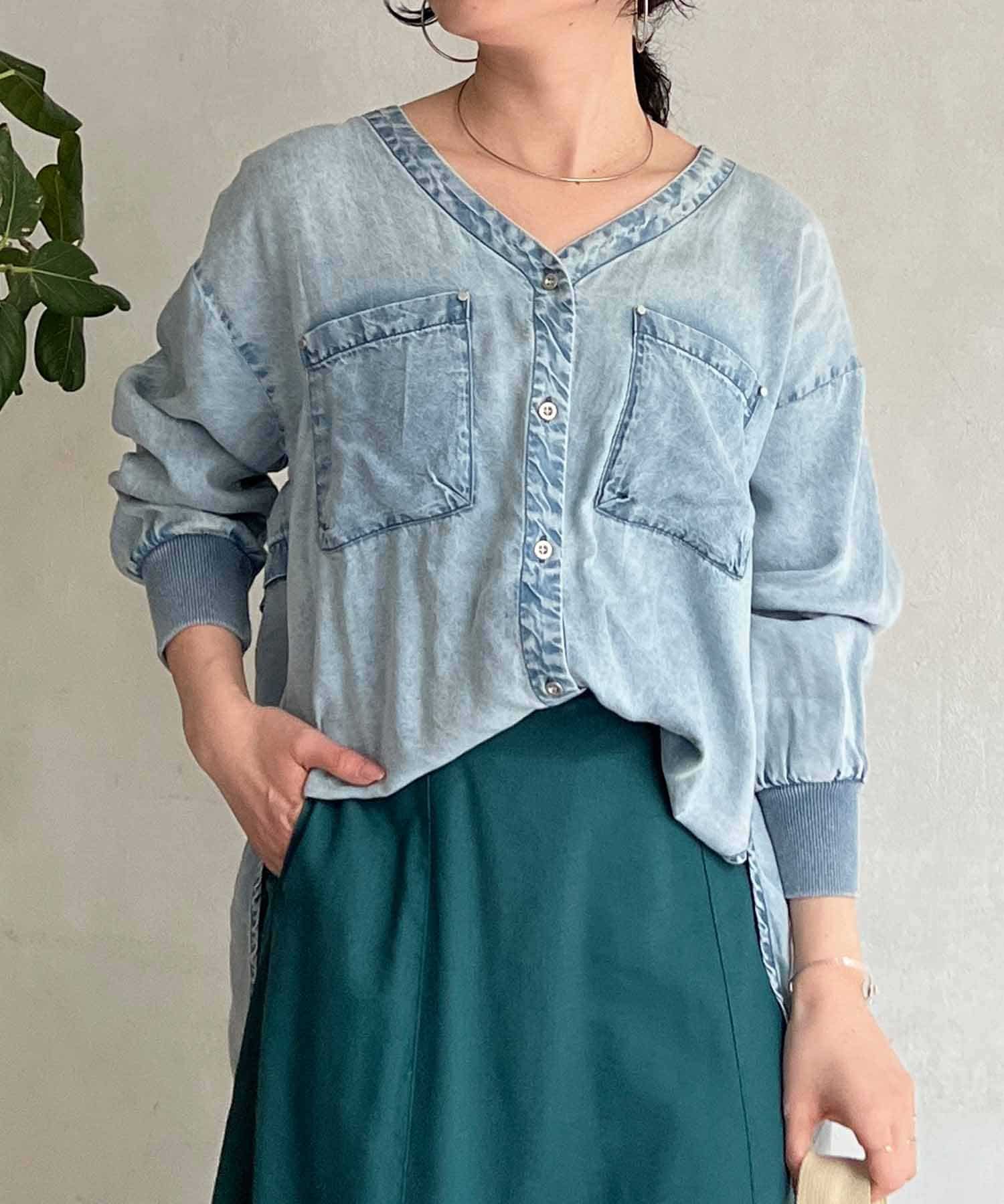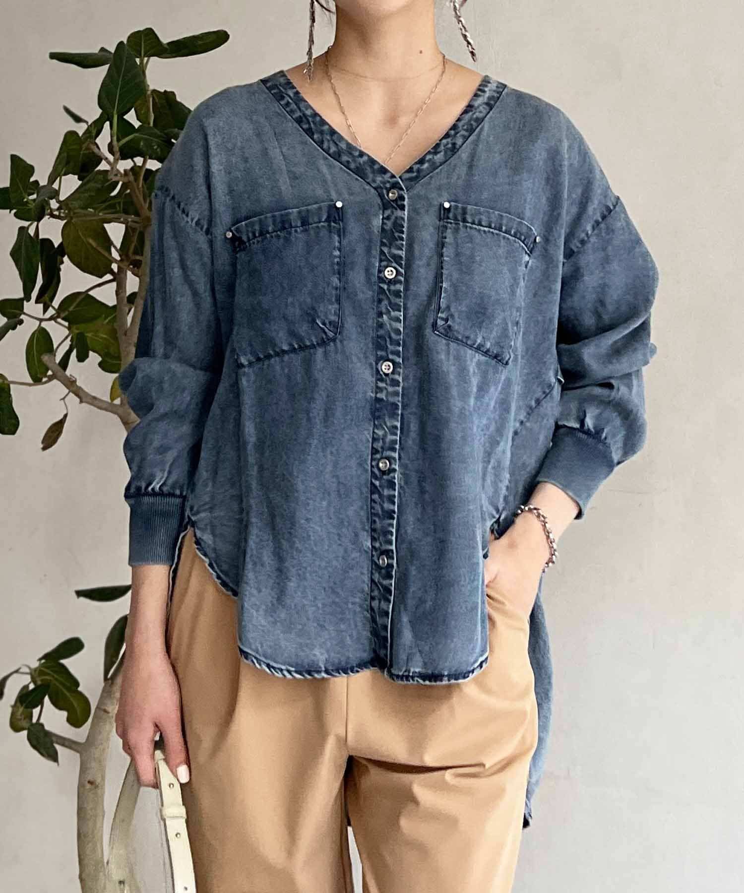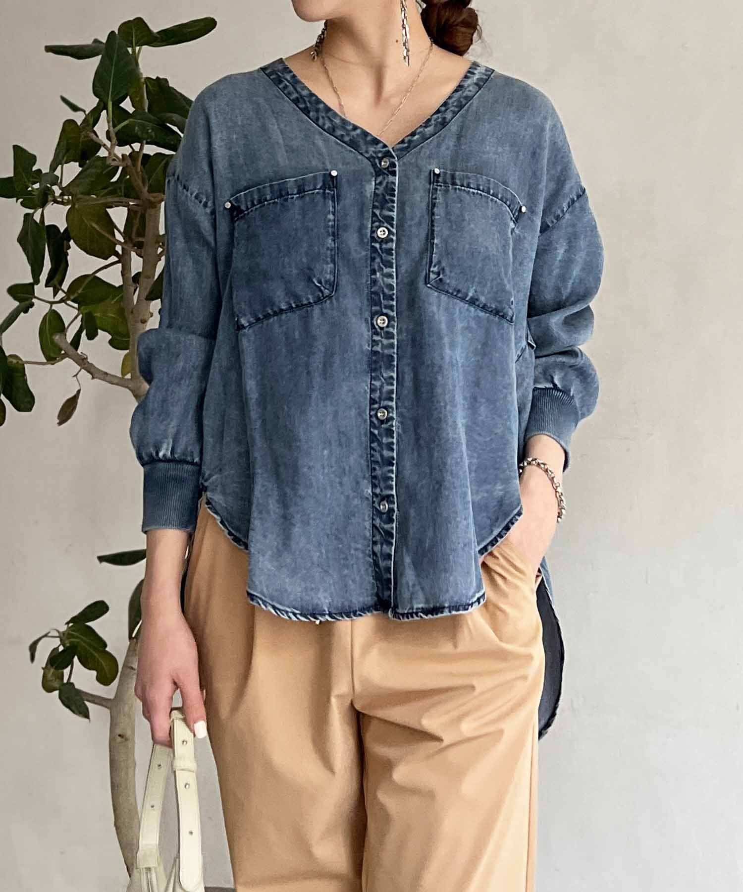 デザイン性たっぷりのデニムブラウス