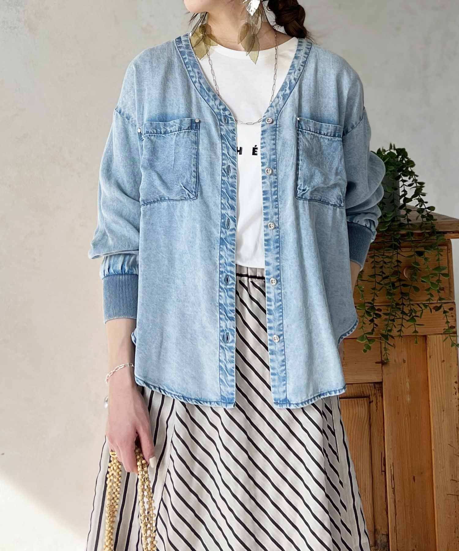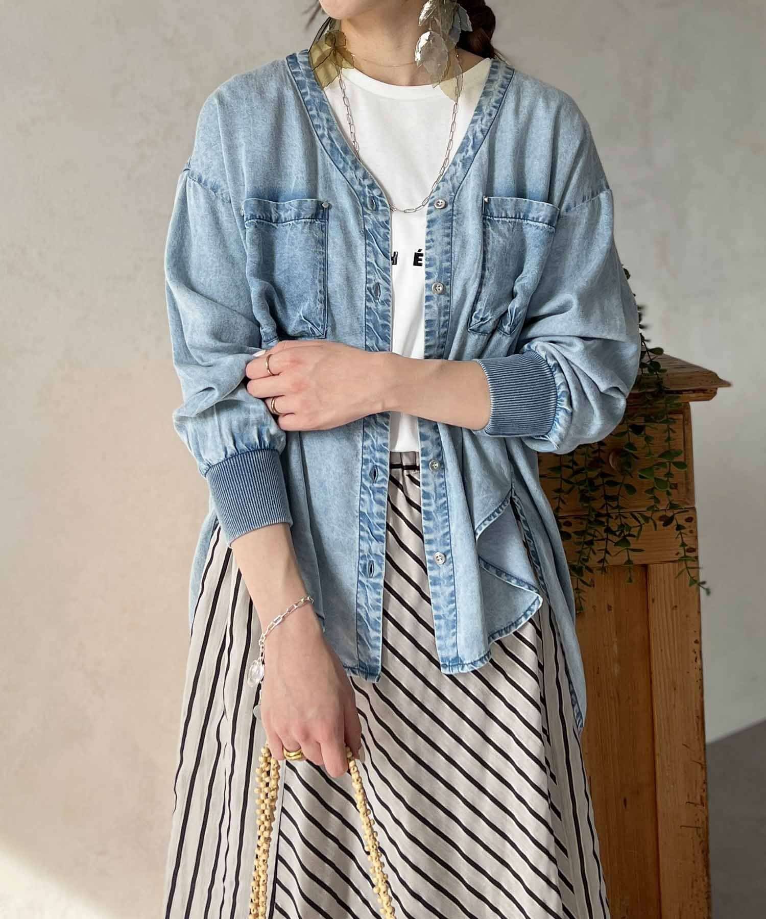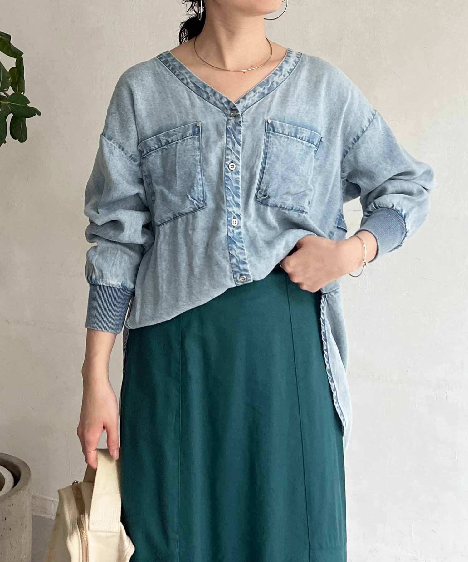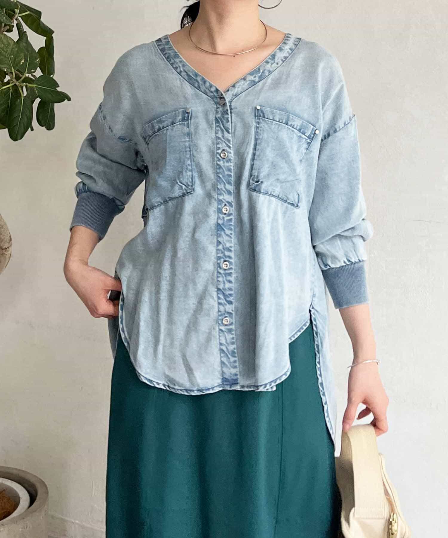 デザイン性たっぷりのデニムブラウス