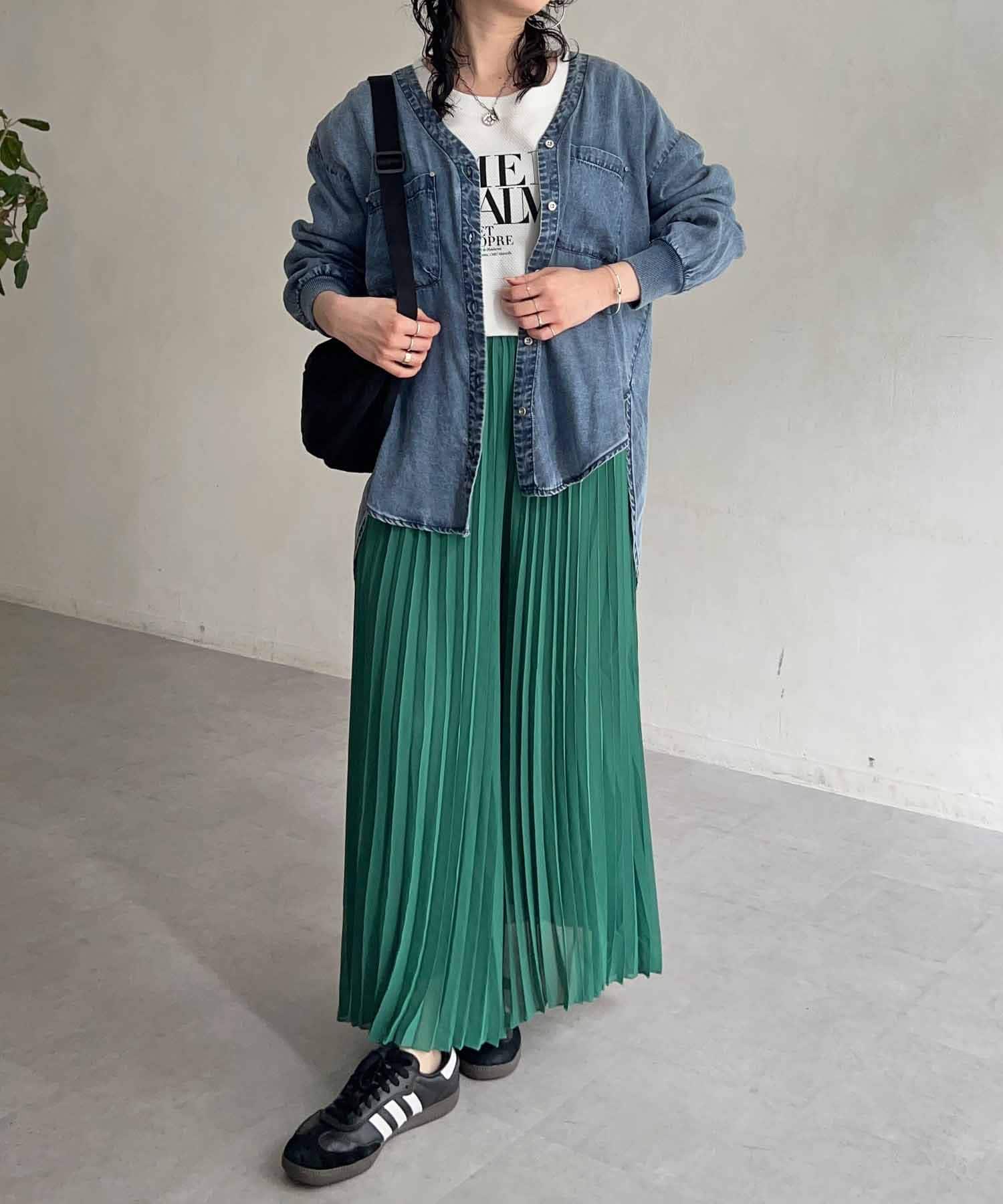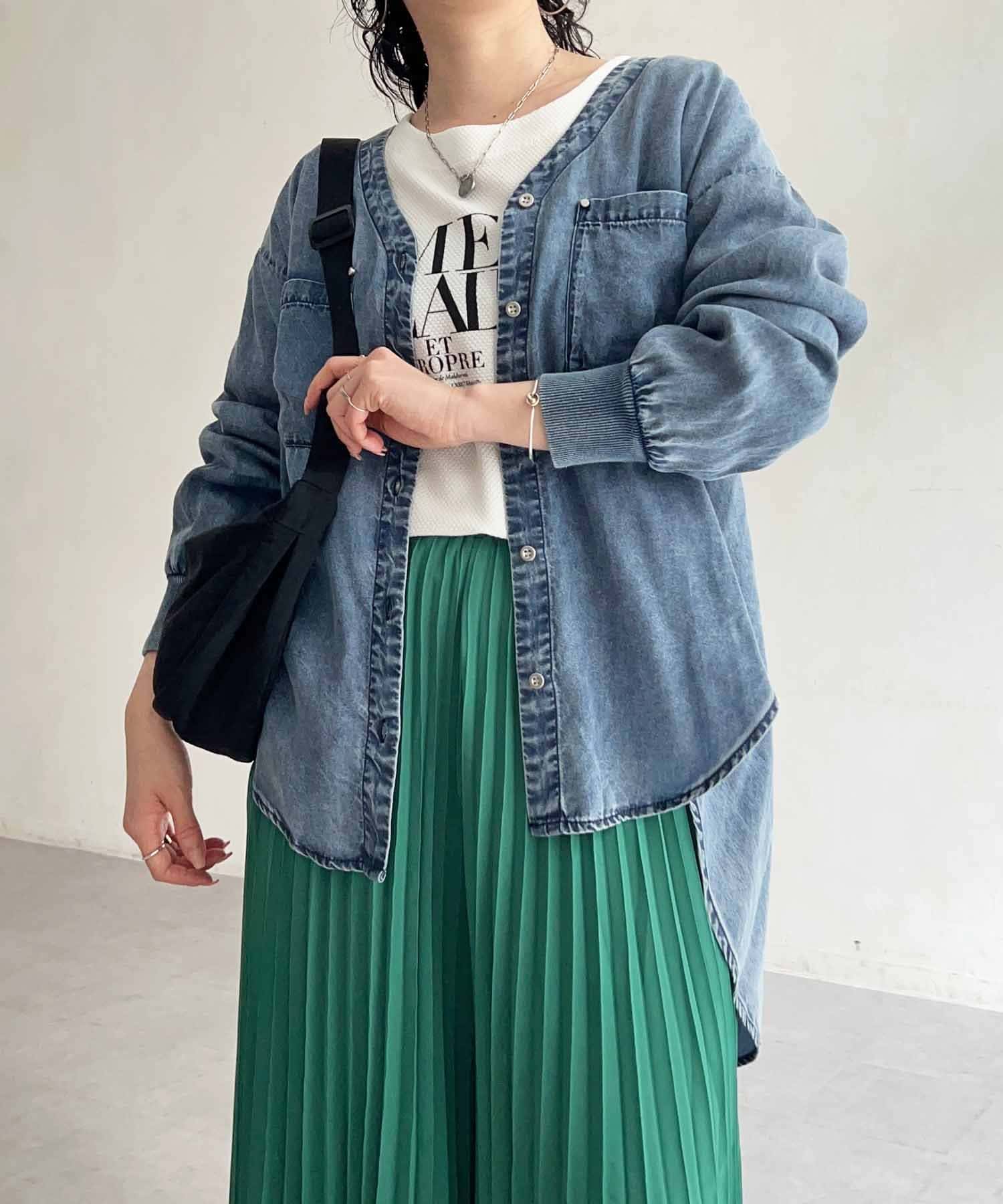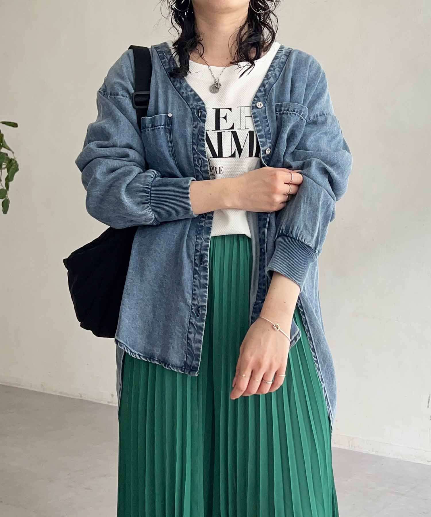 首元が深めに開いているので、インナーにカットソーやシアーインナーをレイヤードするのもおすすめ!
