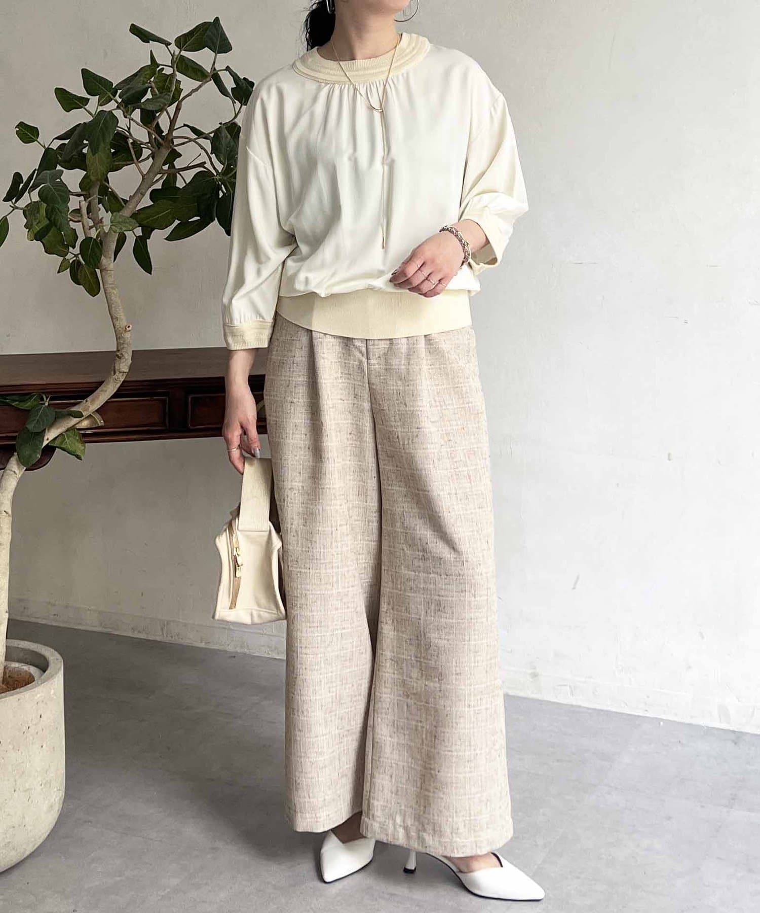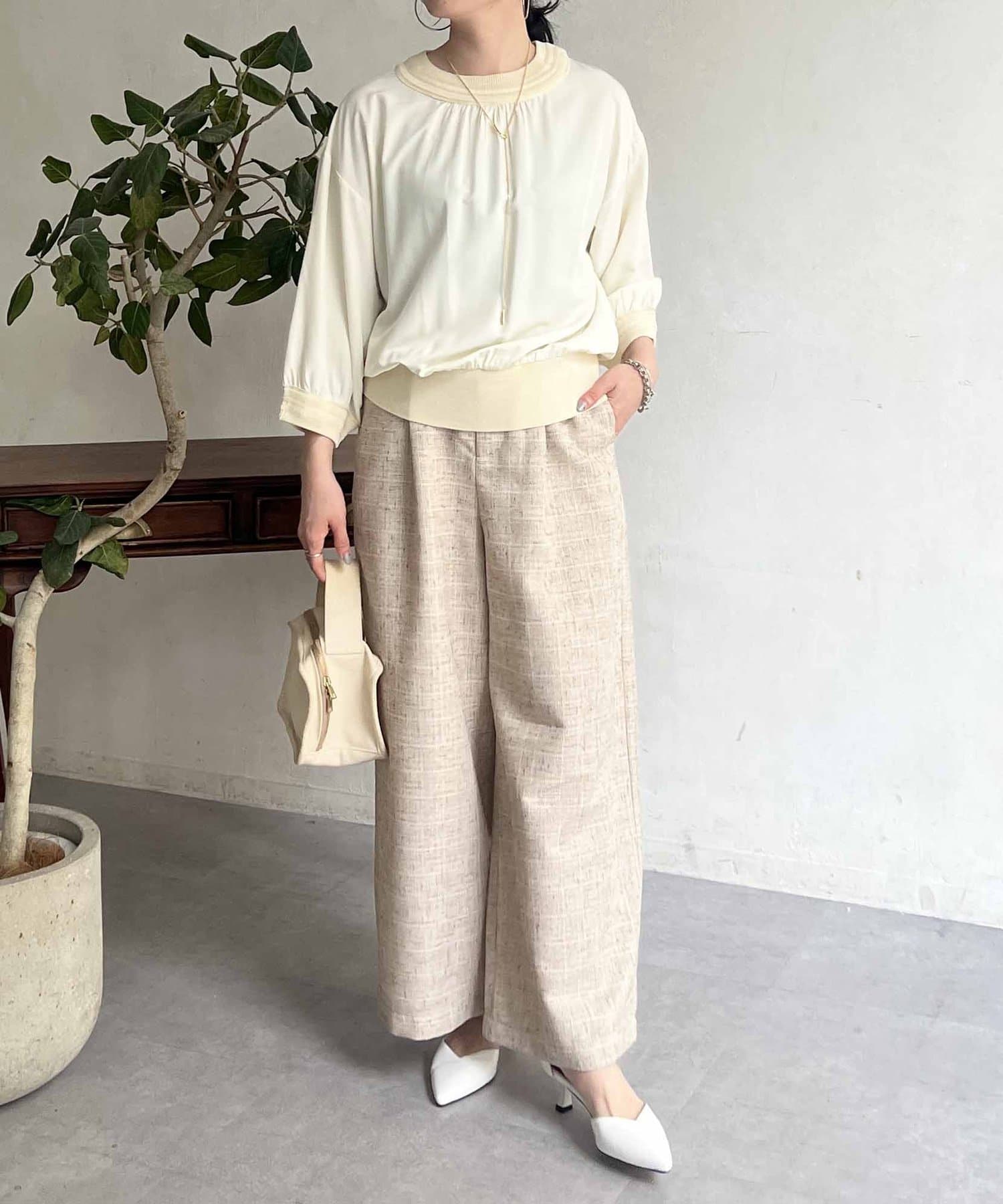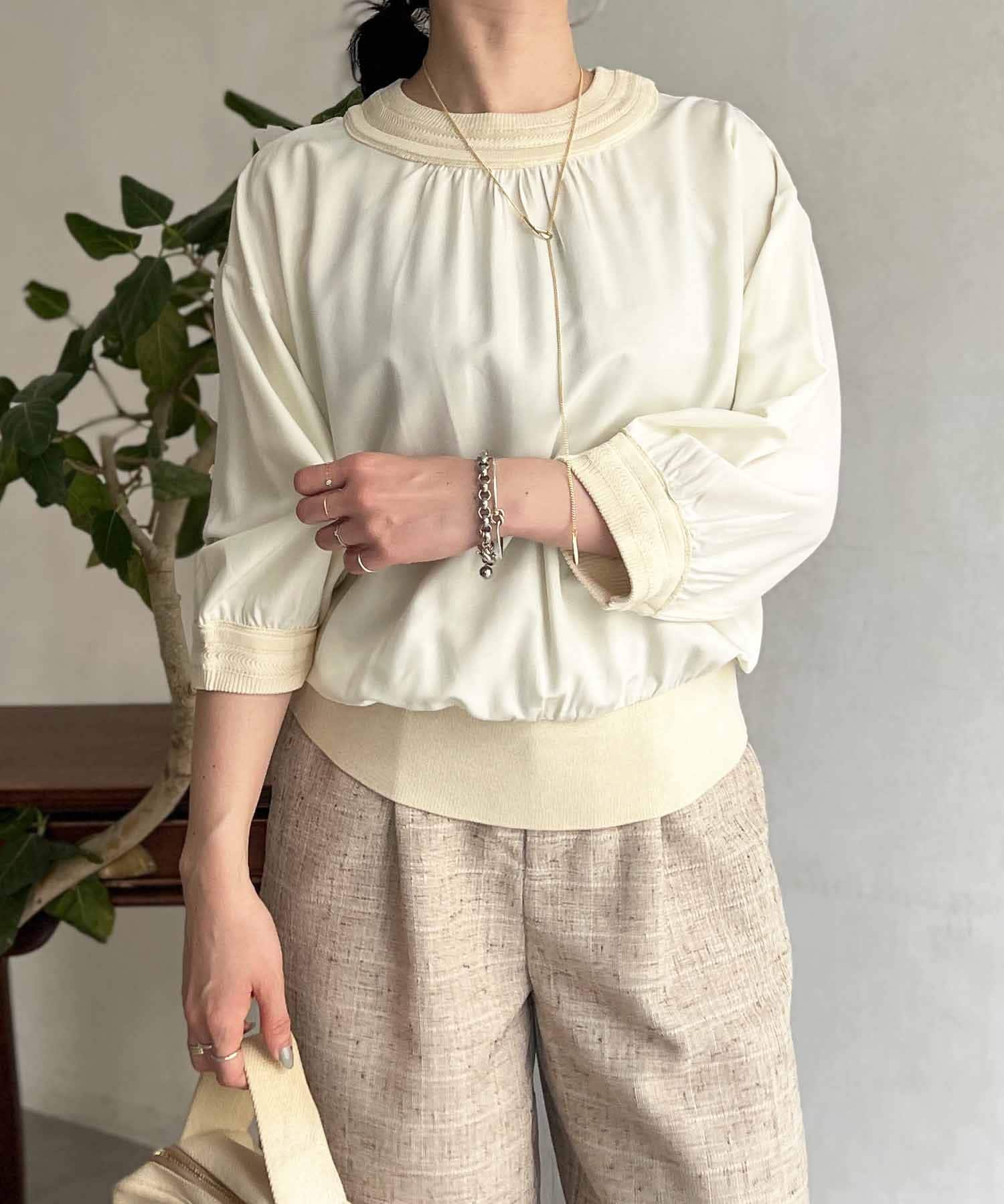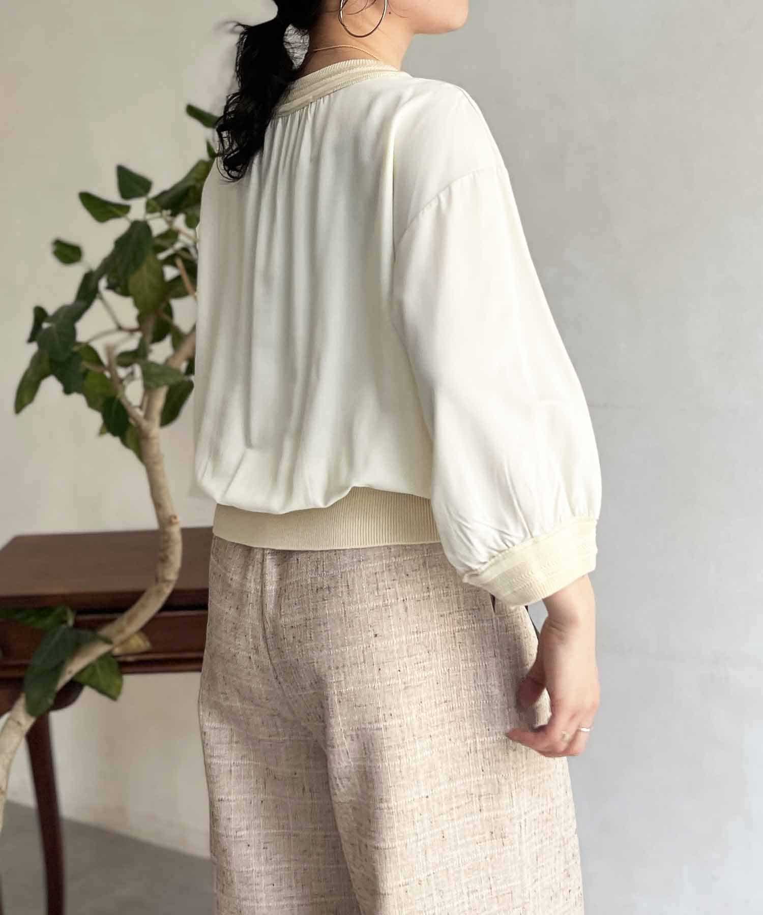 デニムやワイドパンツで合わせたベーシックスタイルにも映えるブラウスです。
