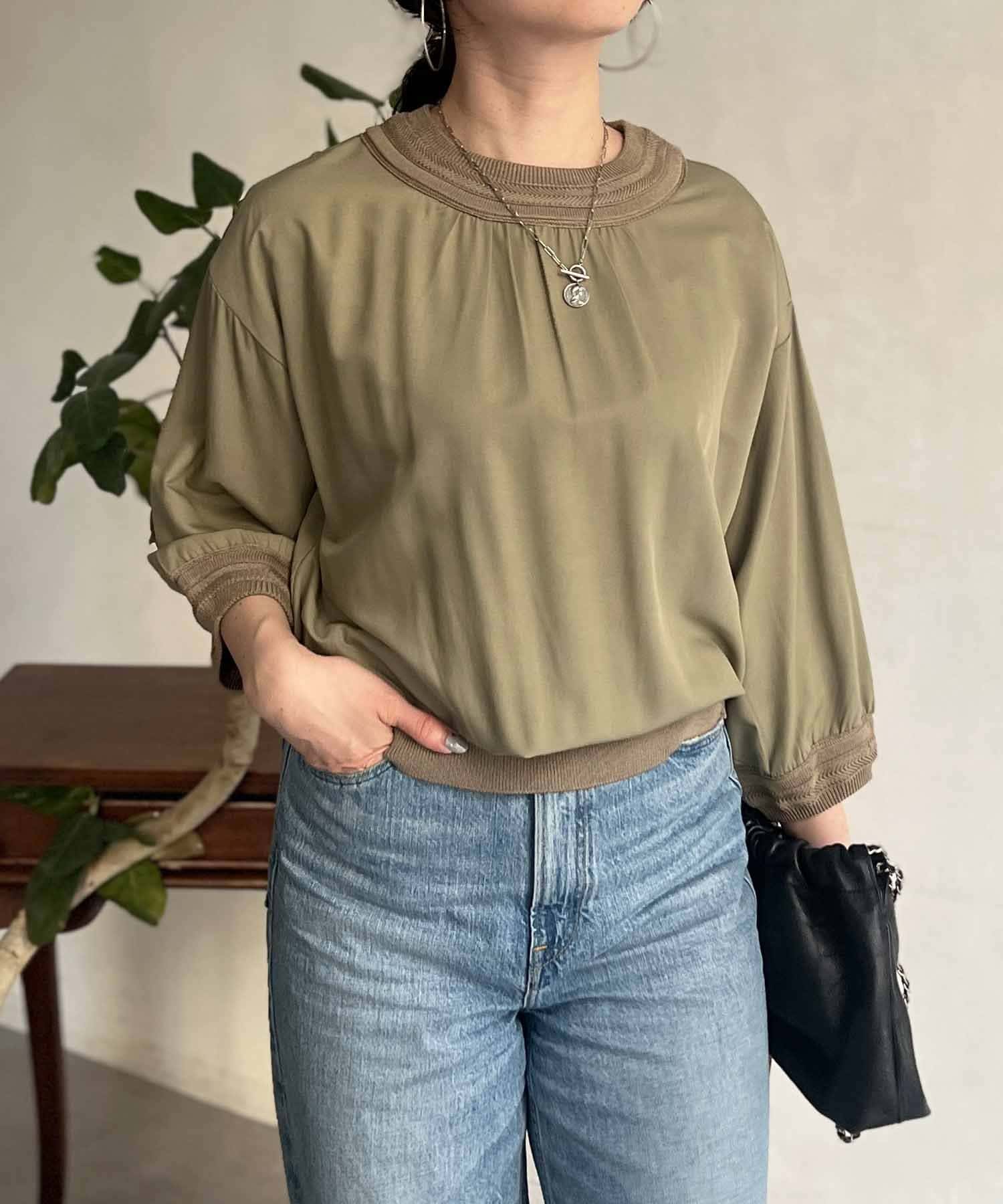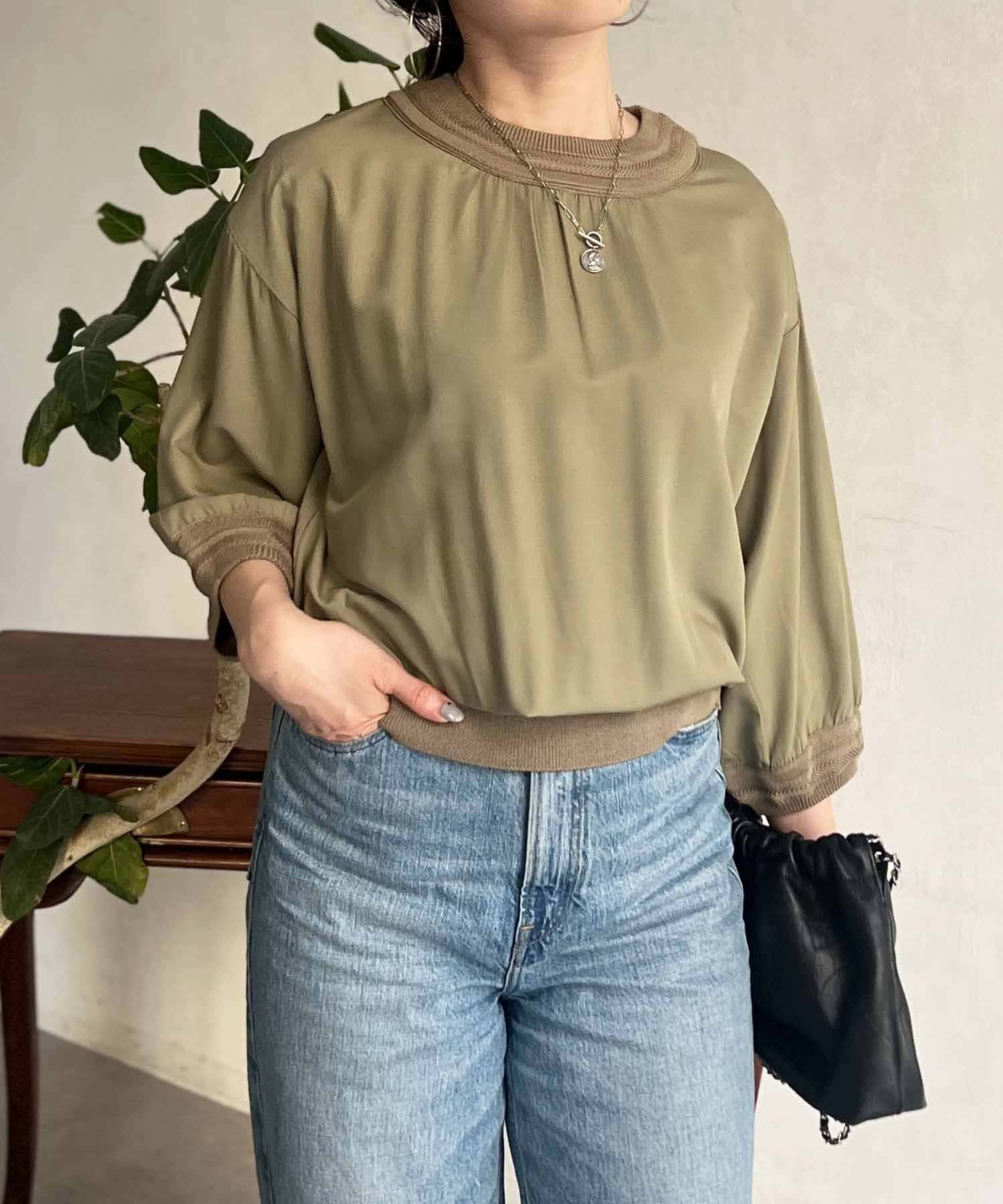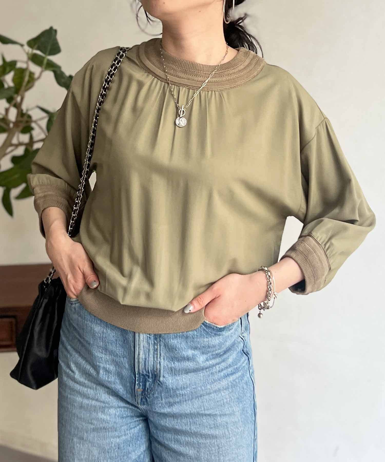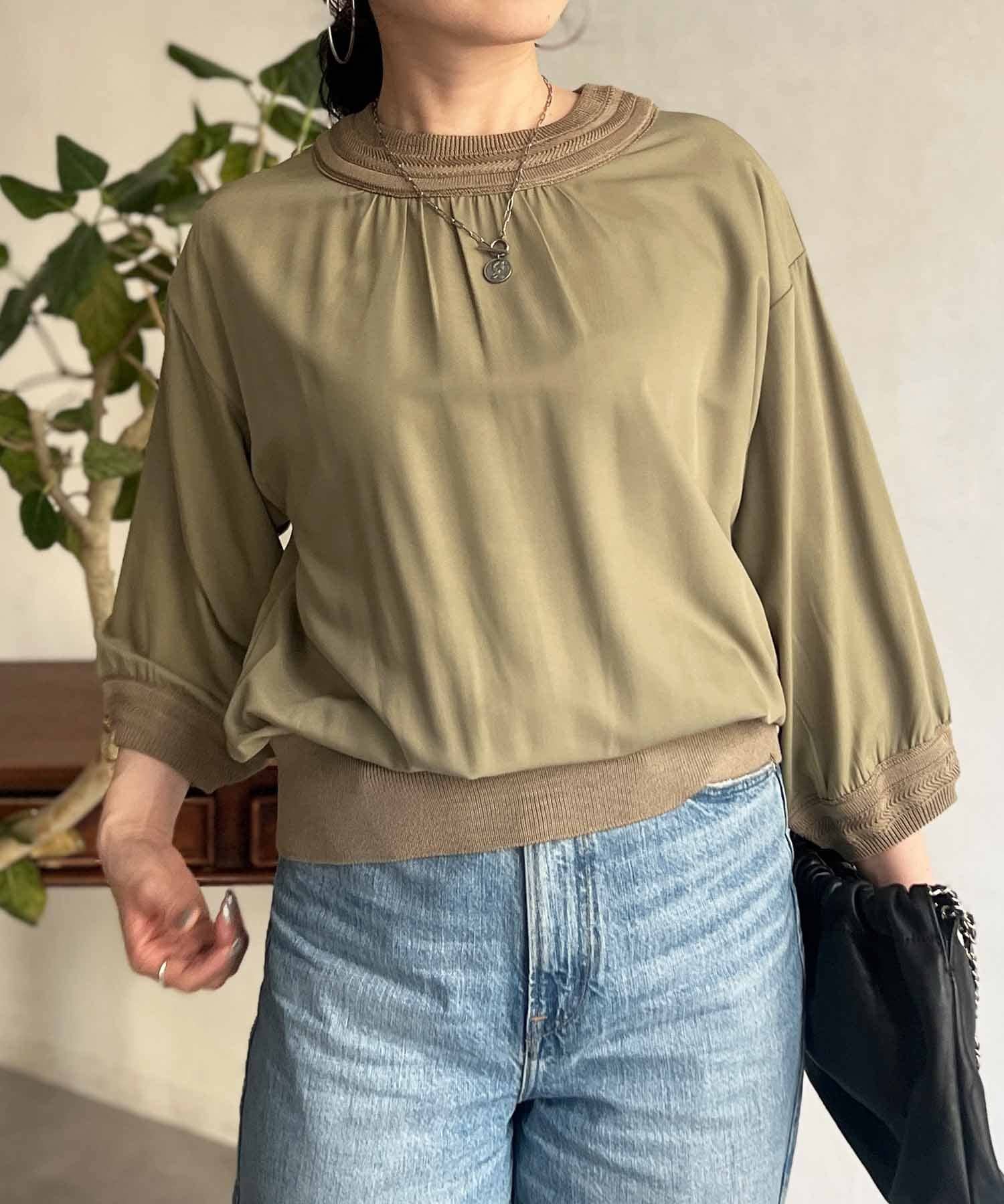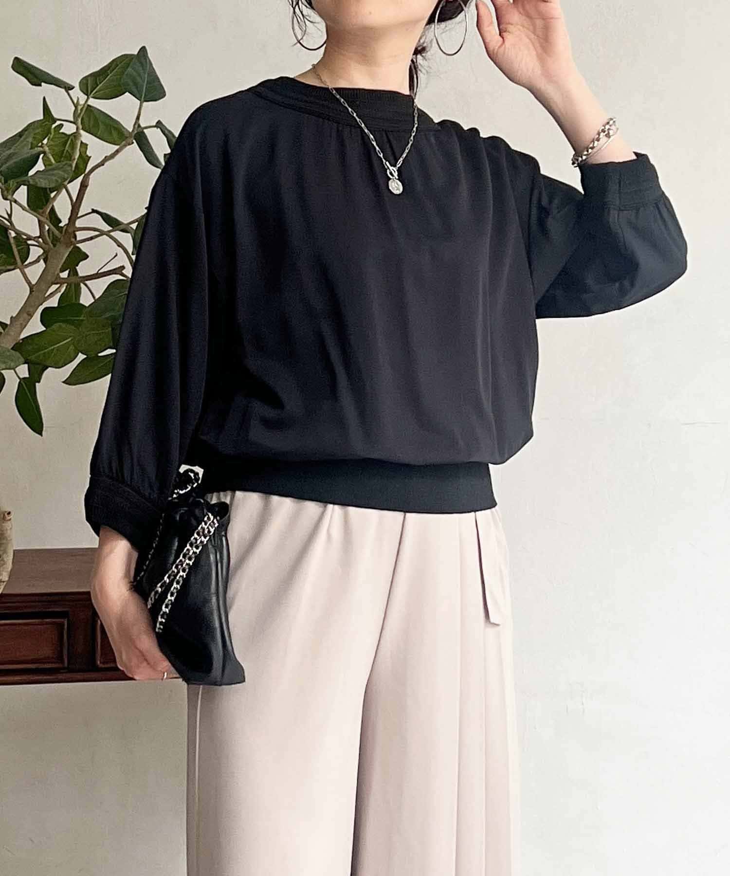 袖と襟のリブ分は編立てリブでデザイン性があり、シンプルデザインですがコーディネートのアクセントになります。