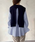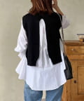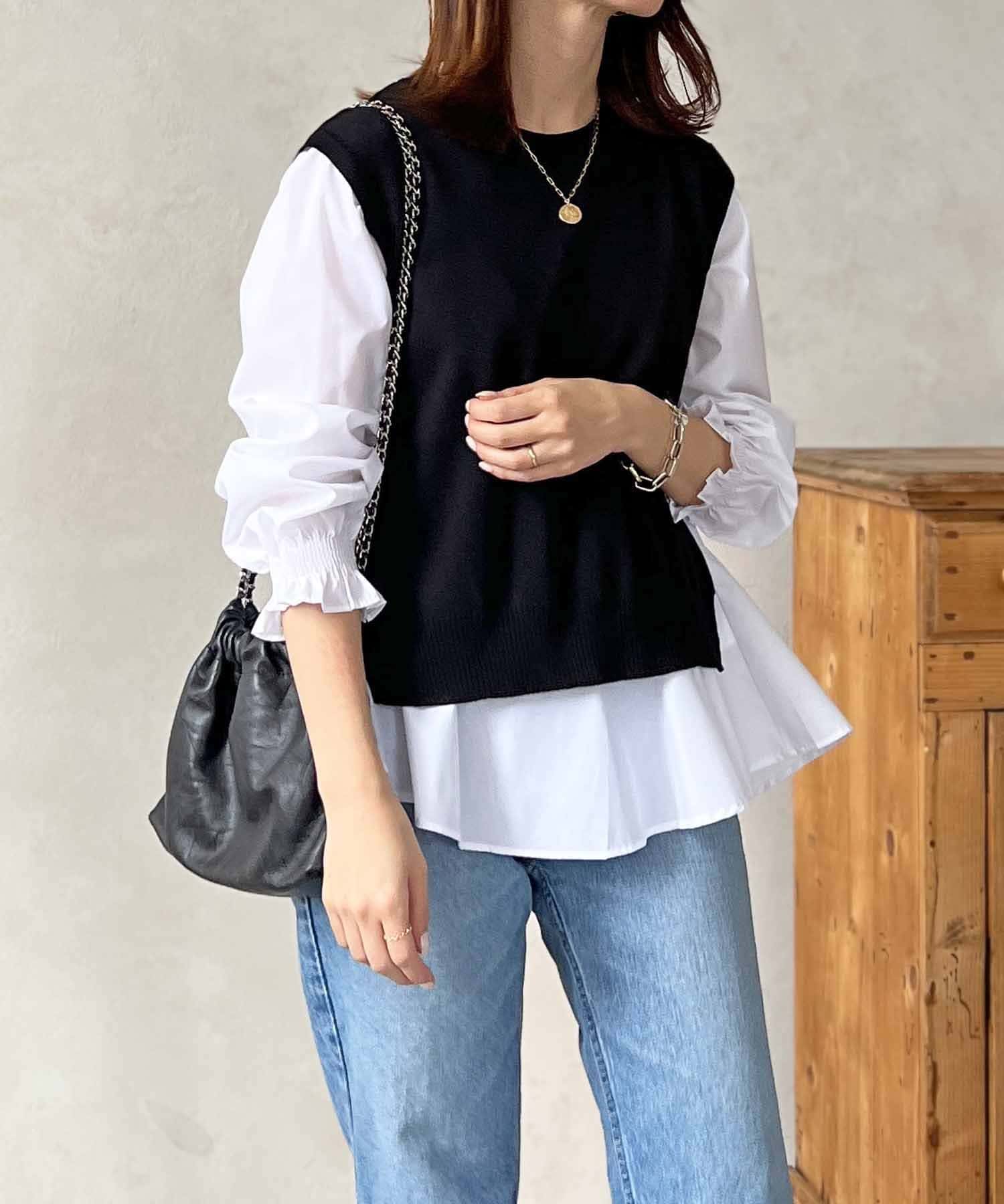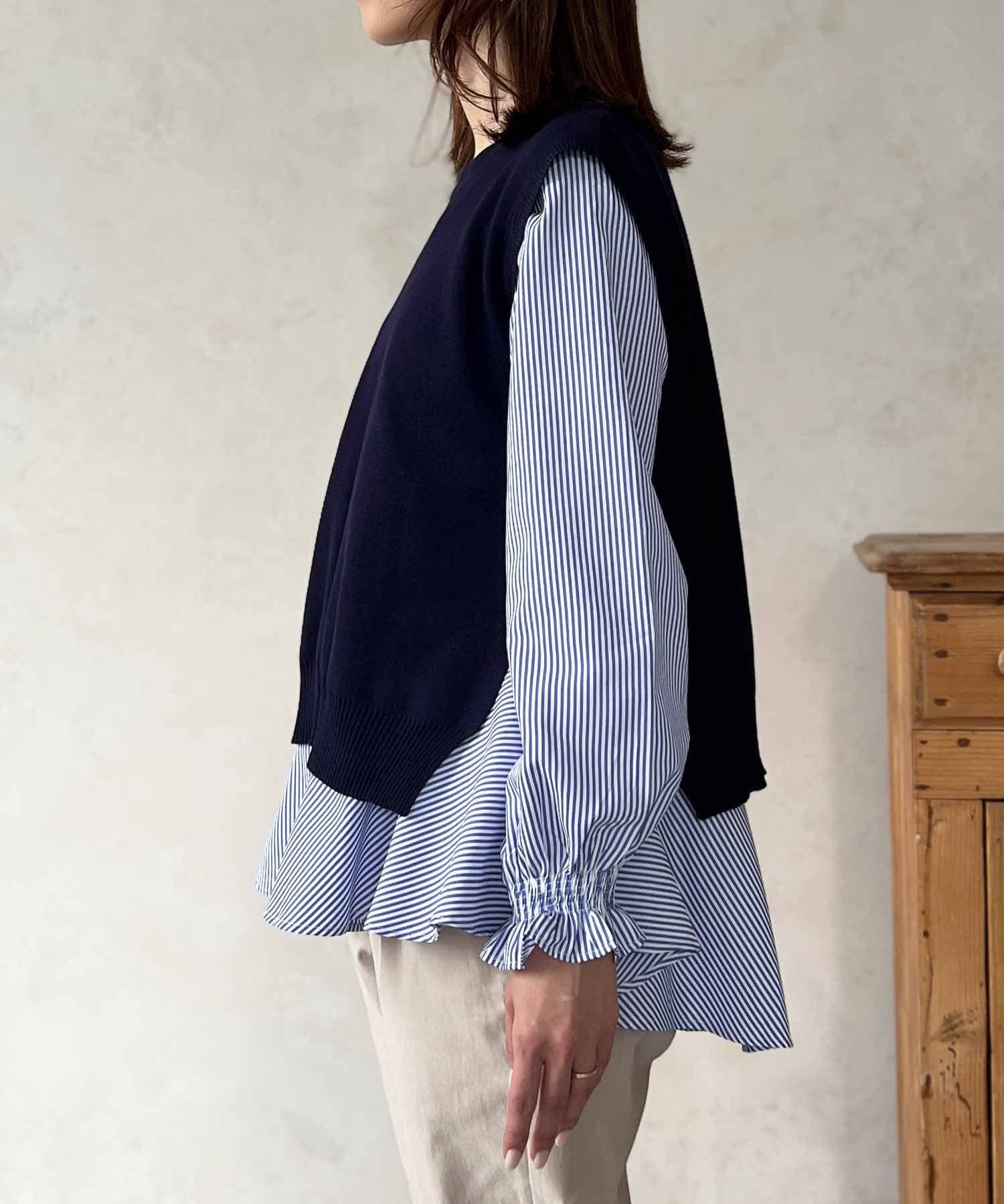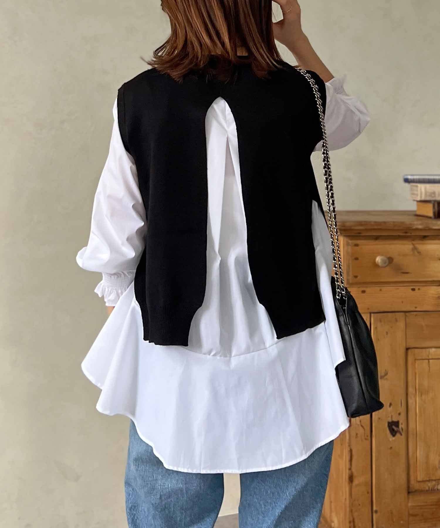 ペプラム風デザインのブラウスに、短丈のニットベストがセットになりました!