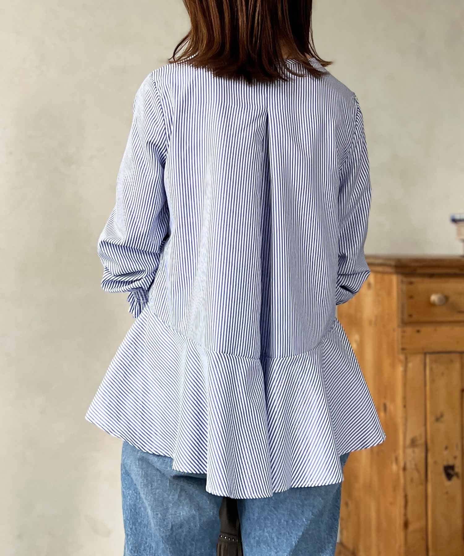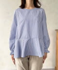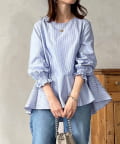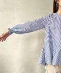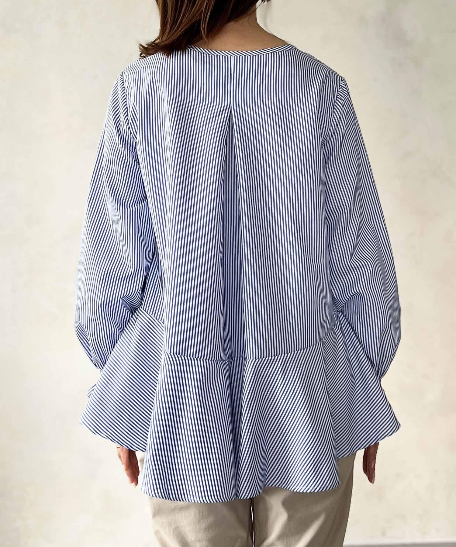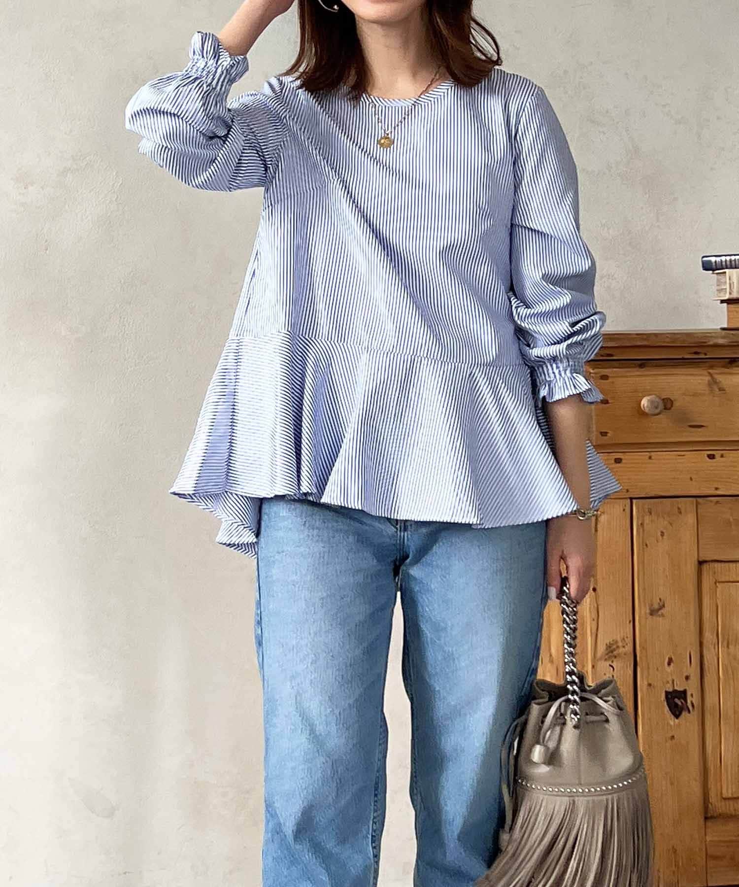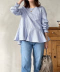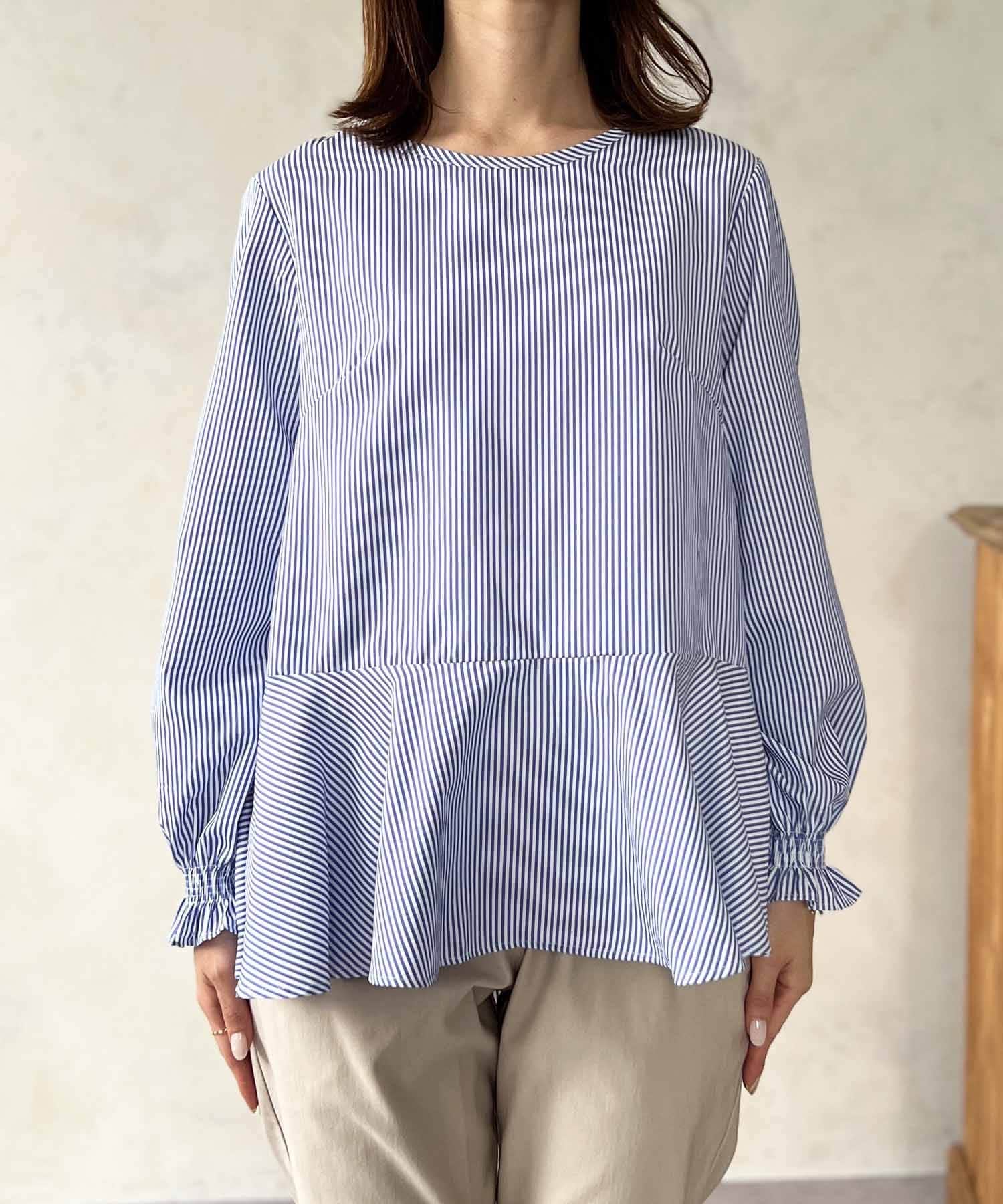 ブラウスは腰回りに被る長さのペプラムデザイン。さり気なく下半身カバーも叶う優秀デザインです。