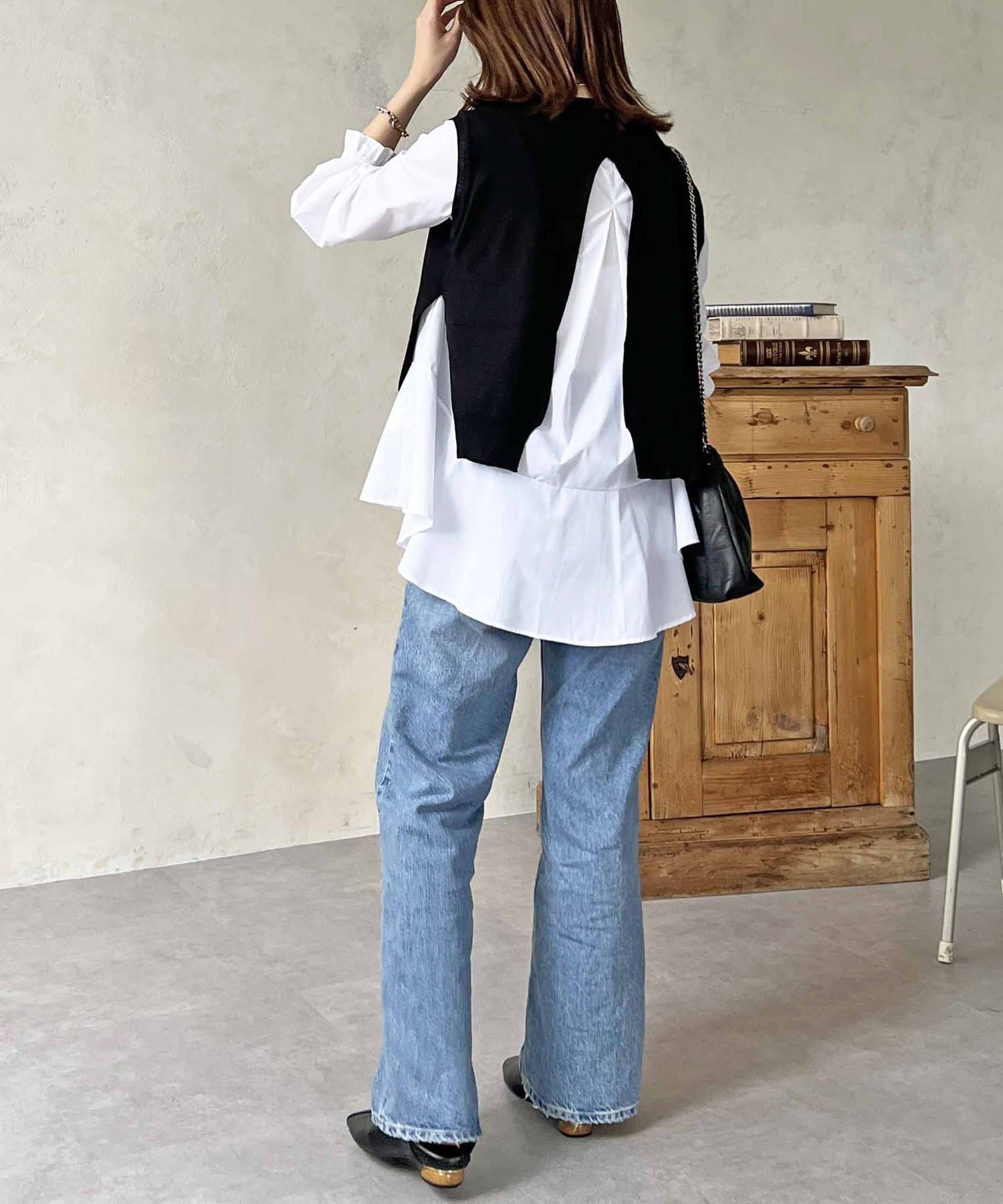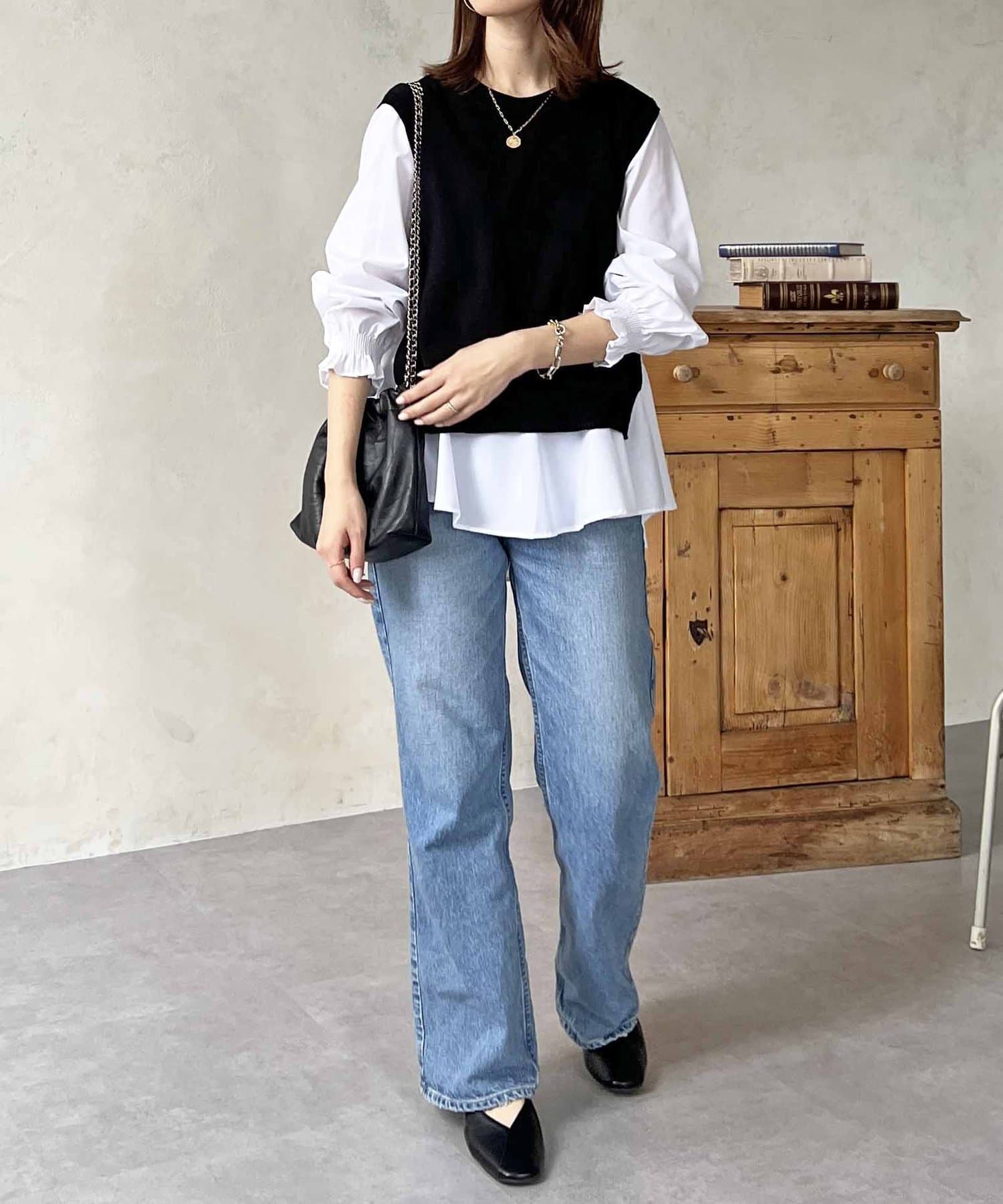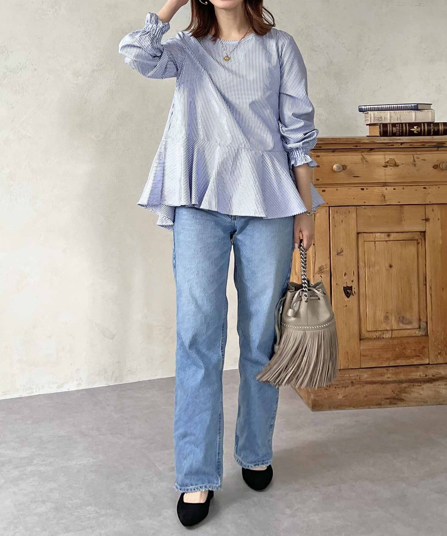 • ブラウスだけで着用。デニムできれいめカジュアルに。