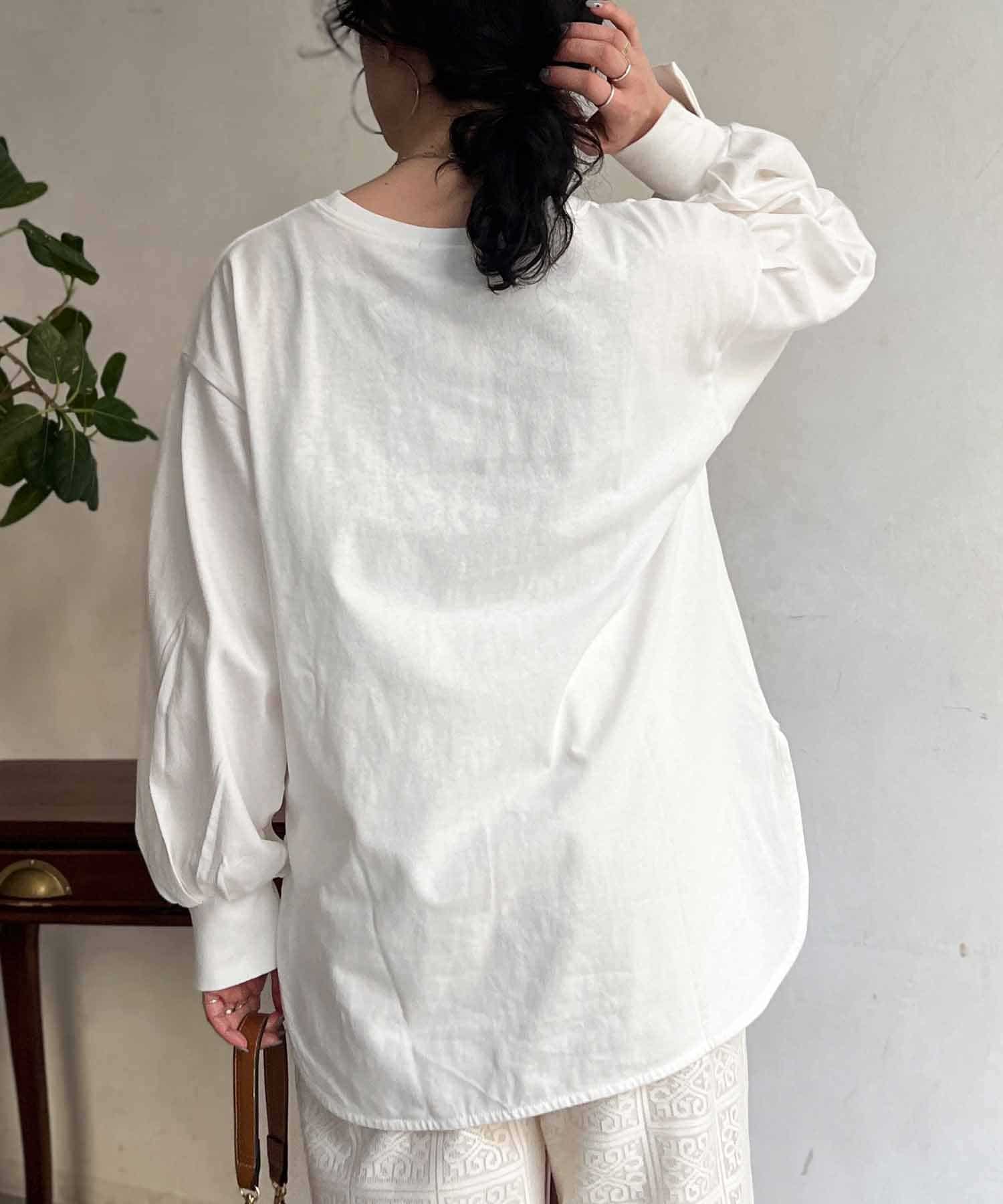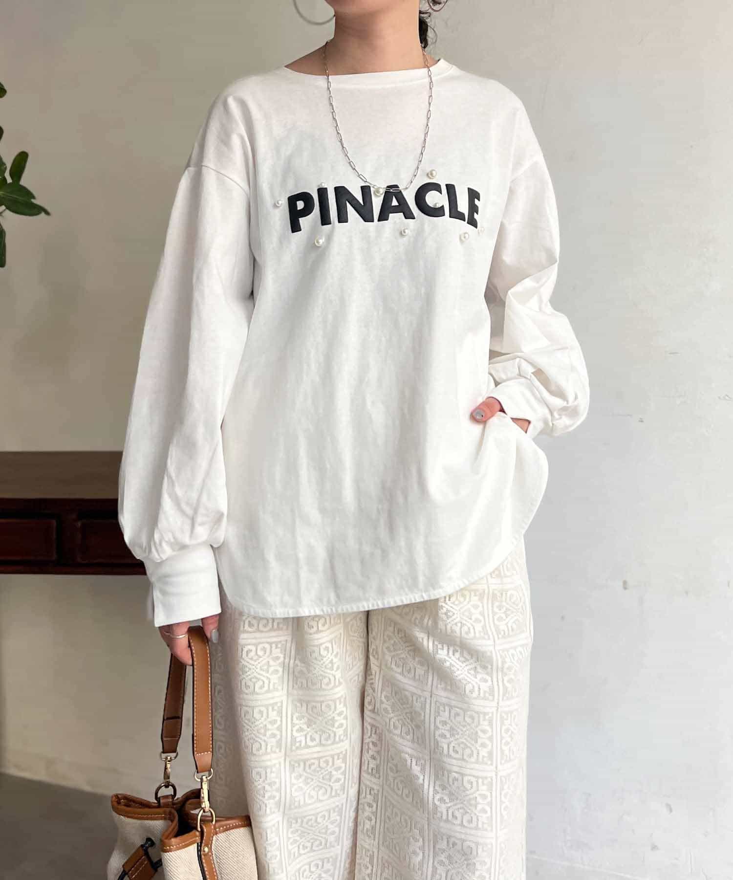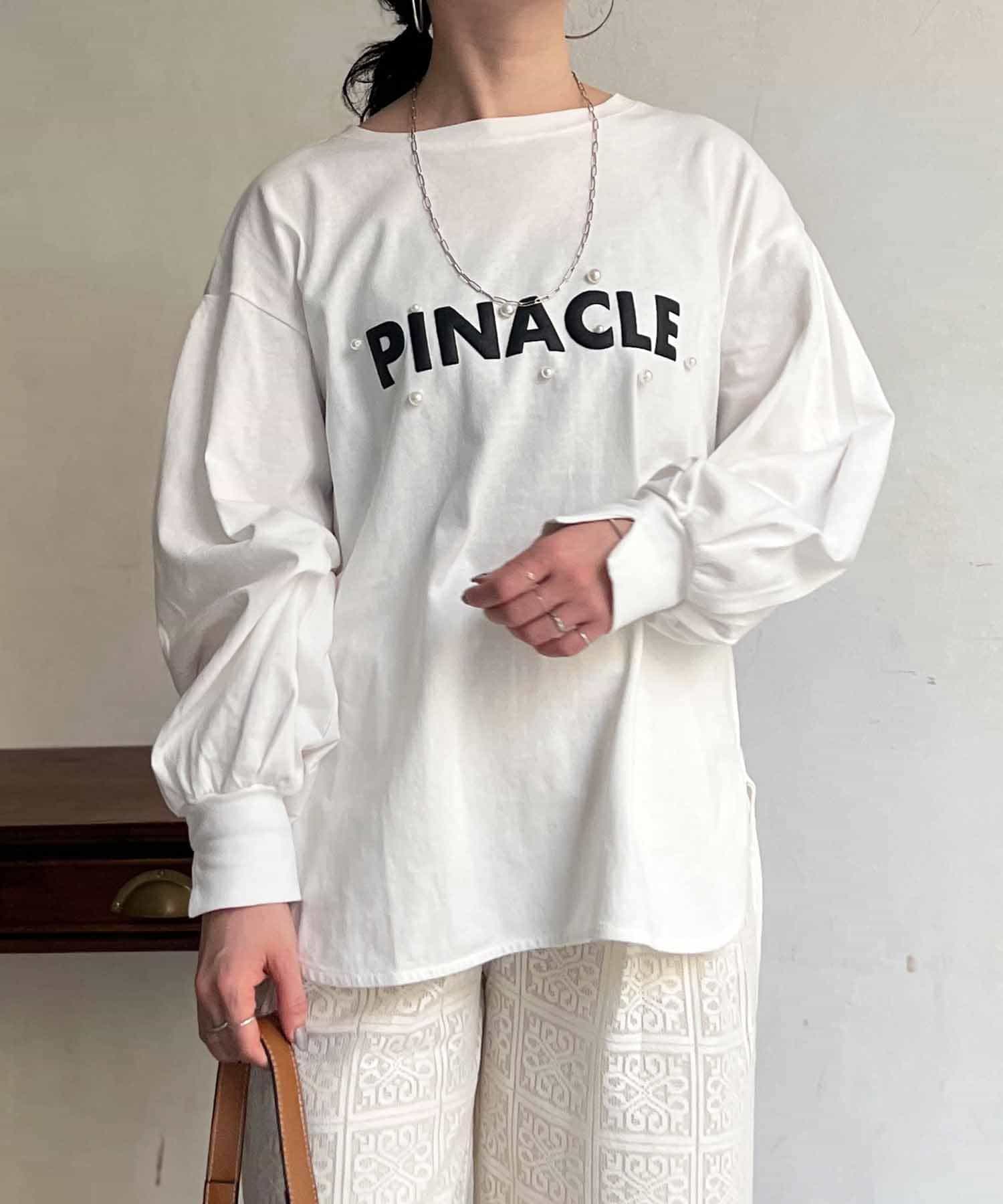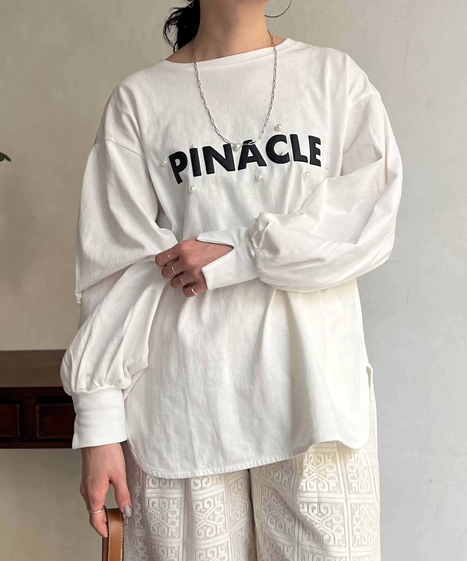 発砲プリントロゴとパールディティールがポイントのロンT。