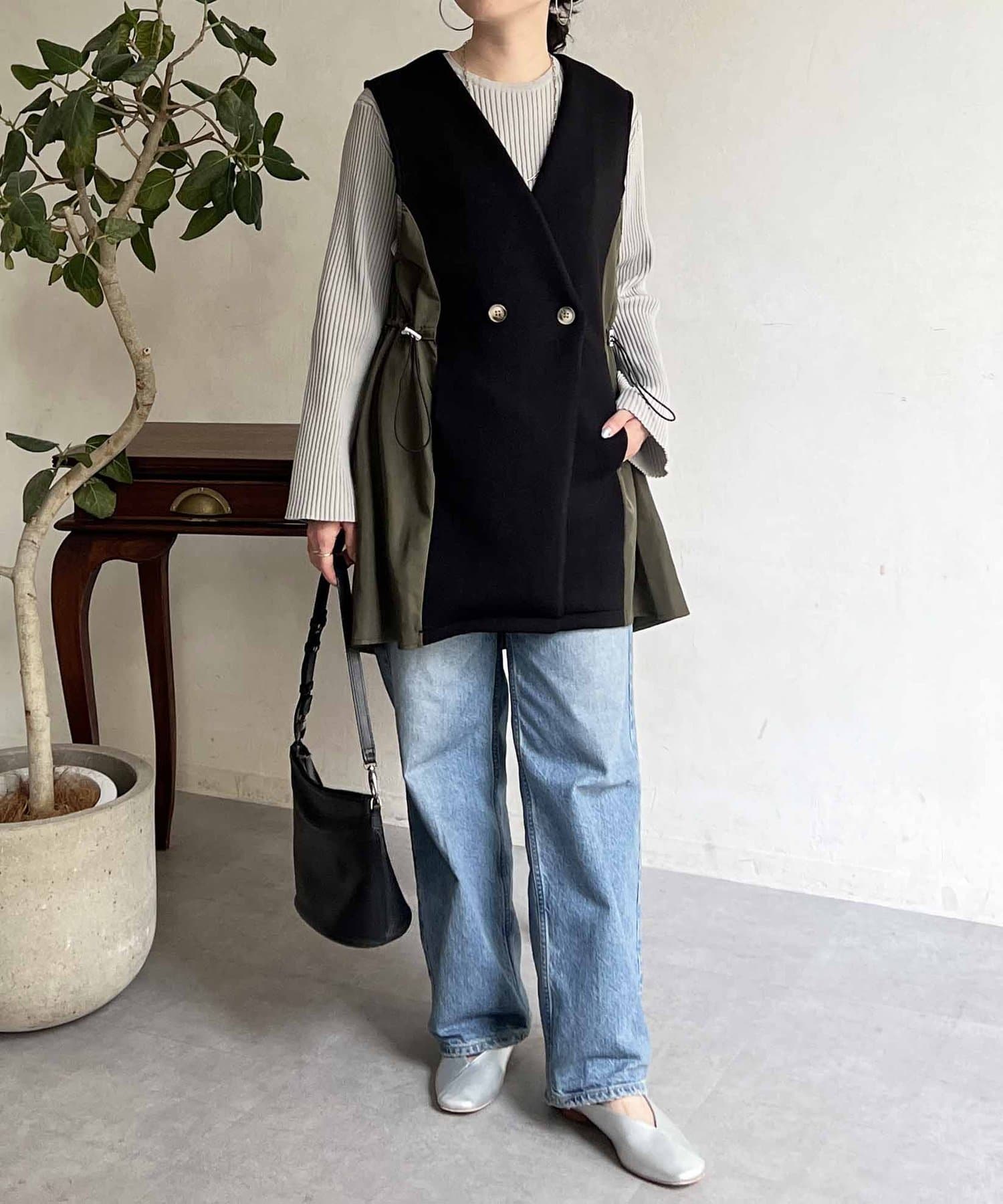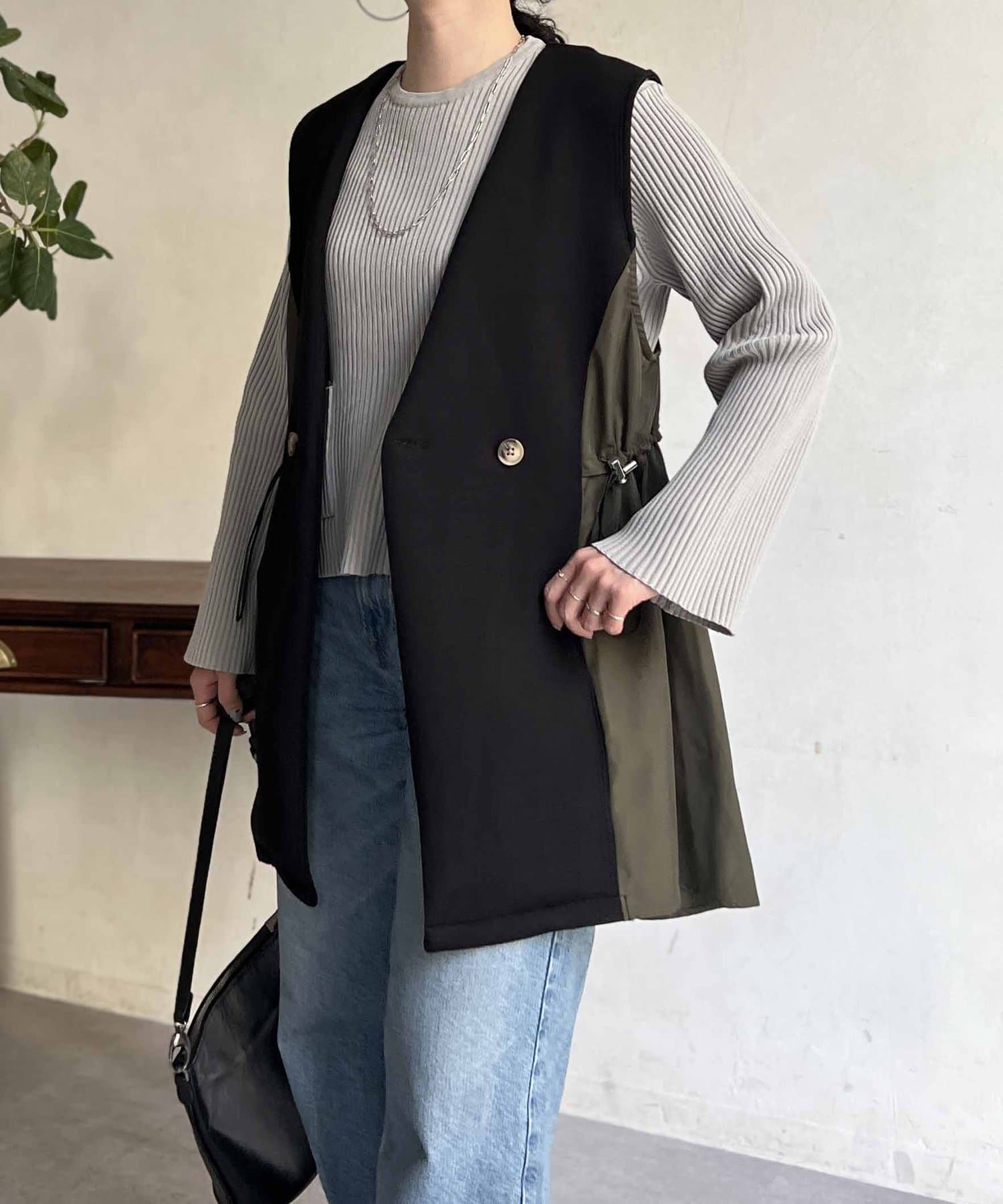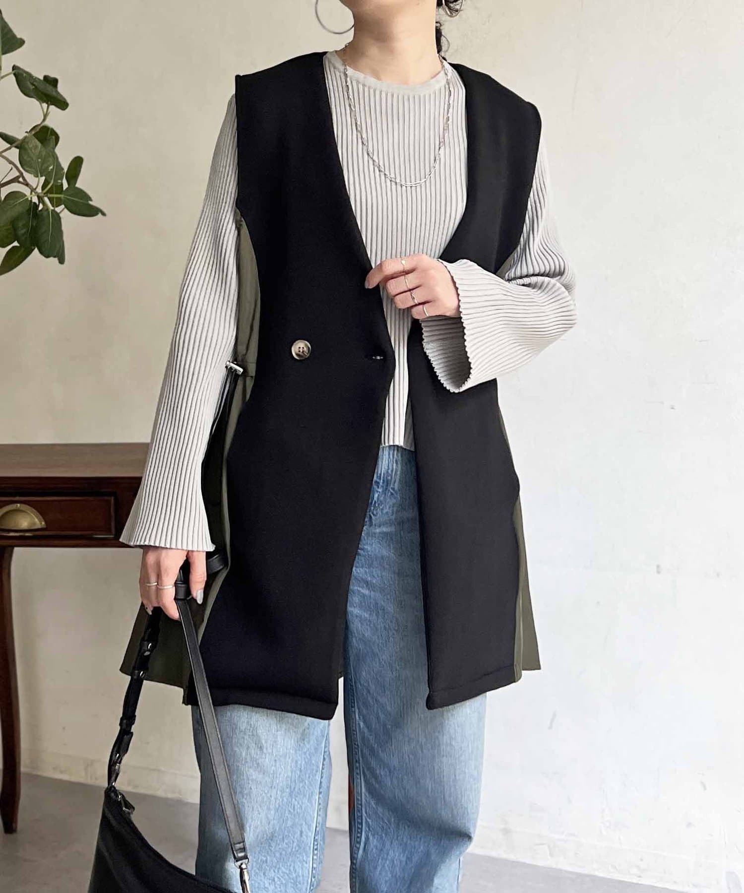 いつものコーデをワンランクアップさせてくれる異素材ジレ