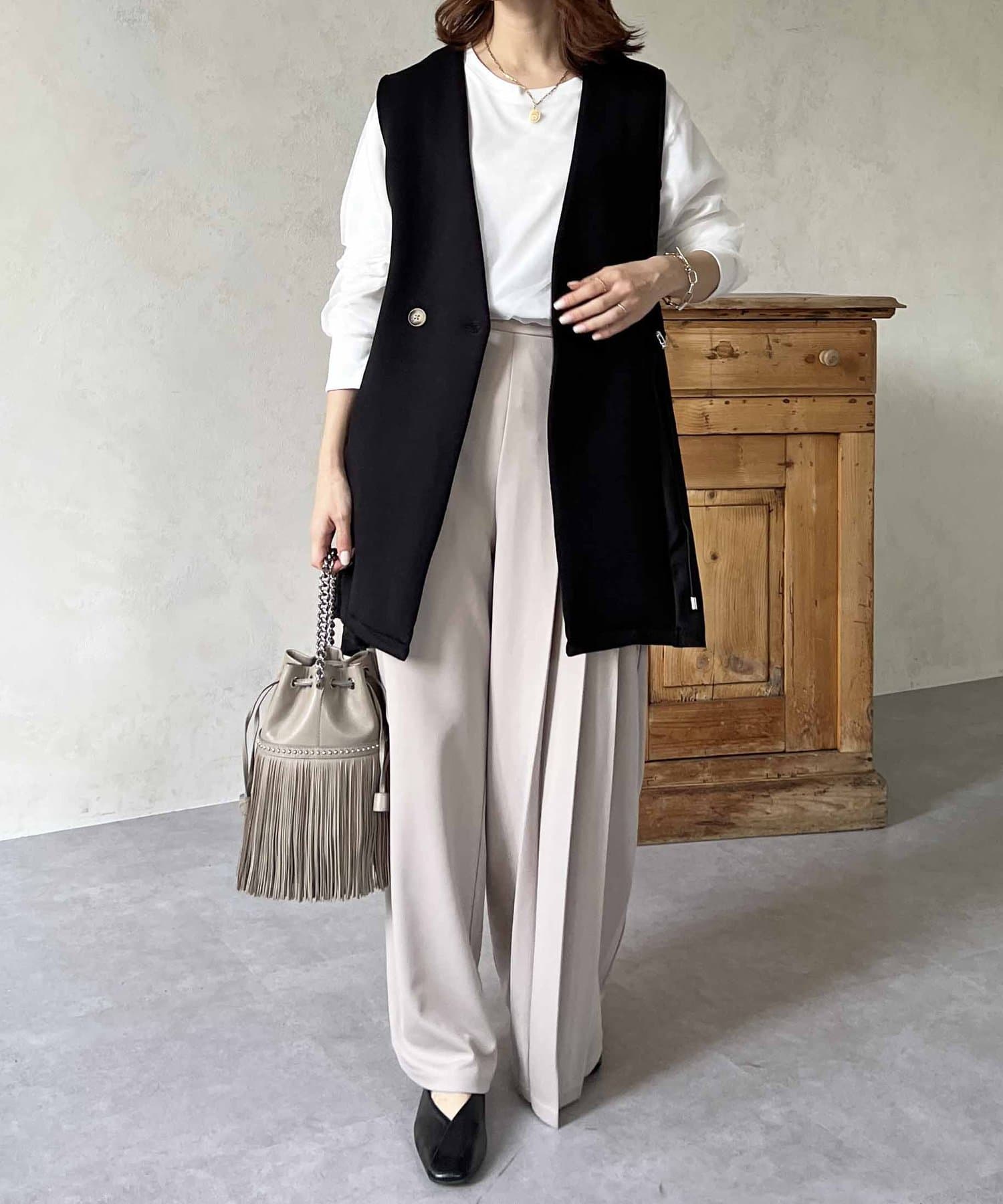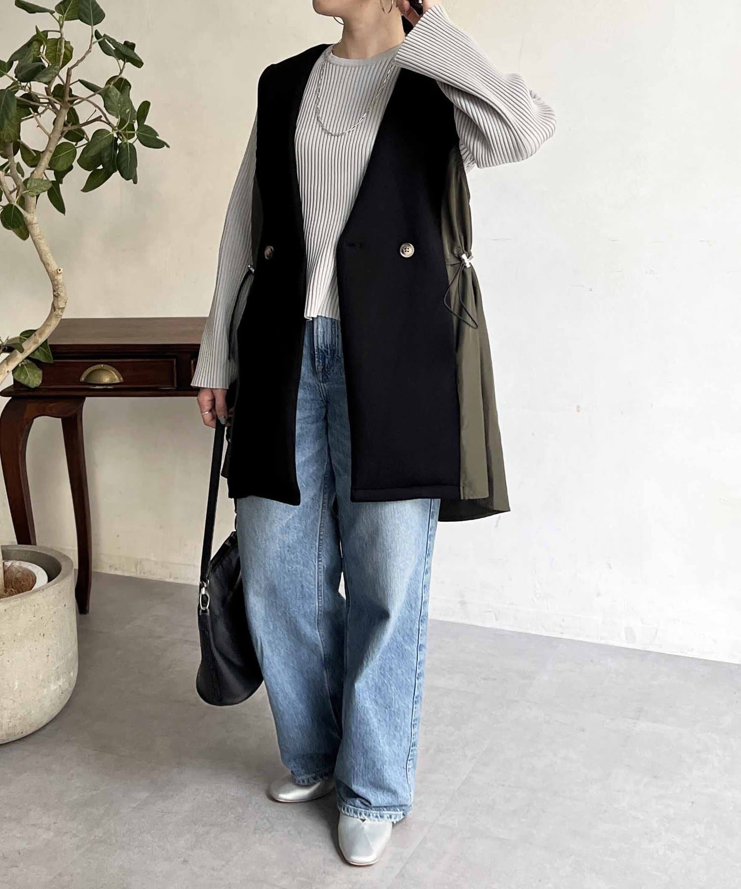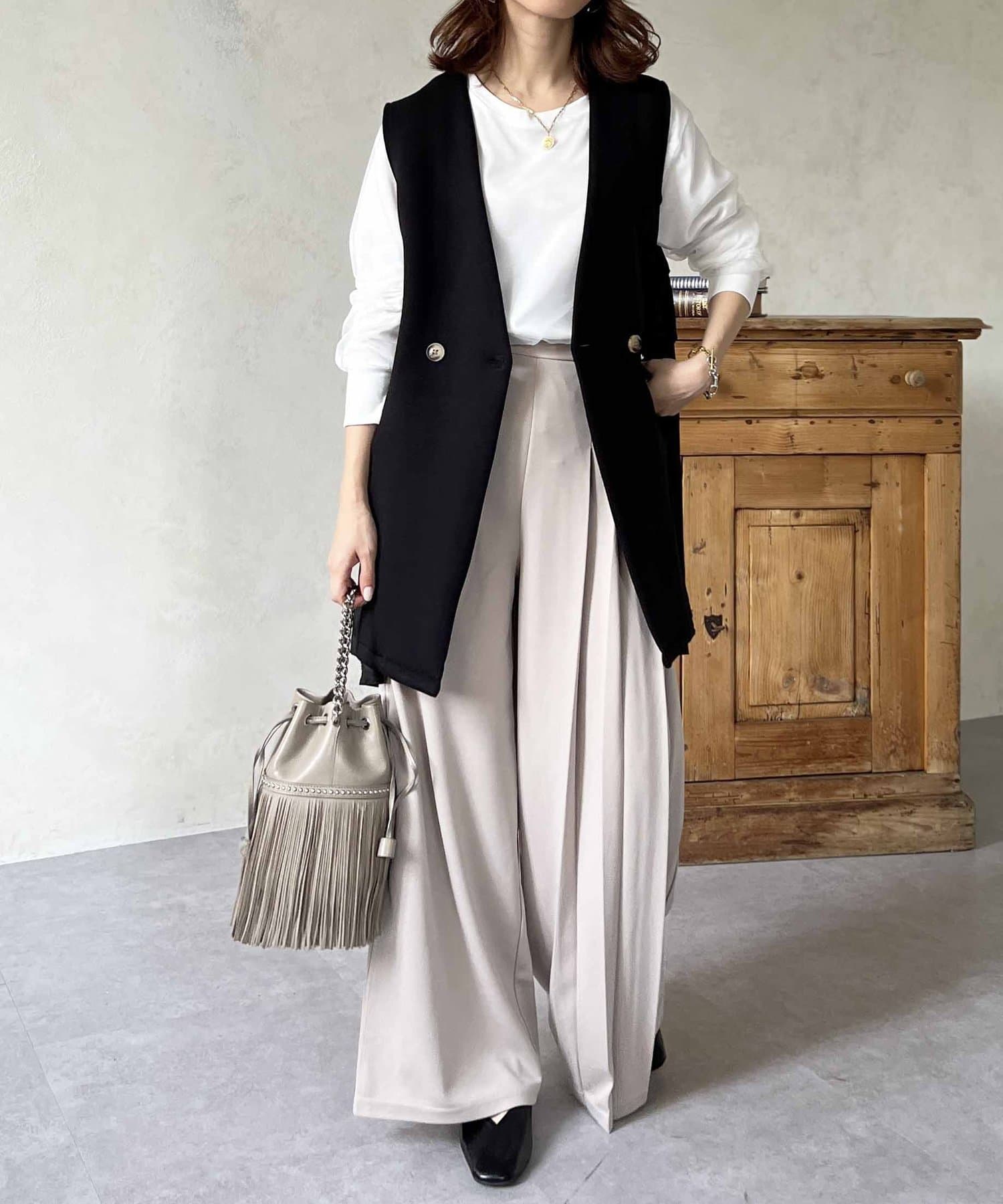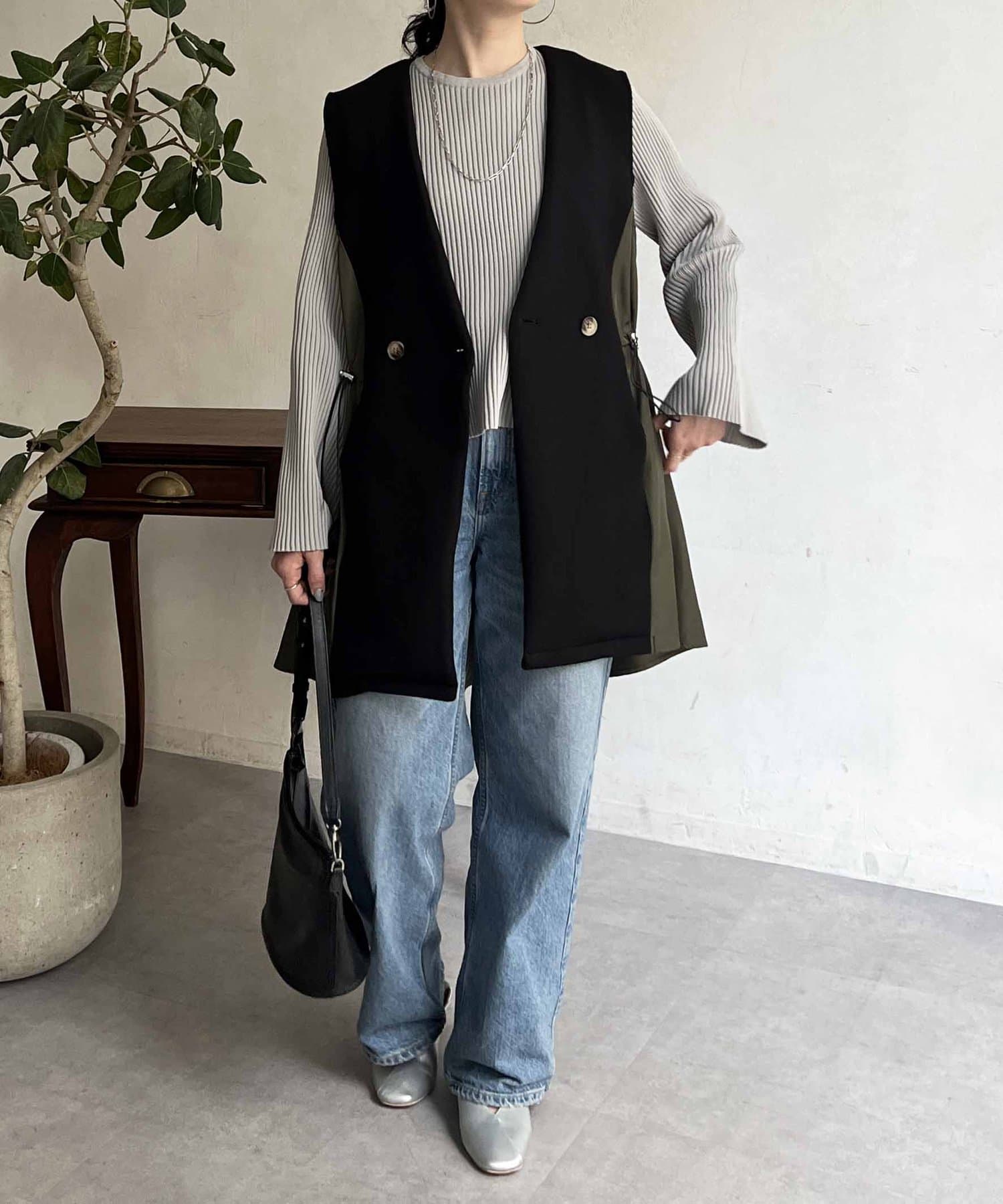いつものコーデをワンランクアップさせてくれる異素材ジレ