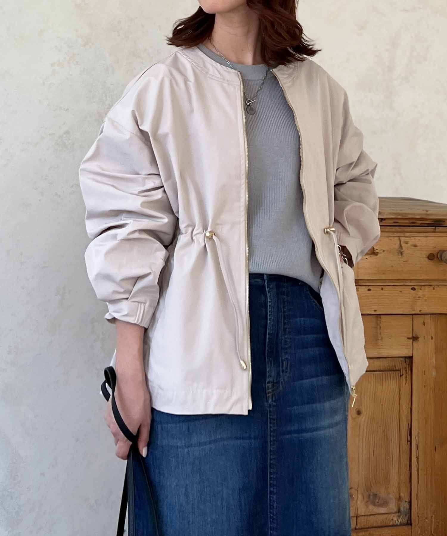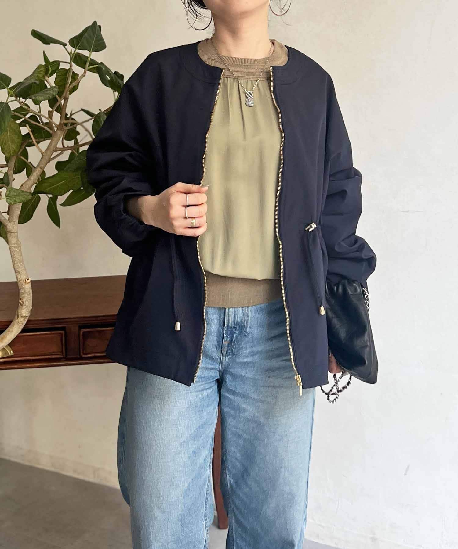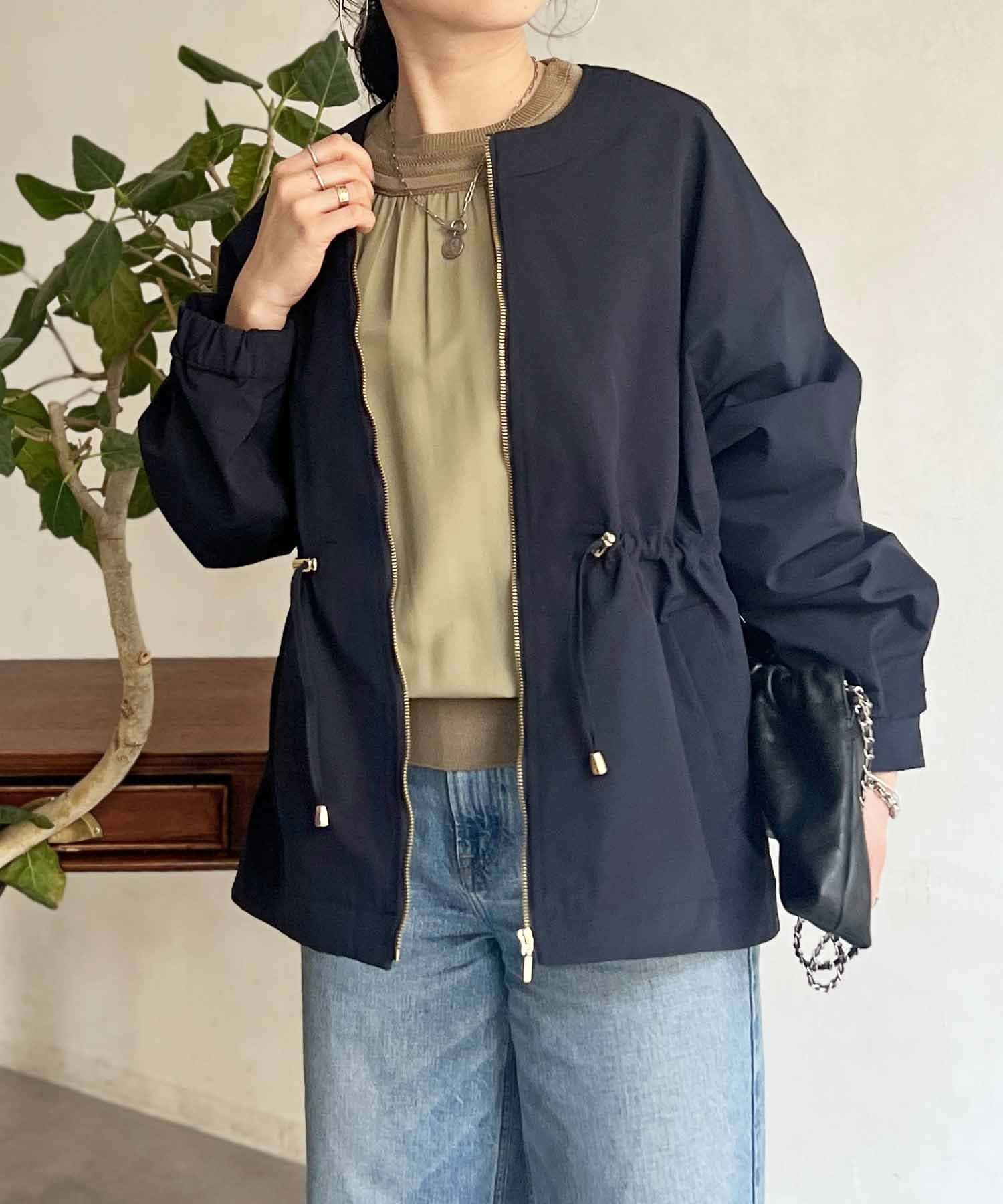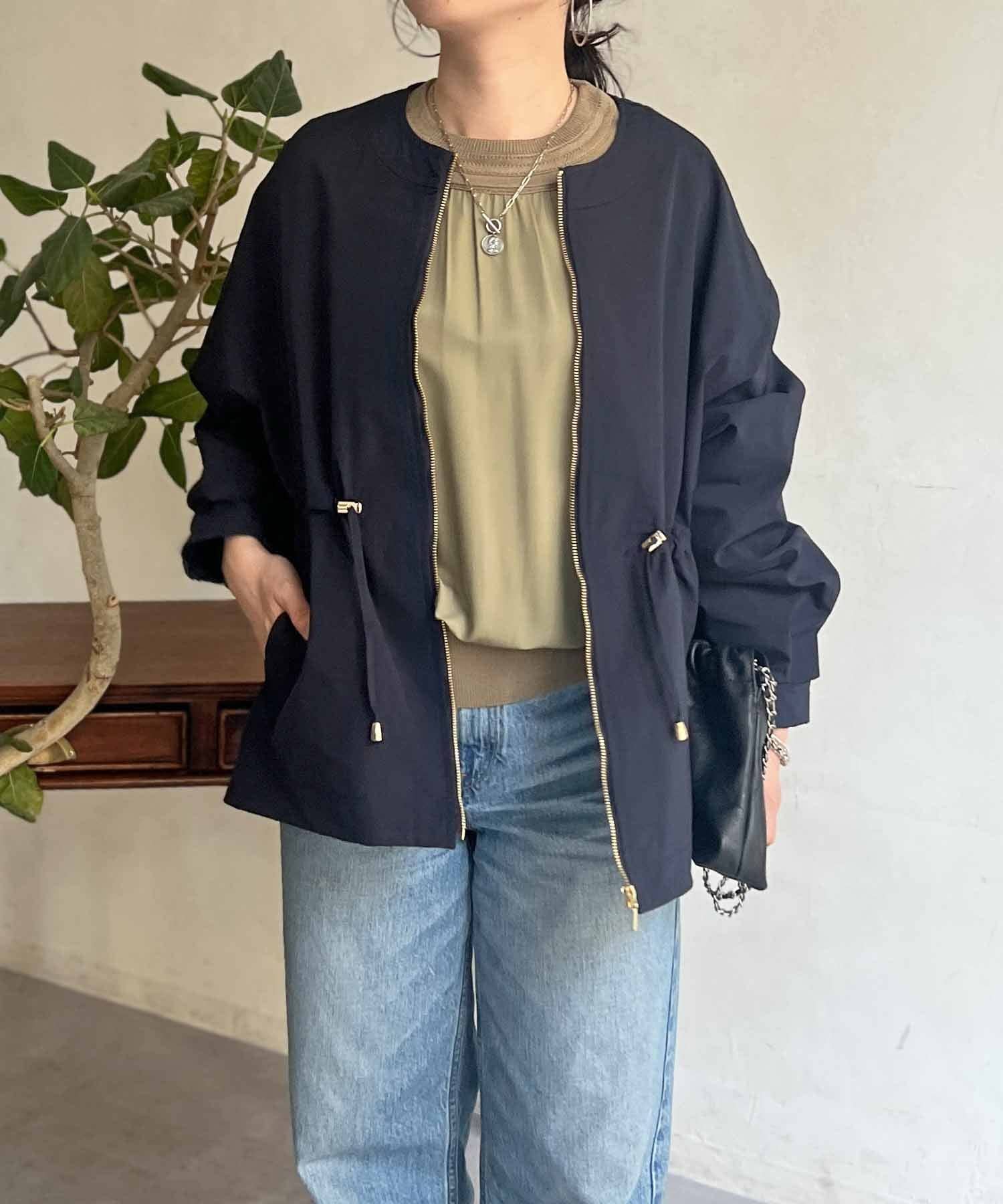 きれい見えもカジュアル見えも欲しい方におすすめのノーカラーブルゾンです。
