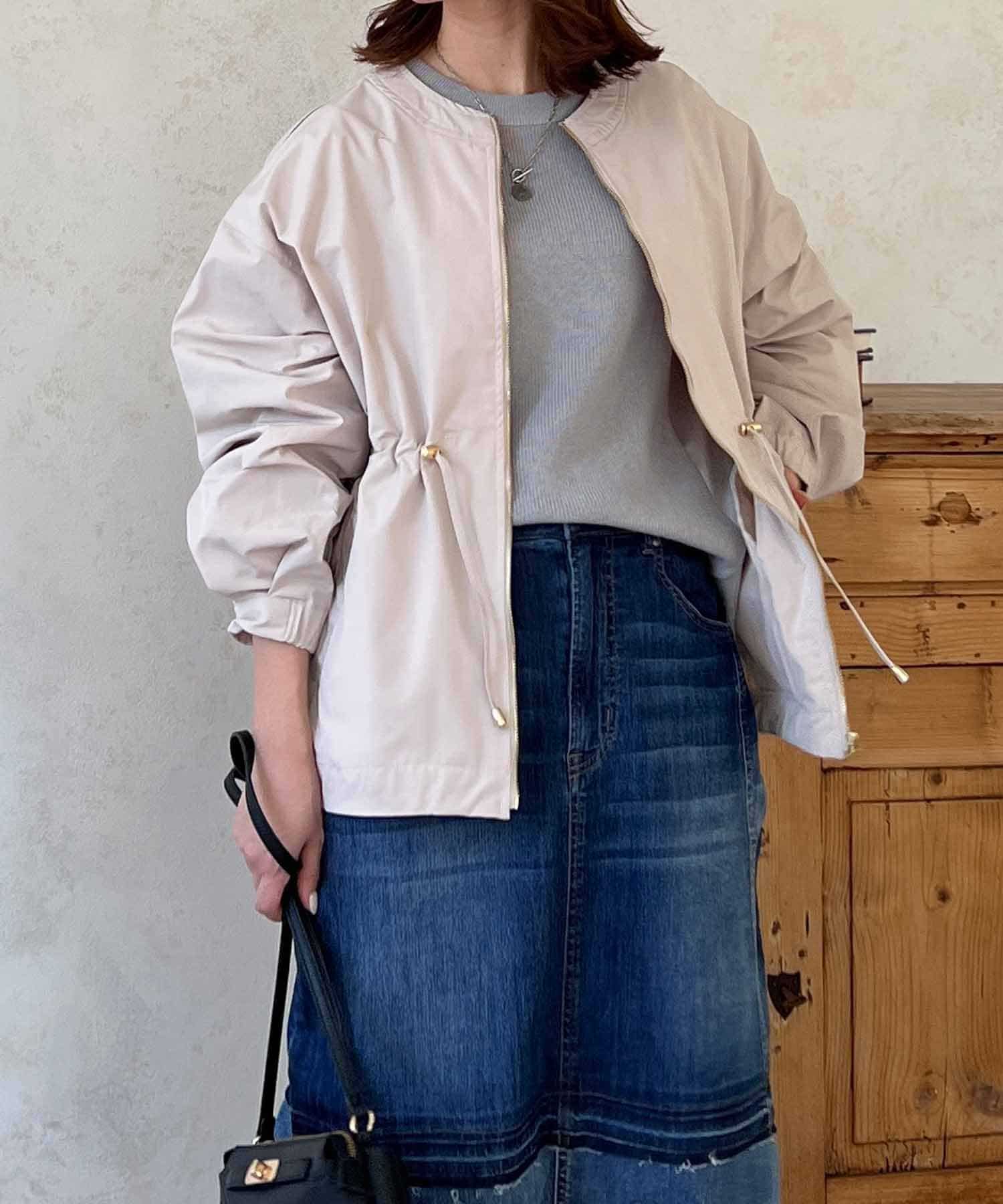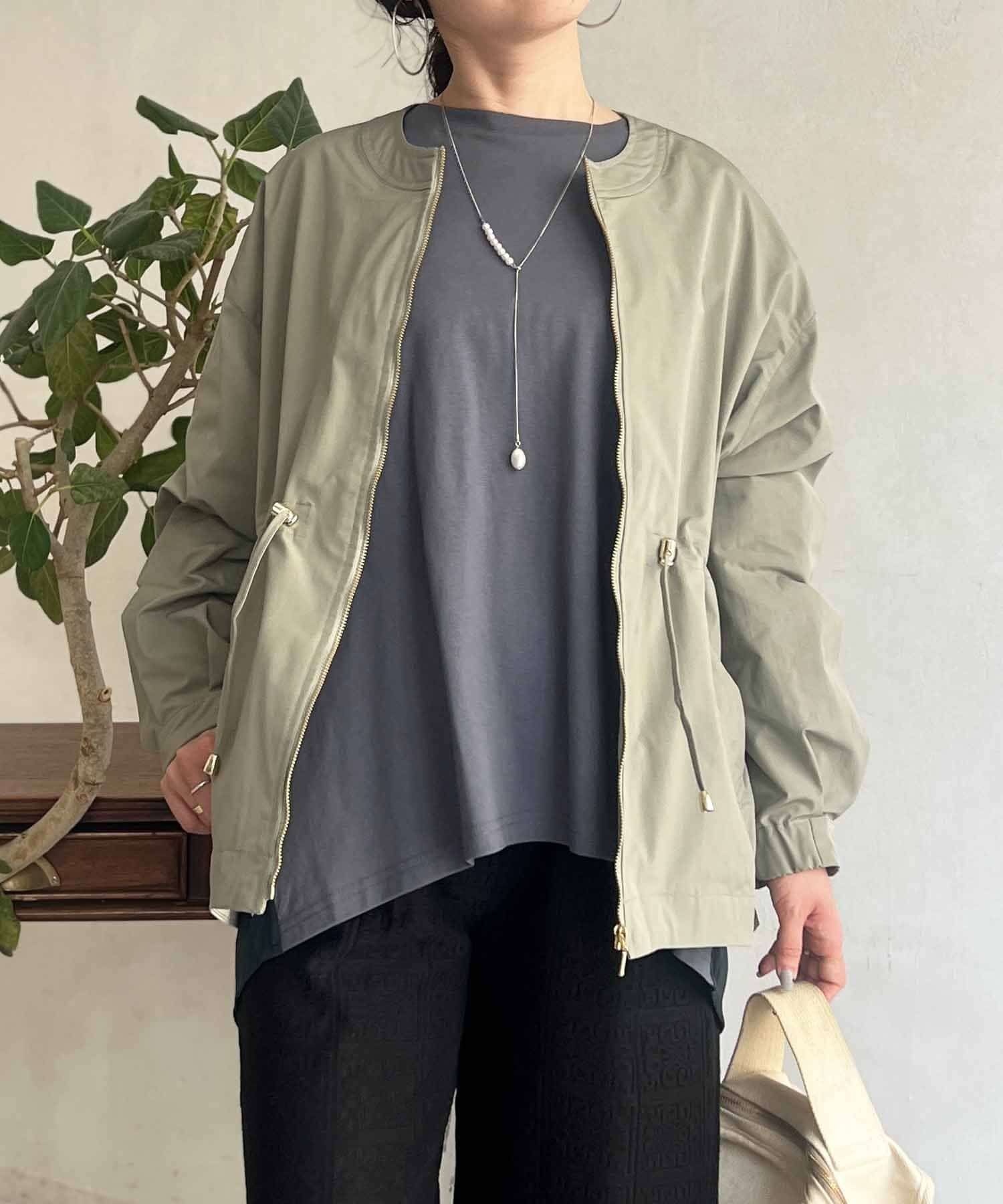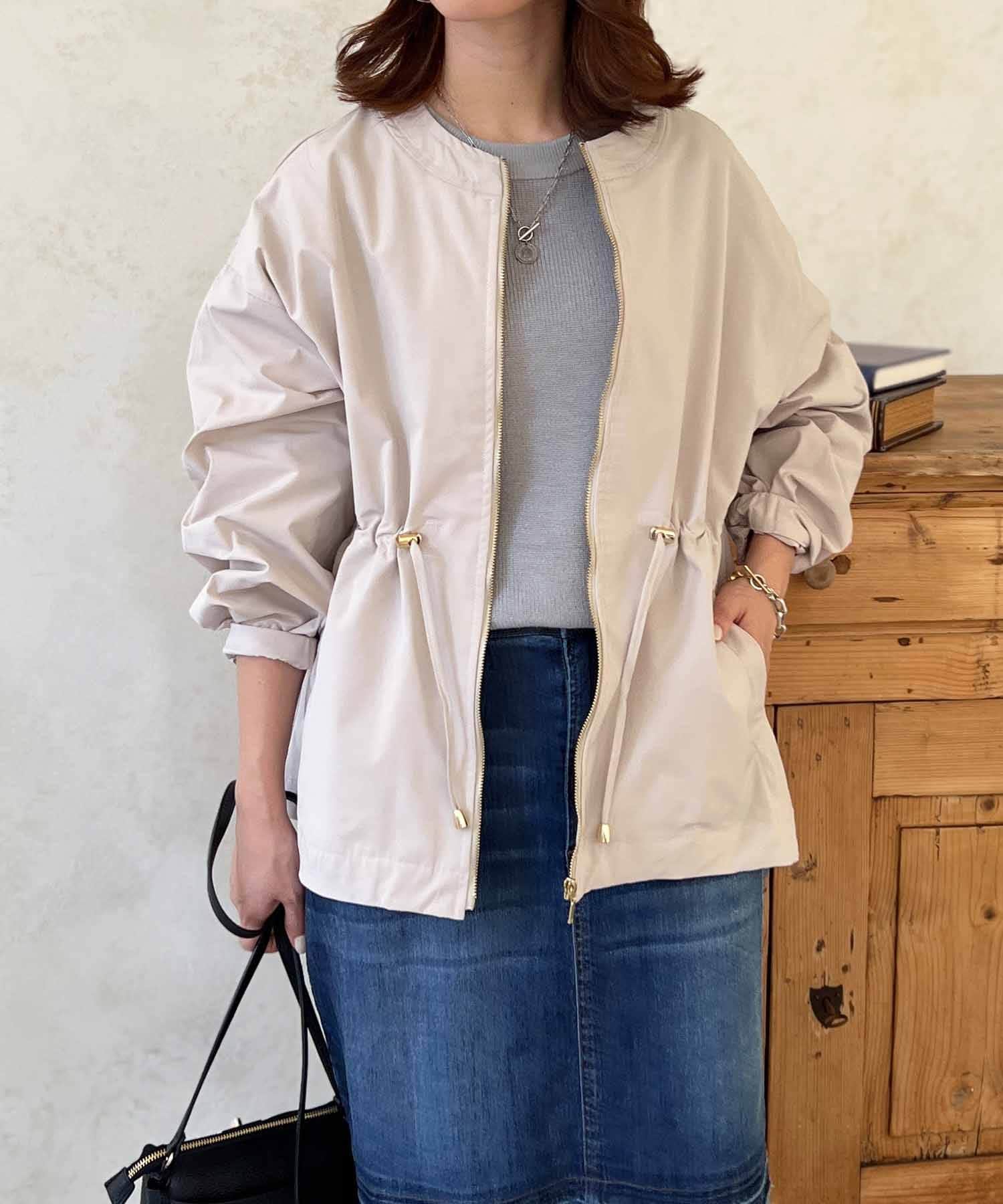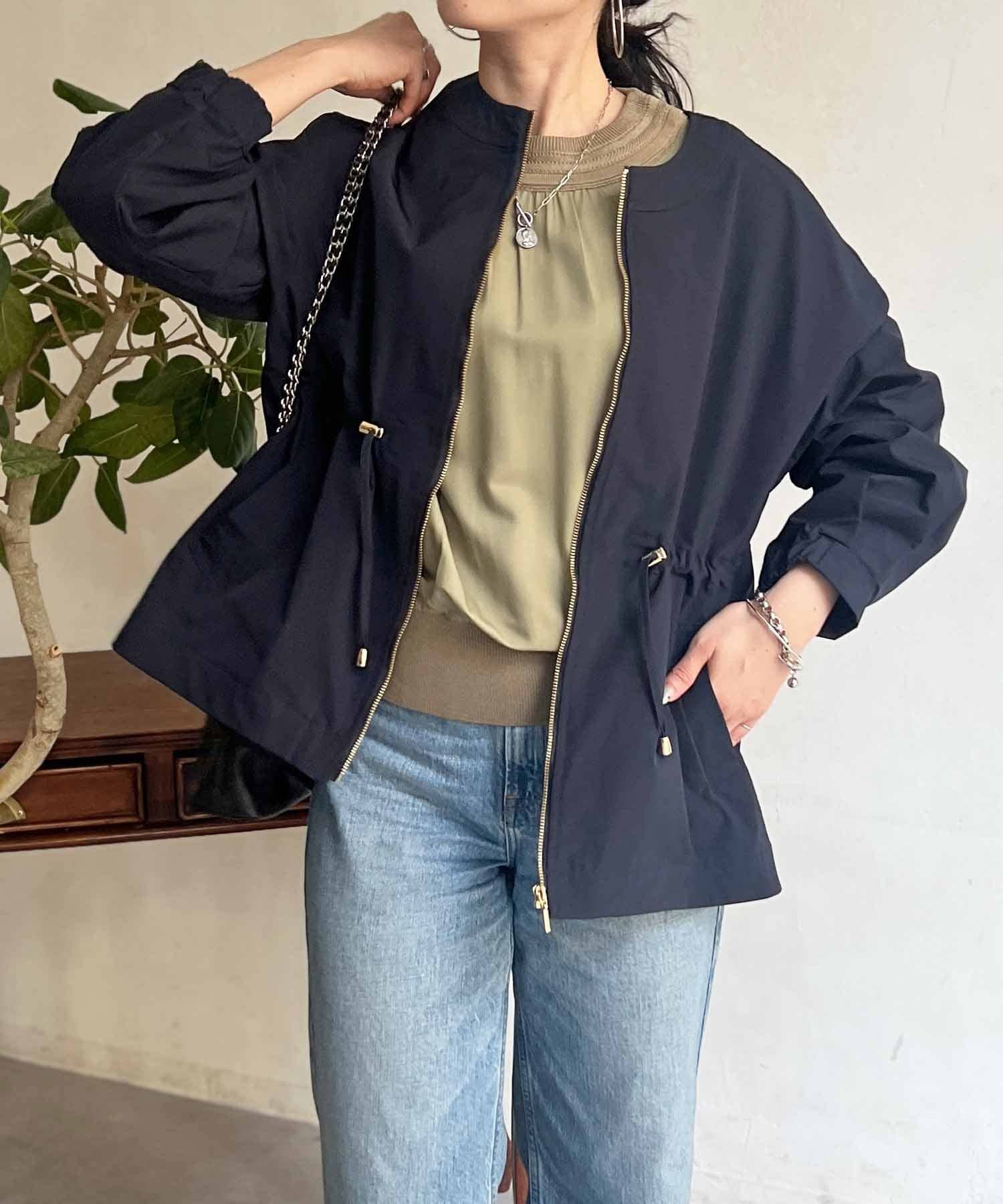 きれい見えもカジュアル見えも欲しい方におすすめのノーカラーブルゾンです。