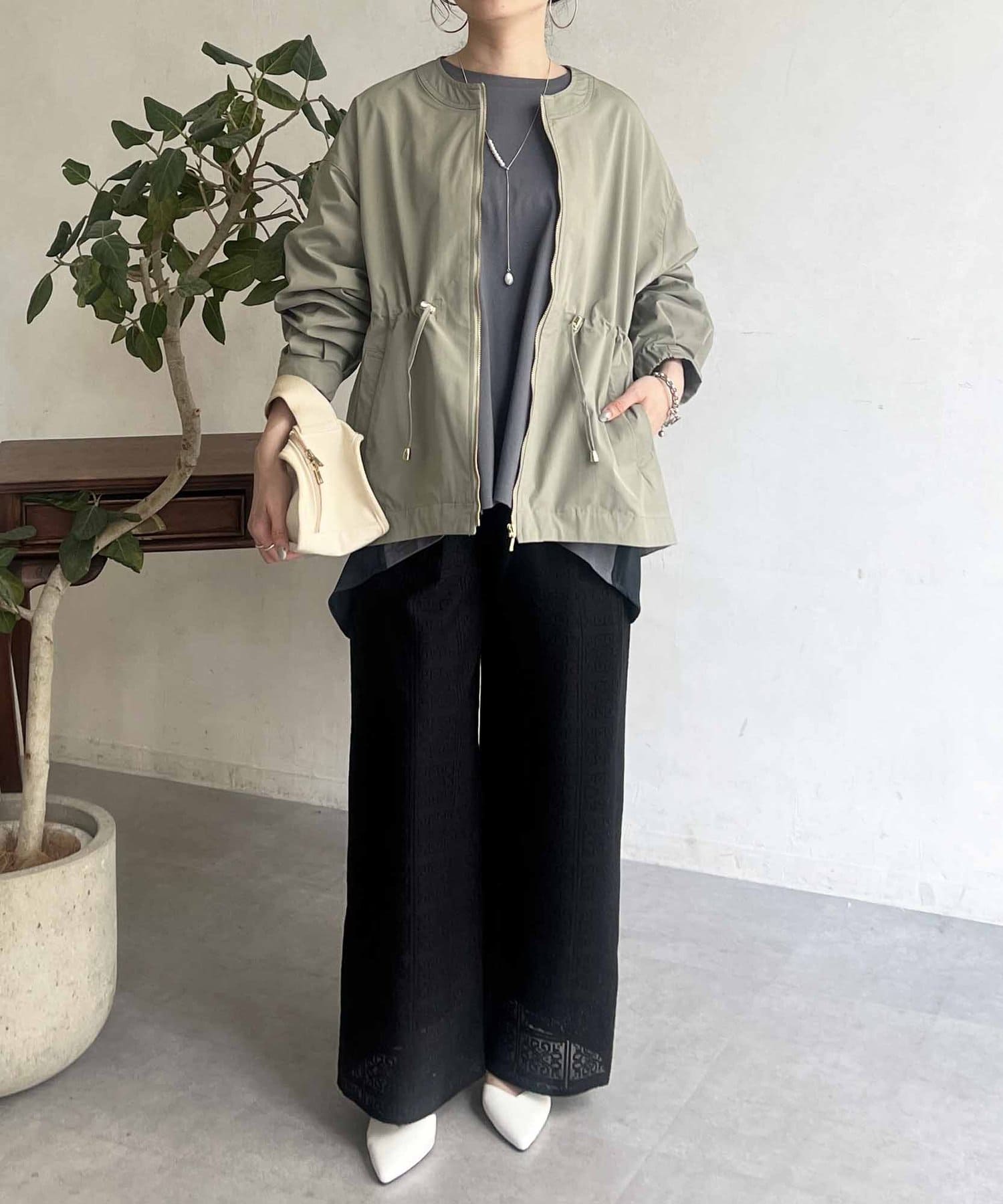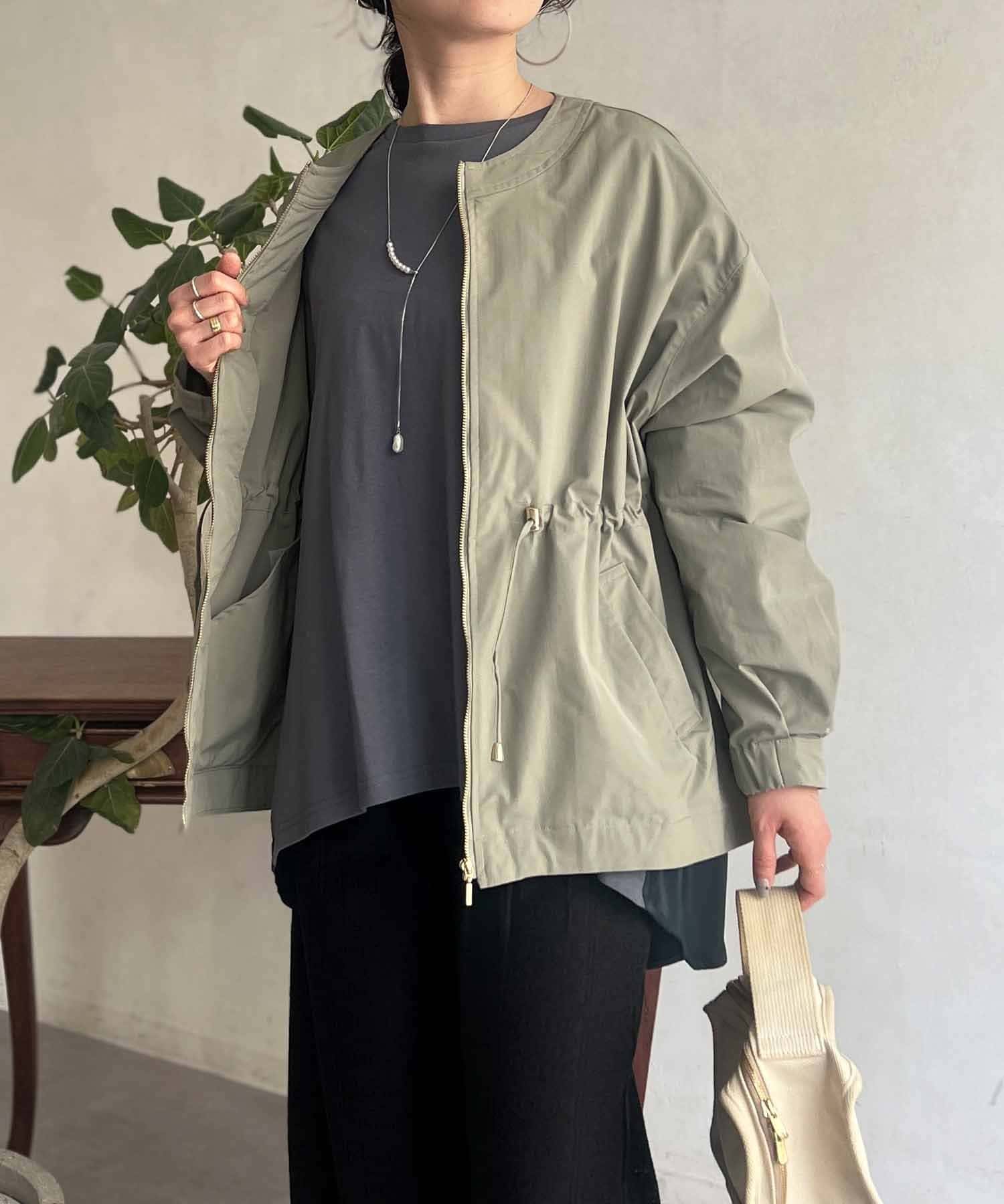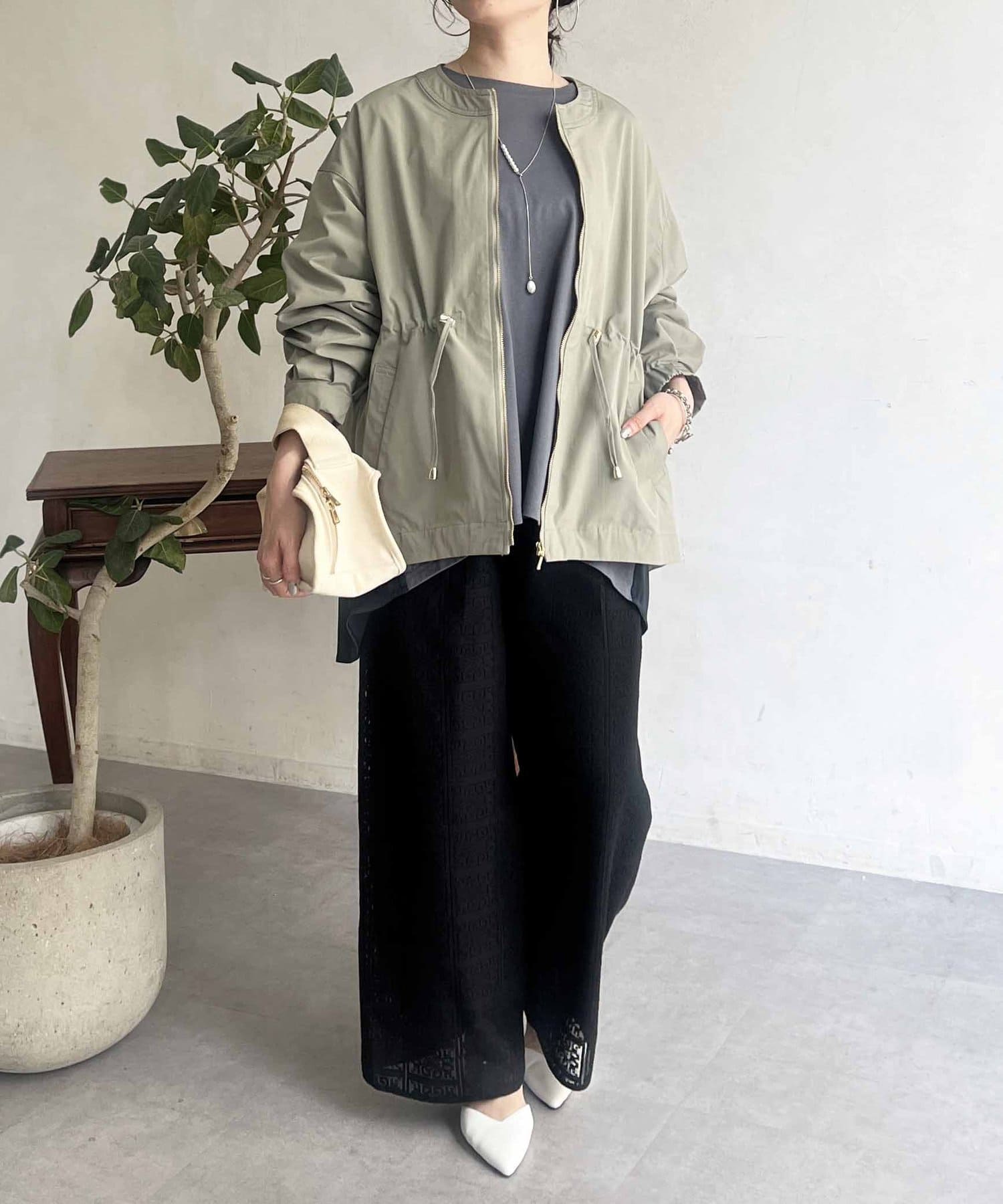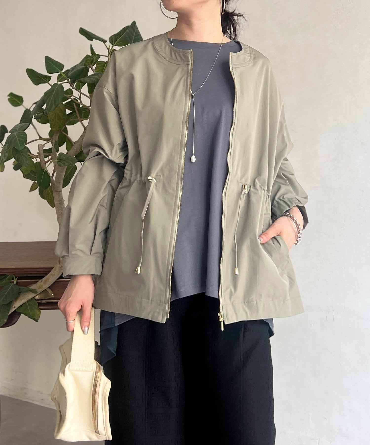 きれい見えもカジュアル見えも欲しい方におすすめのノーカラーブルゾンです。