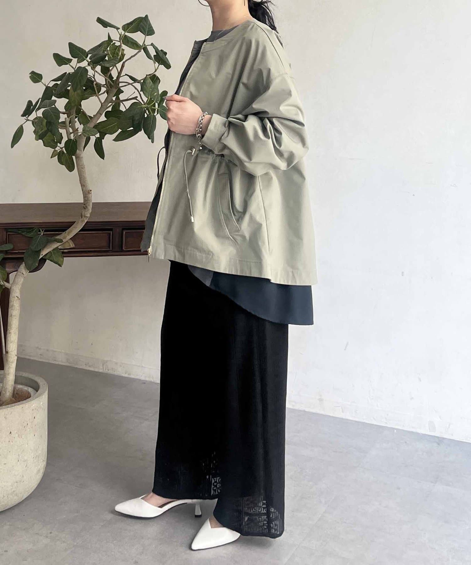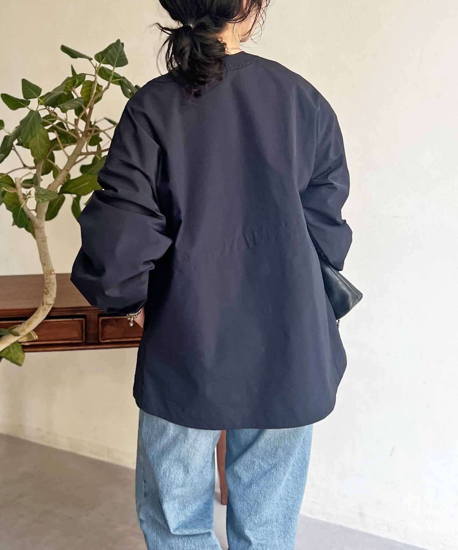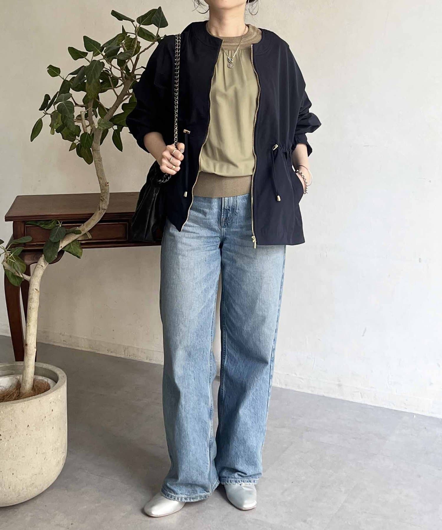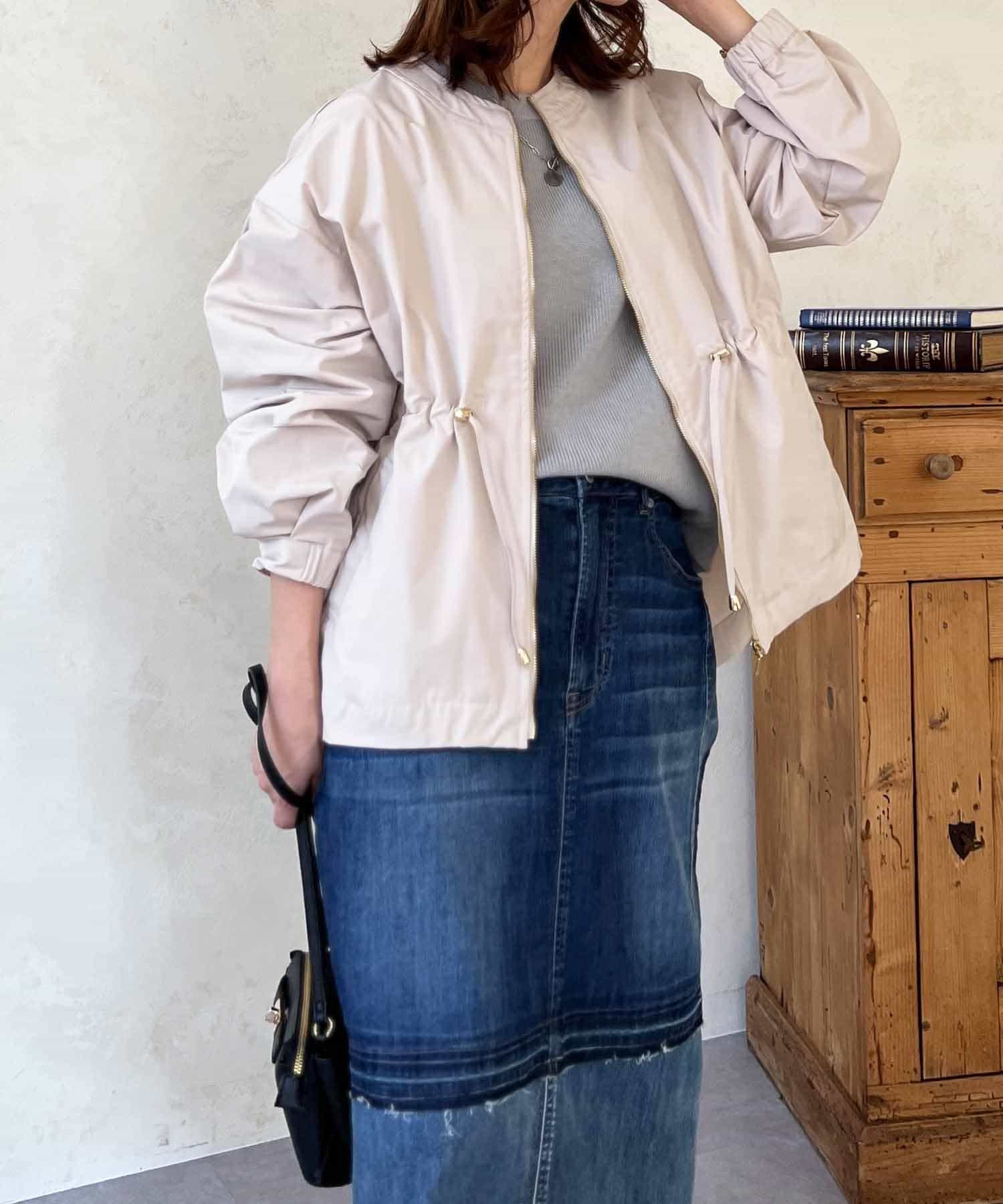 きれい見えもカジュアル見えも欲しい方におすすめのノーカラーブルゾンです。