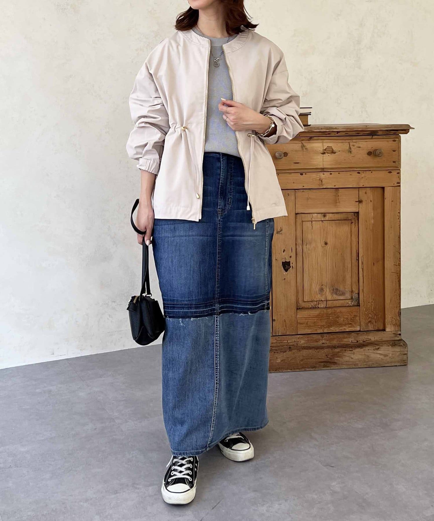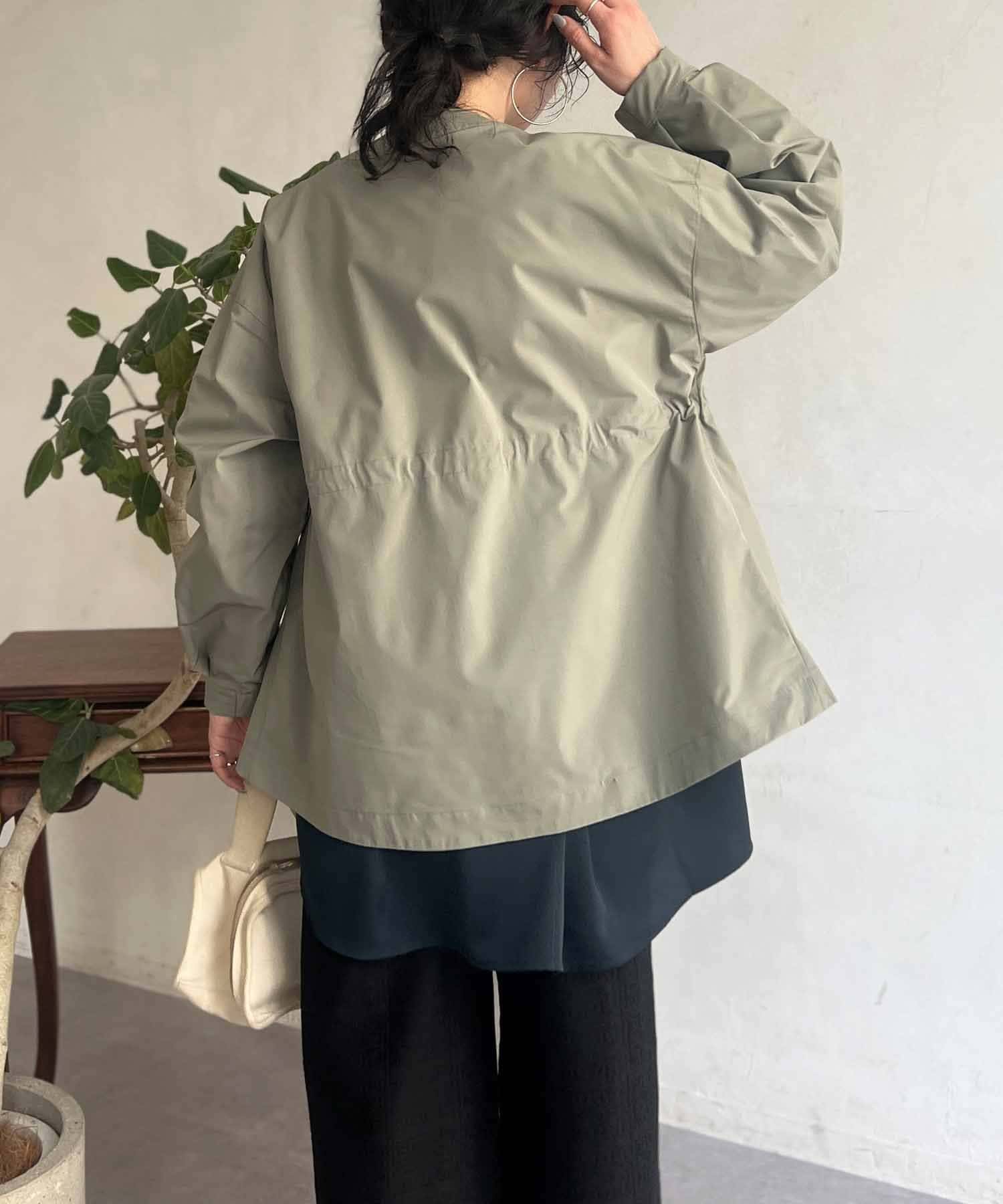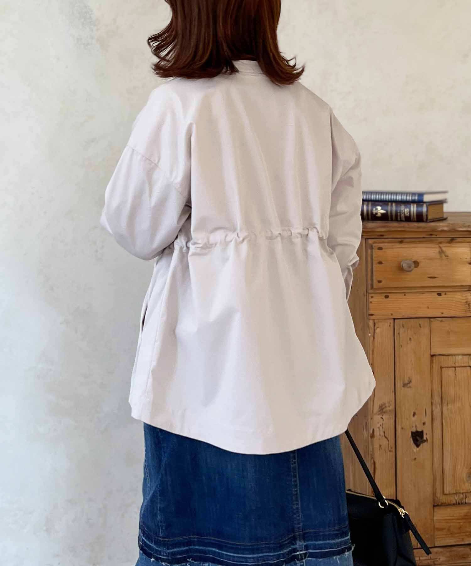 ウエストにはドロスト付き。ギュッと絞ってシルエットを変えるとペプラムのようなデザインになるので上品見えも。