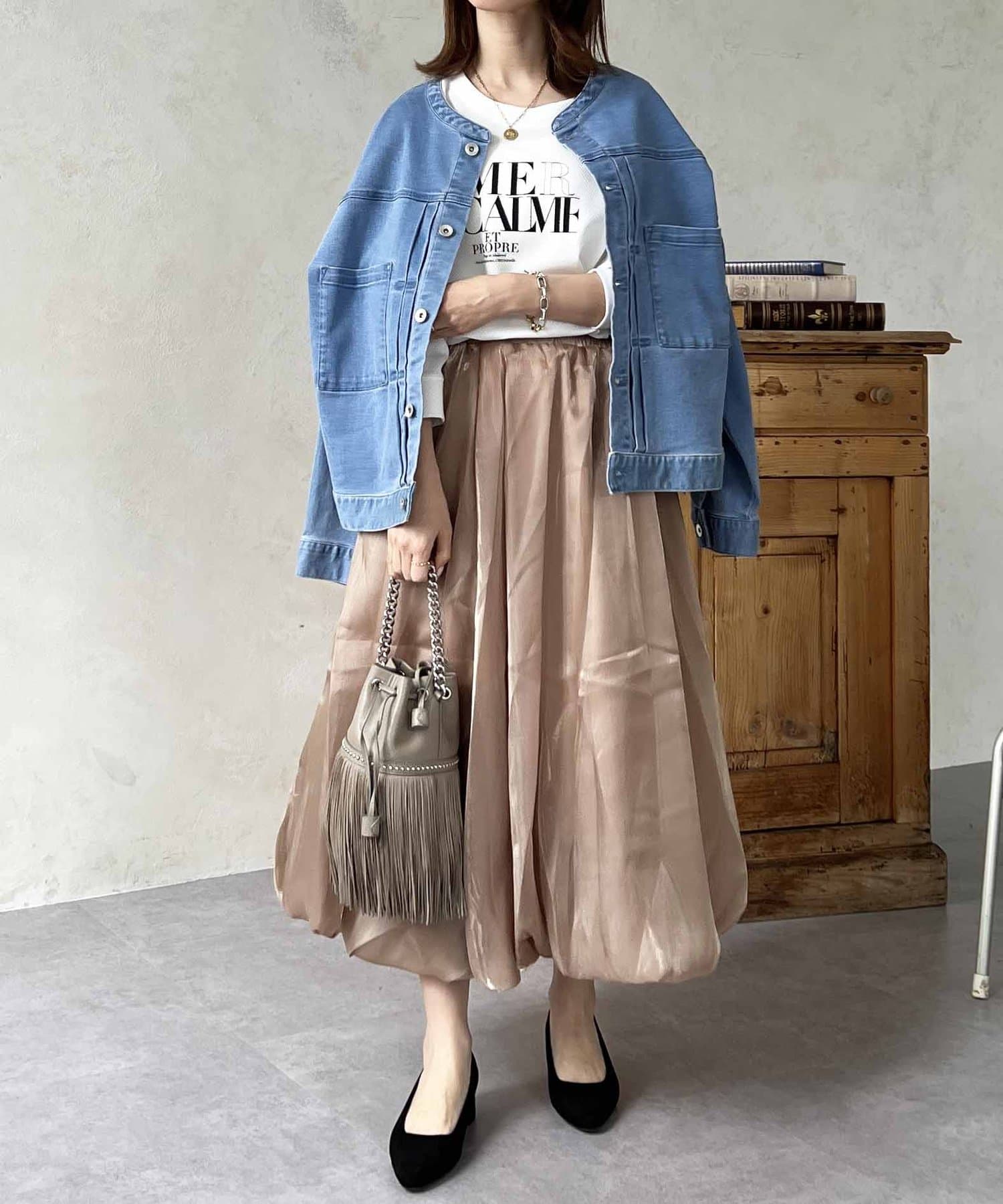 長すぎず短すぎないちょうどいい丈感なので、オールマイティに合わせやすい1枚です。