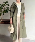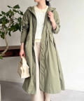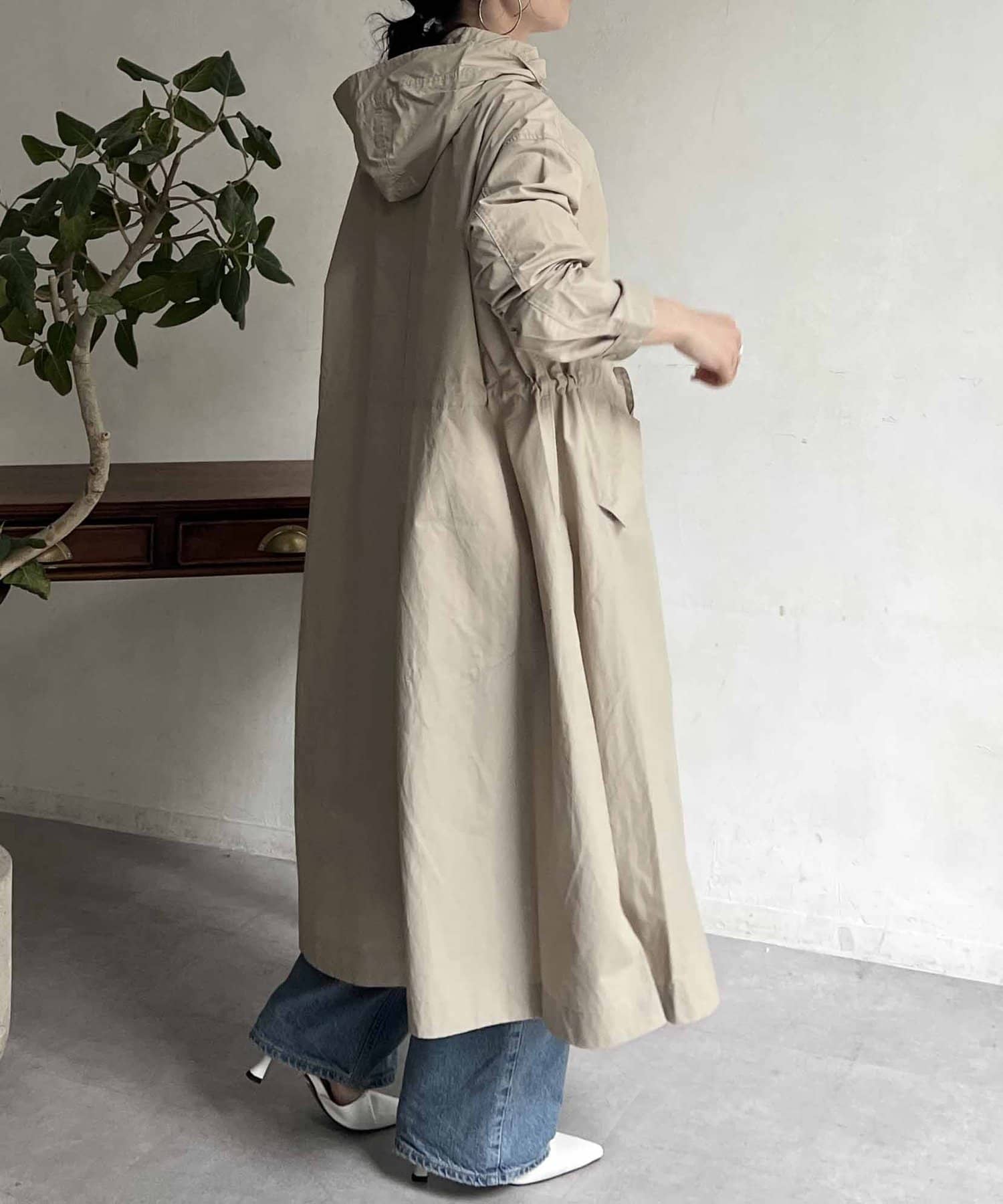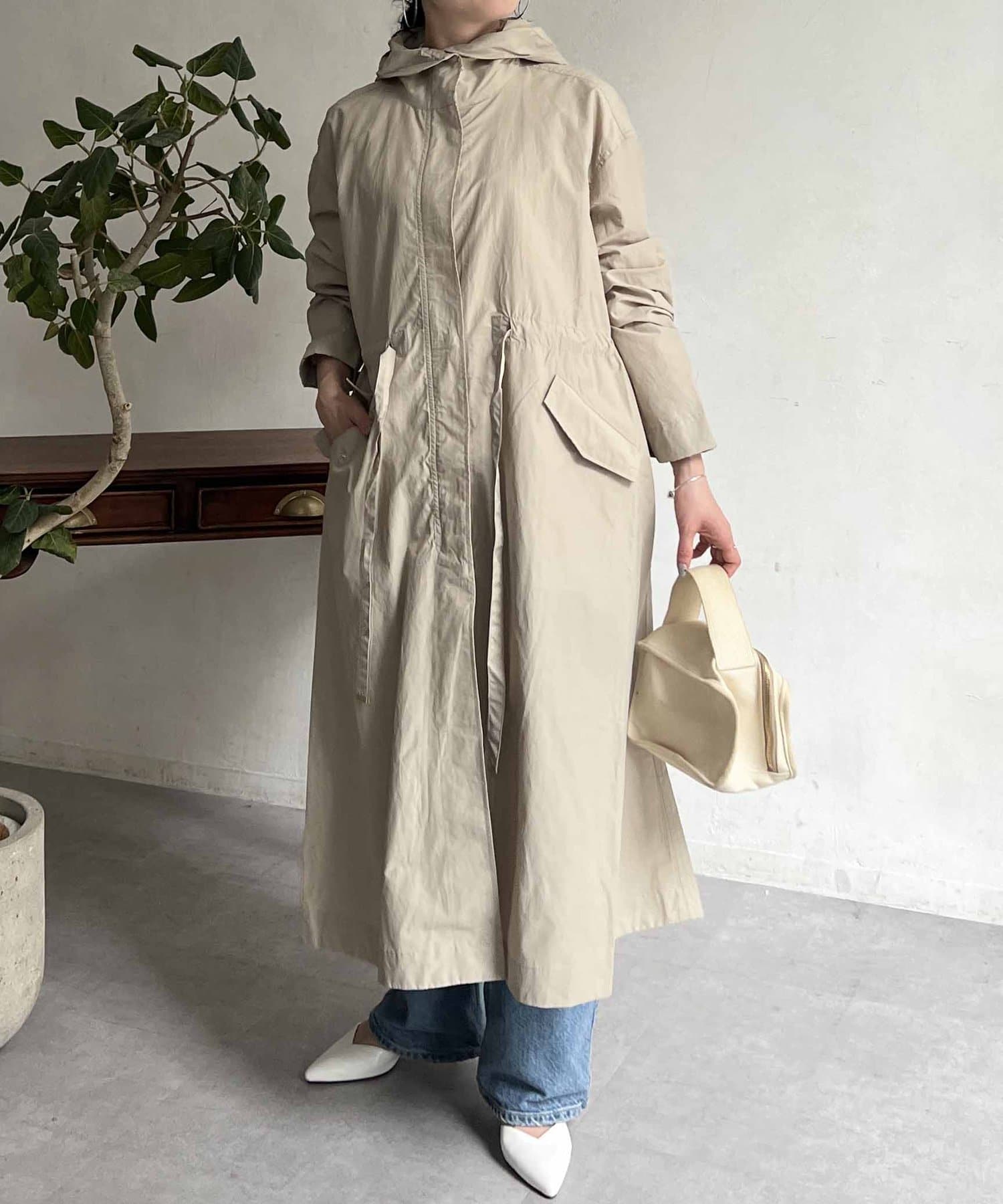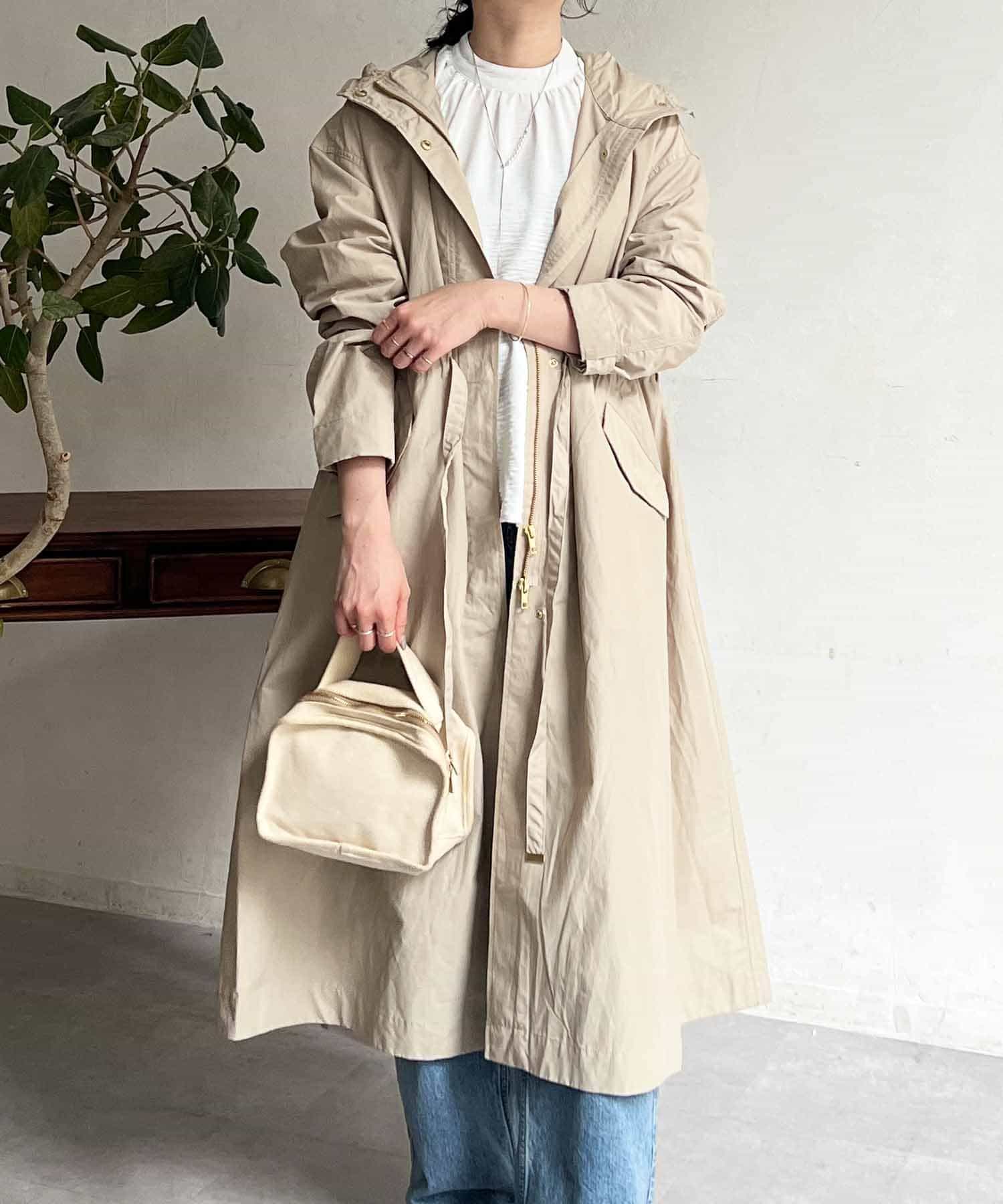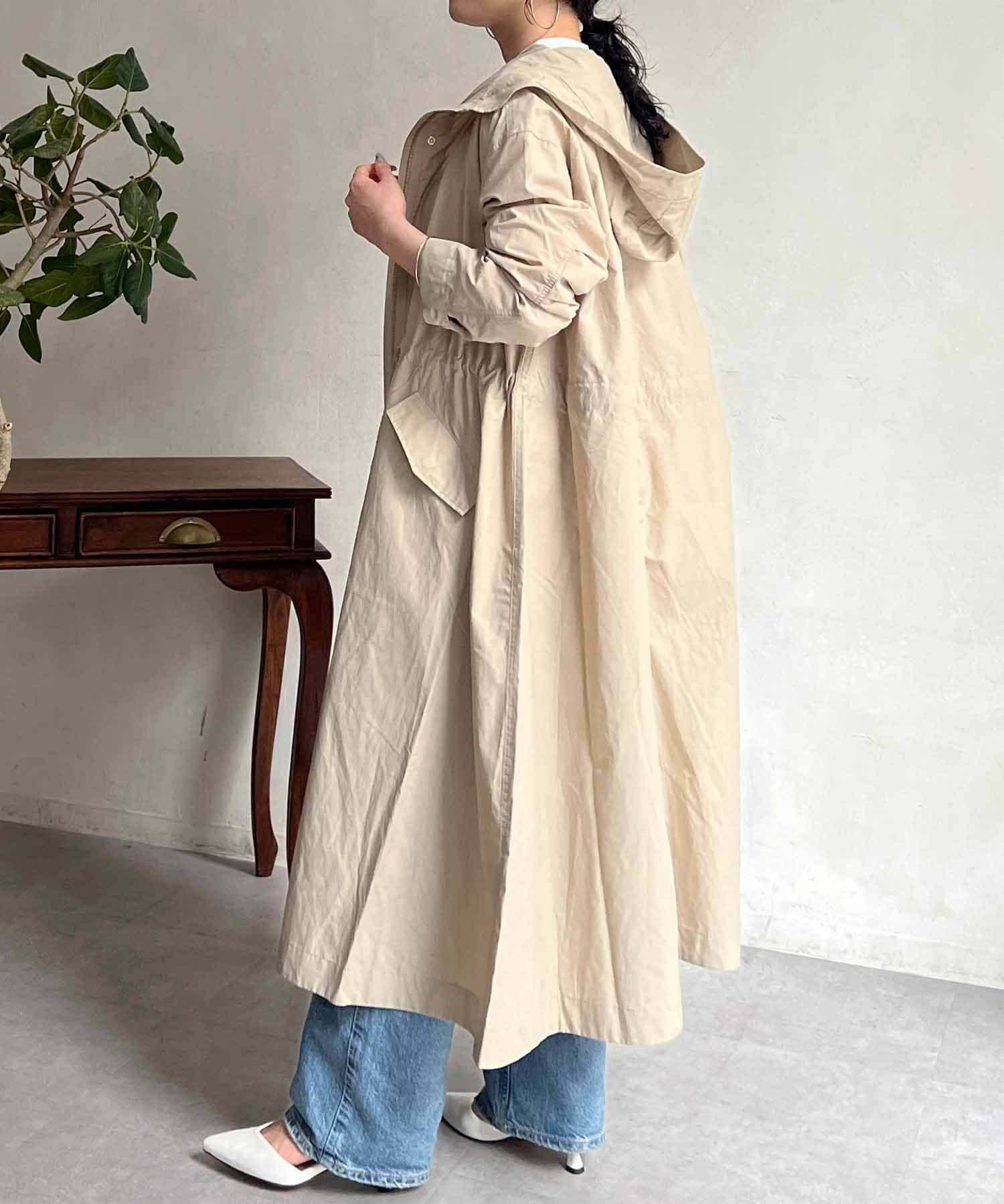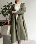 フード付きでカジュアル見えしますが、Aラインシルエットで上品見えも叶う1枚。