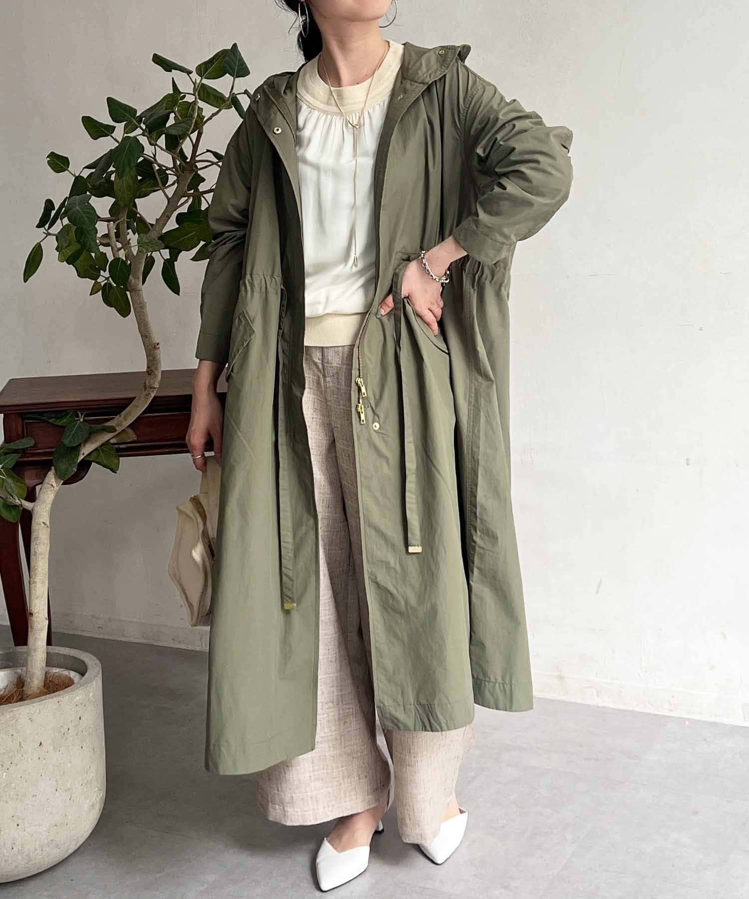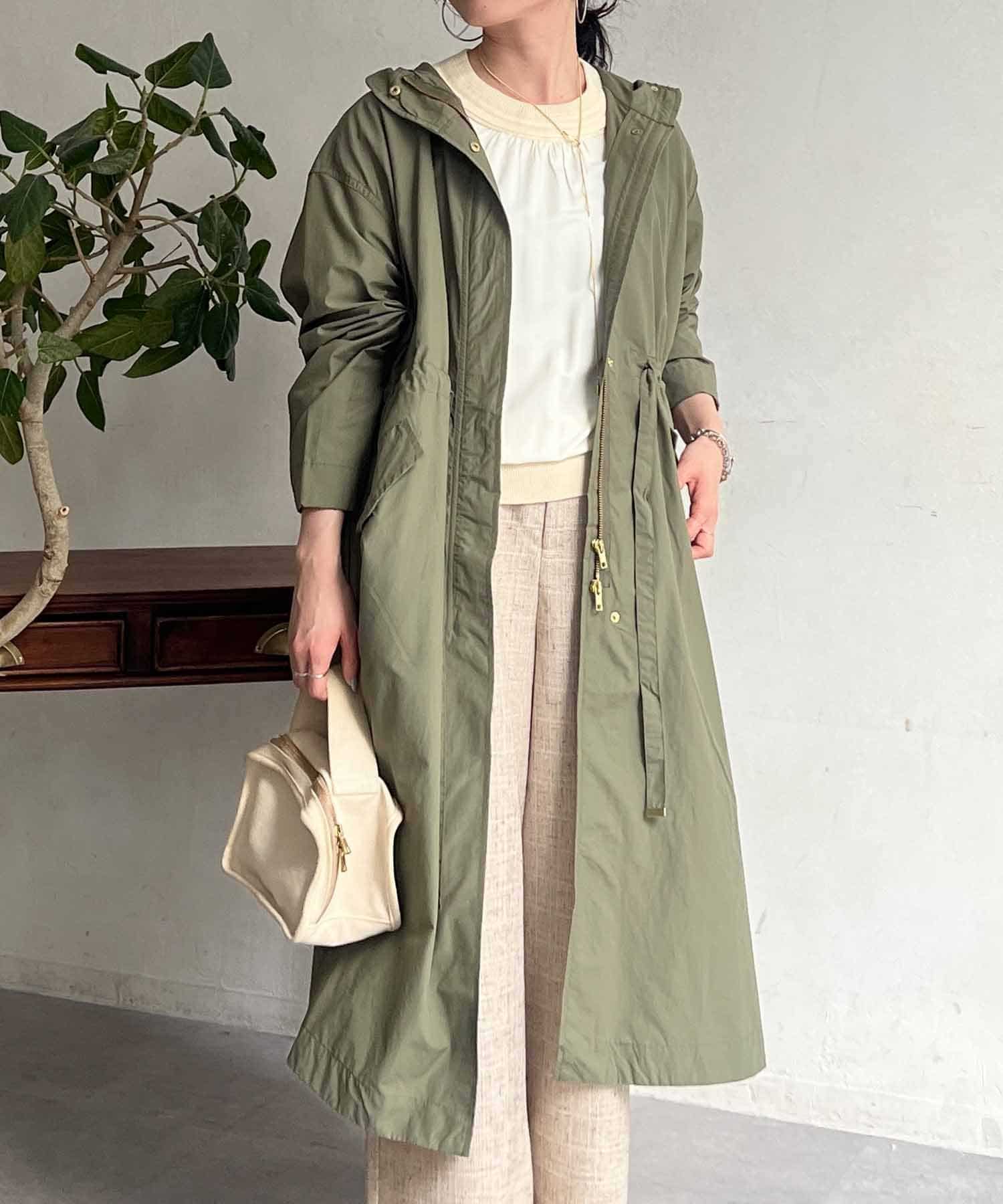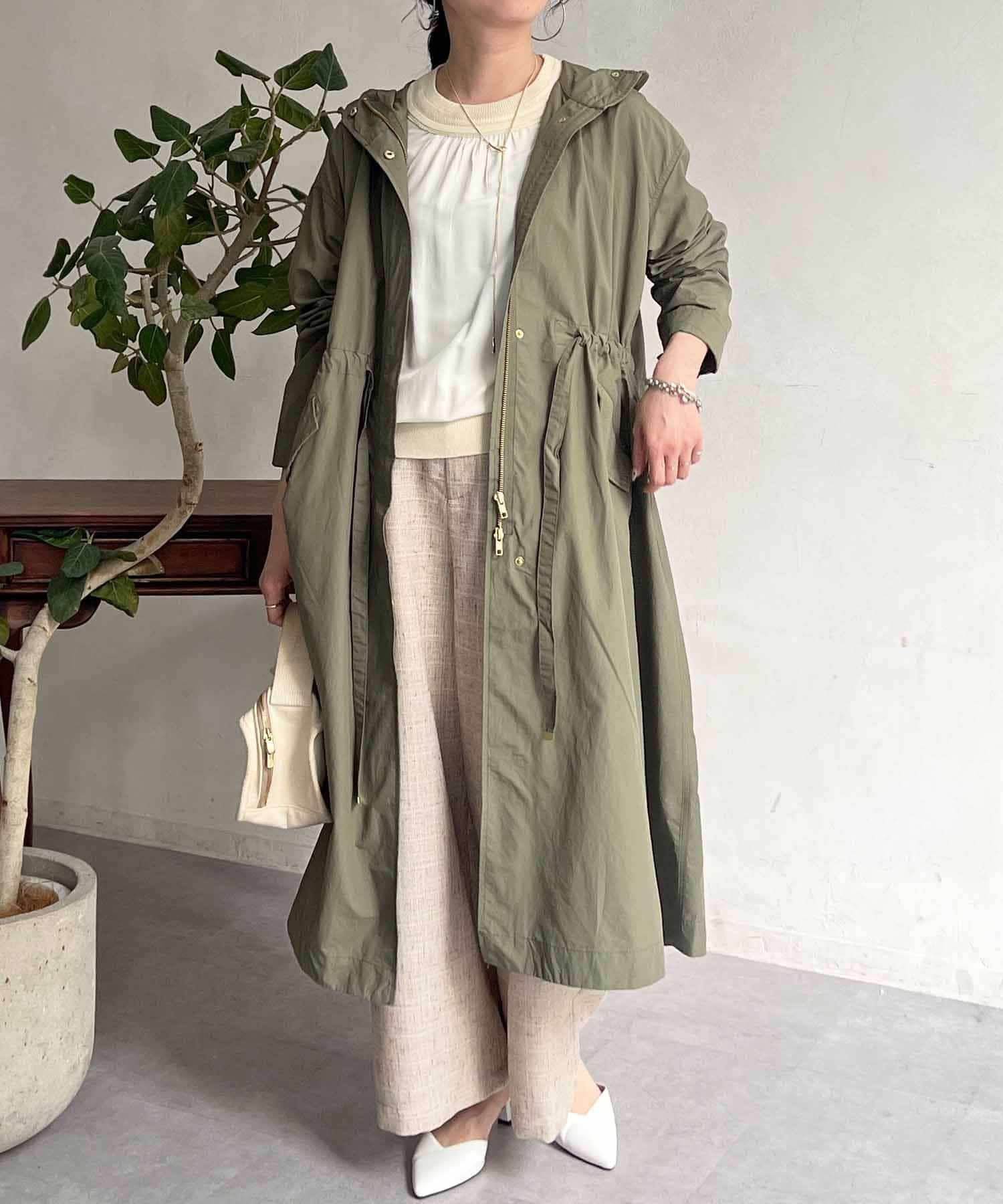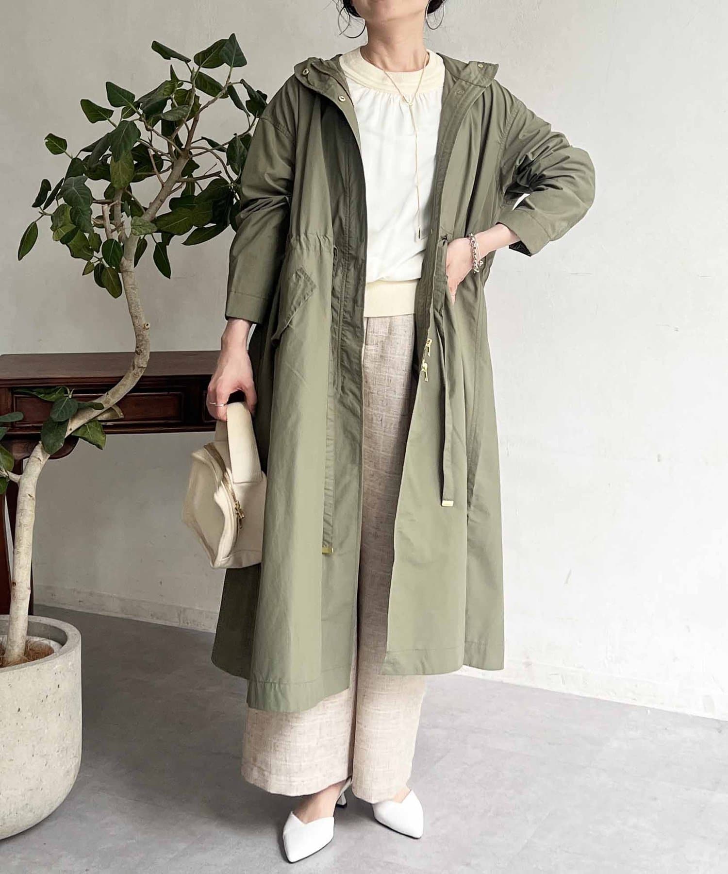 パンツスタイルやワンピーススタイルなどテイスト問わず着回せる春コートです。