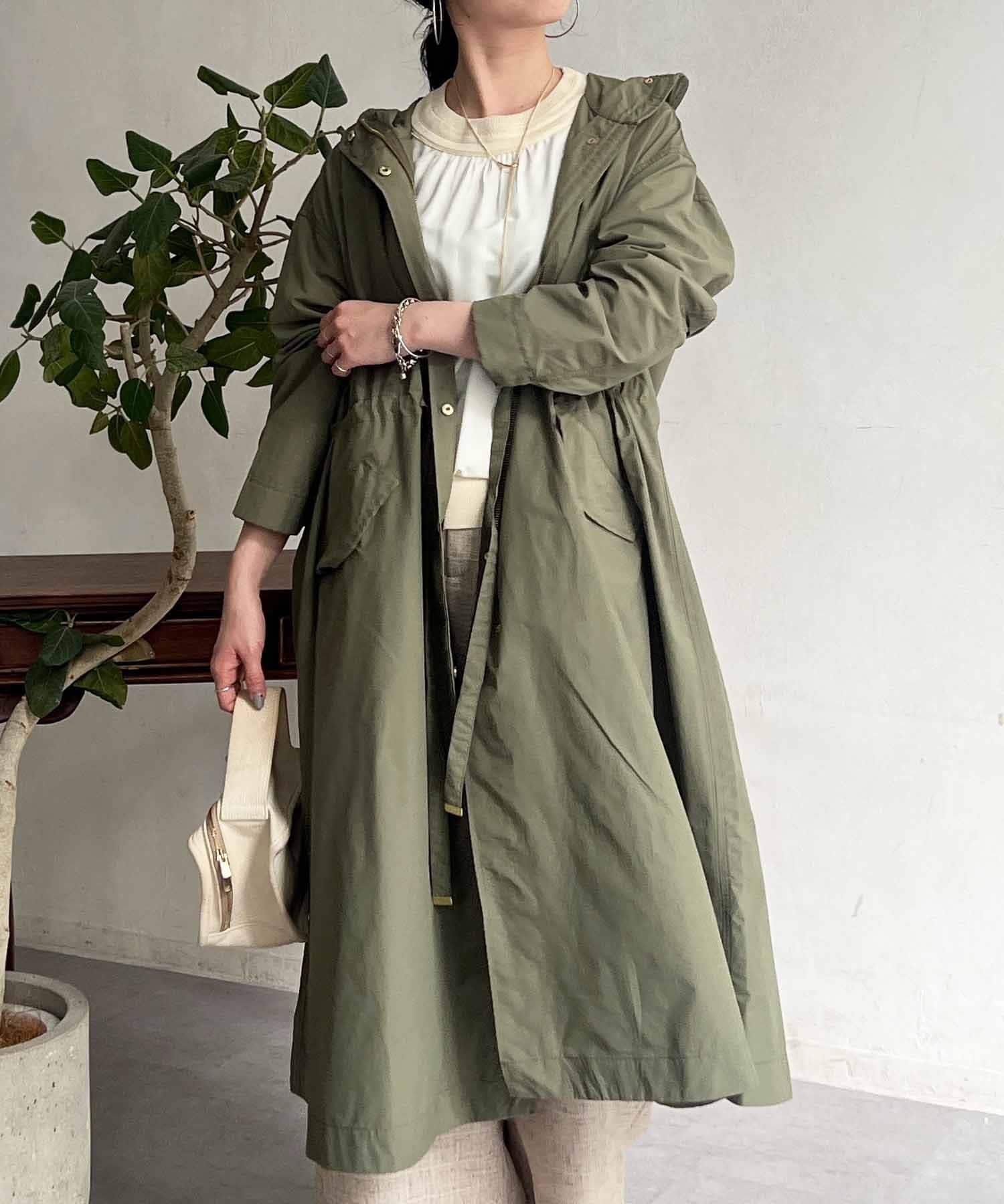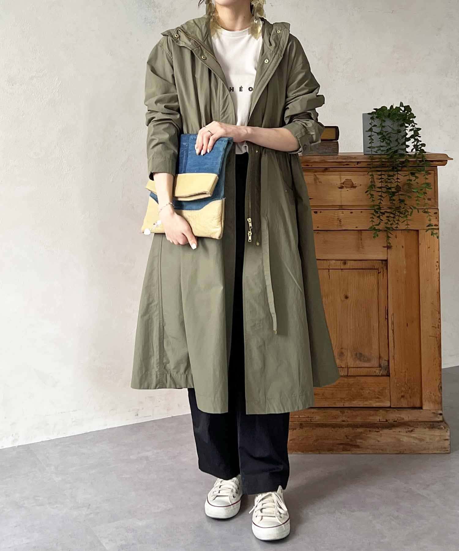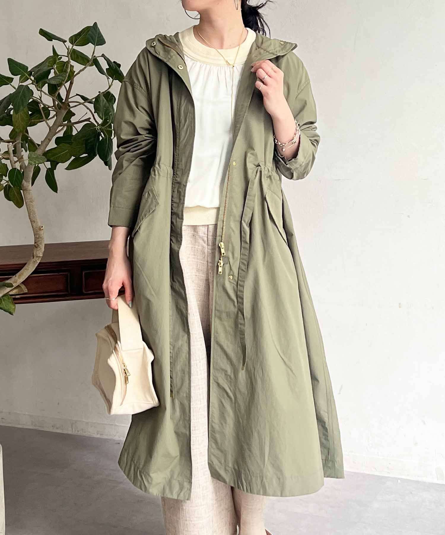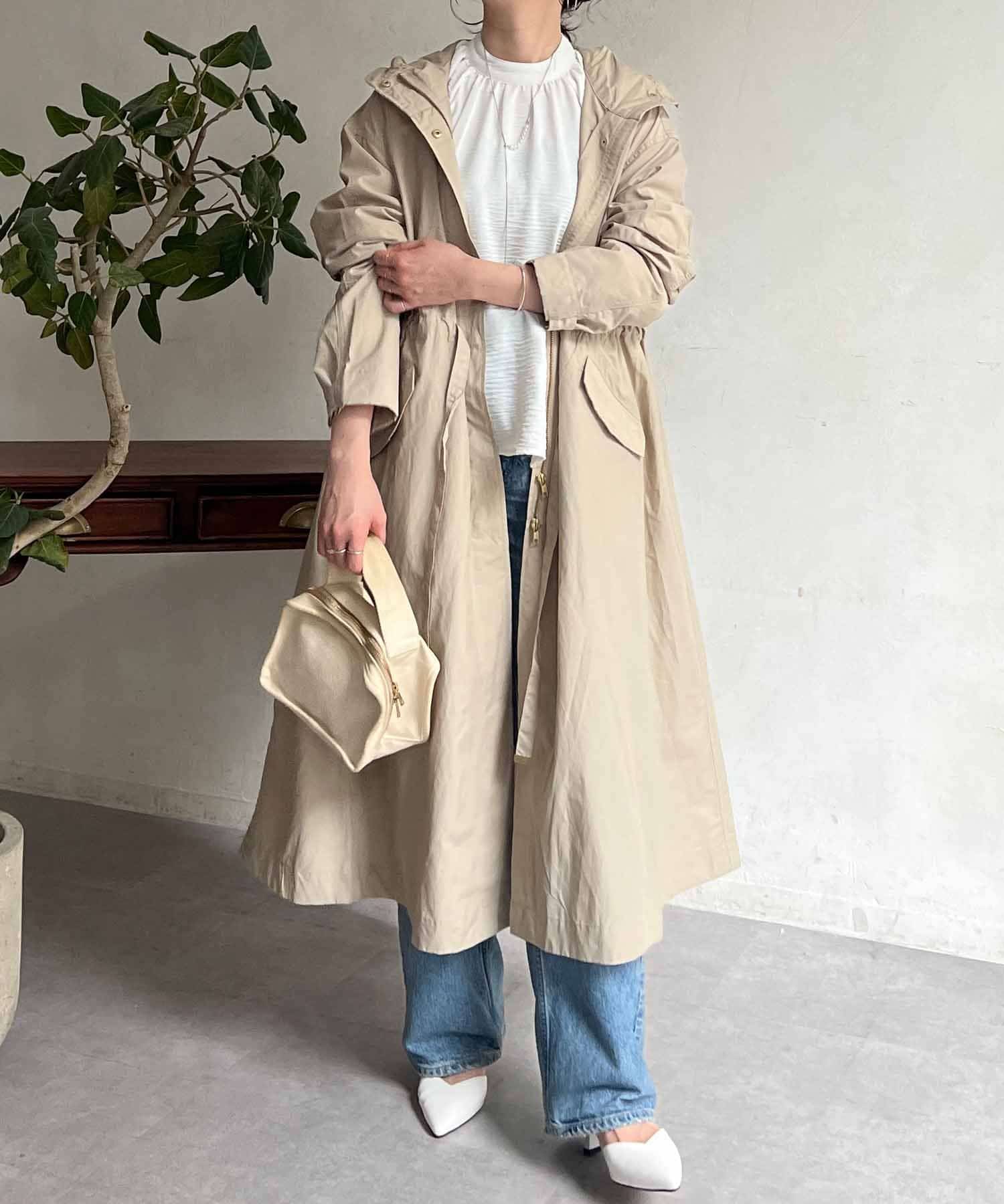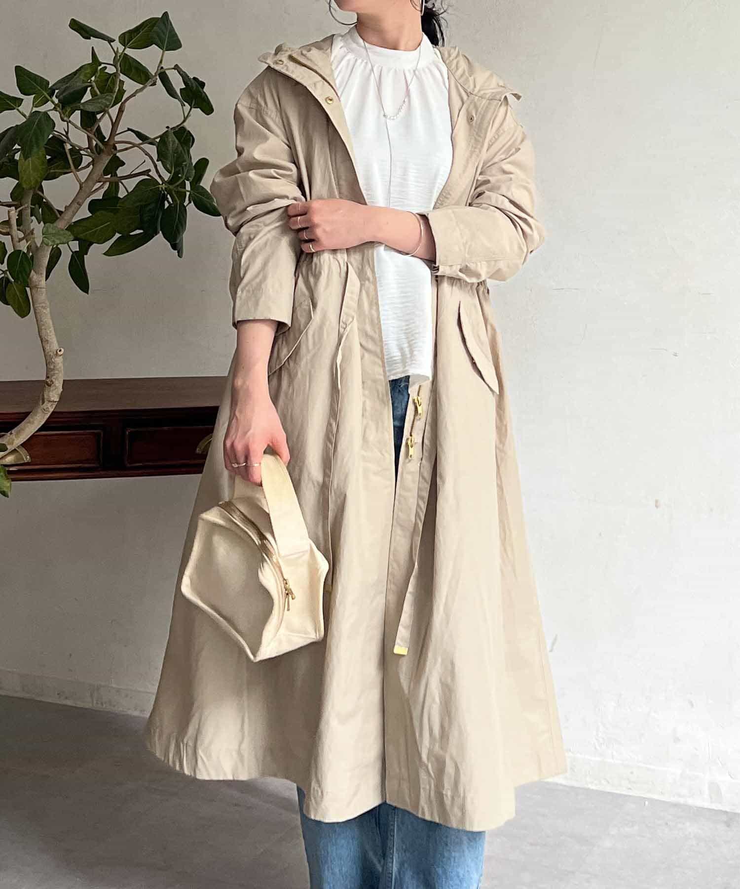 パンツスタイルやワンピーススタイルなどテイスト問わず着回せる春コートです。