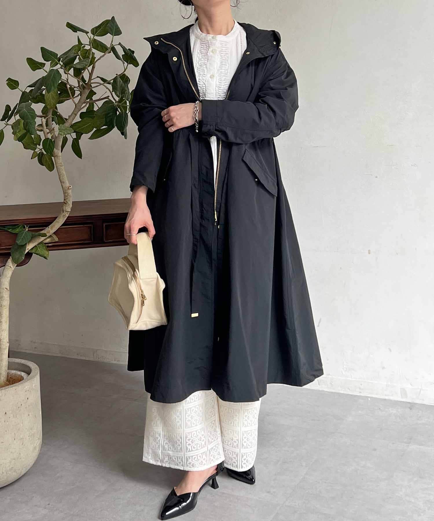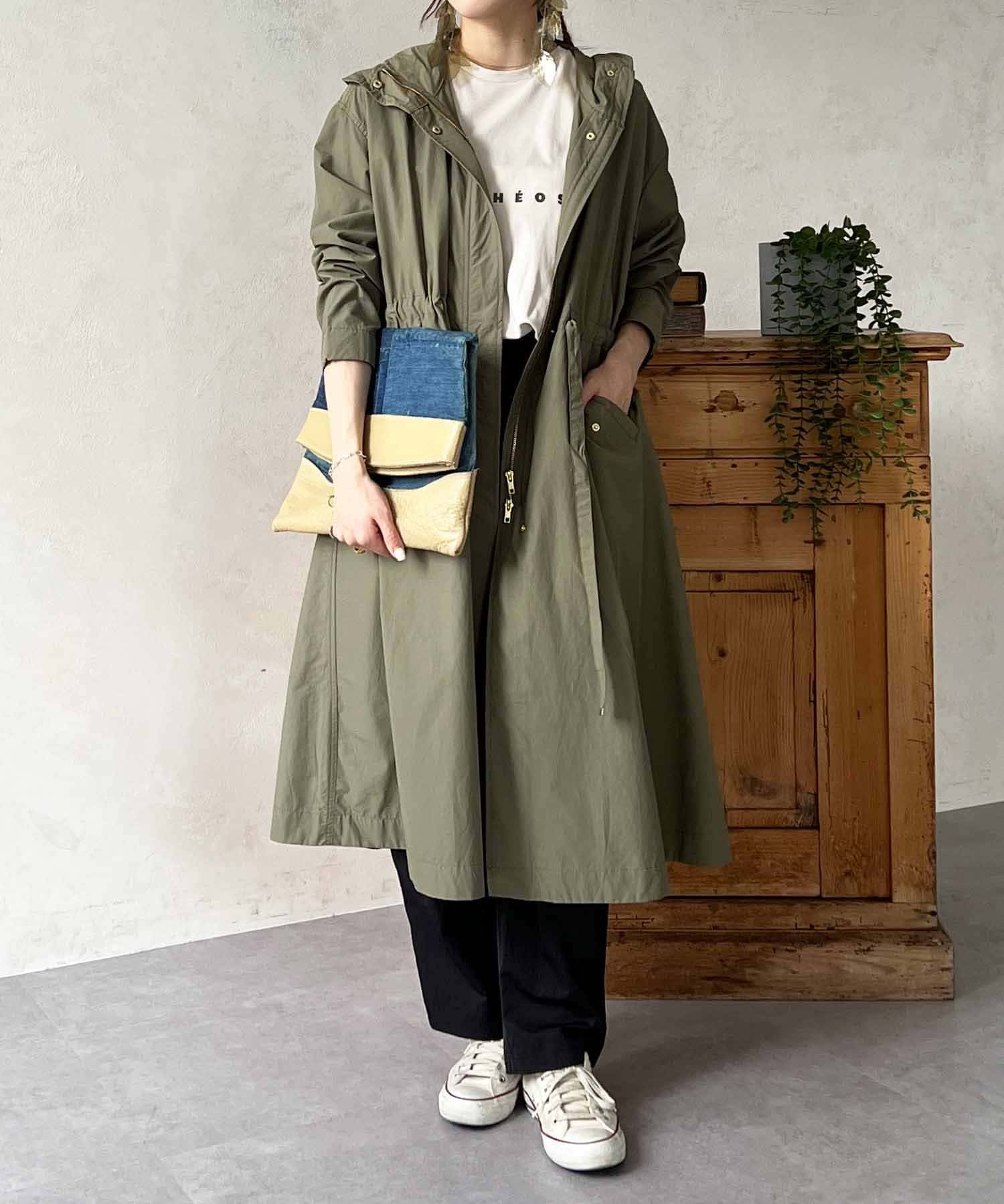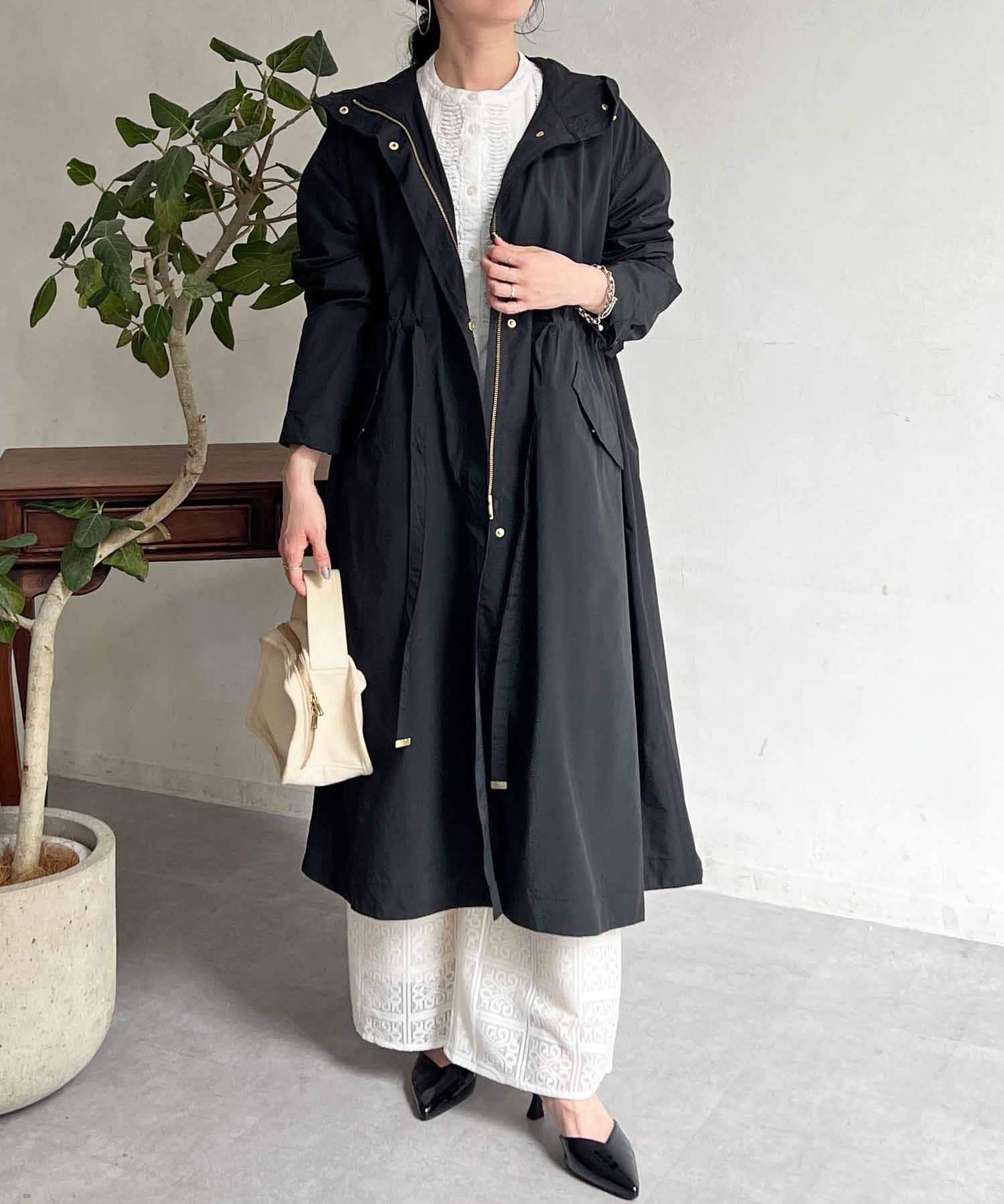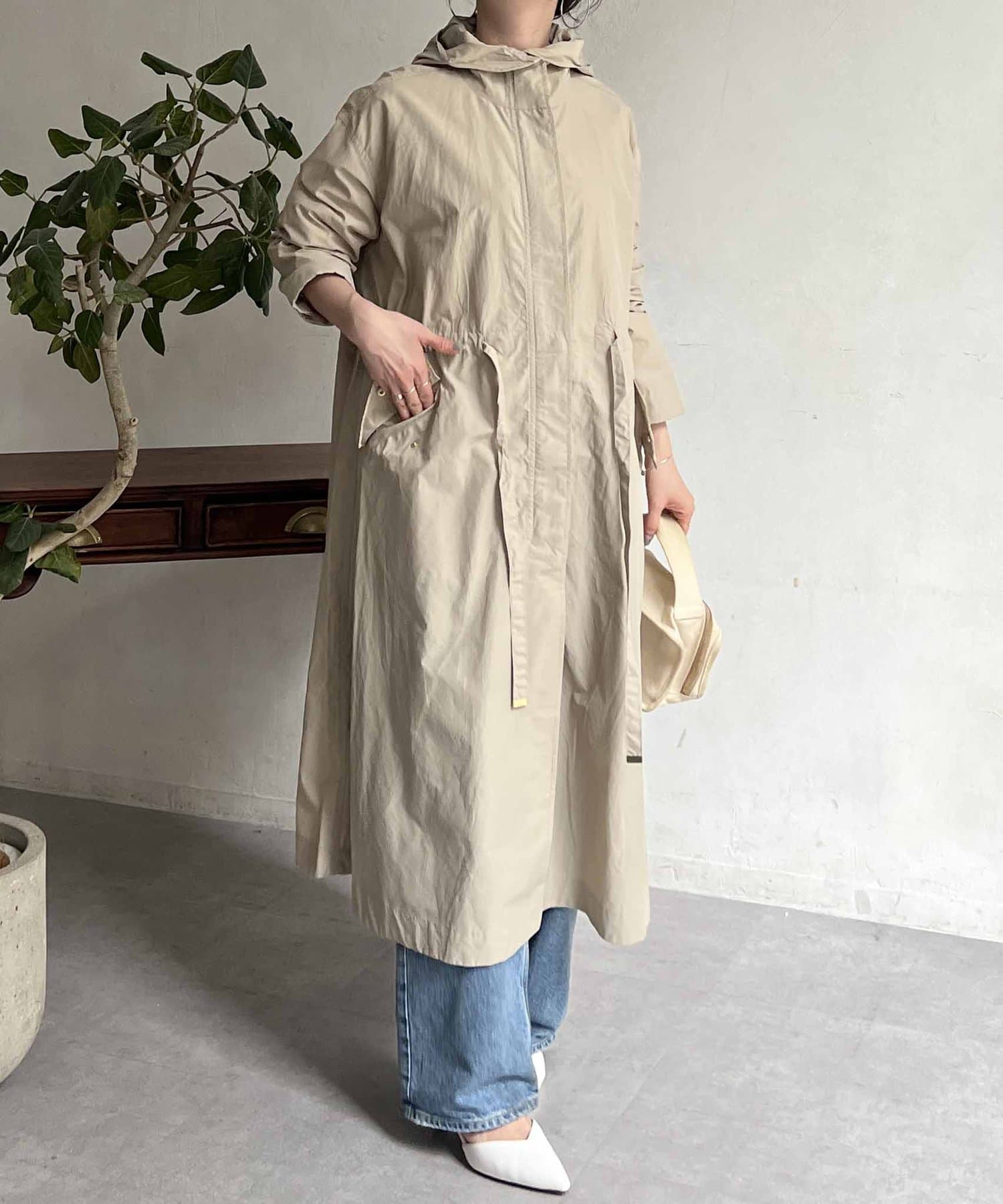 パンツスタイルやワンピーススタイルなどテイスト問わず着回せる春コートです。