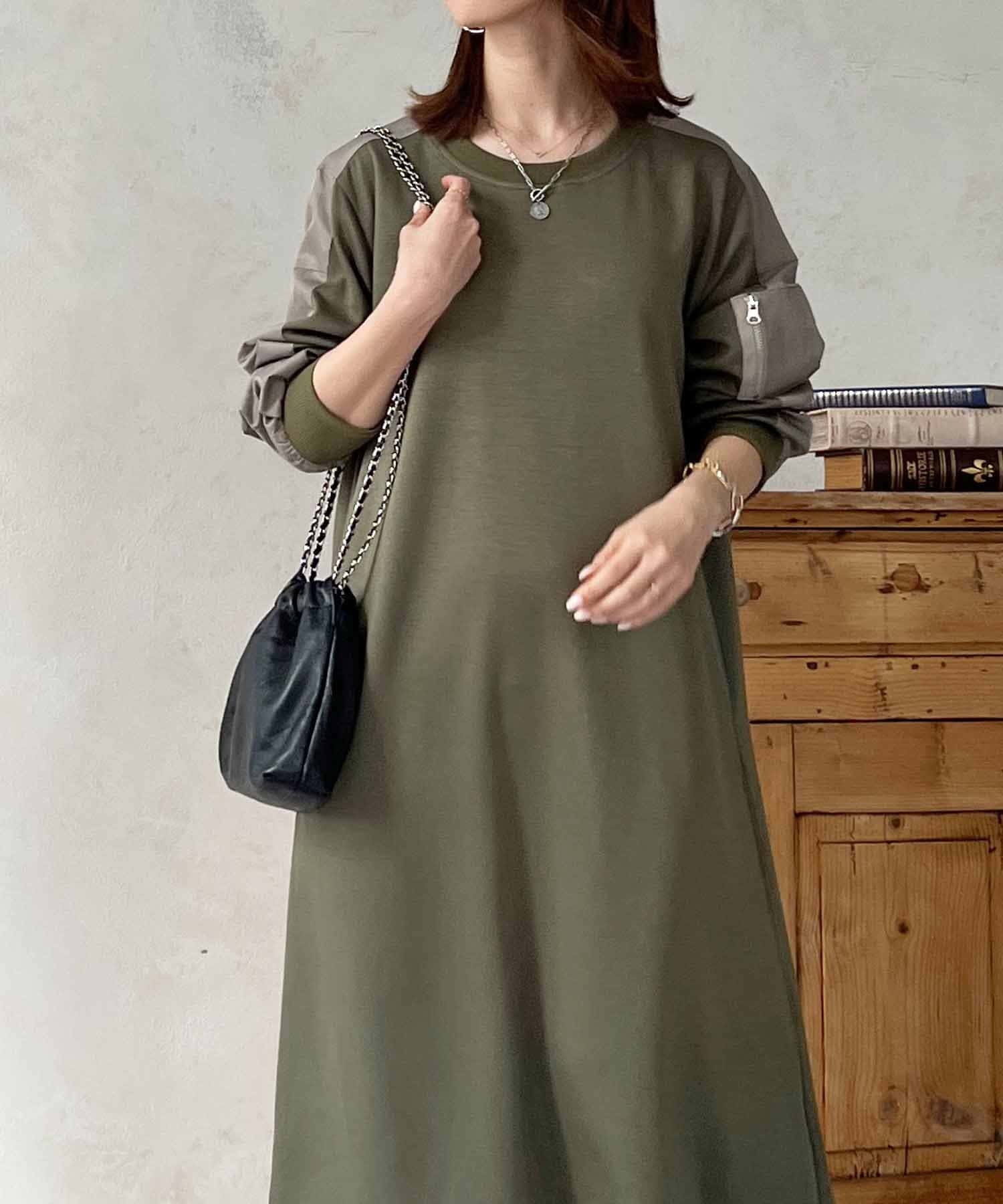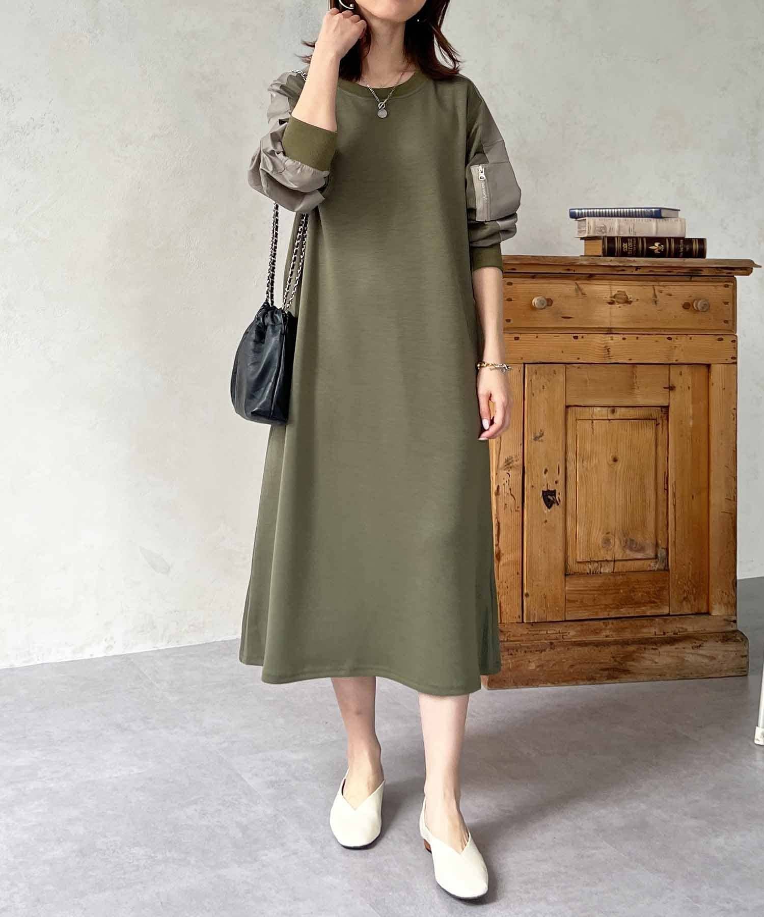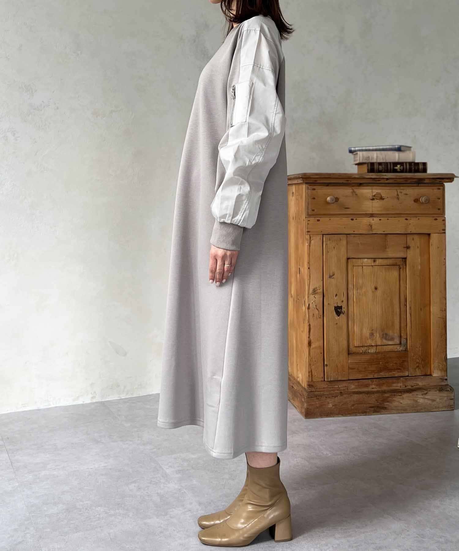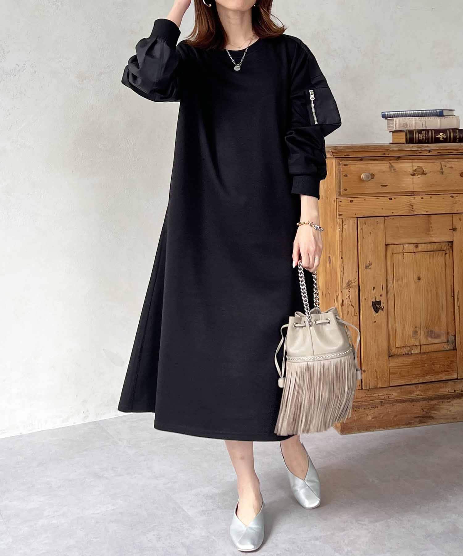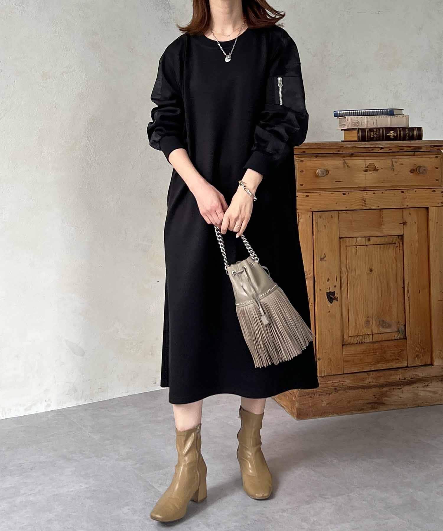 MA1のような袖デザインが特徴的!シンプルですがデザインの効いたワンピースです。