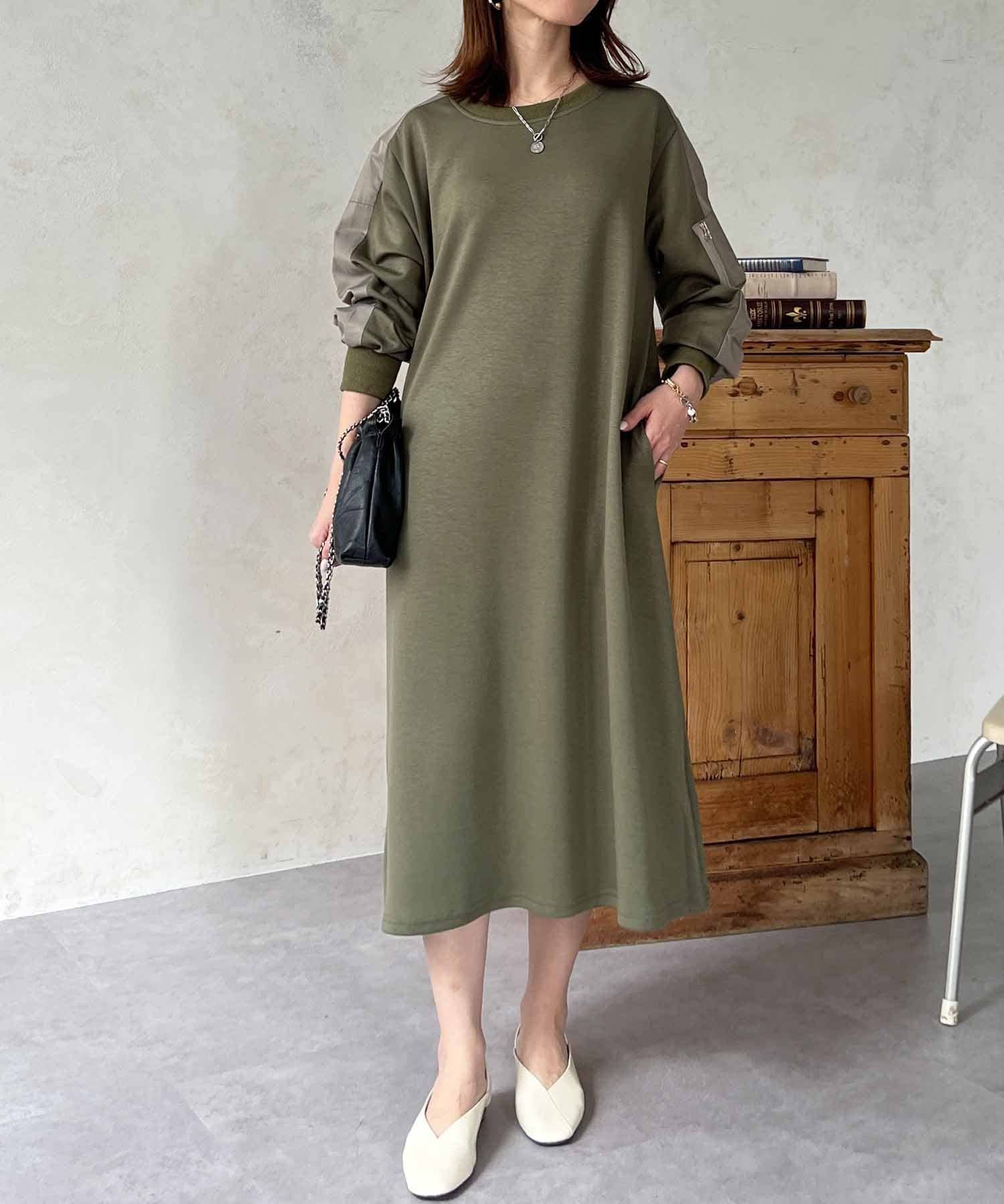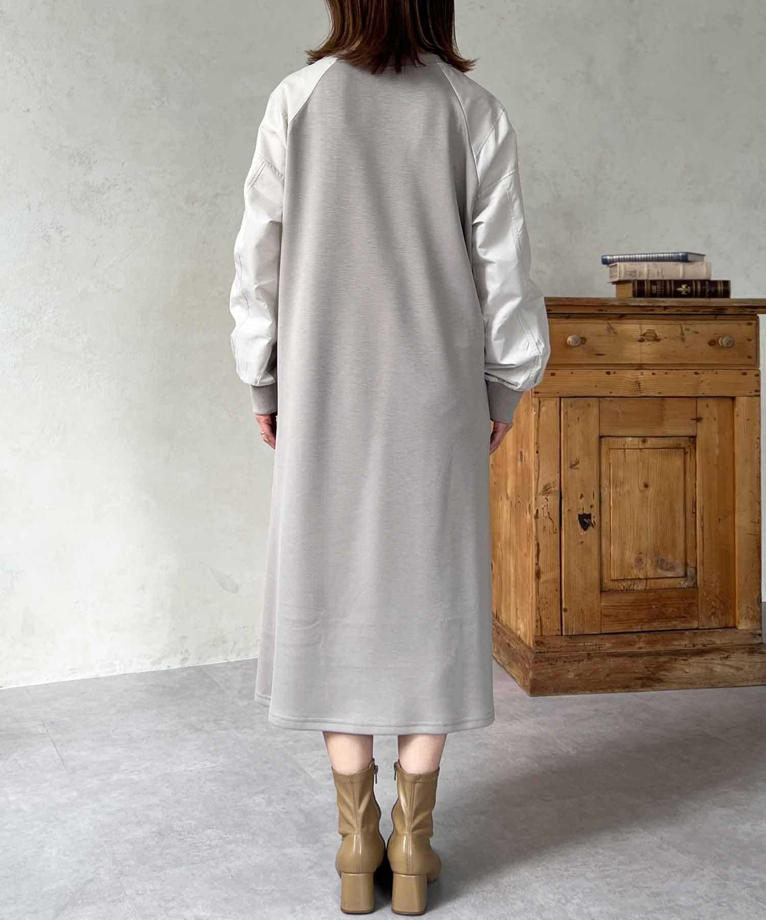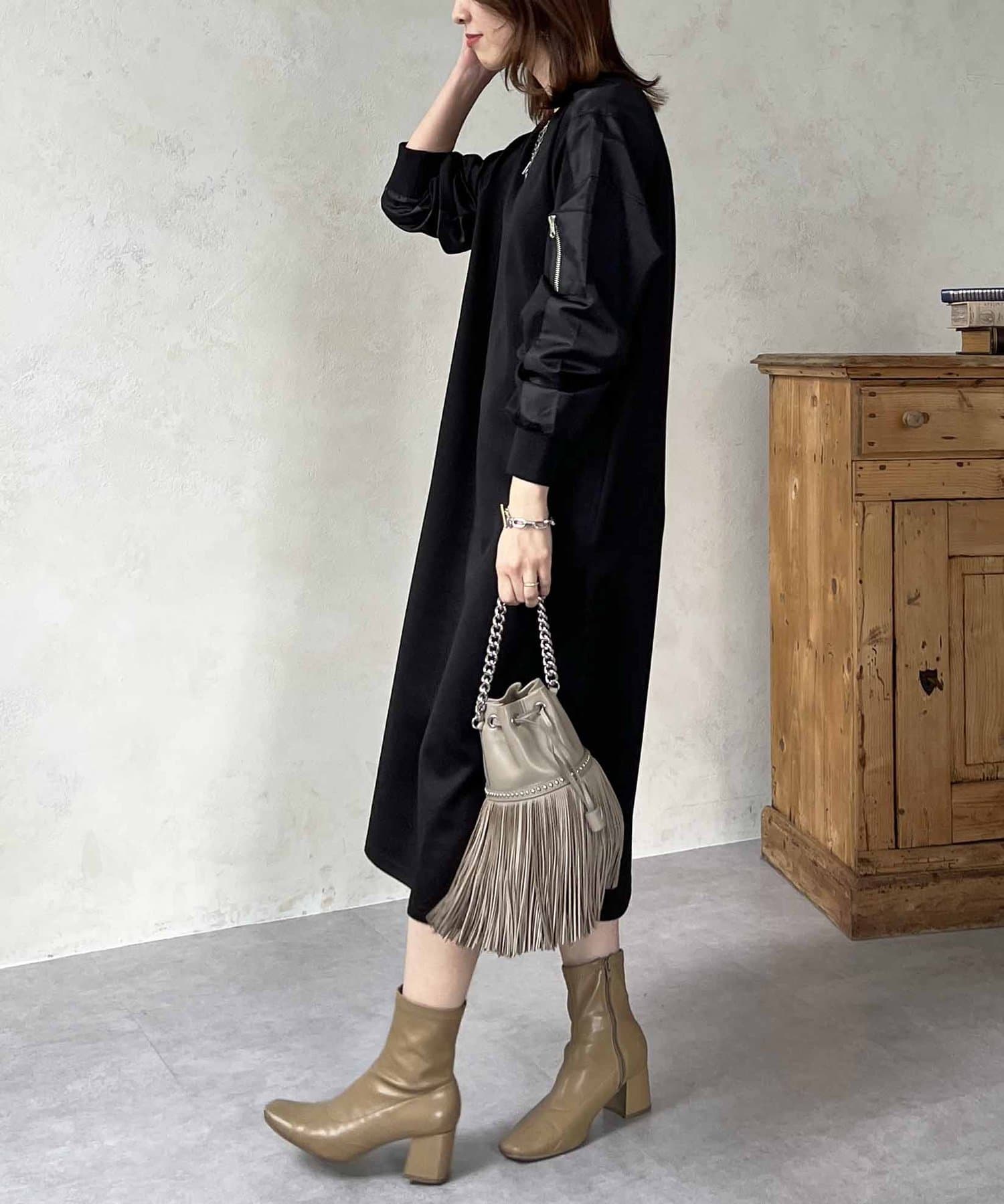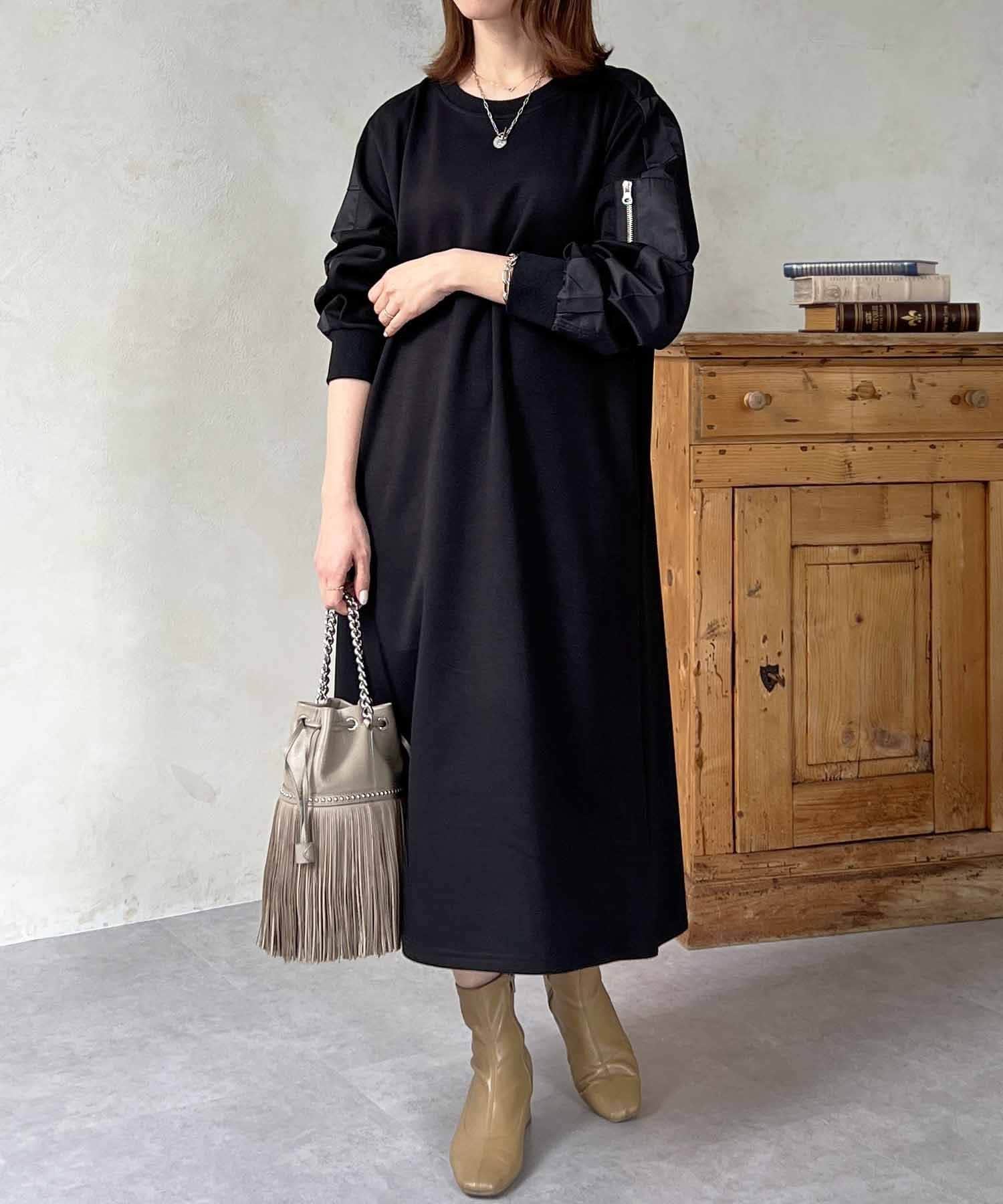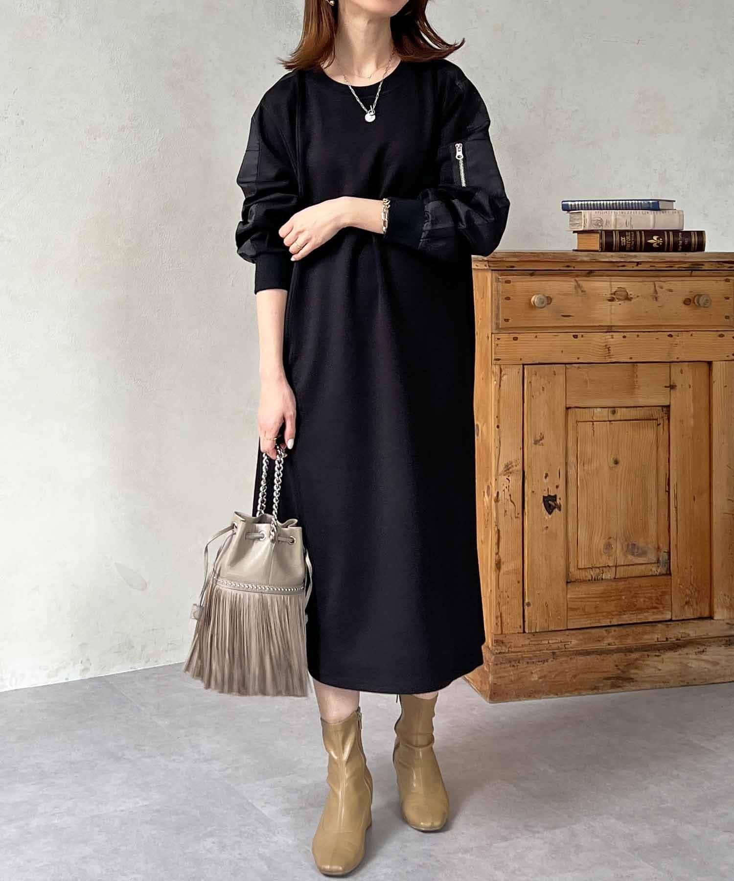 MA1のような袖デザインが特徴的!シンプルですがデザインの効いたワンピースです。