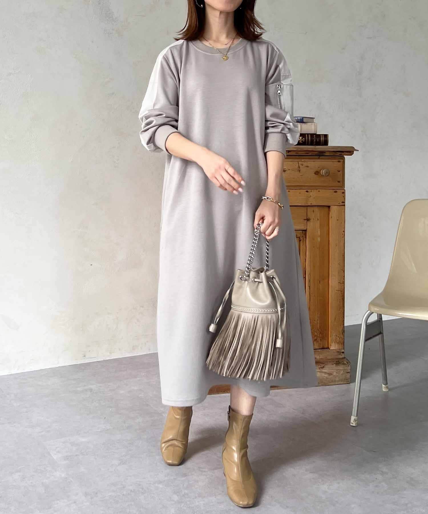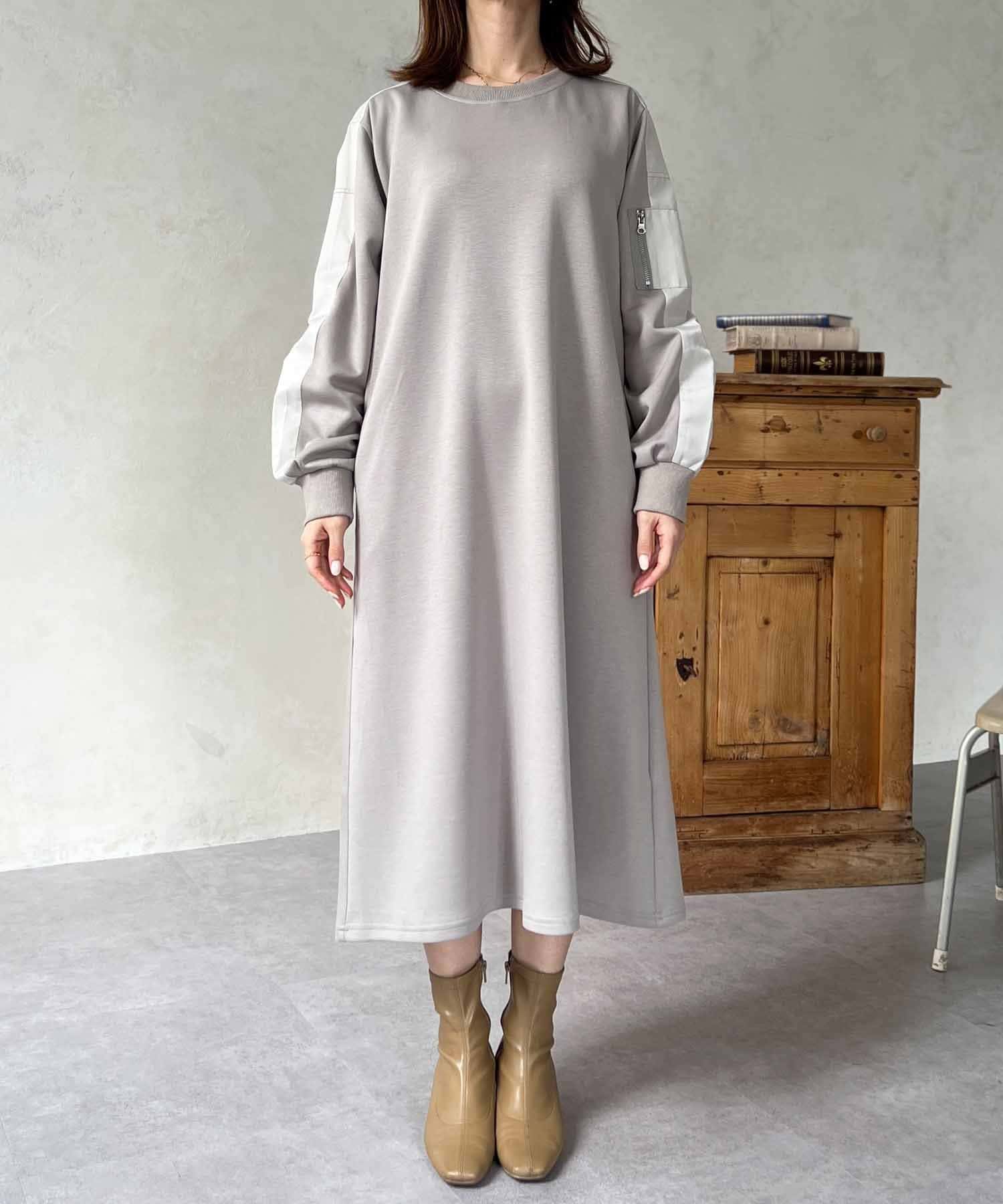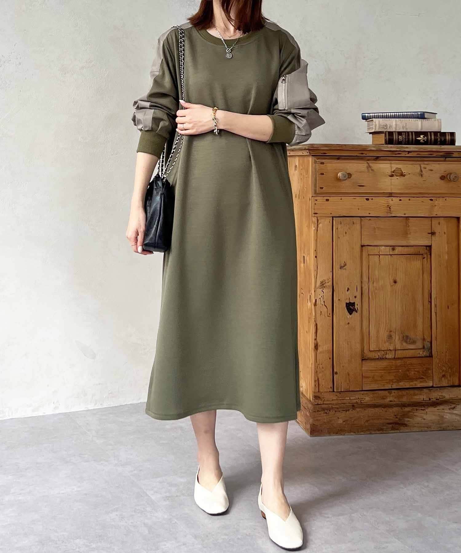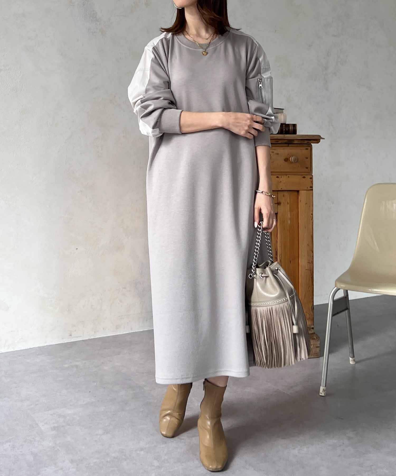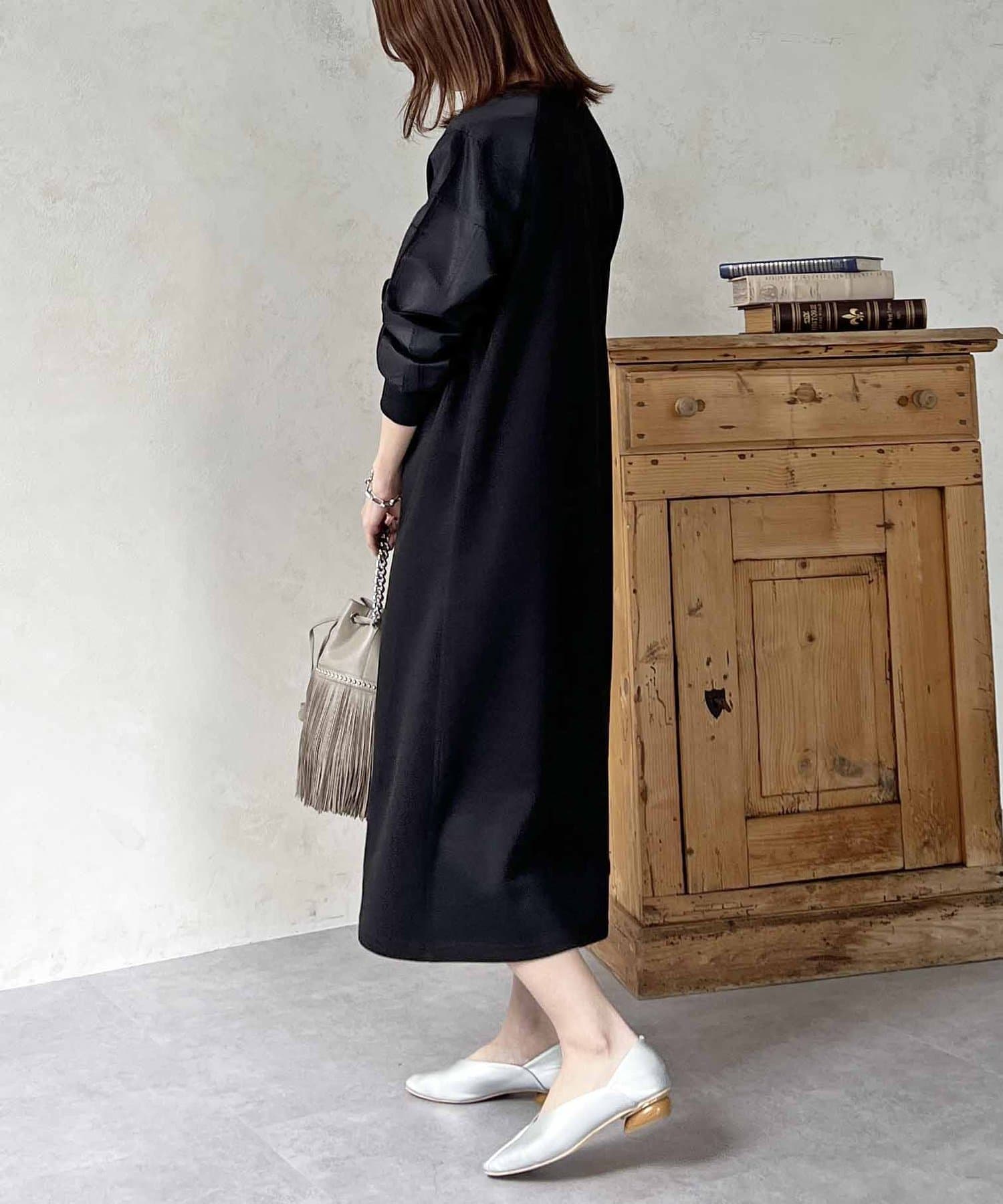 MA1のような袖デザインが特徴的!シンプルですがデザインの効いたワンピースです。