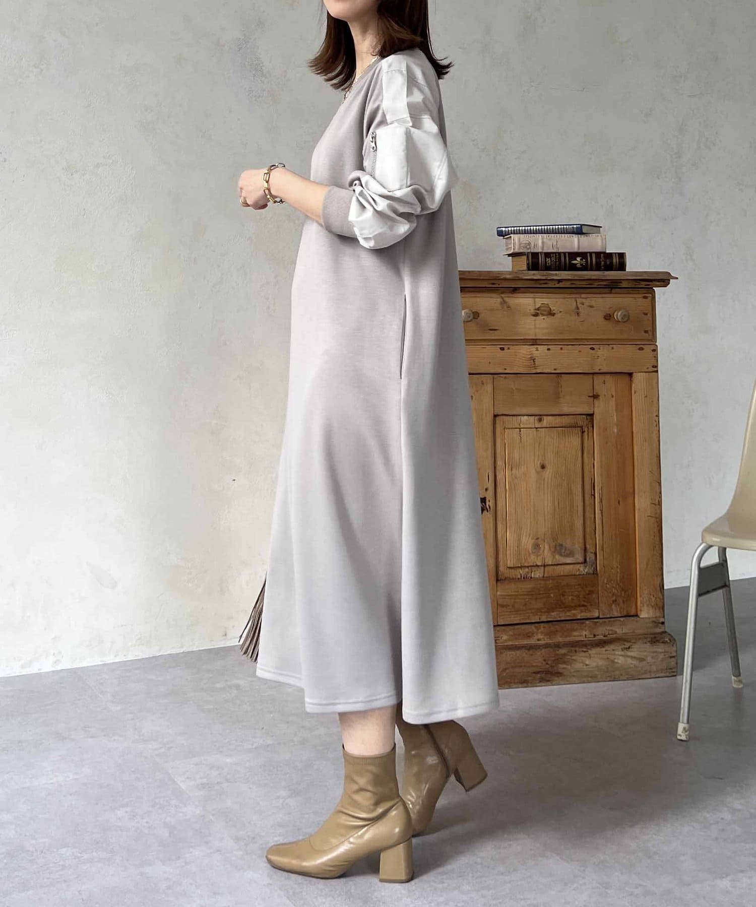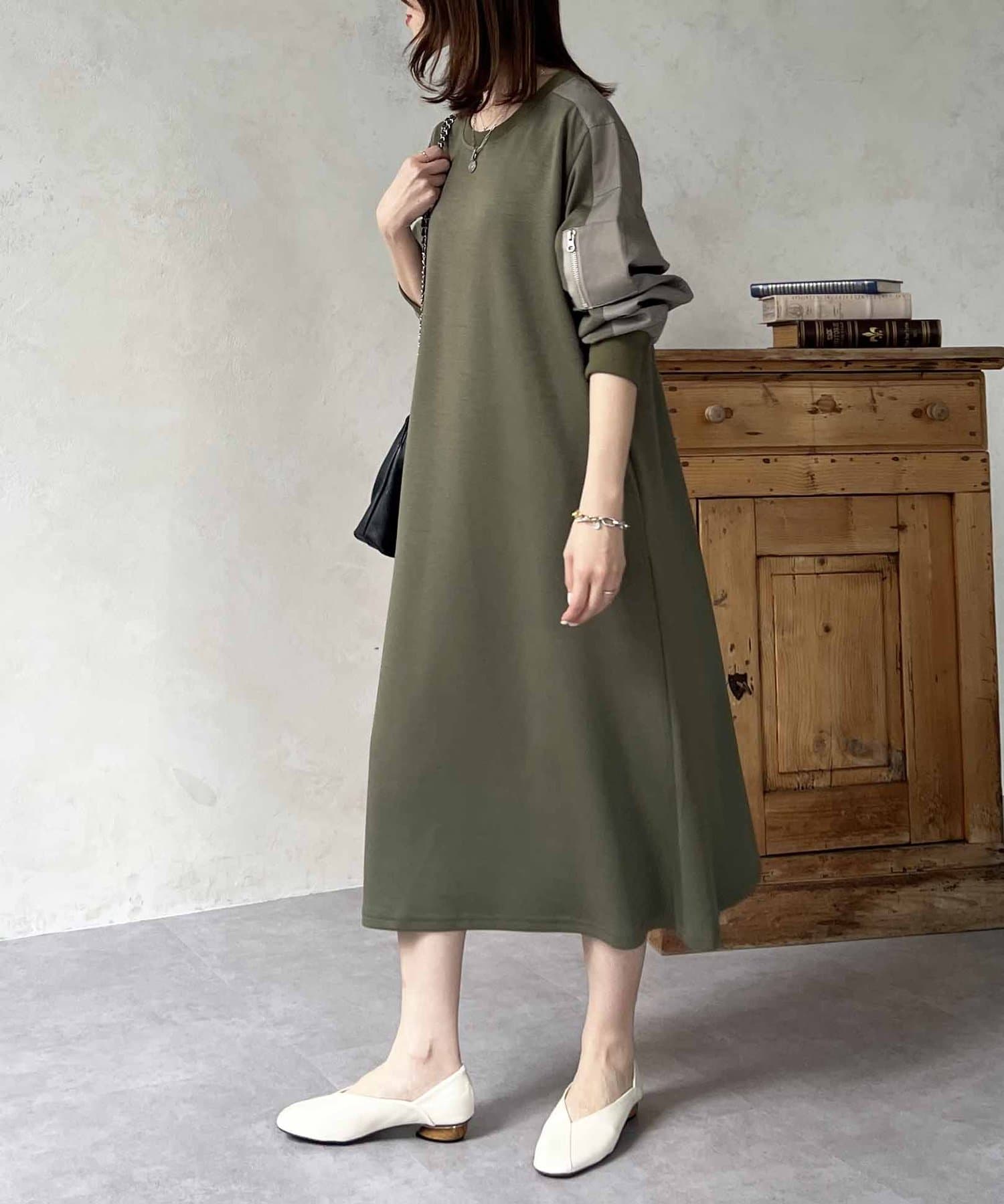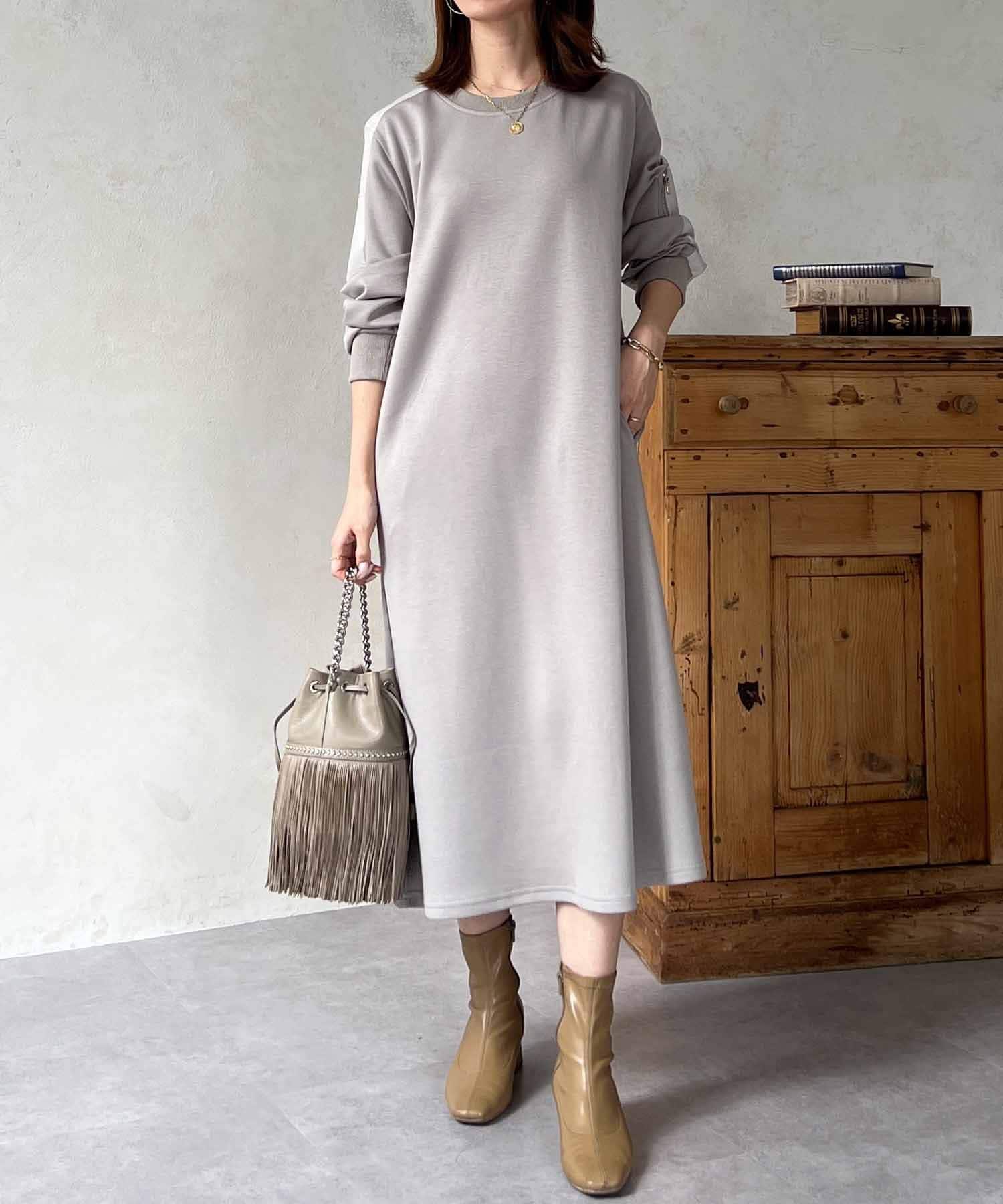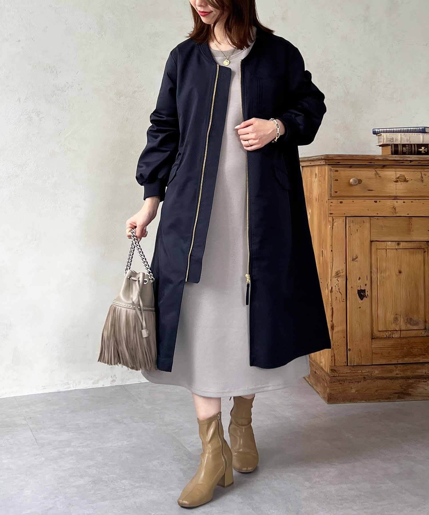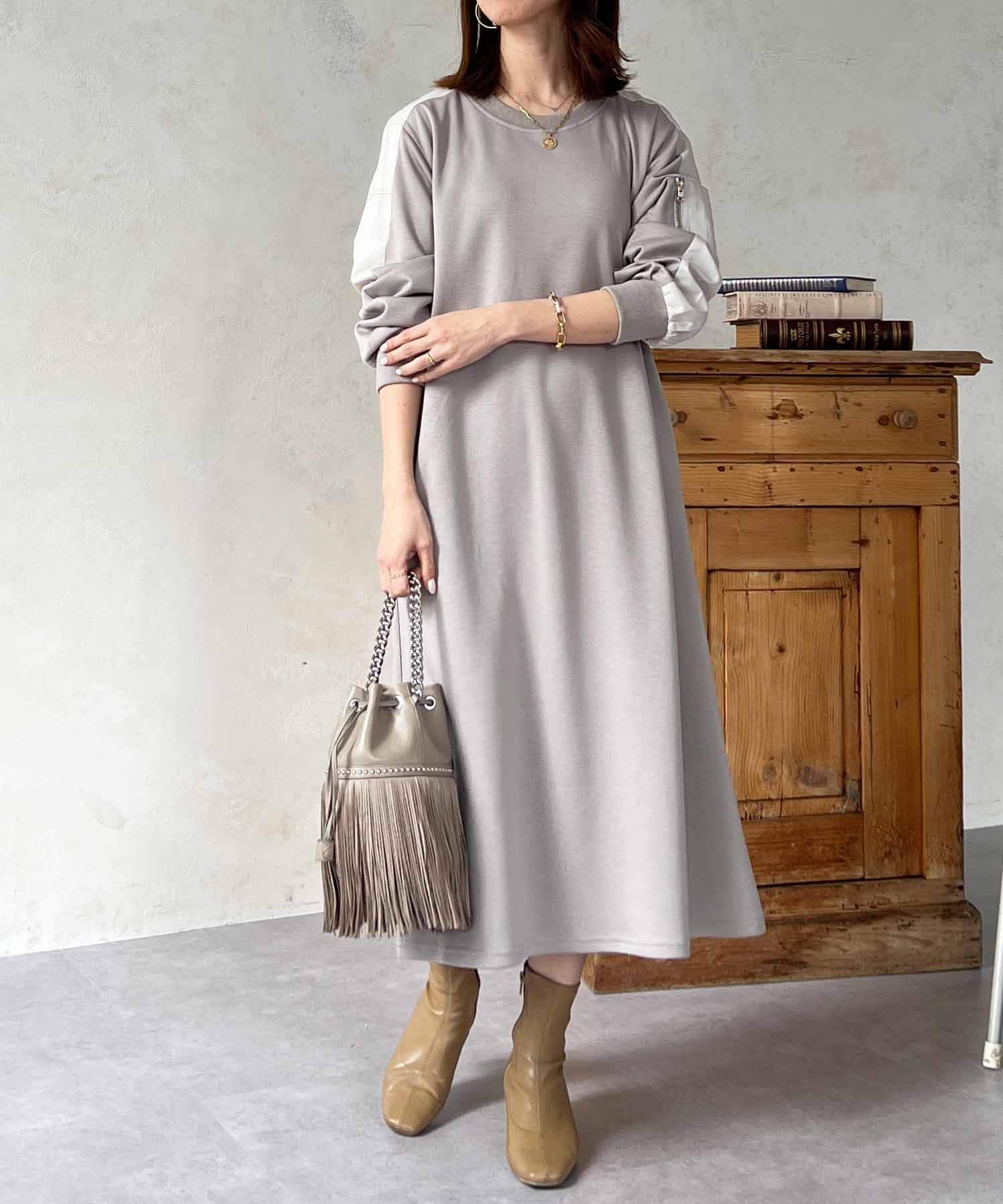 MA1のような袖デザインが特徴的!シンプルですがデザインの効いたワンピースです。