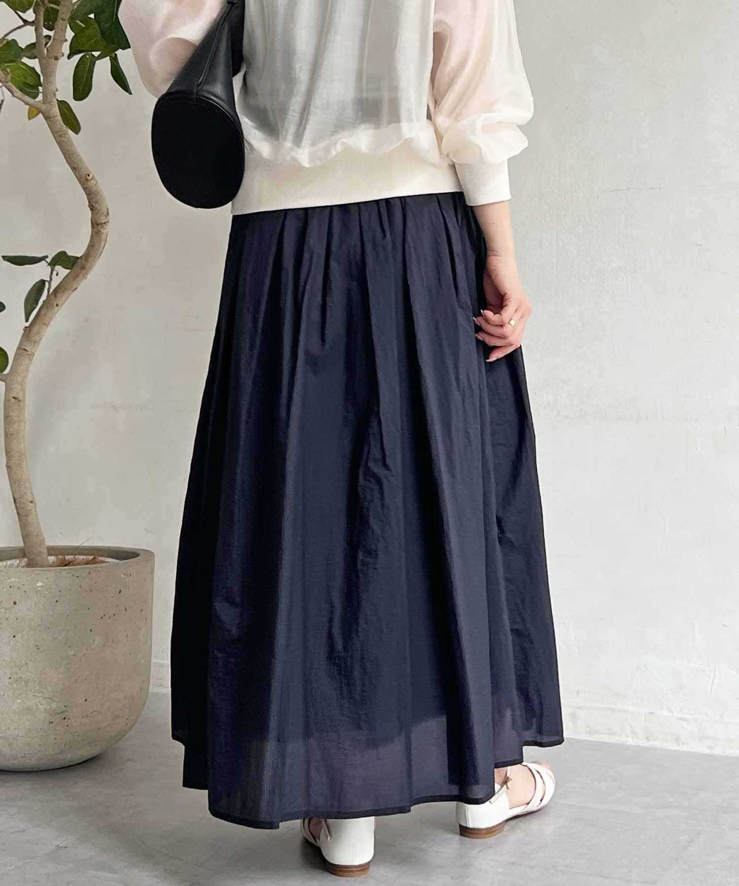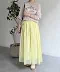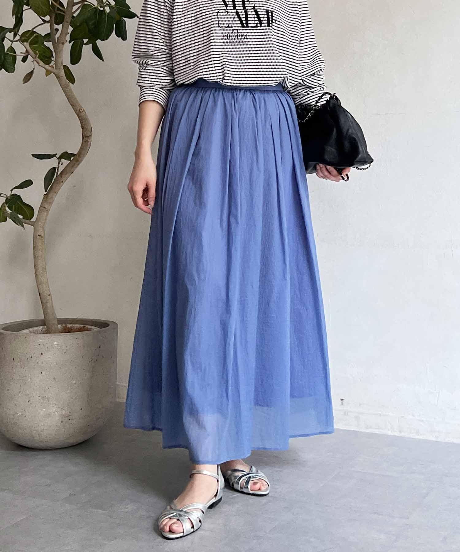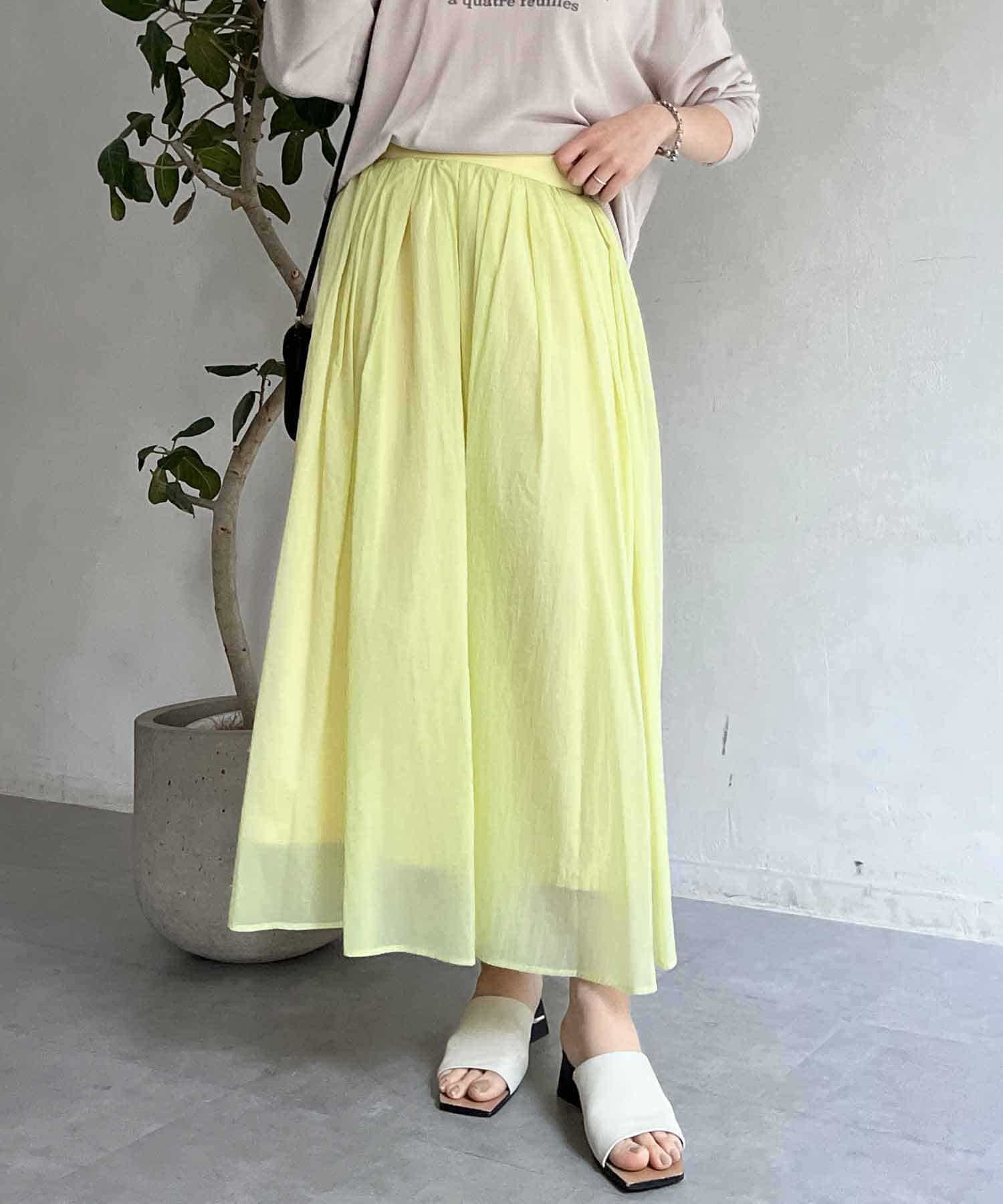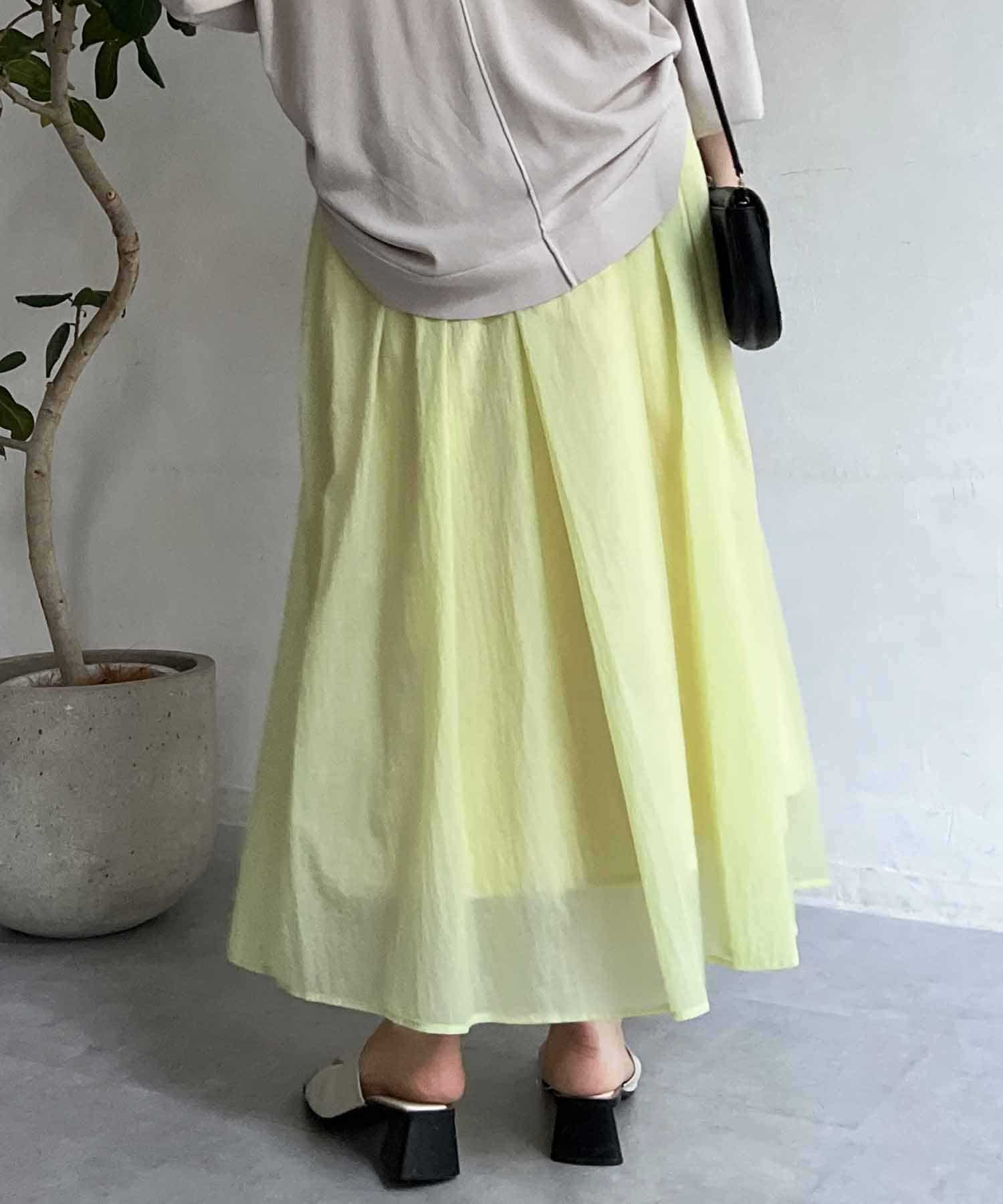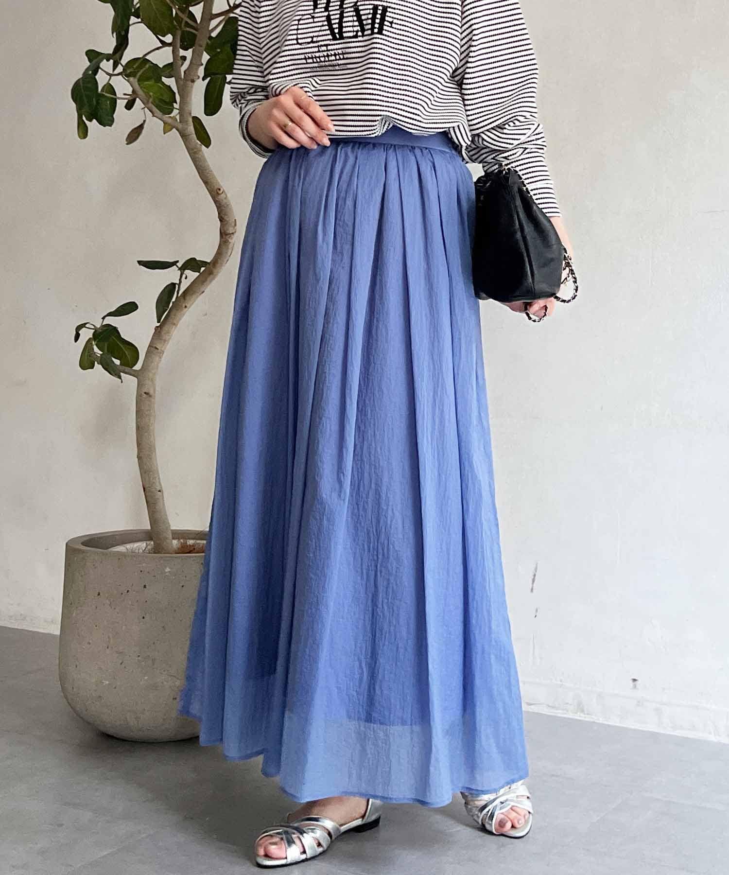 軽やかな品のある透け感とギャザー入りでたっぷりのボリューム感がポイントのフレアスカート。