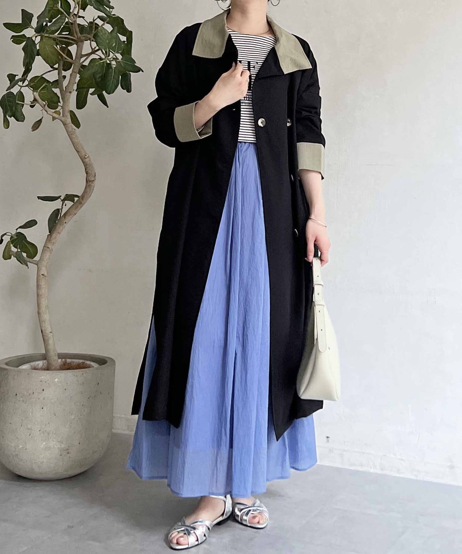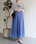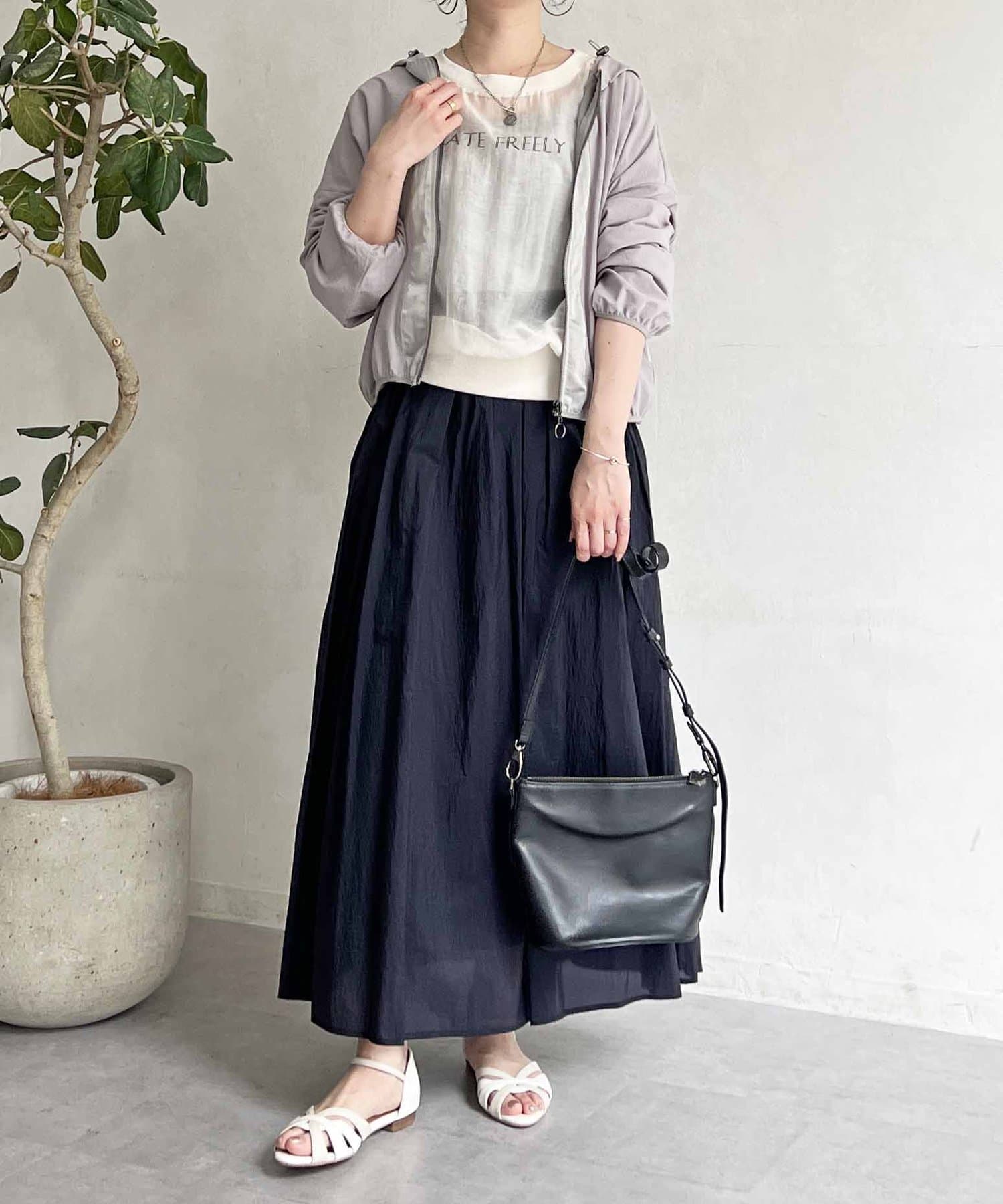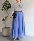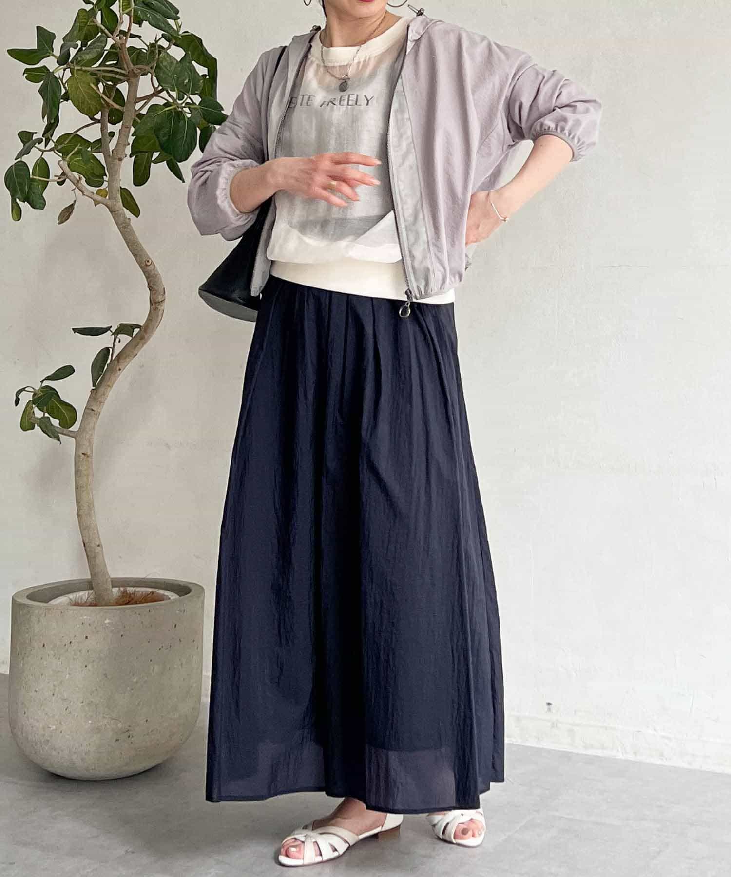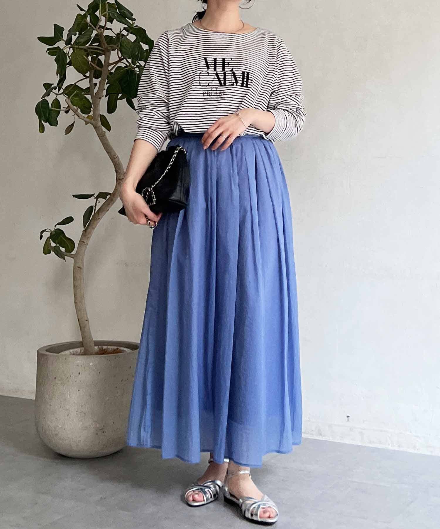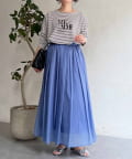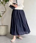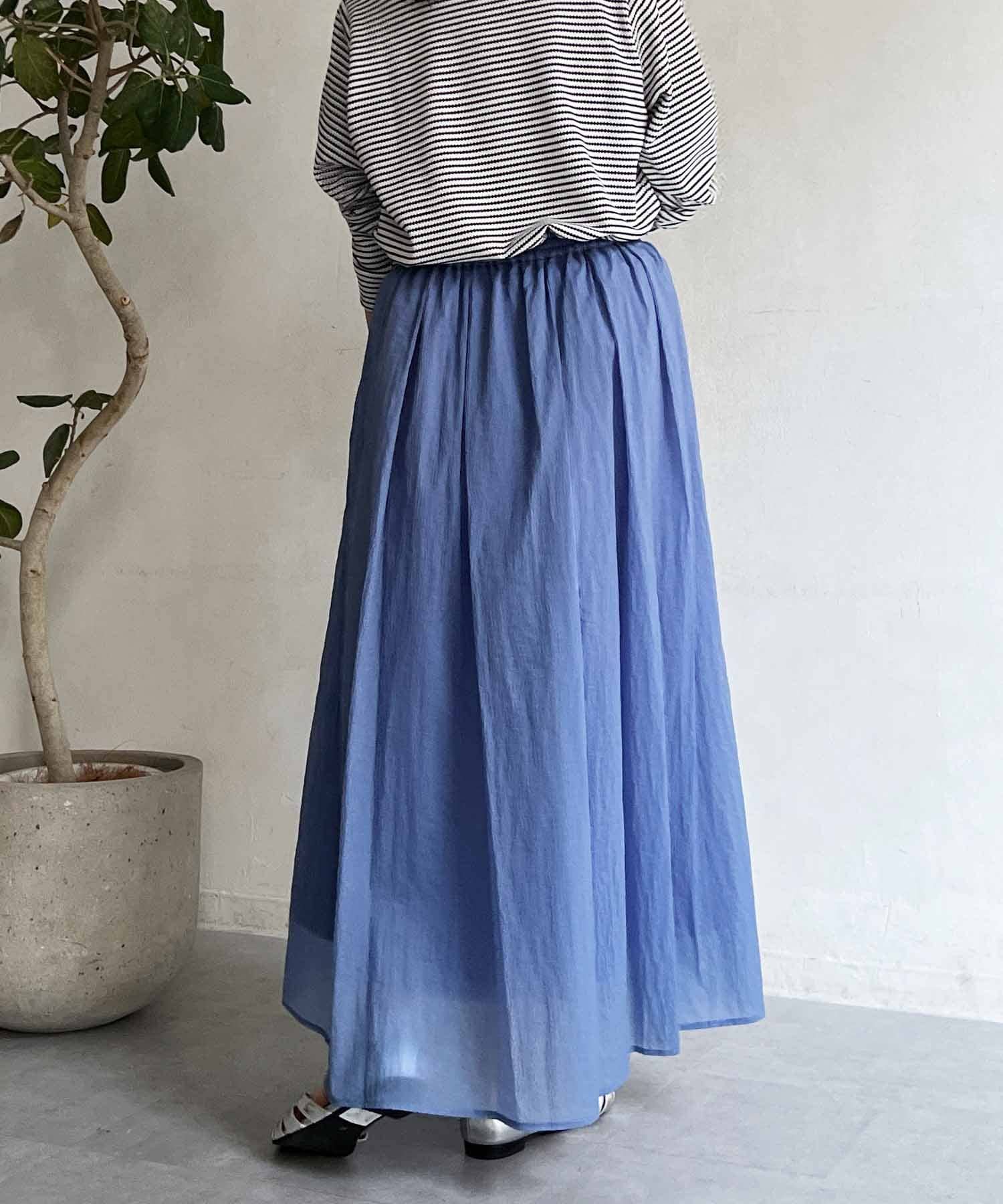軽やかな品のある透け感とギャザー入りでたっぷりのボリューム感がポイントのフレアスカート。