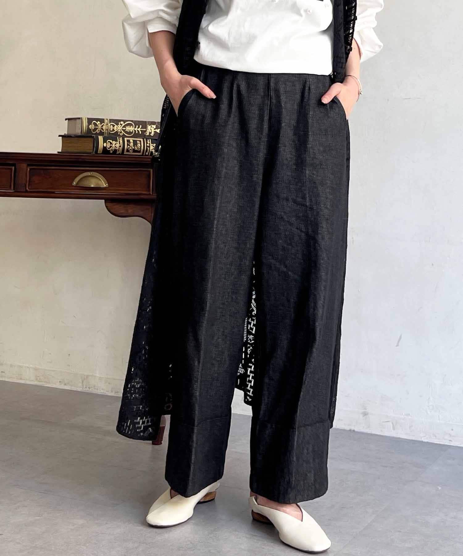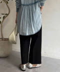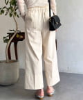 ウエストゴムは後ろ部分がゴム仕様なので、窮屈さを感じにくい日常使いしたいイージーな履き心地。
