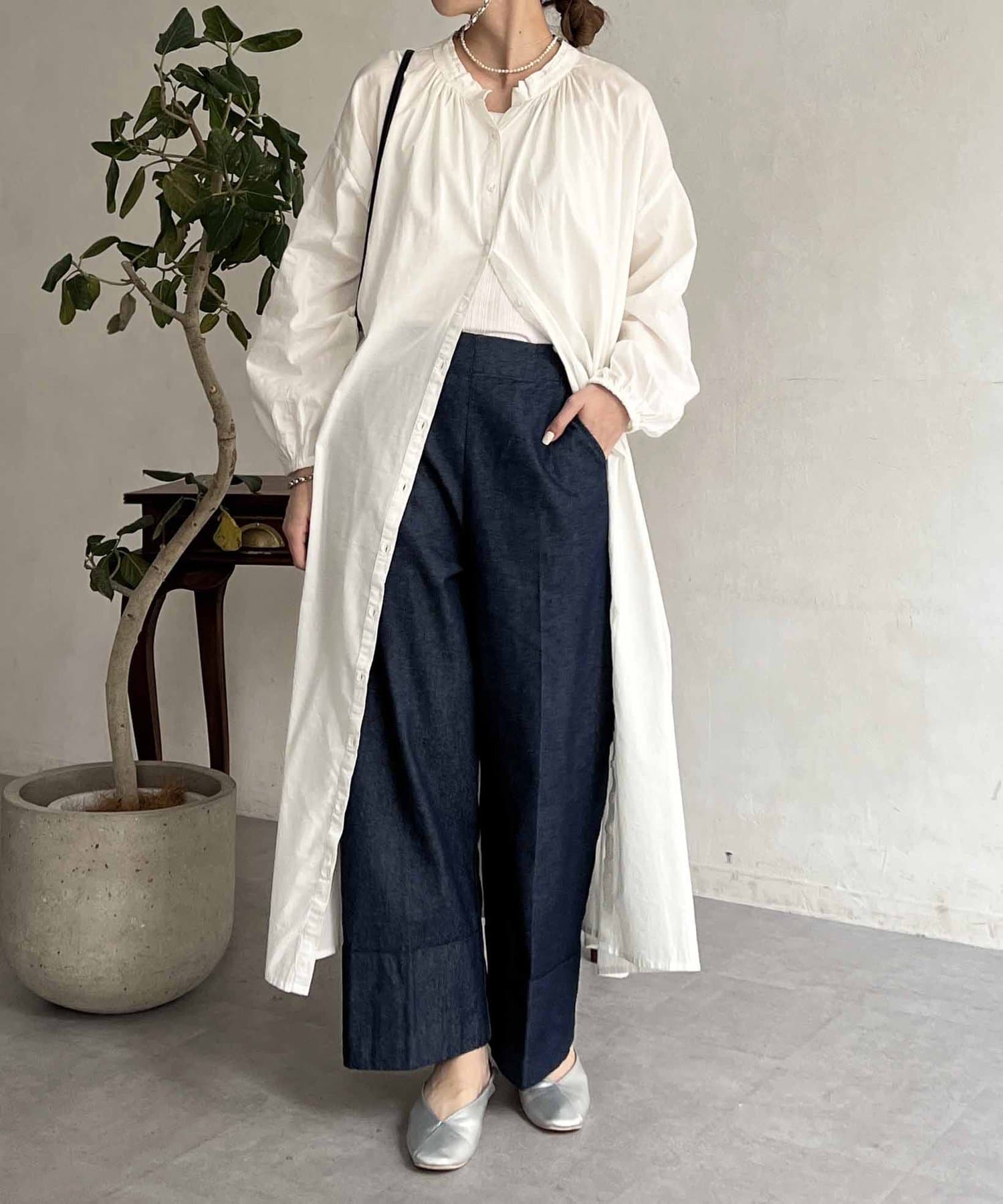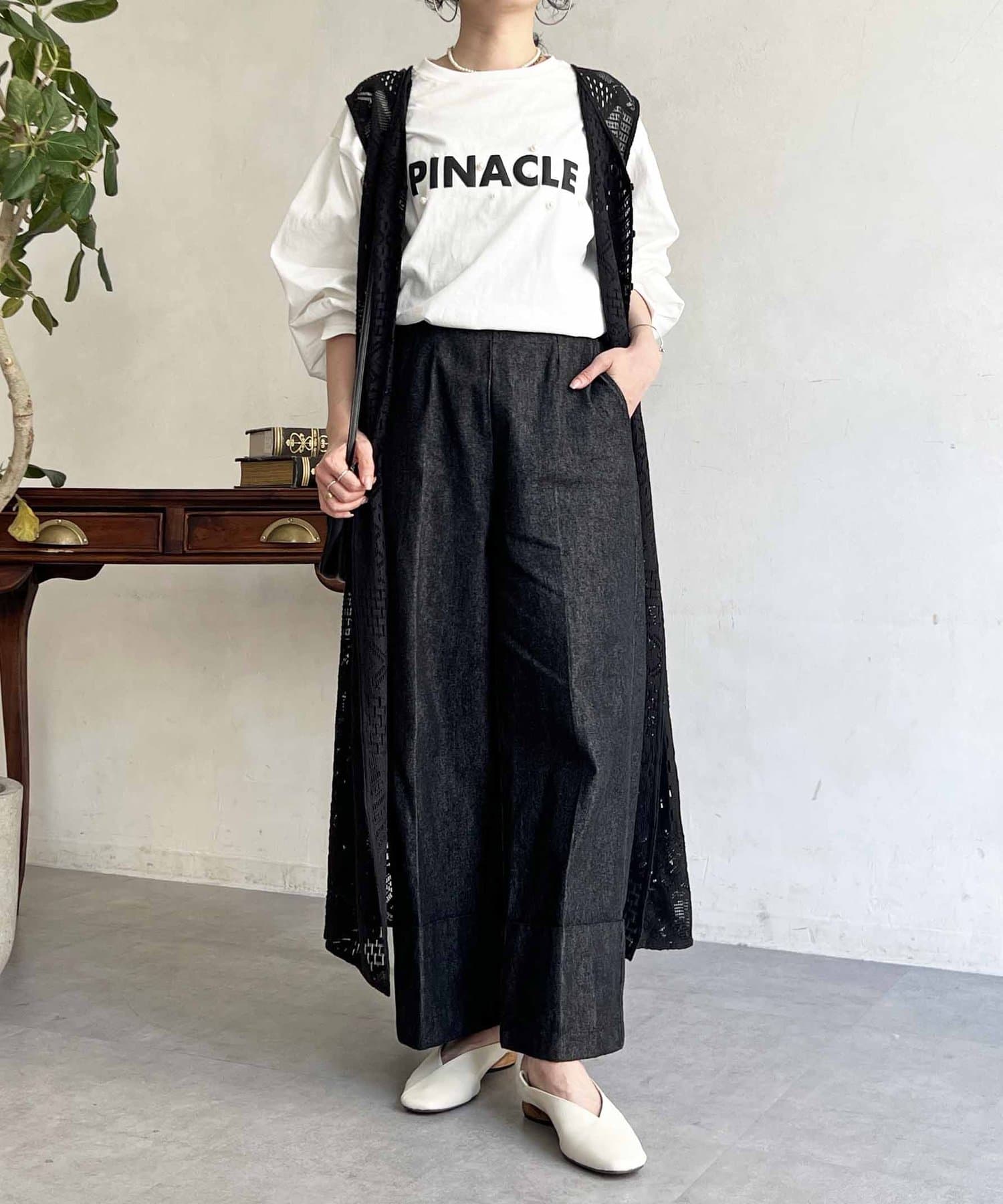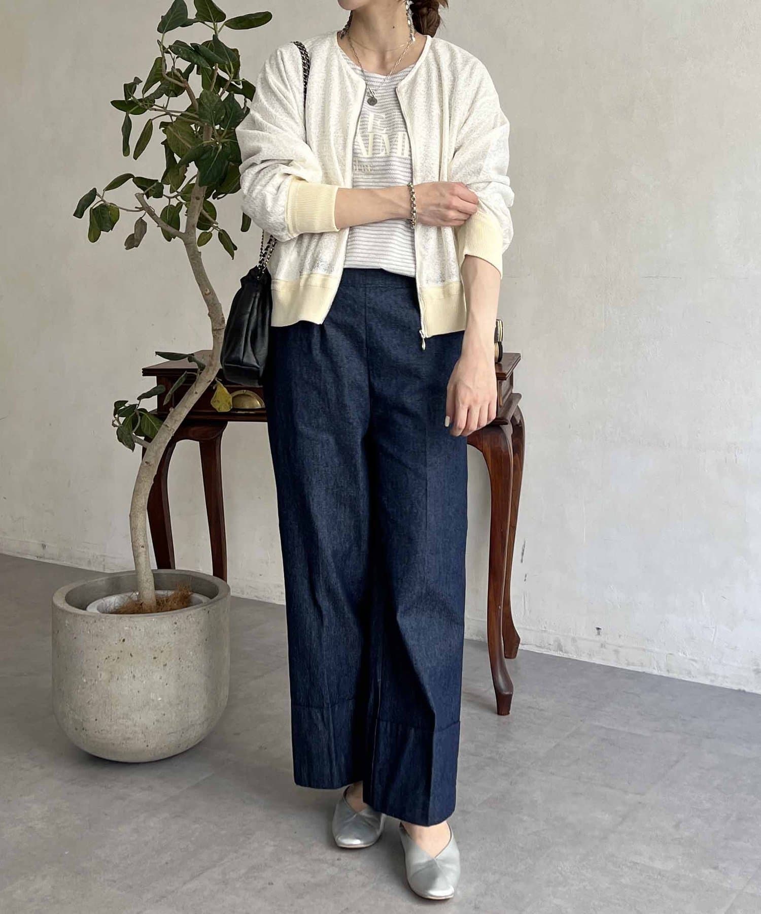 ロゴTやカットソーでカジュアルスタイルはもちろん、きれいめブラウスやシャツで合わせた上品カジュアルコーデにもはまる1枚です。