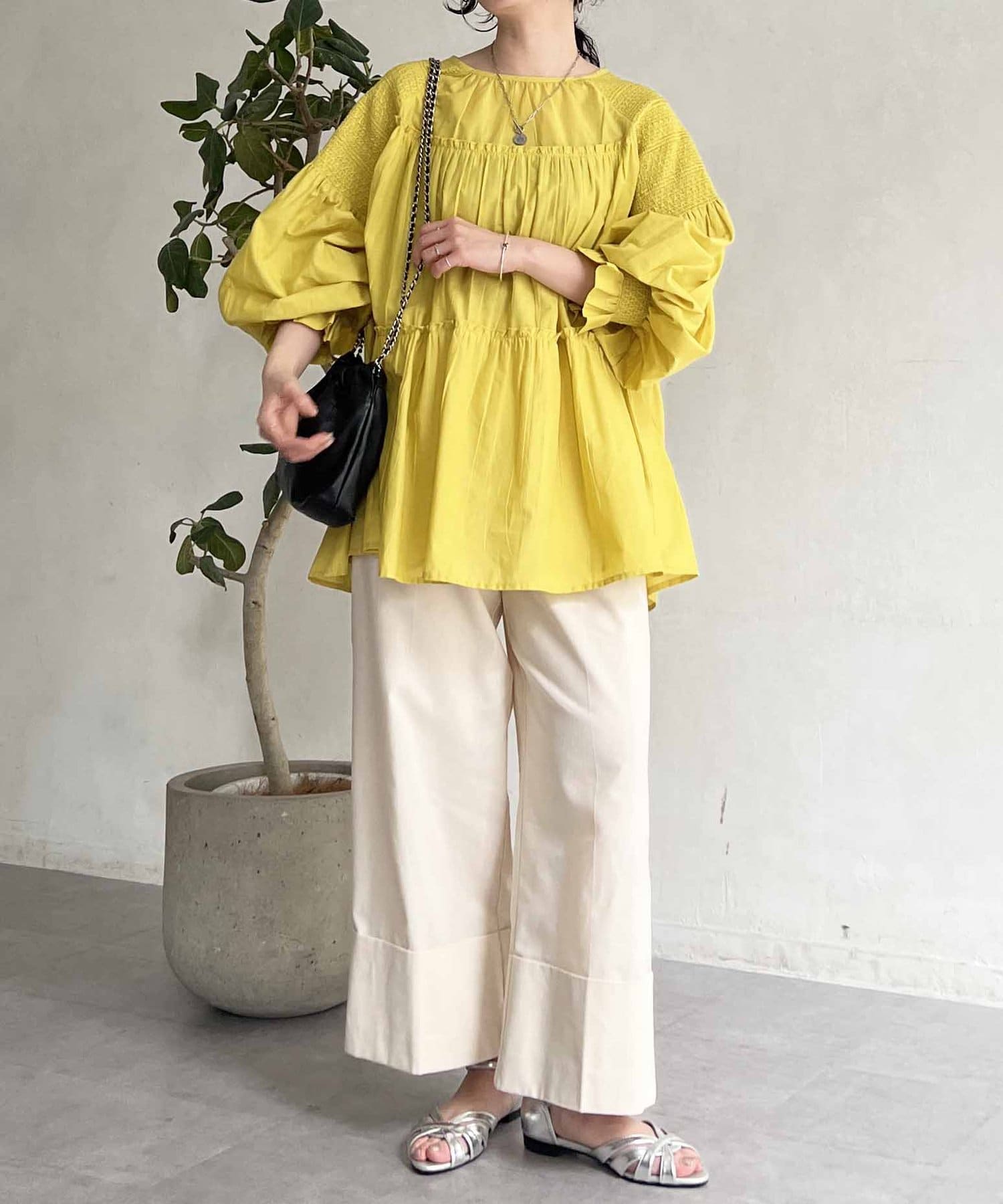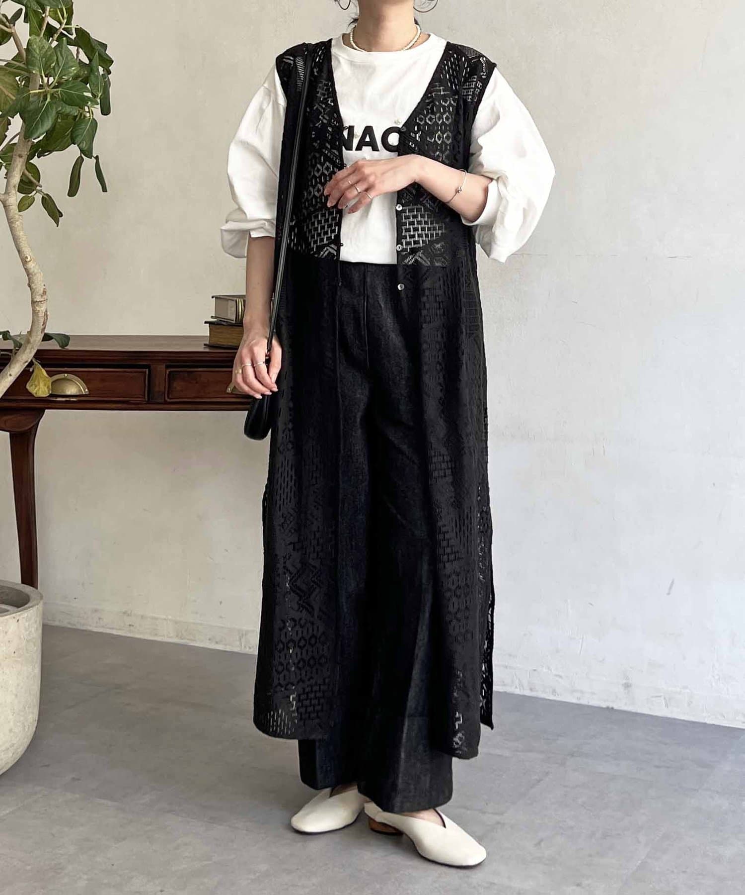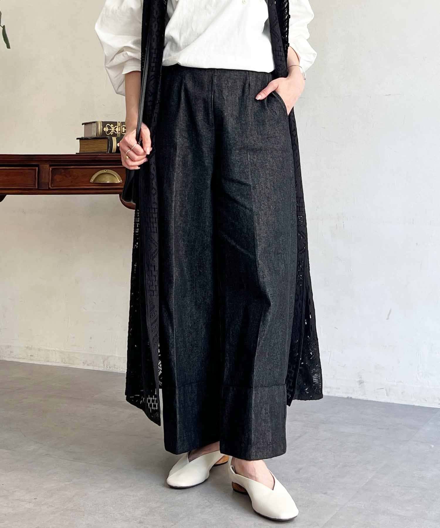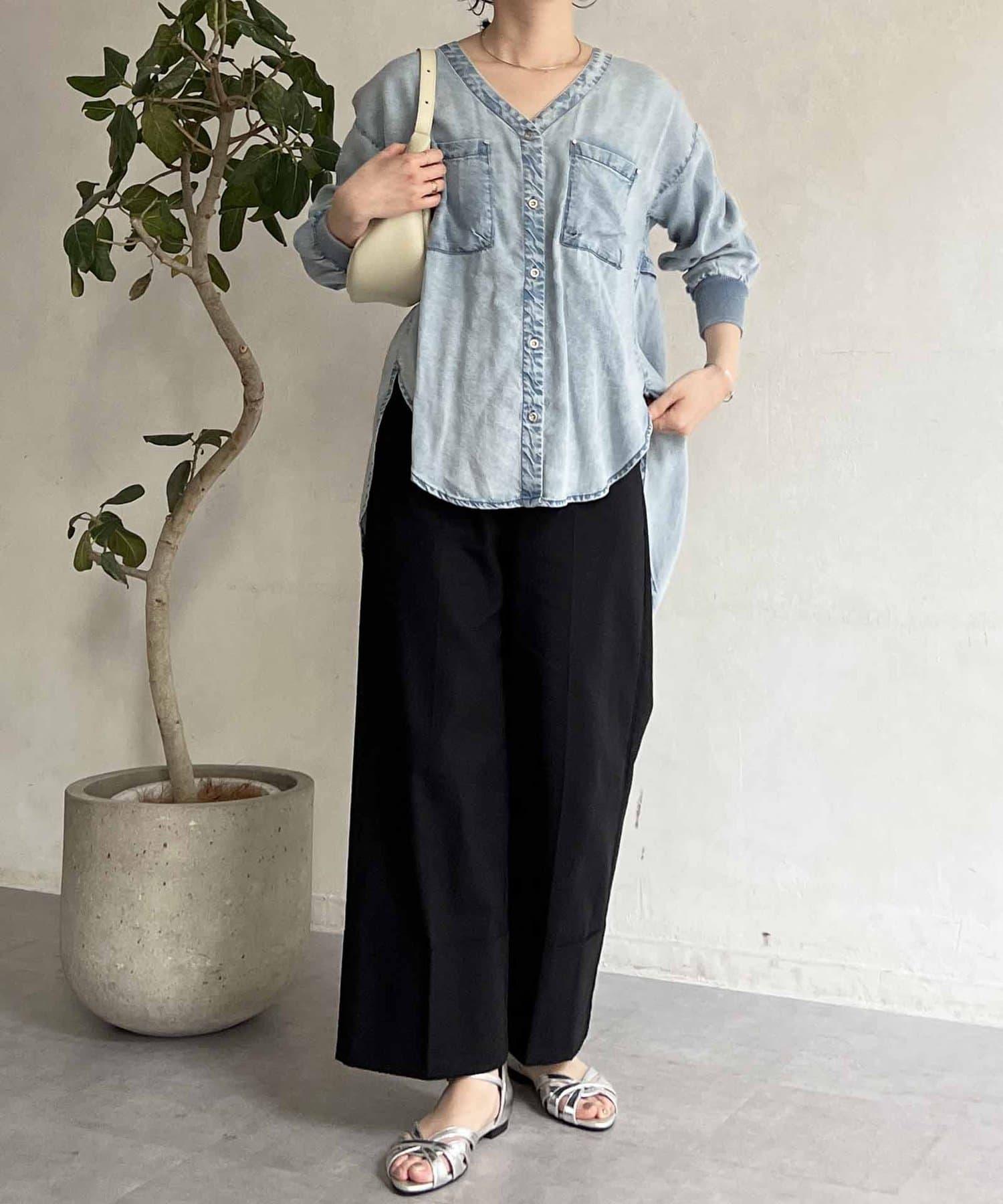ロゴTやカットソーでカジュアルスタイルはもちろん、きれいめブラウスやシャツで合わせた上品カジュアルコーデにもはまる1枚です。