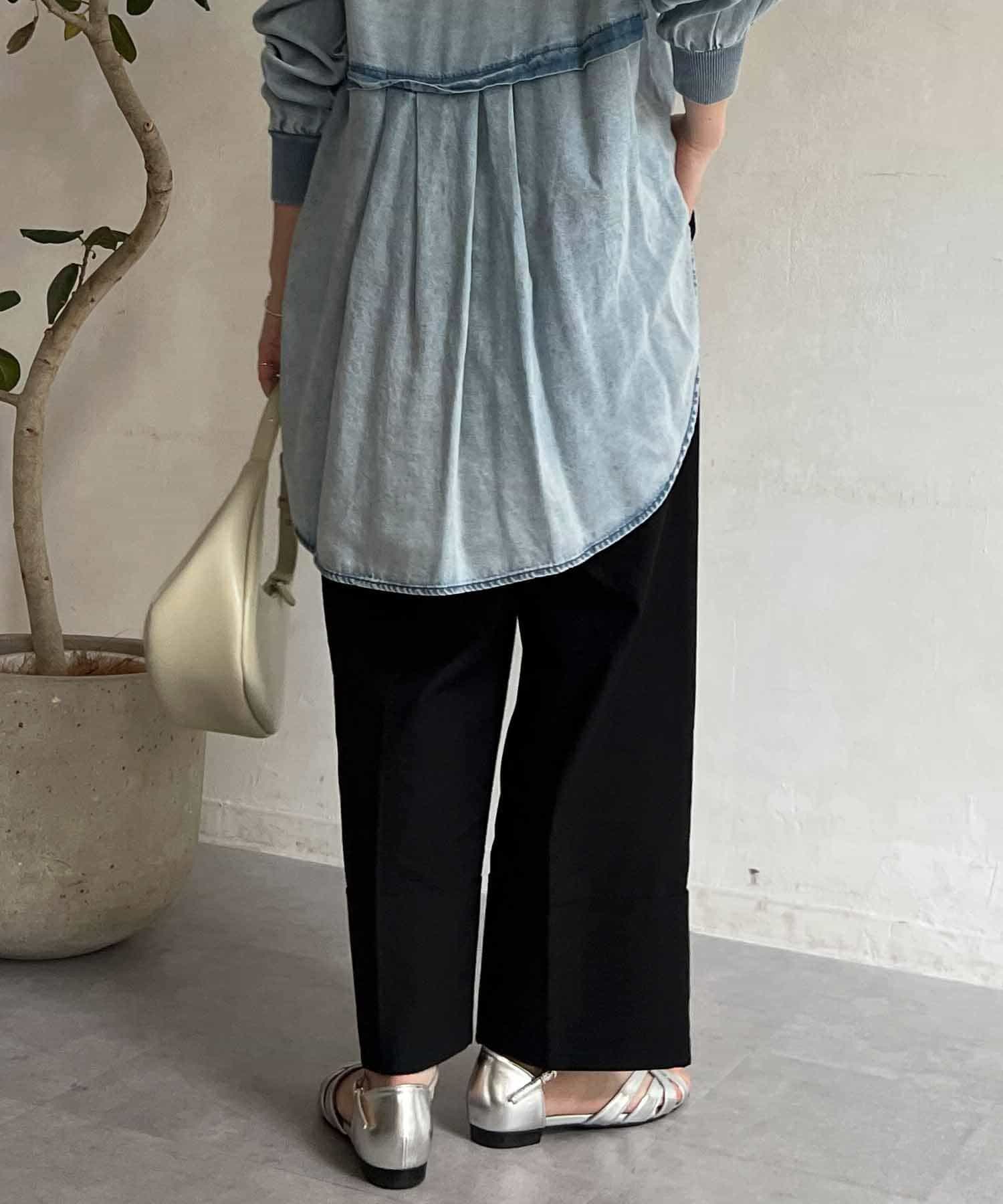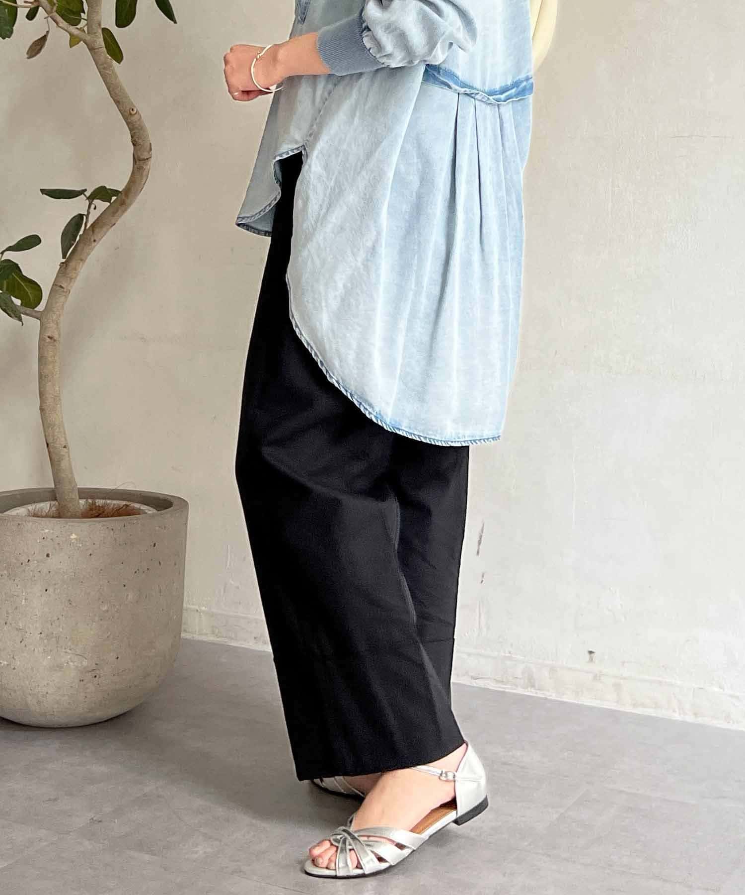 すとんと落ち感のある、太すぎず細すぎないストレートシルエットで”ストレート”が苦手な方にもきれいに履いていただけます。