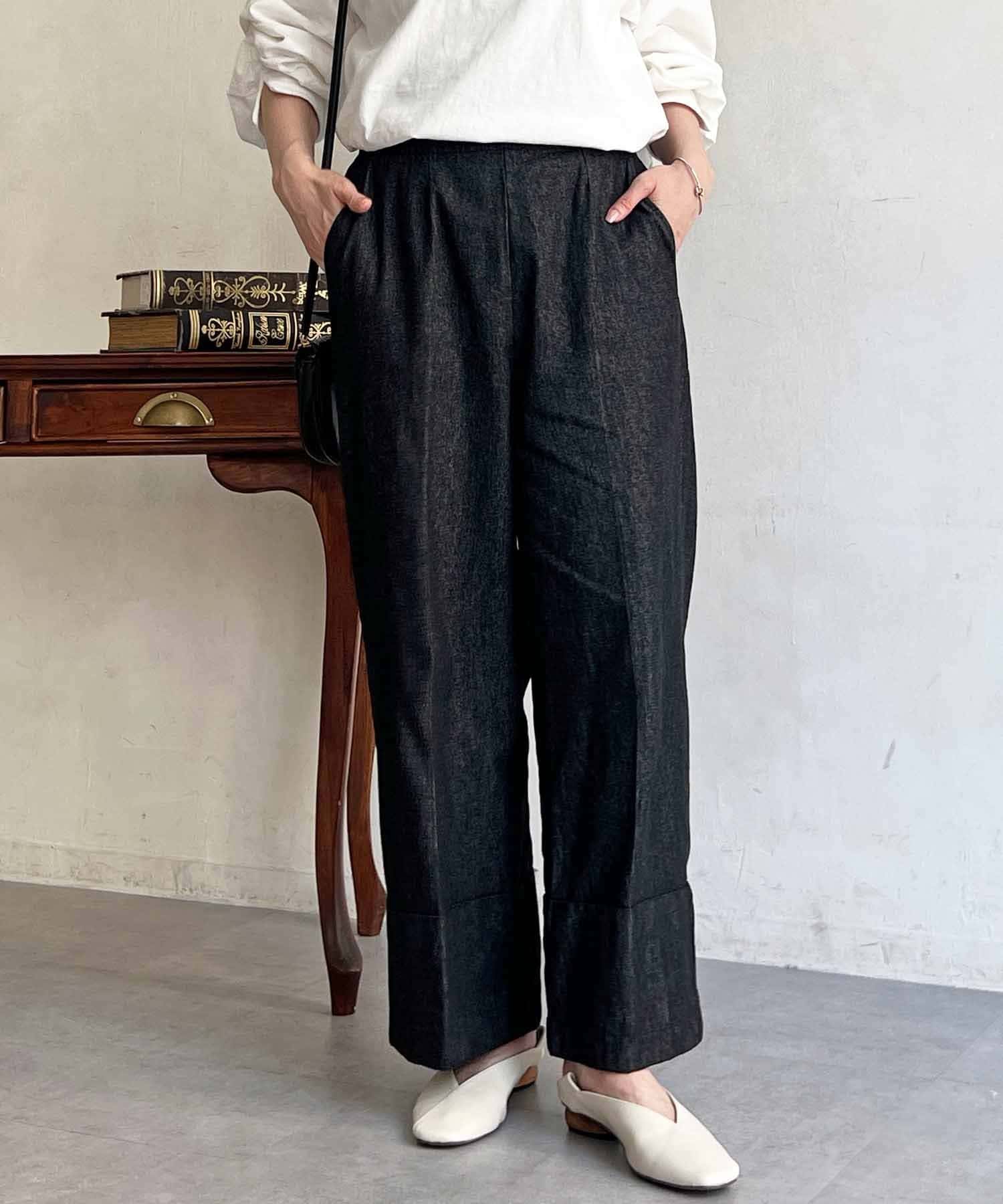 【低身長さんにもおすすめ!】ロールヘムセンタープレスパンツ