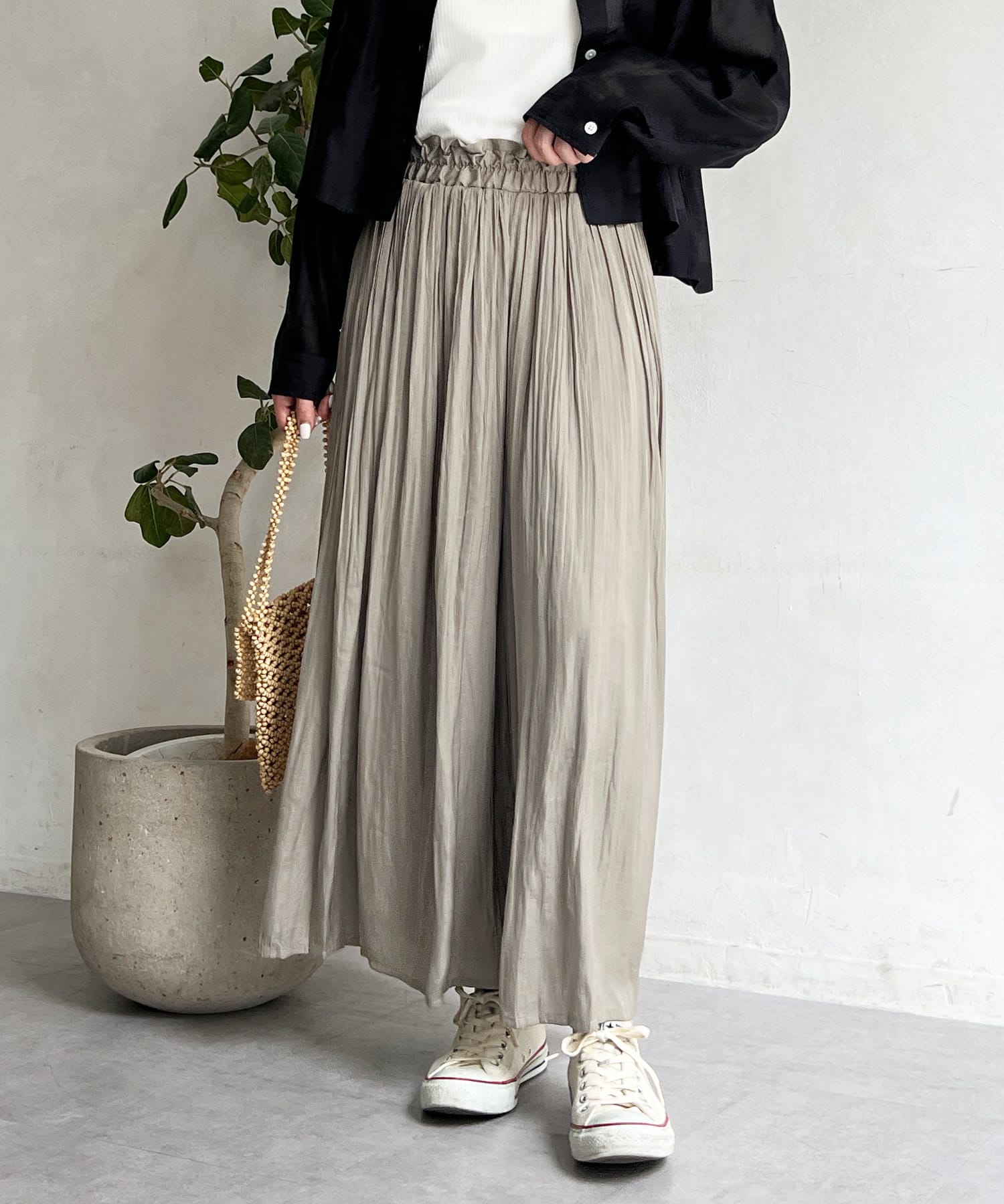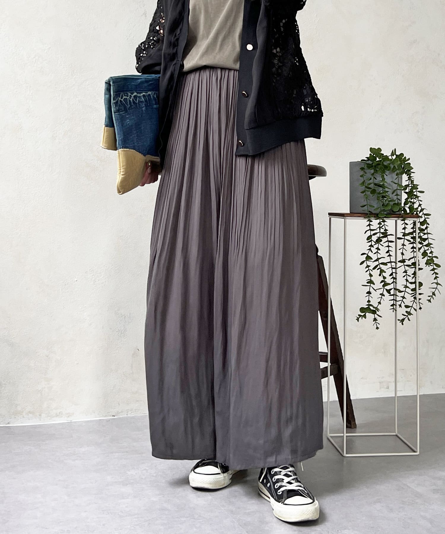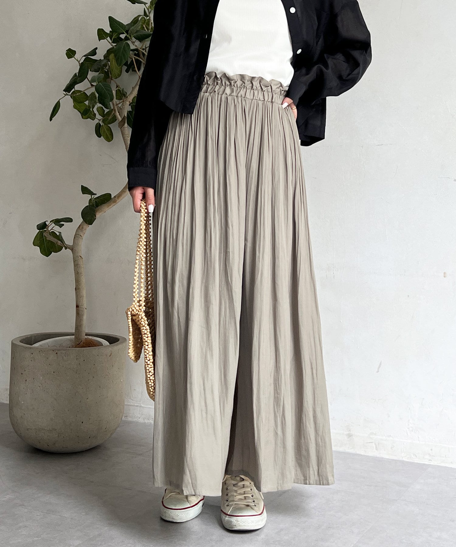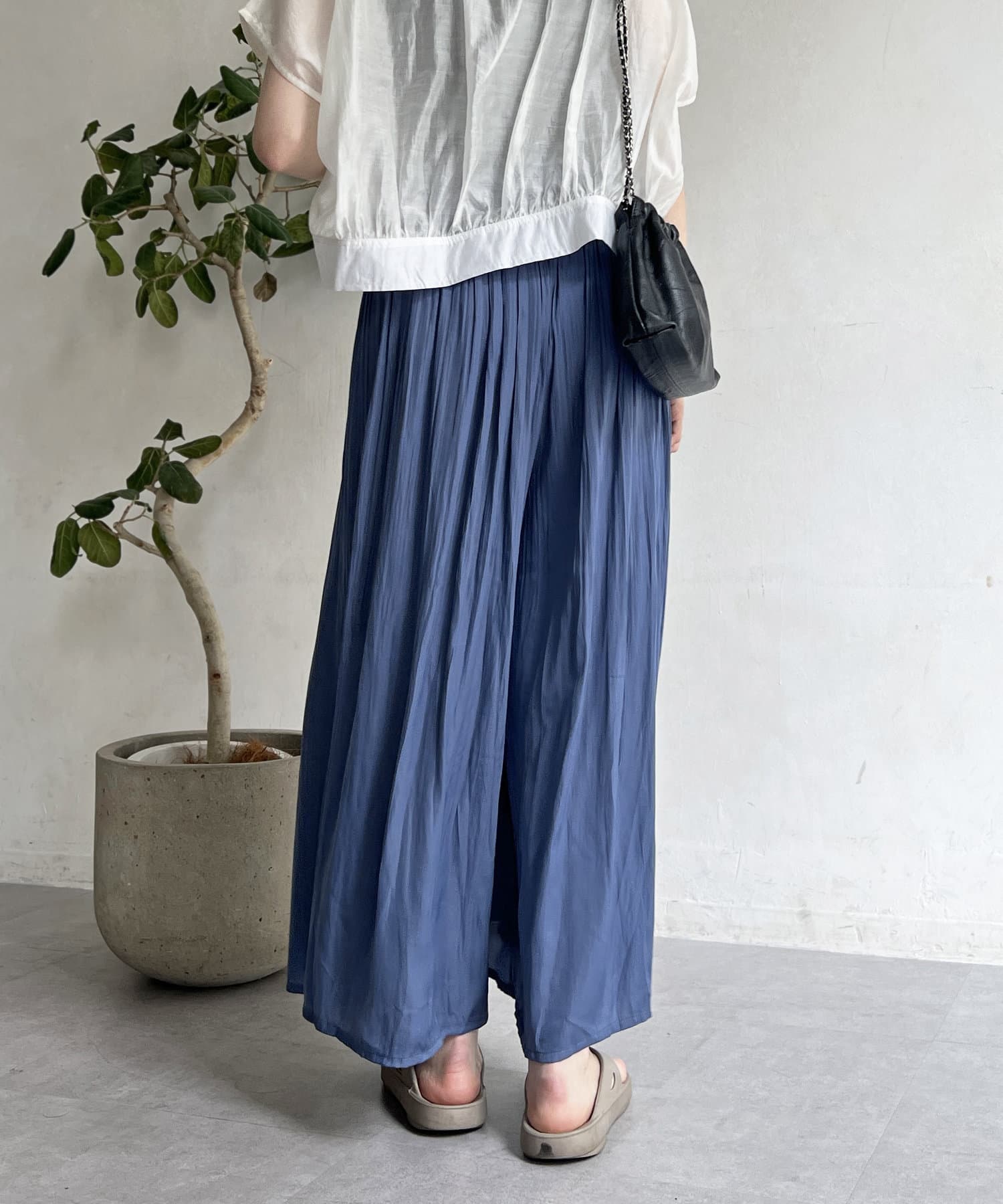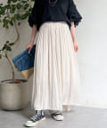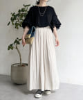 ゆったりとしたプリーツスカートに見えますが、実はワイドシルエットのロングパンツ!