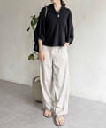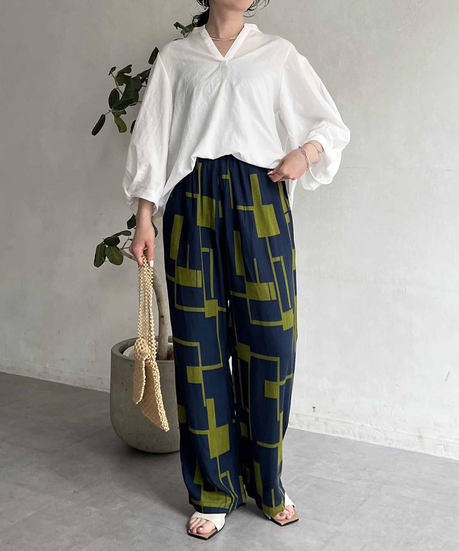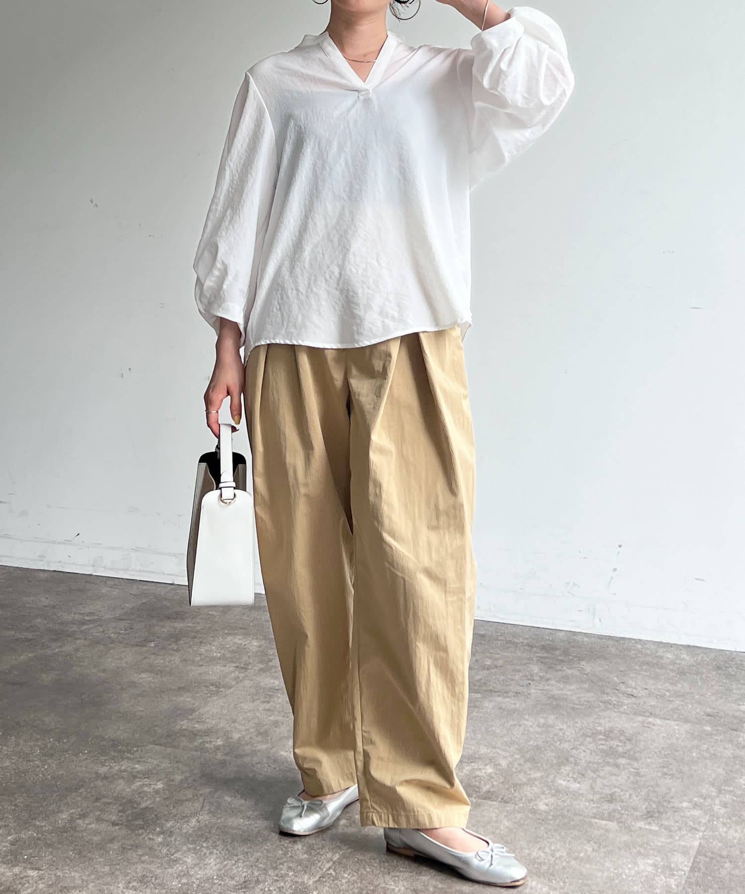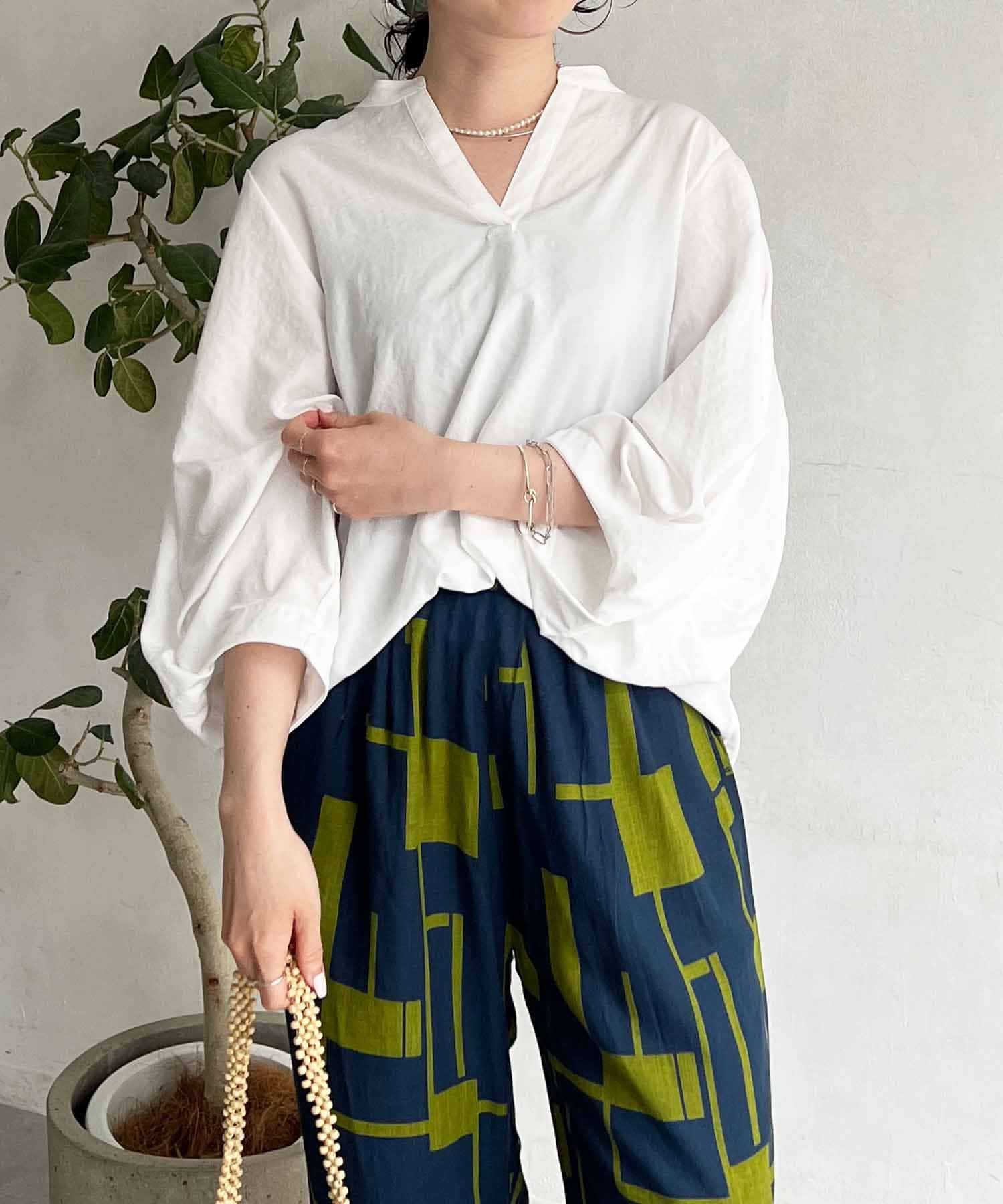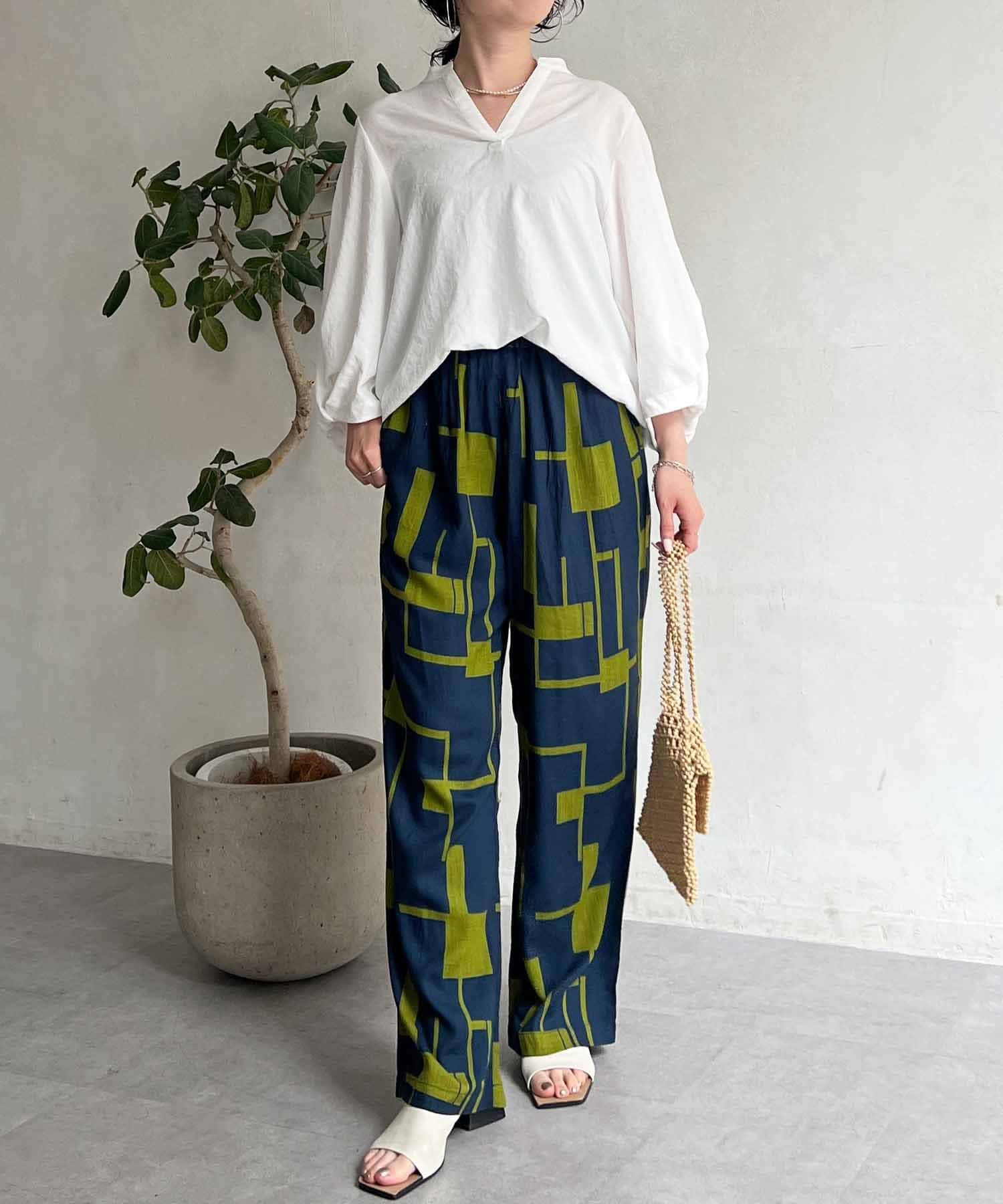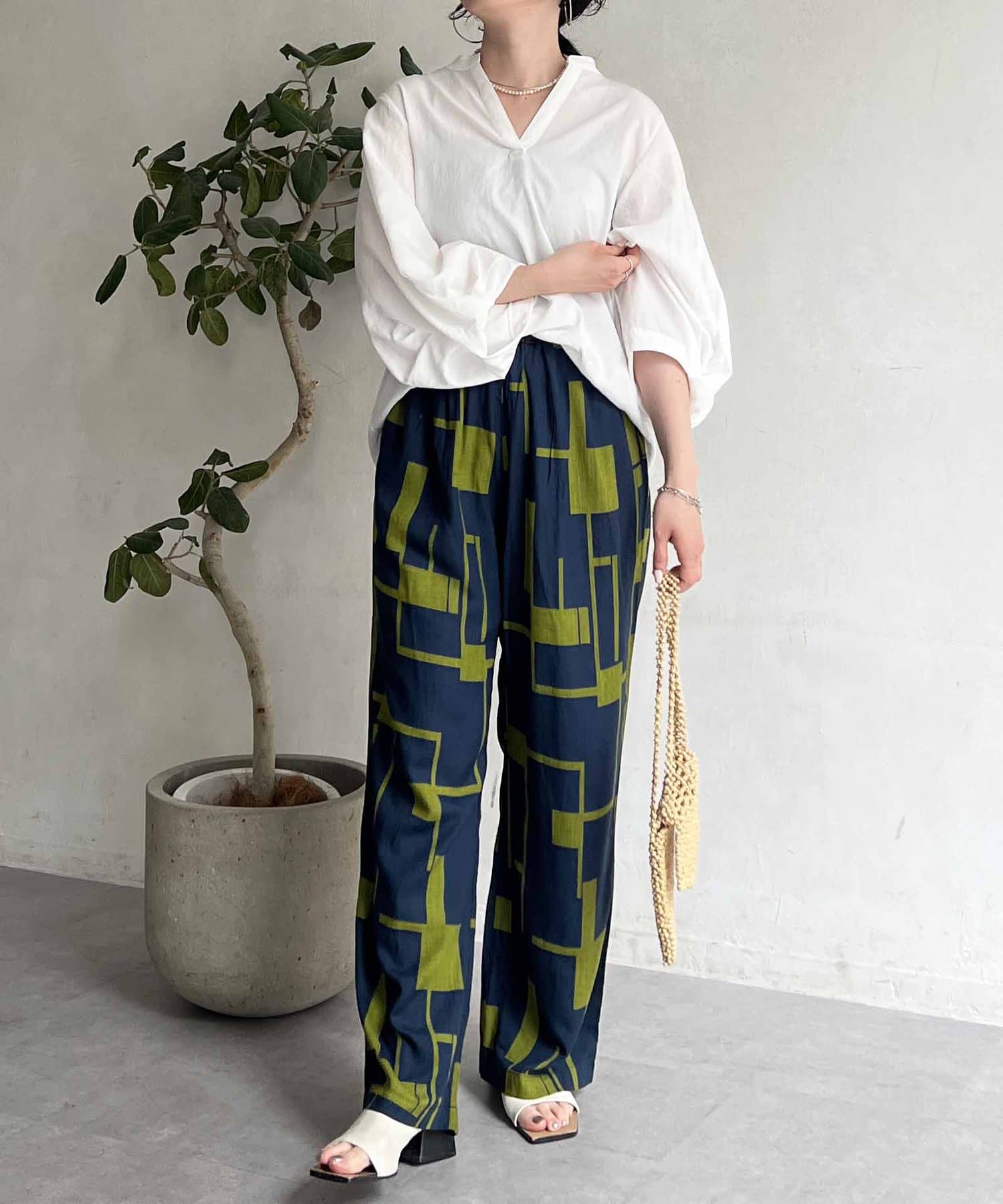 シンプルなパンツやスカートはもちろん、柄パンツやリネン素材など個性的なアイテムとも相性ばっちり!